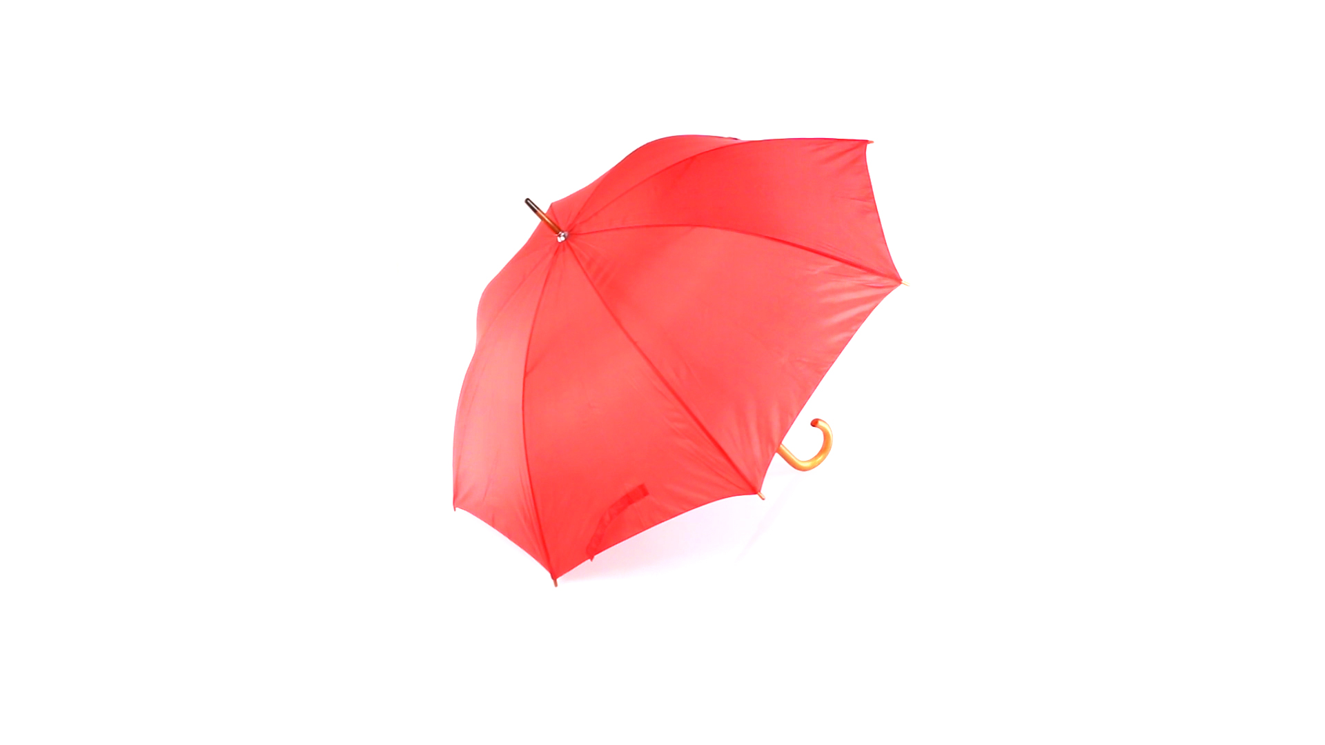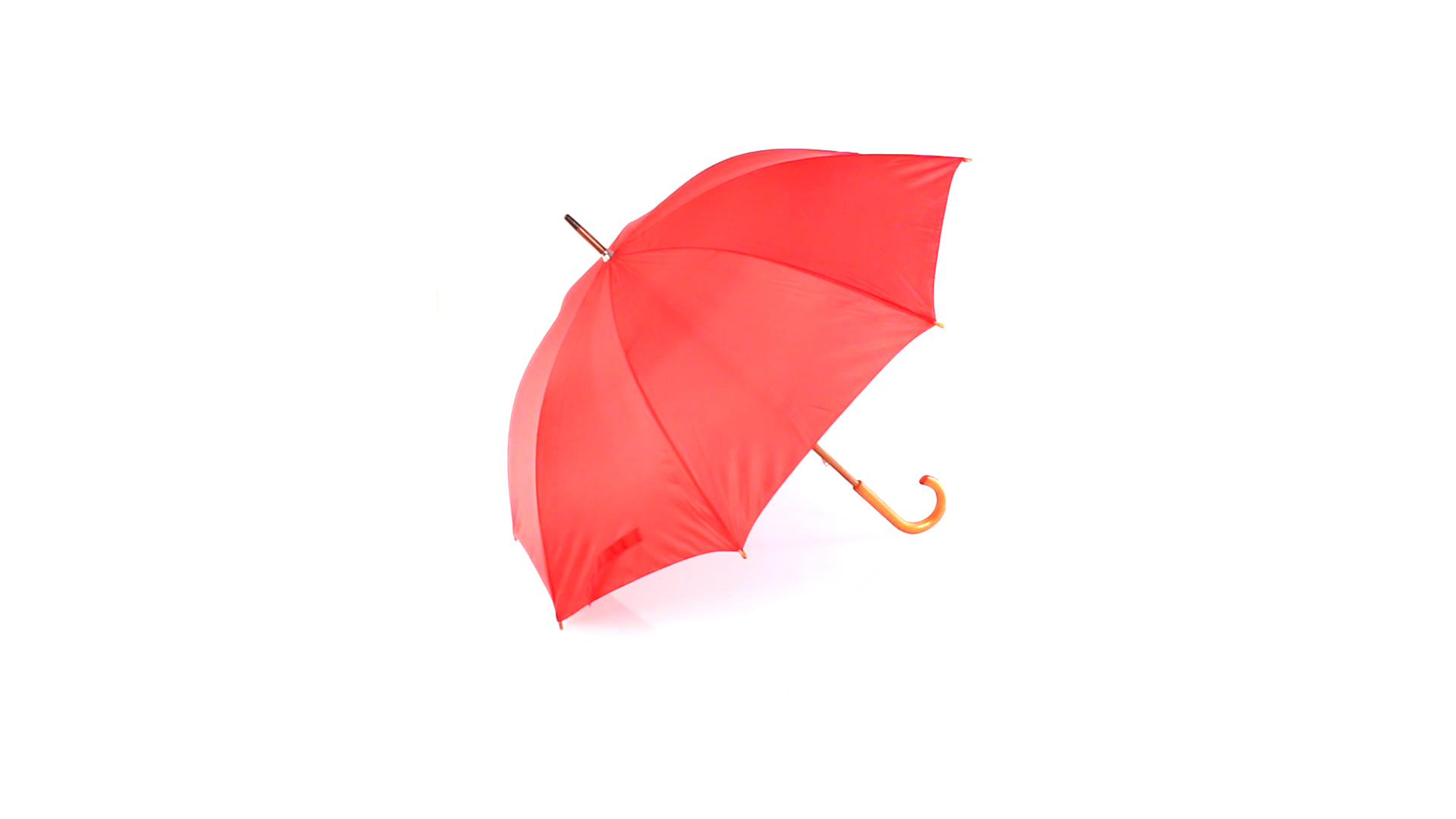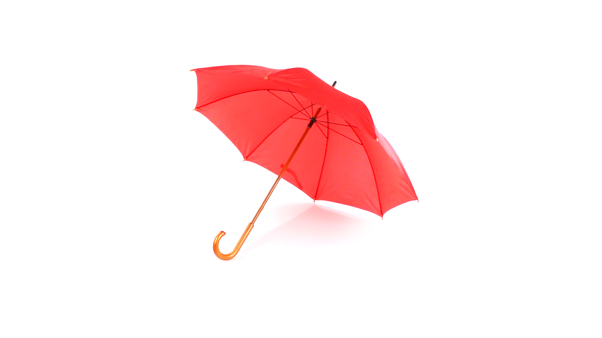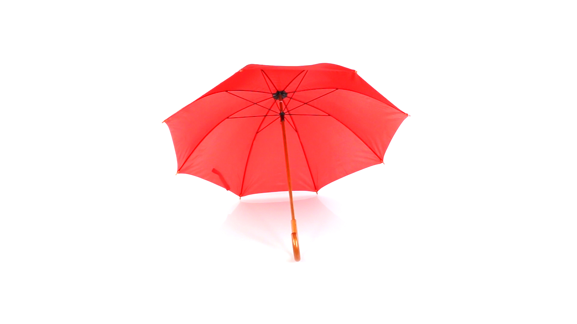 Regenschirm mit 8 Panelen aus Polyester. 105 cm Durchmesser, mit manueller Öffnung und schwarzen Metallstäben, Klettverschluss und geschmeidigem Holzgriff in Naturfarbe, in einer breiten Palette von leuchtenden Farben erhältlich.