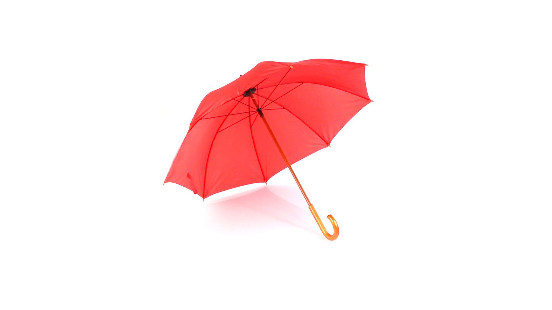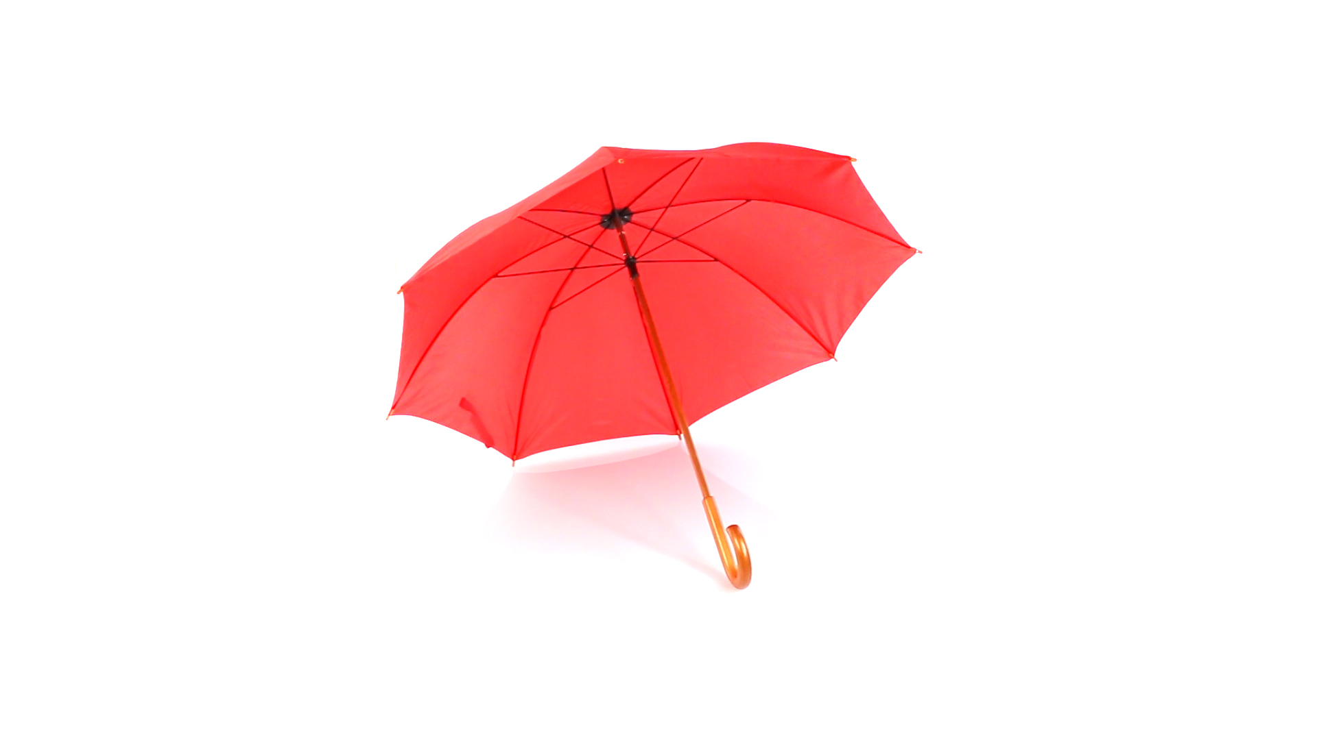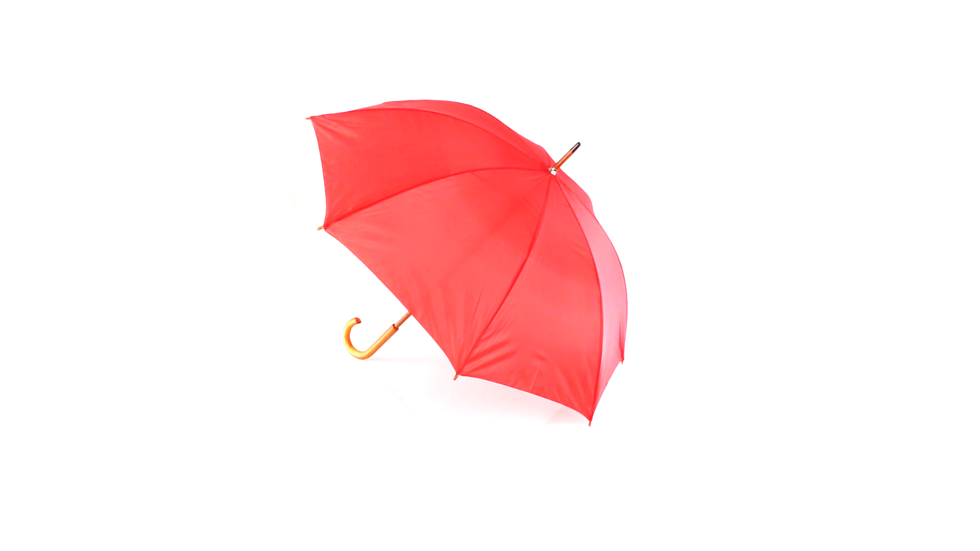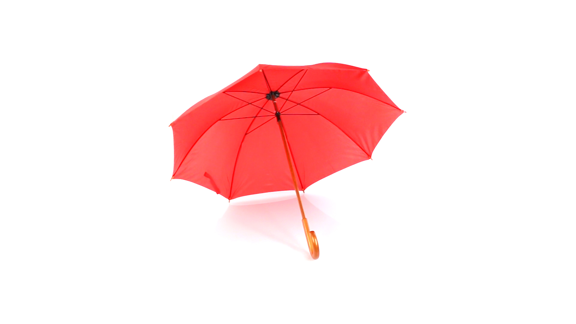 Regenschirm mit 8 Panelen aus Polyester. 105 cm Durchmesser, mit manueller Öffnung und schwarzen Metallstäben, Klettverschluss und geschmeidigem Holzgriff in Naturfarbe, in einer breiten Palette von leuchtenden Farben erhältlich.