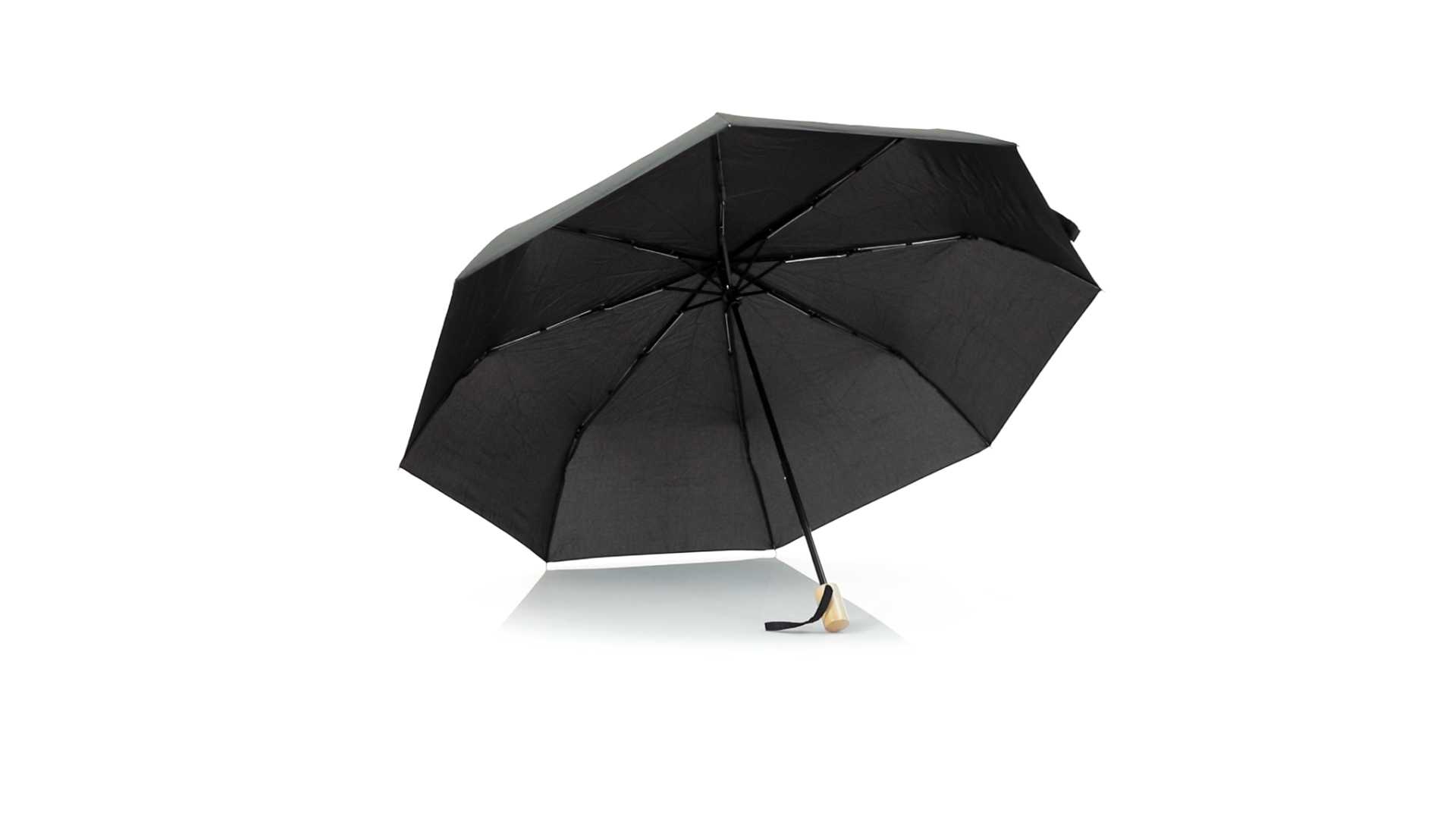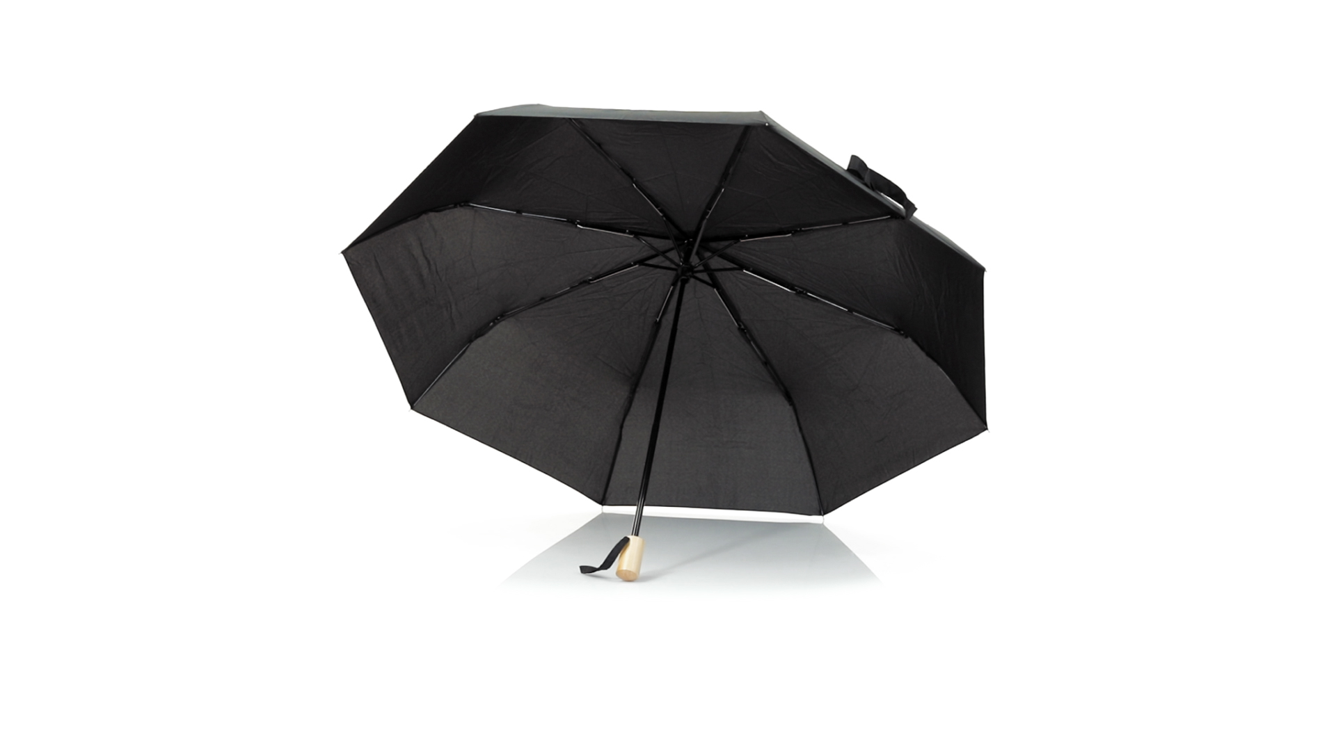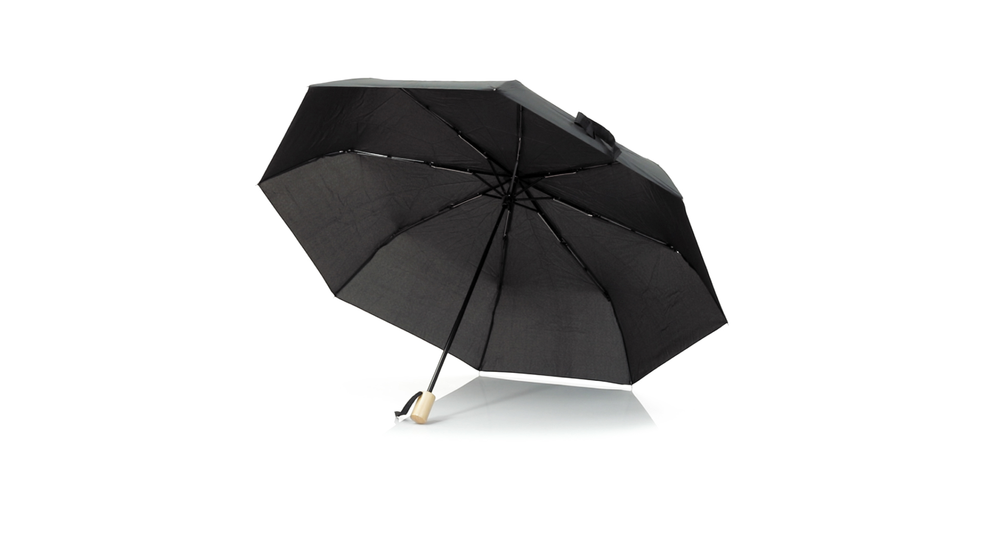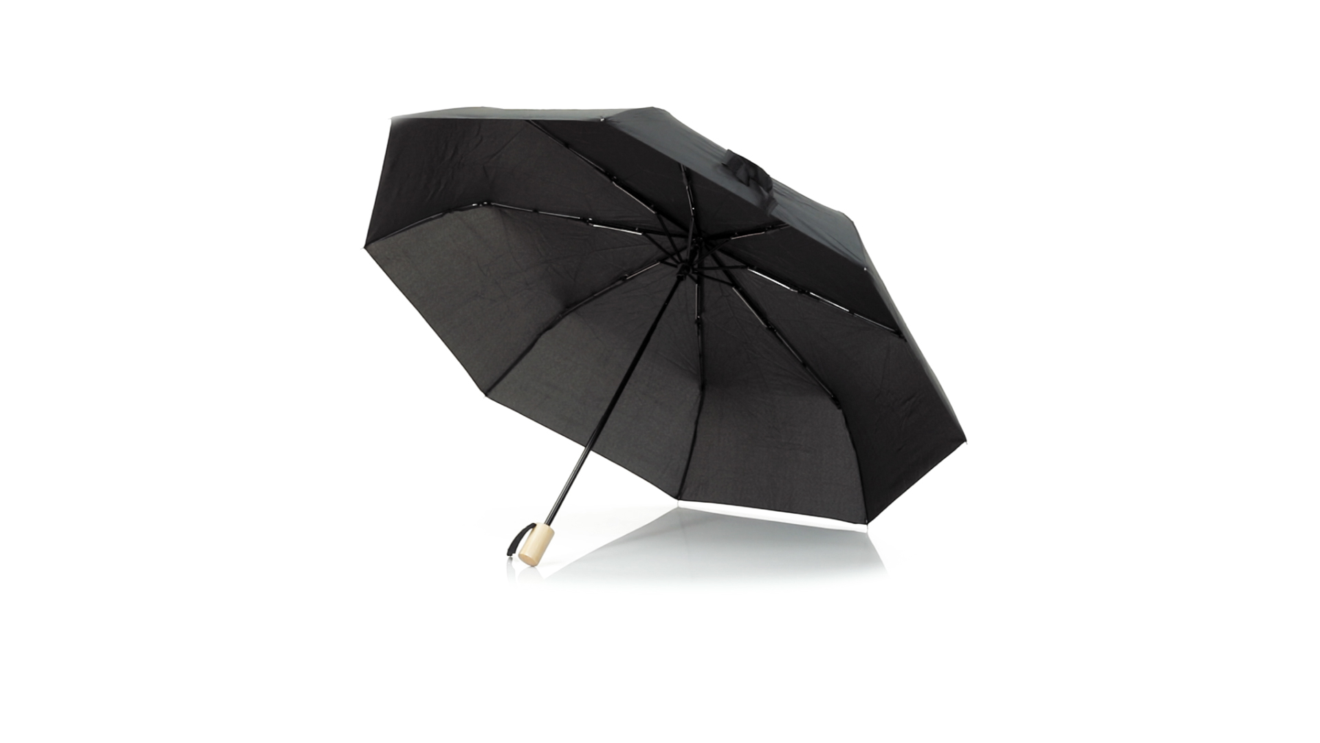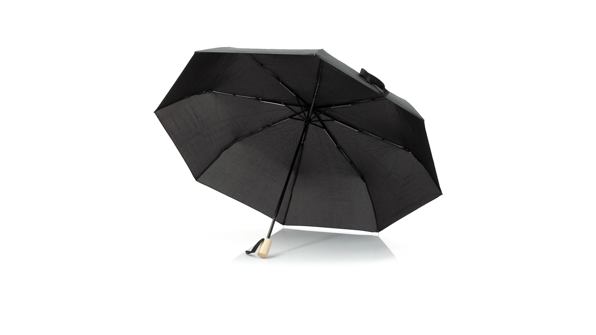 Faltschirm der Nature-Linie mit 95 cm Durchmesser. Aus 190T-Pongee-RPET-Material, das aus recycelten Kunststoffmaterialien gewonnen wird, um die Wiederverwendung von Kunststoffabfällen zu fördern und zur Nachhaltigkeit der Erde beizutragen. Manuelle Öffnung, mit winddichtem Mechanismus und Metallrippen. Holzgriff, mit Tragegurten und Tasche in passenden Farben. RPET-Markenetikett.