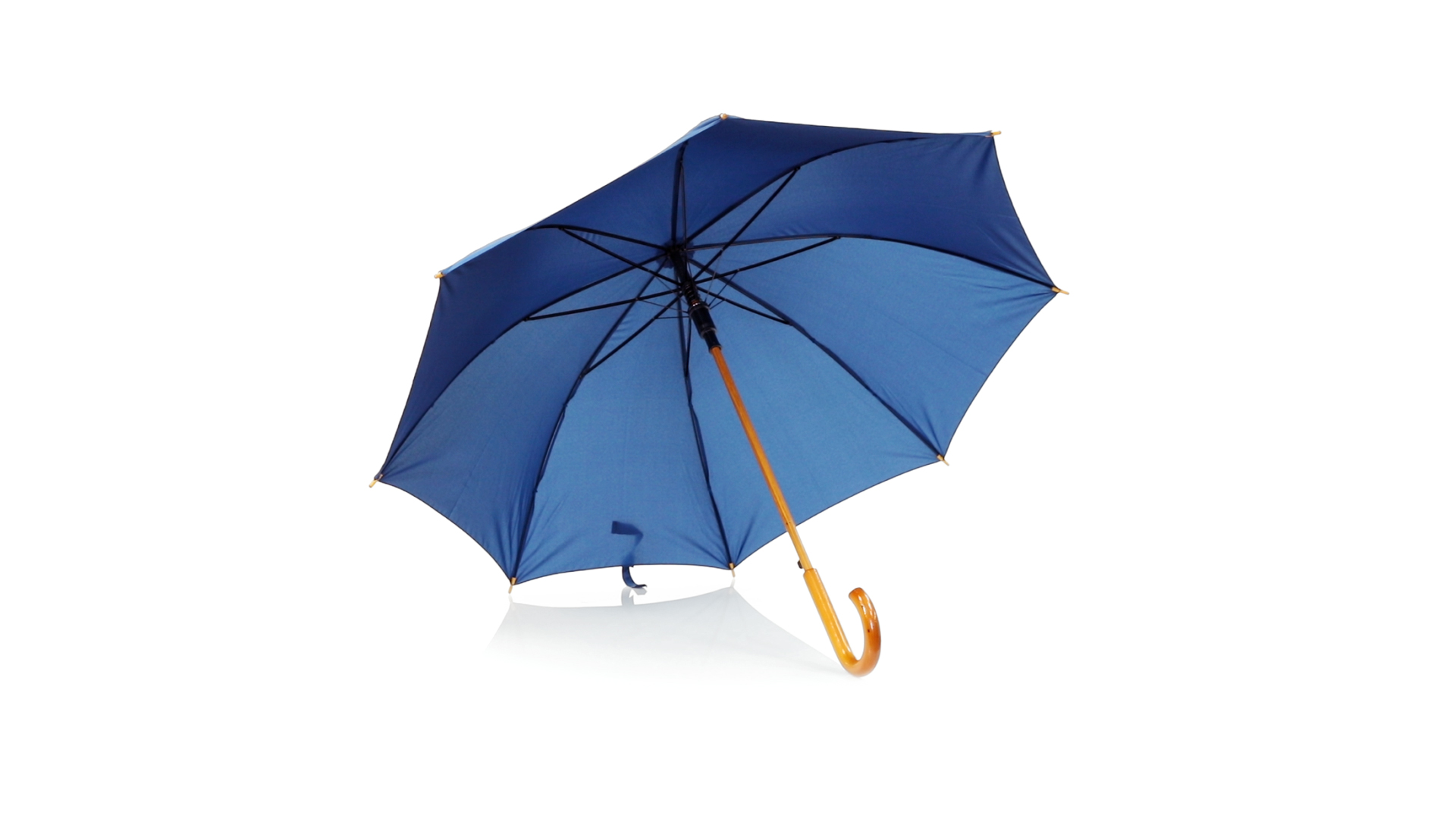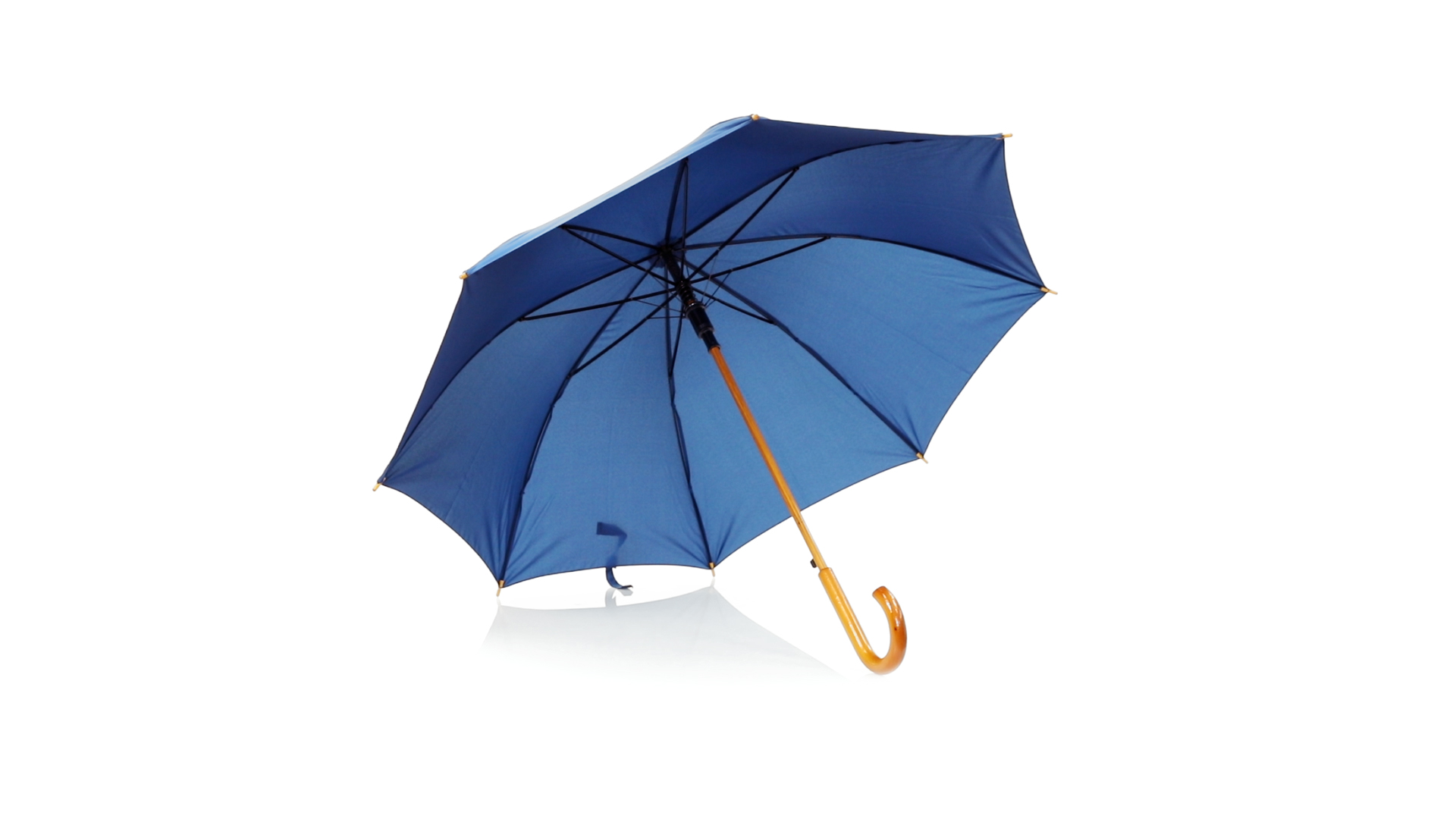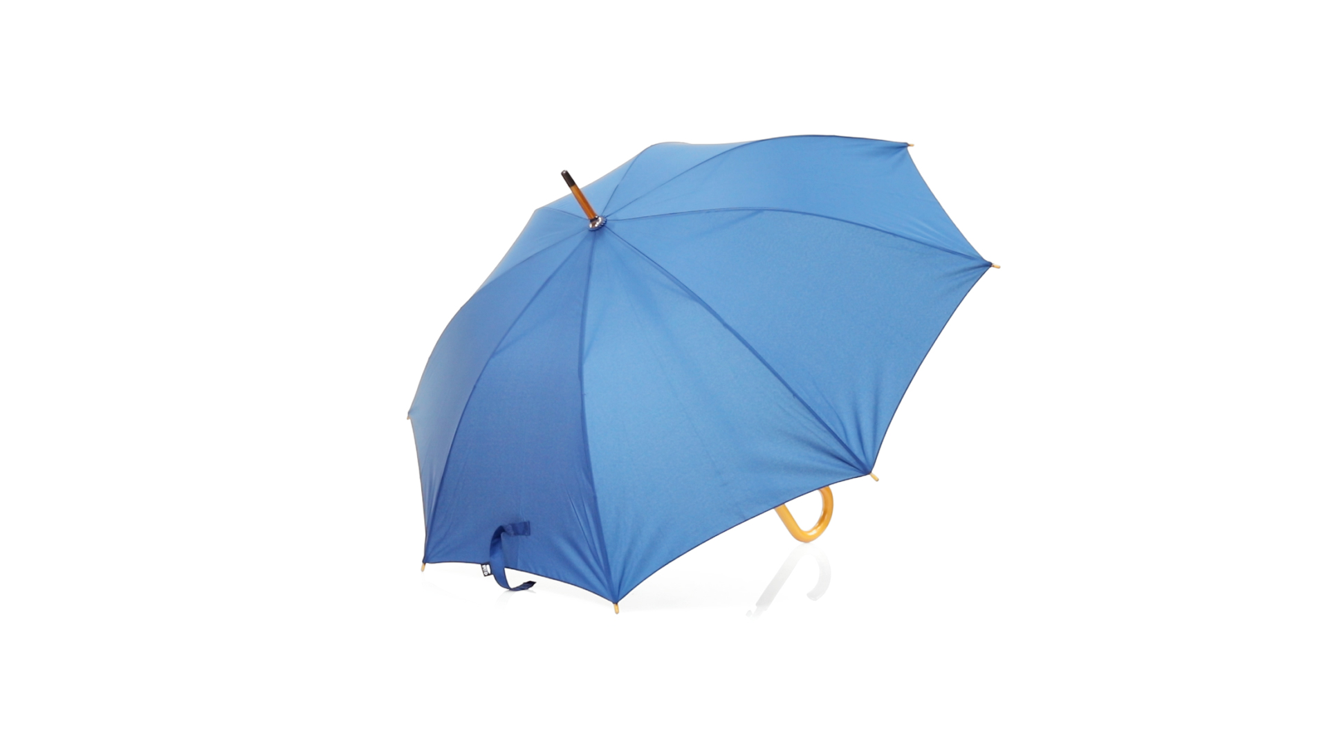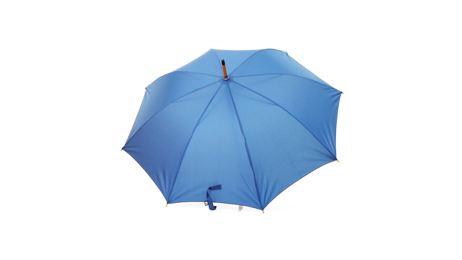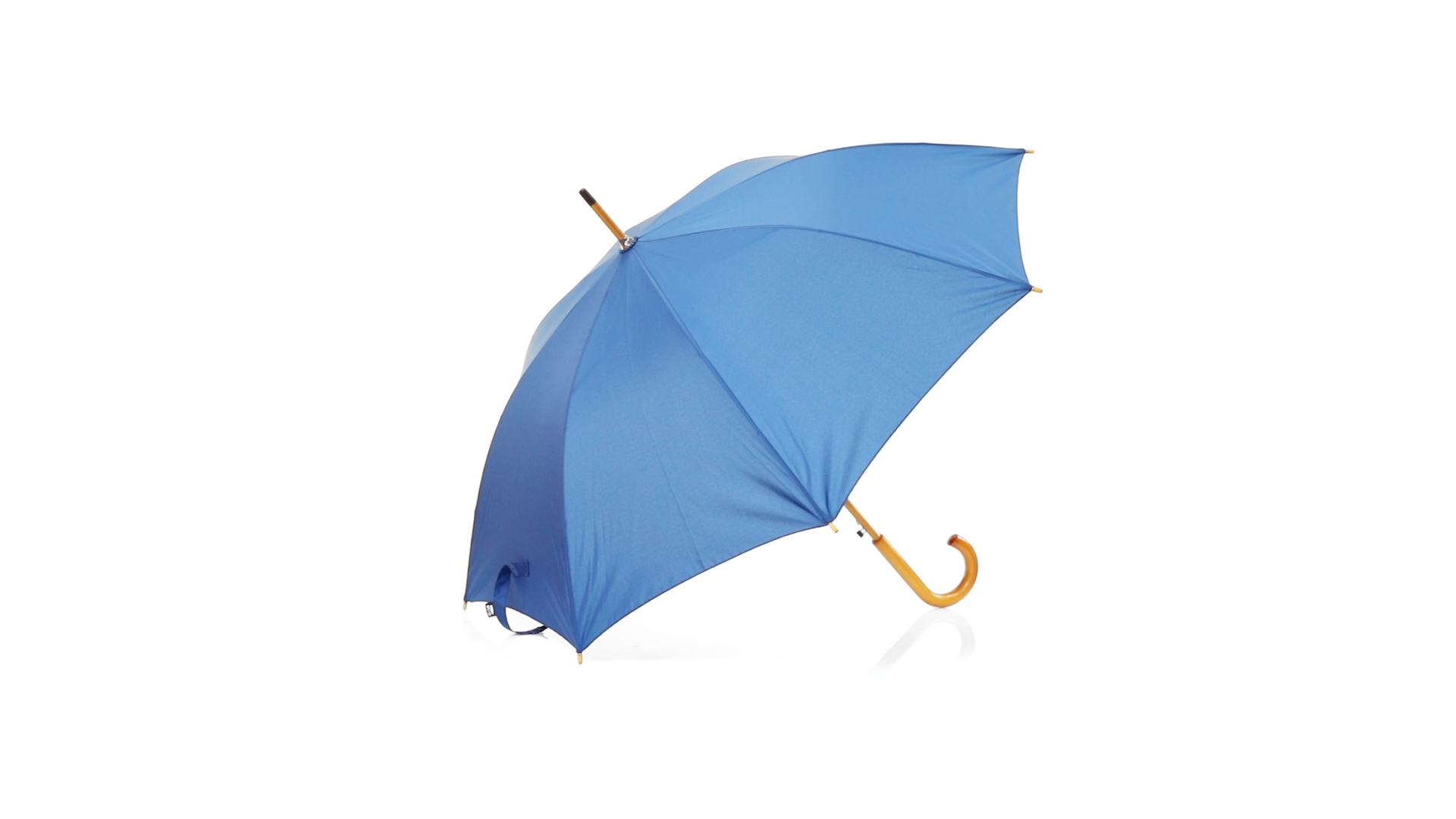 Schirm mit einem Durchmesser von 105 cm aus Naturfaser. Aus 190T RPET Pongee Material, aus recyceltem Kunststoff hergestellt, zur Wiederverwendung von Kunststoffabfall zu fördern und die Nachhaltigkeit des Planeten zu helfen. Automatische Öffnung und Metallstangen. Griff und Schaft aus Holz, mit unverwechselbarem RPET-Label.