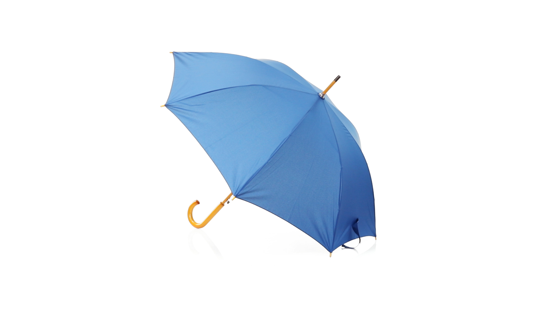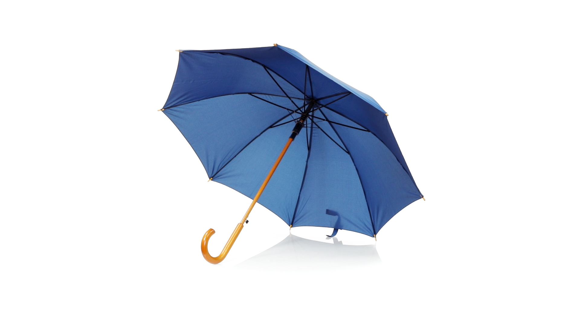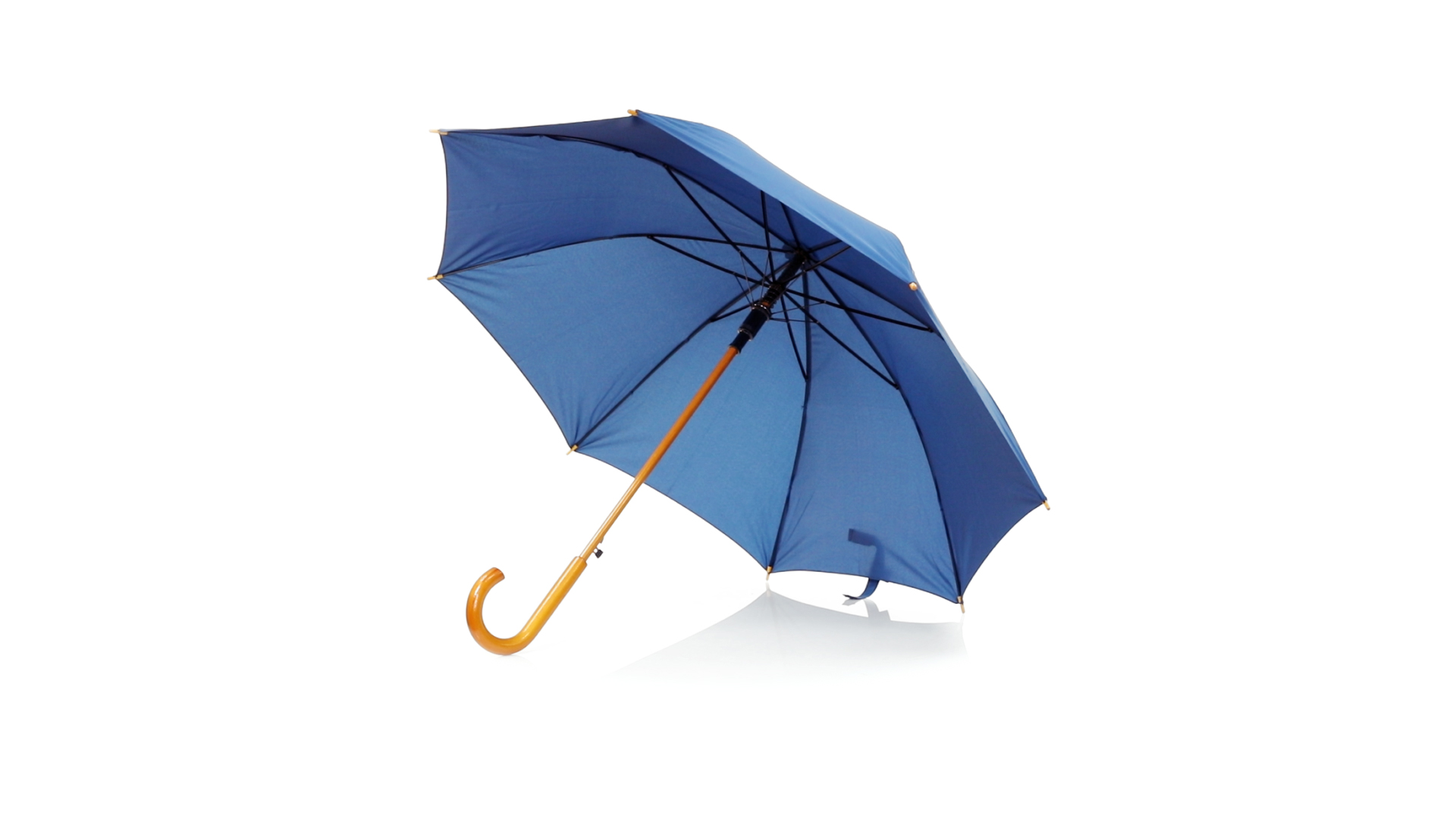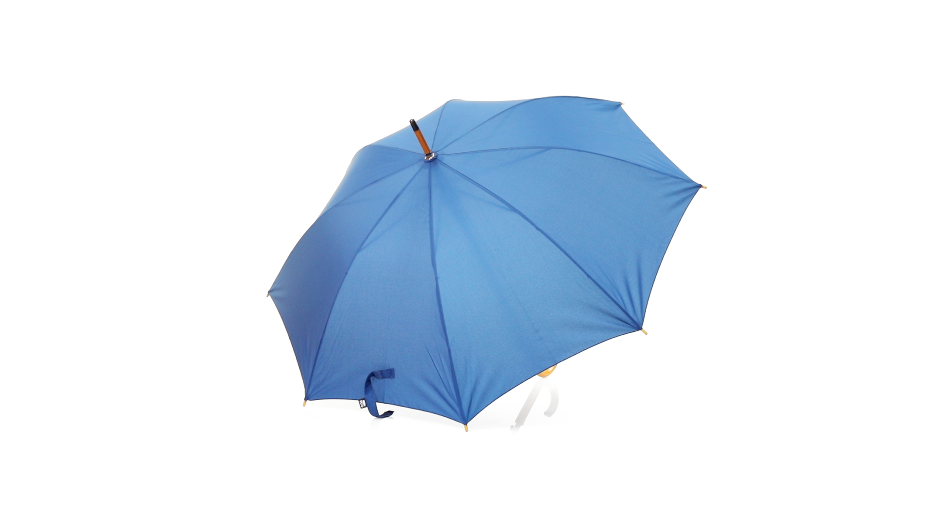Schirm mit einem Durchmesser von 105 cm aus Naturfaser. Aus 190T RPET Pongee Material, aus recyceltem Kunststoff hergestellt, zur Wiederverwendung von Kunststoffabfall zu fördern und die Nachhaltigkeit des Planeten zu helfen. Automatische Öffnung und Metallstangen. Griff und Schaft aus Holz, mit unverwechselbarem RPET-Label.