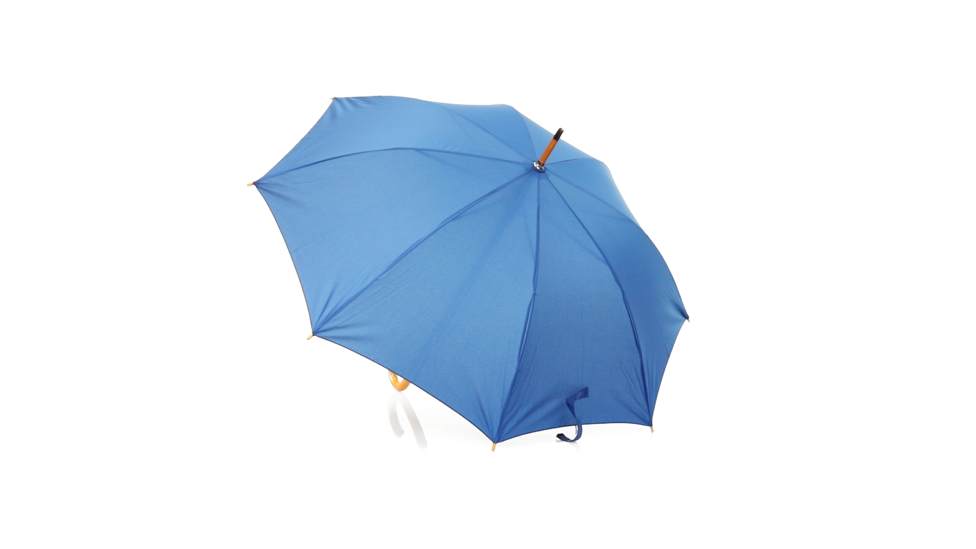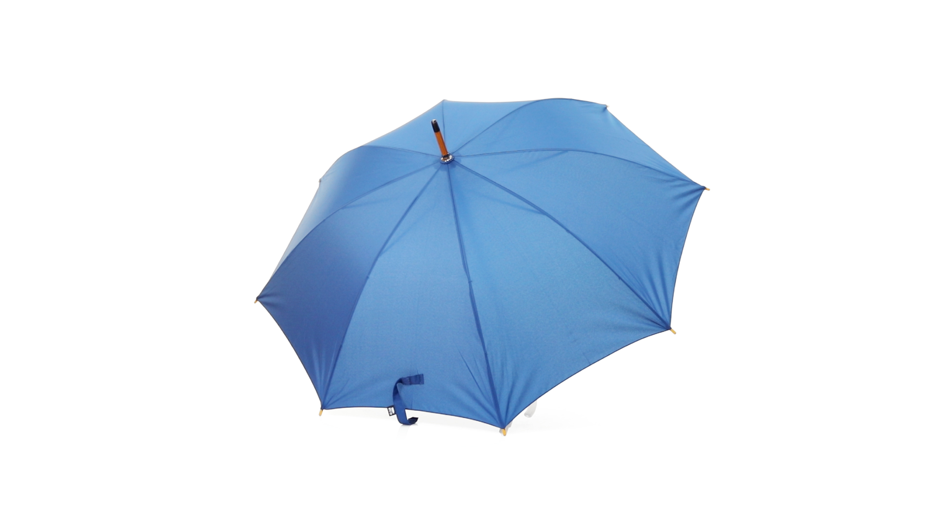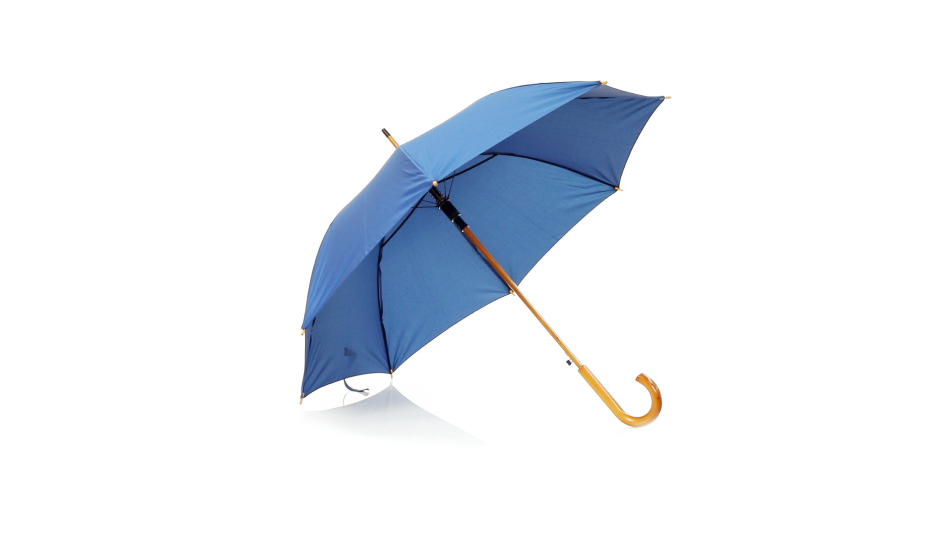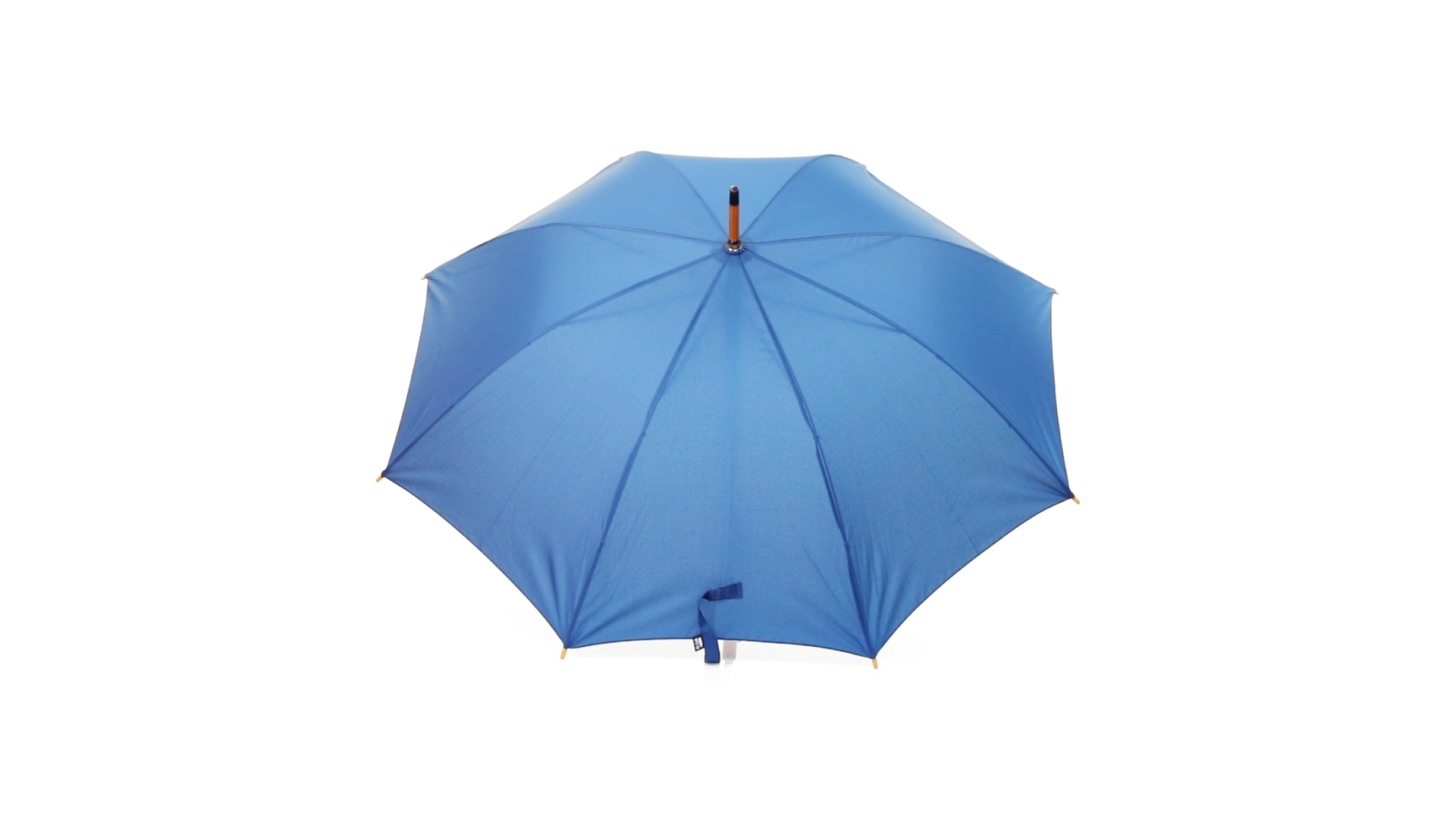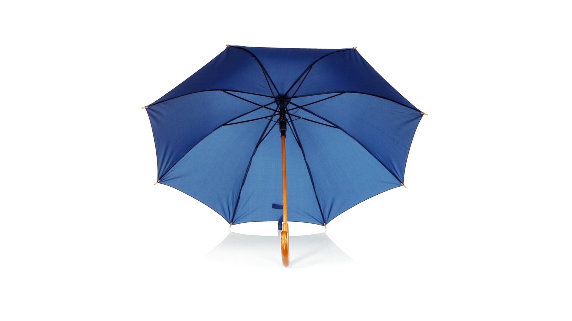 Schirm mit einem Durchmesser von 105 cm aus Naturfaser. Aus 190T RPET Pongee Material, aus recyceltem Kunststoff hergestellt, zur Wiederverwendung von Kunststoffabfall zu fördern und die Nachhaltigkeit des Planeten zu helfen. Automatische Öffnung und Metallstangen. Griff und Schaft aus Holz, mit unverwechselbarem RPET-Label.