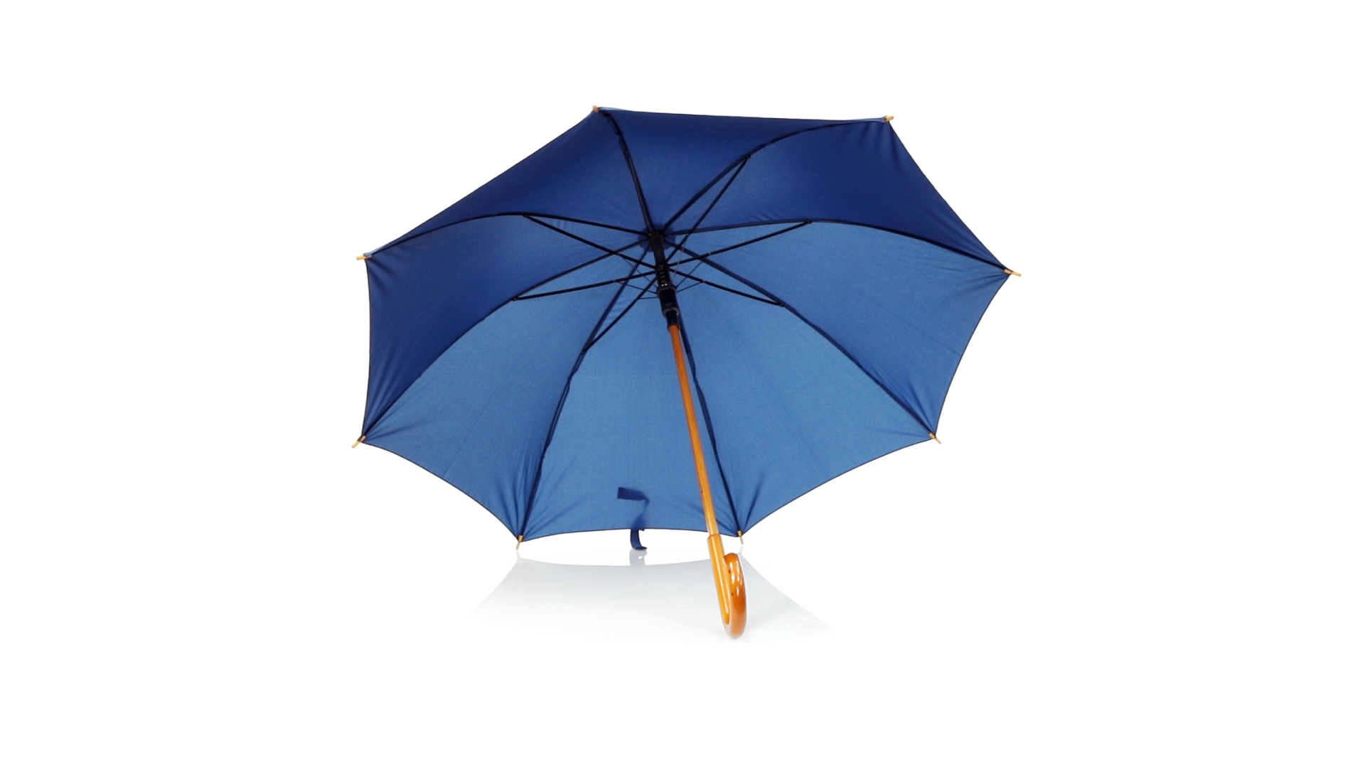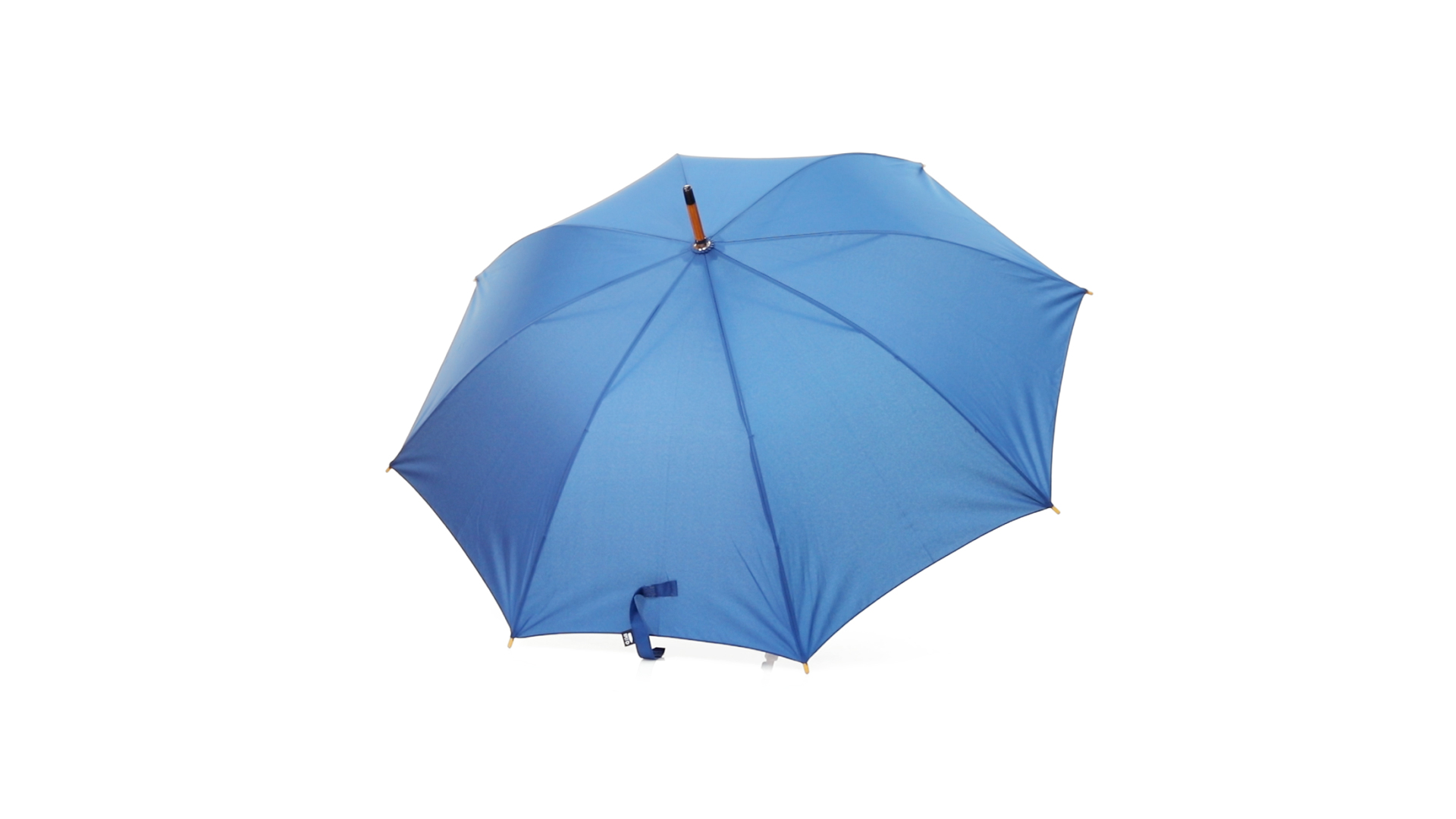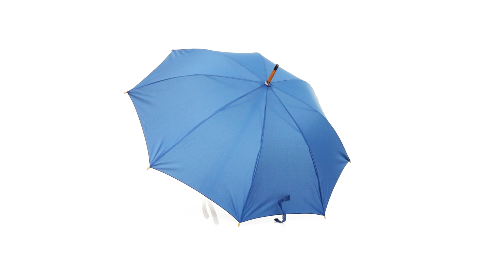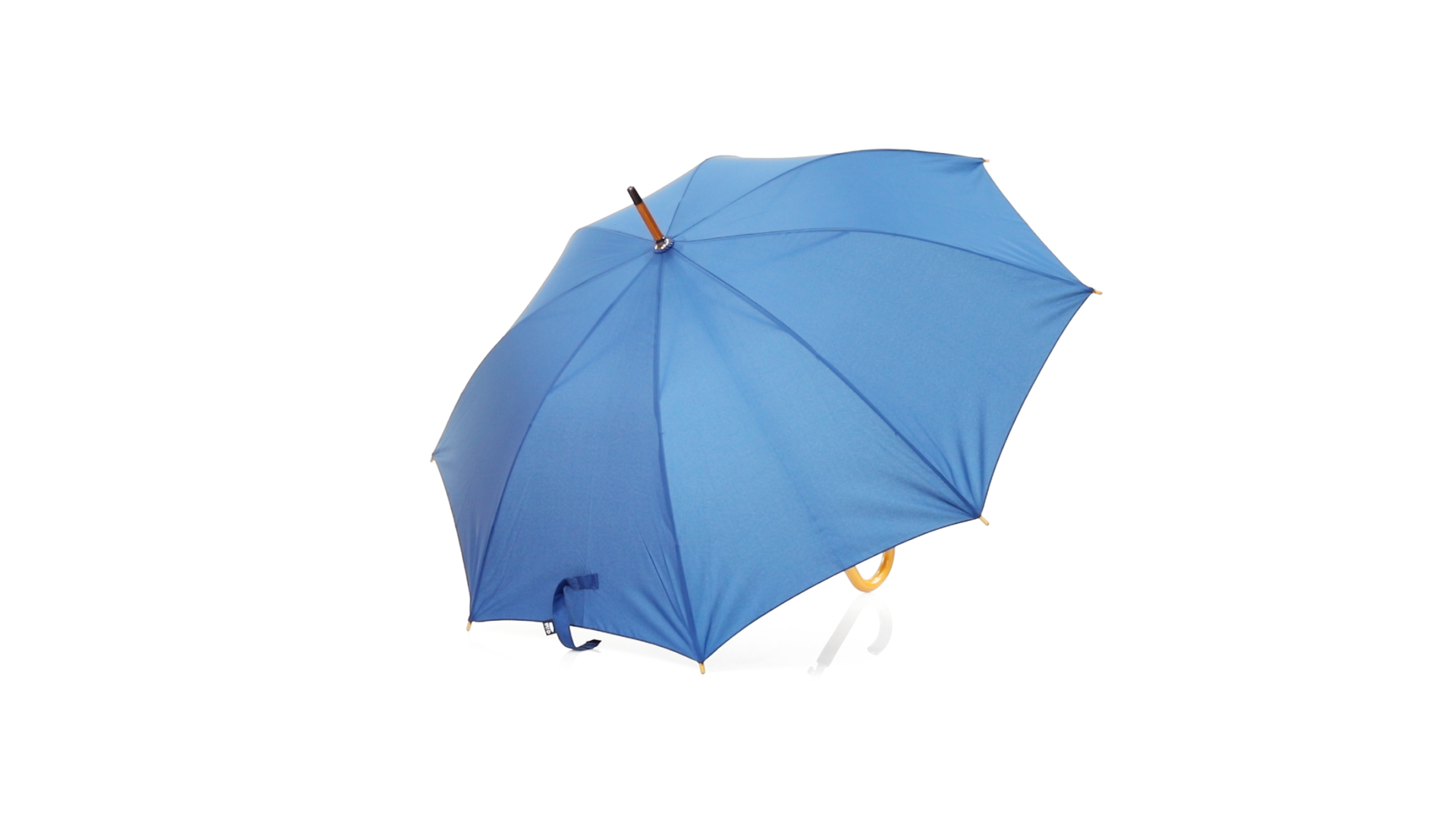 Schirm mit einem Durchmesser von 105 cm aus Naturfaser. Aus 190T RPET Pongee Material, aus recyceltem Kunststoff hergestellt, zur Wiederverwendung von Kunststoffabfall zu fördern und die Nachhaltigkeit des Planeten zu helfen. Automatische Öffnung und Metallstangen. Griff und Schaft aus Holz, mit unverwechselbarem RPET-Label.
