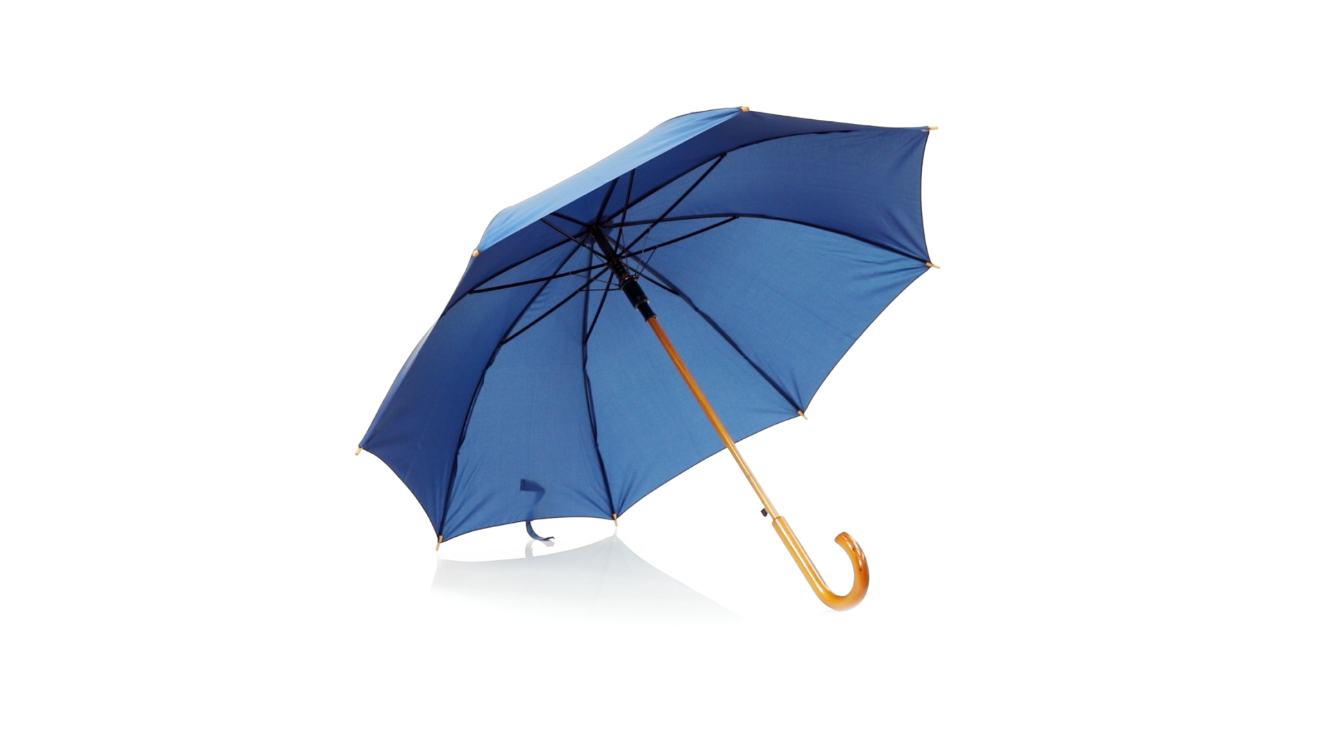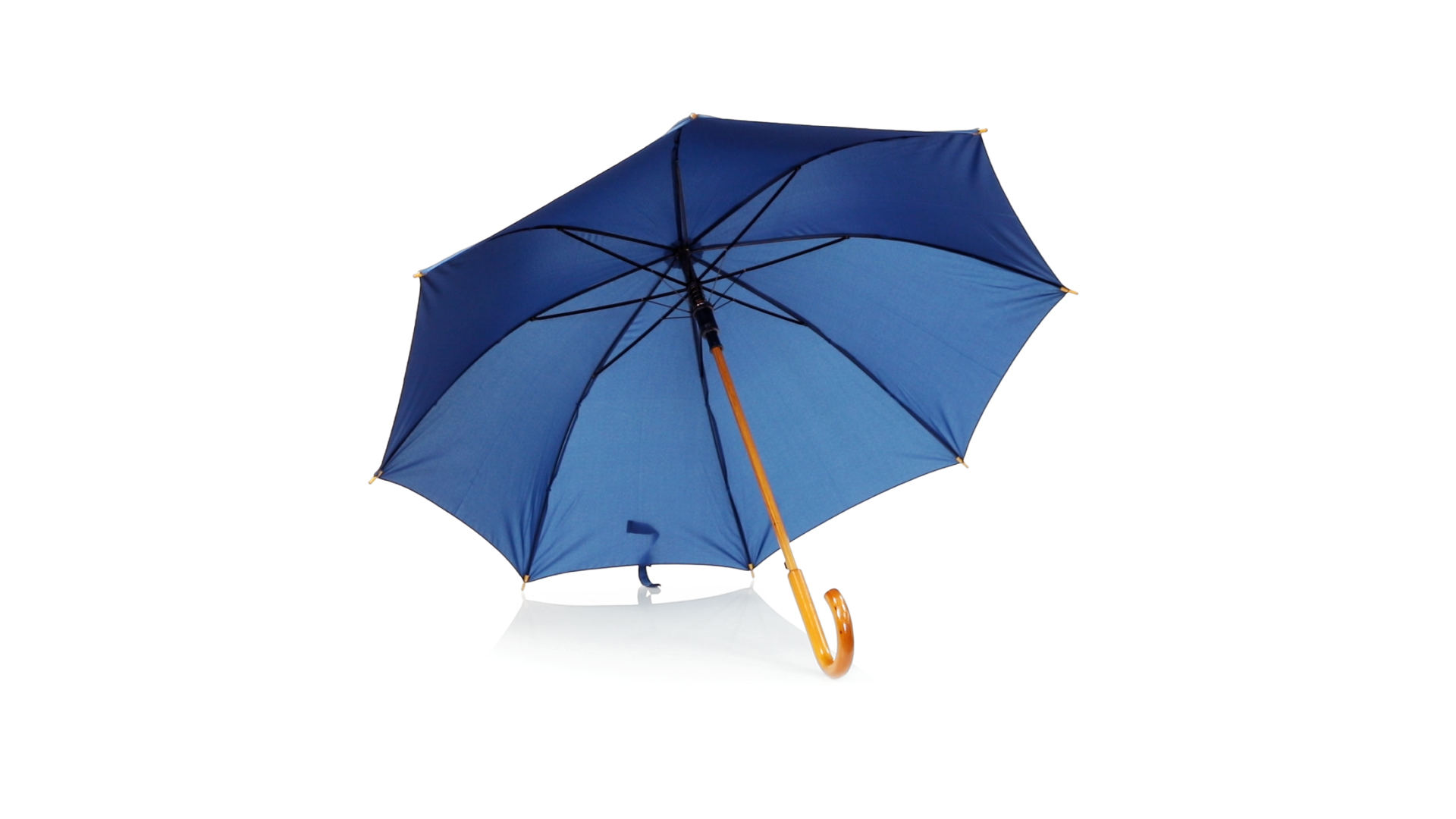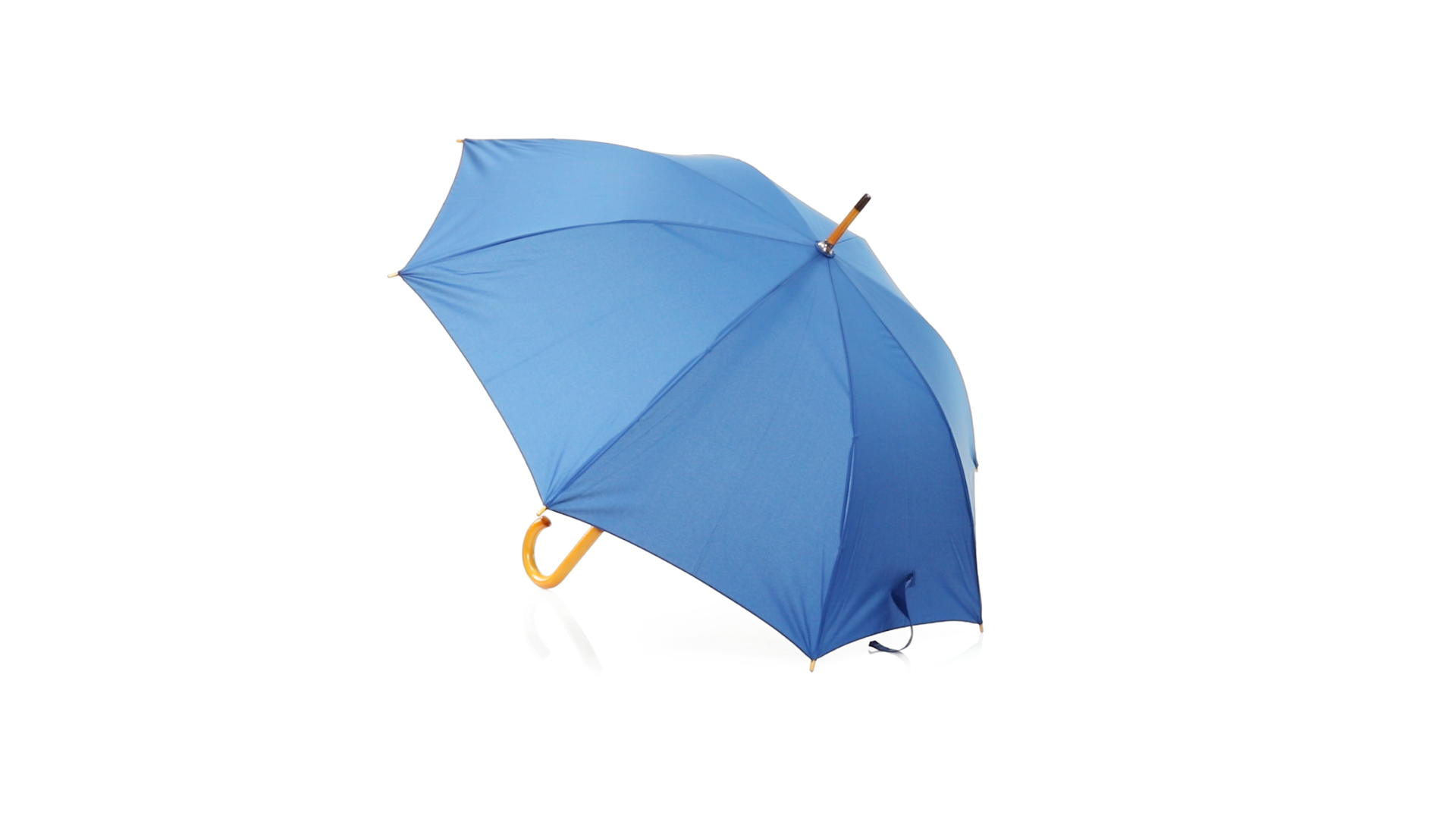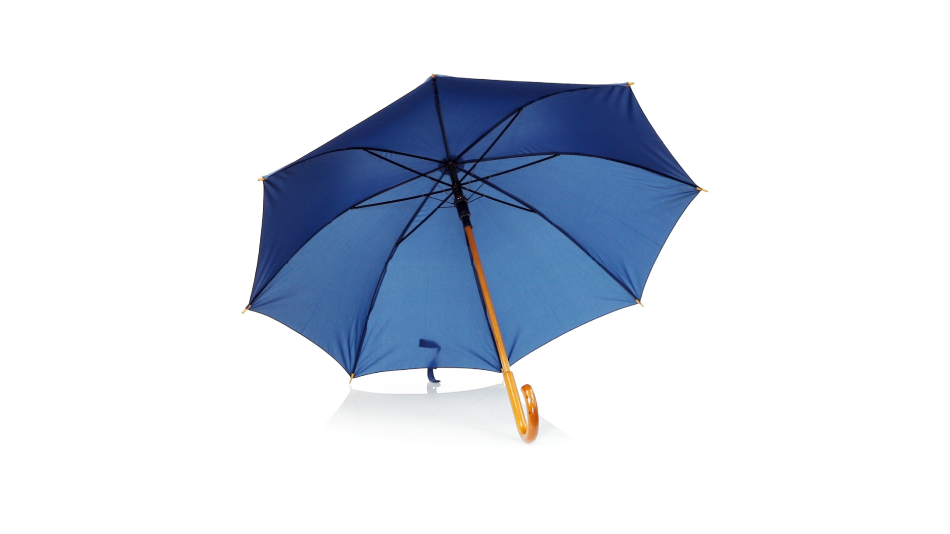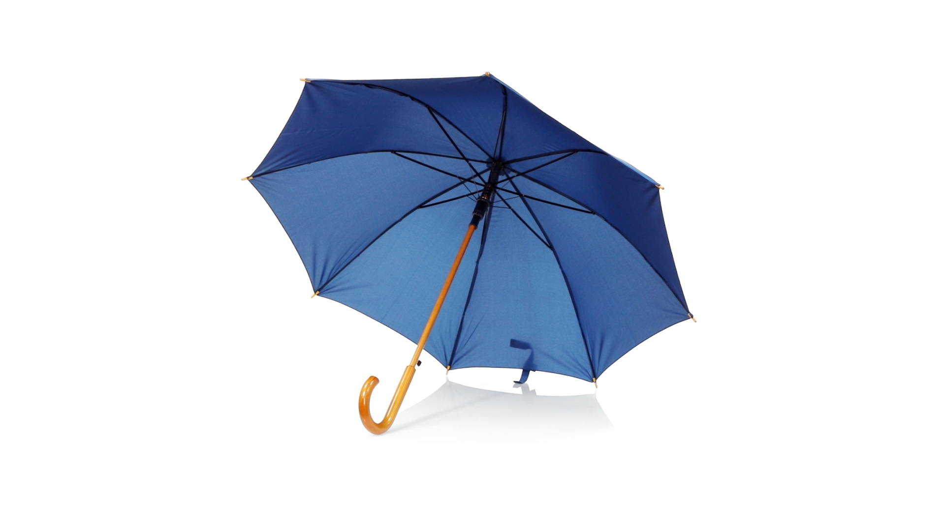 Schirm mit einem Durchmesser von 105 cm aus Naturfaser. Aus 190T RPET Pongee Material, aus recyceltem Kunststoff hergestellt, zur Wiederverwendung von Kunststoffabfall zu fördern und die Nachhaltigkeit des Planeten zu helfen. Automatische Öffnung und Metallstangen. Griff und Schaft aus Holz, mit unverwechselbarem RPET-Label.