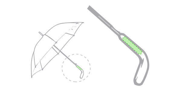 Origineller winddichter Regenschirm mit 8 Panelen aus robustem Polyester in verschiedenen glänzenden Farben. Mit speziellem Griff mit Getränkehalter, sowie Durchmesser von 105 cm und automatischer Öffnung. Zudem mit Metallstangen in Schwarz und Klettverschluss.