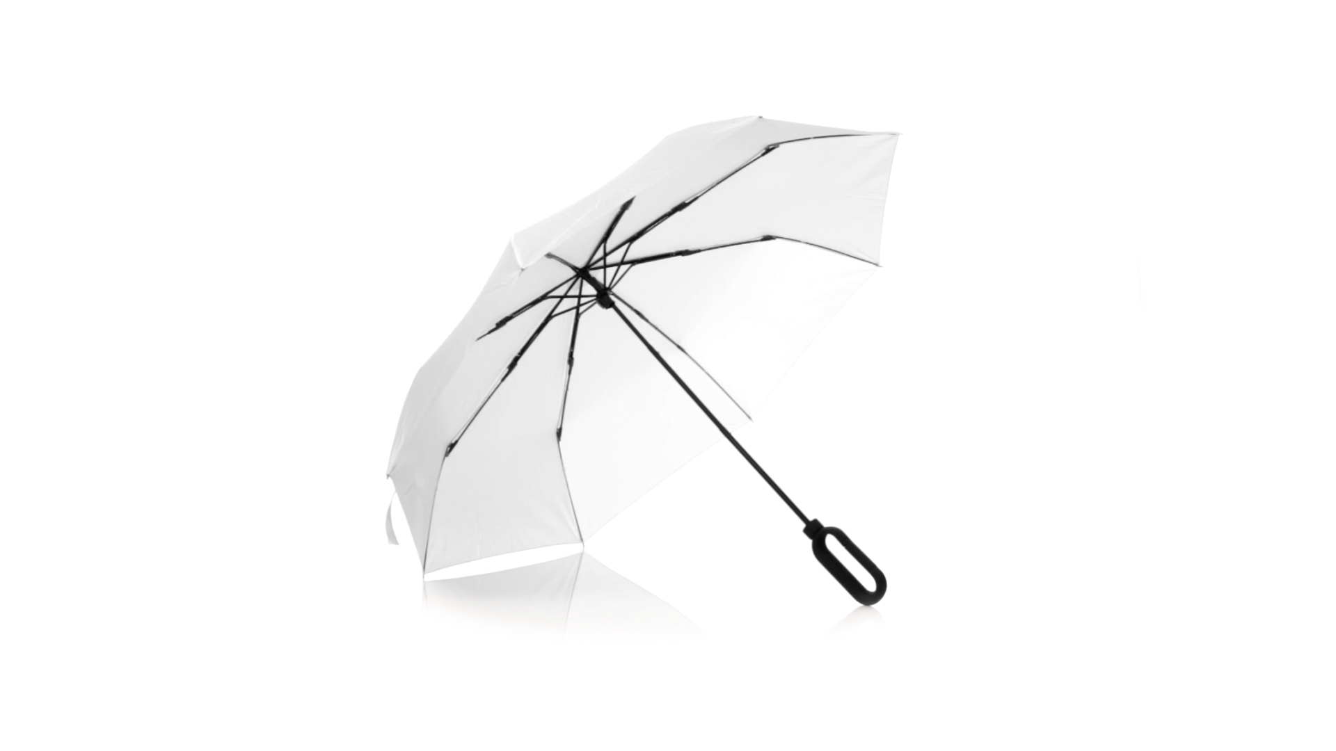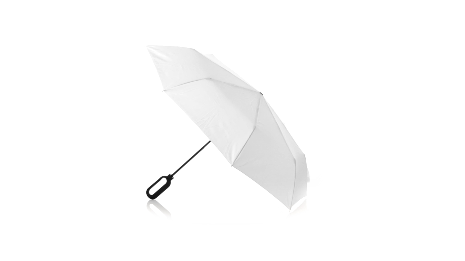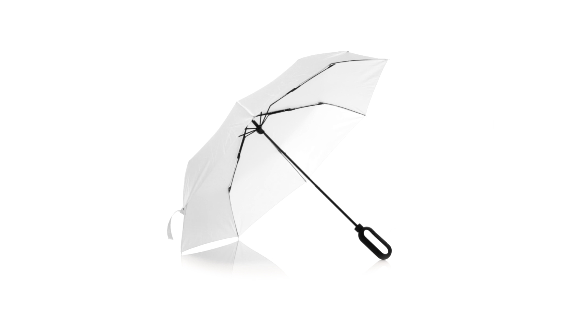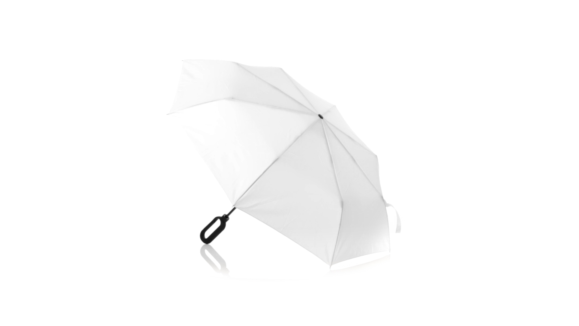 Winddichter Taschenschirm mit 8 Panelen aus robustem Pongee-Material in einer Vielzahl von Farben. Mit einem Durchmesser von 100 cm, manueller Öffnung und Fiberglasgestänge in Schwarz sowie Klettverschluss und ergonomischem Griff mit integriertem Karabiner. Präsentiert in einer individuellen Hülle in passender Farbe.
