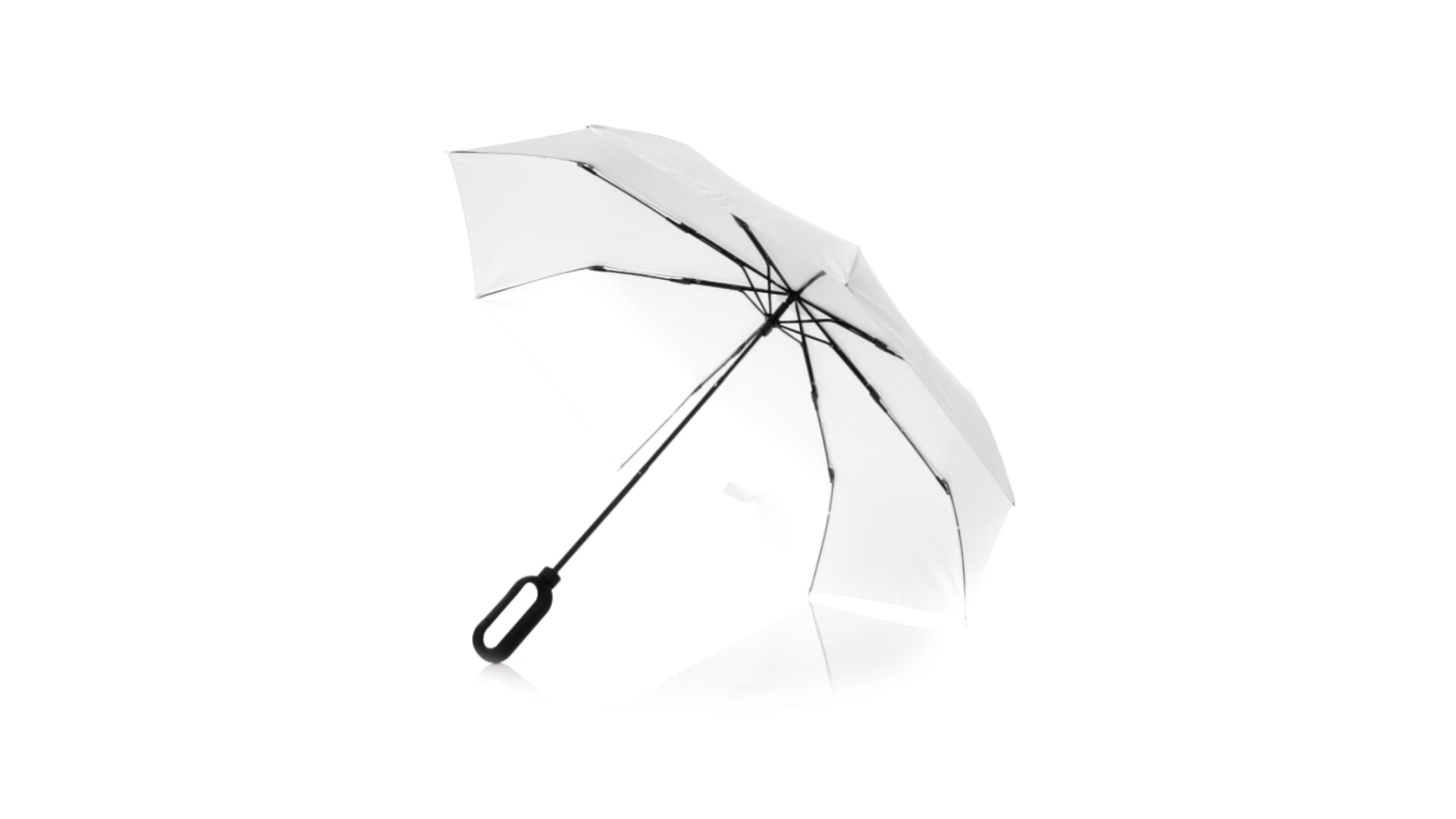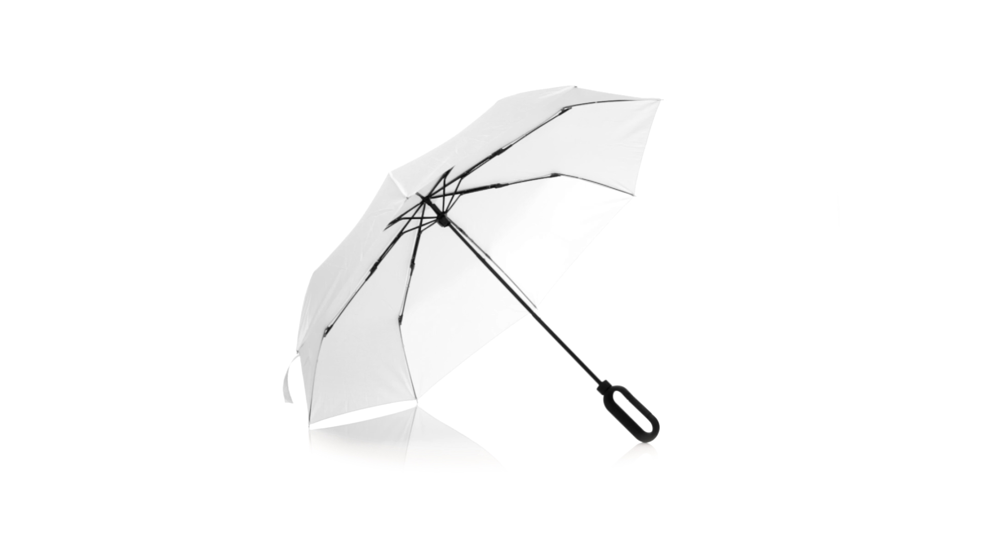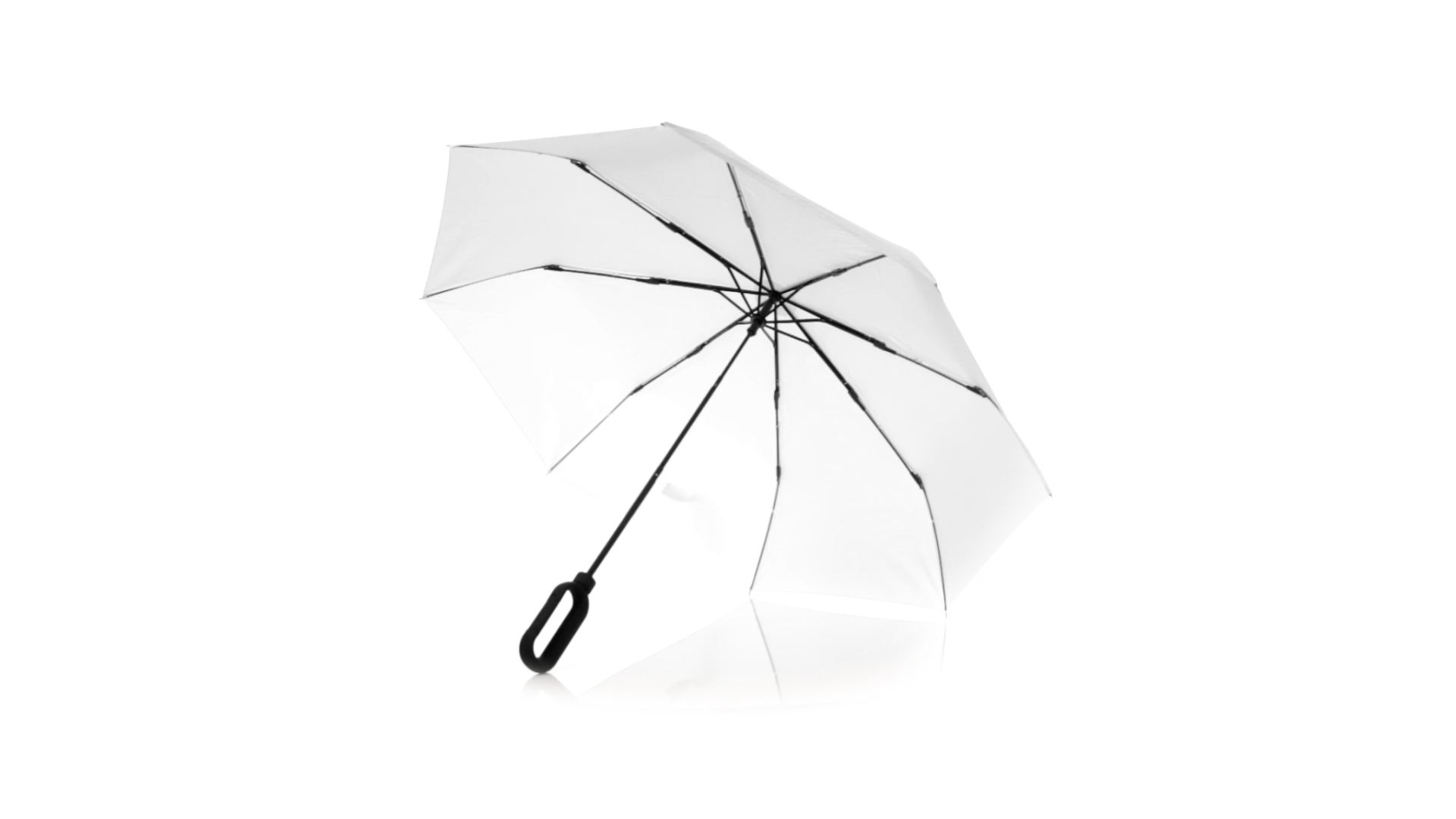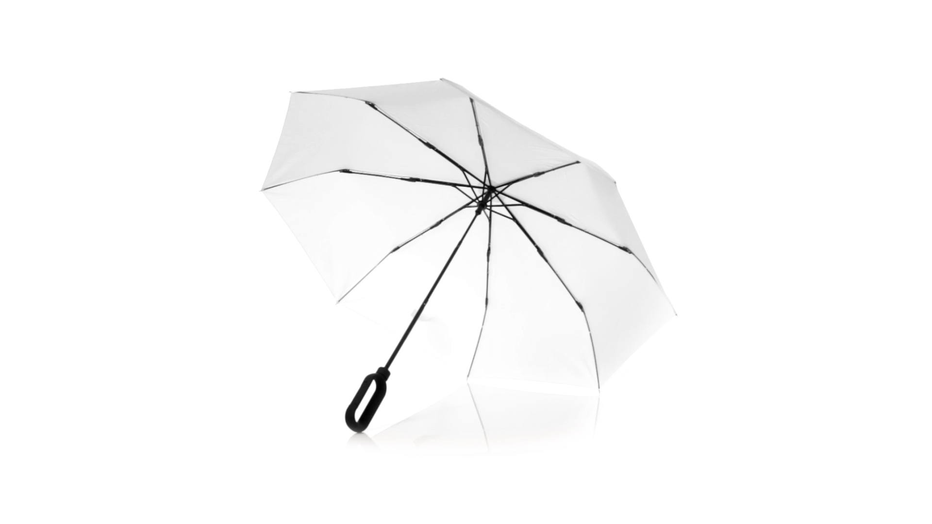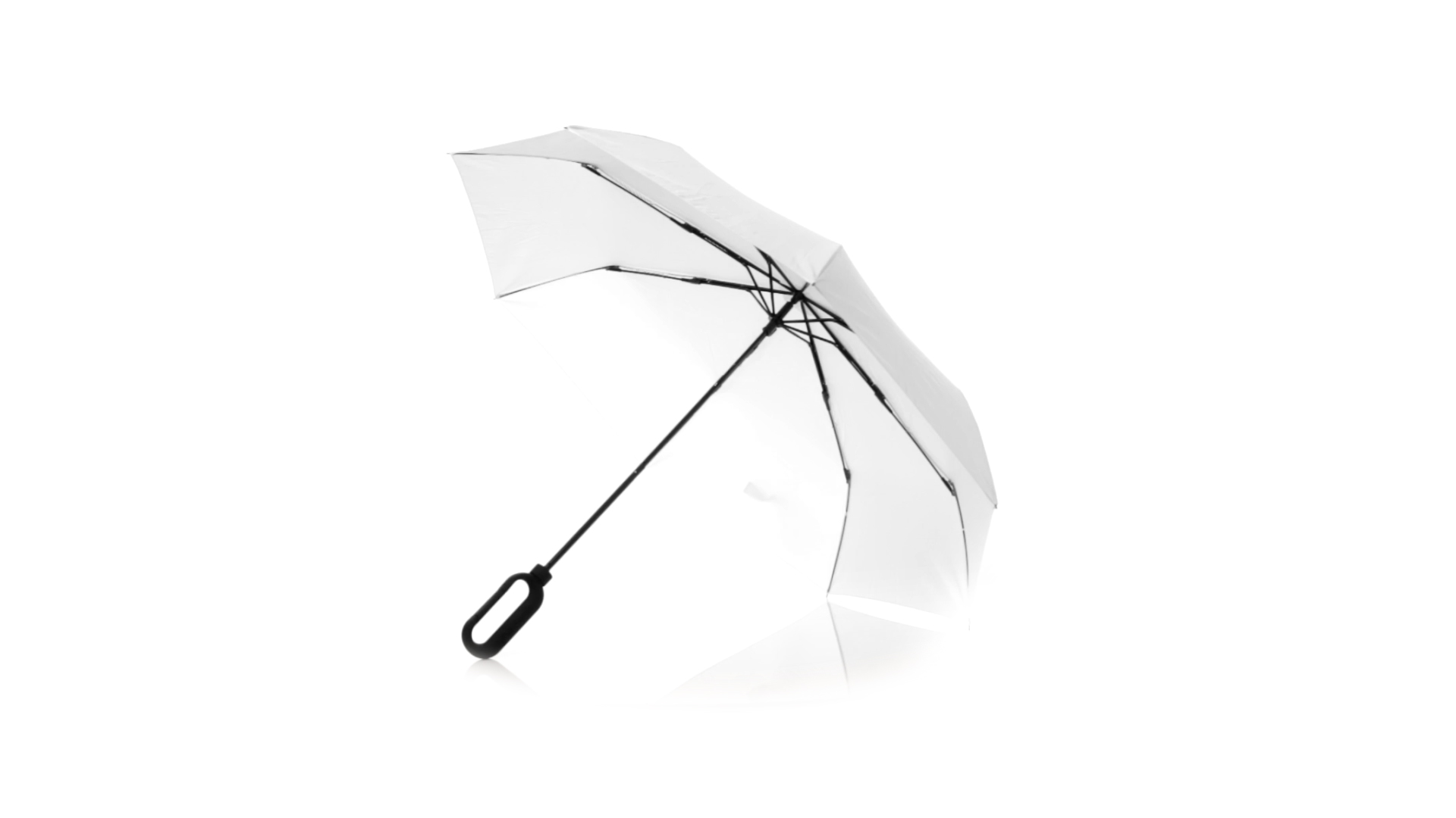 Winddichter Taschenschirm mit 8 Panelen aus robustem Pongee-Material in einer Vielzahl von Farben. Mit einem Durchmesser von 100 cm, manueller Öffnung und Fiberglasgestänge in Schwarz sowie Klettverschluss und ergonomischem Griff mit integriertem Karabiner. Präsentiert in einer individuellen Hülle in passender Farbe.