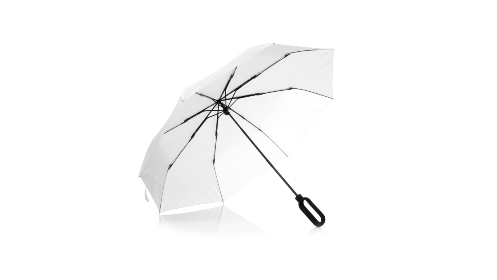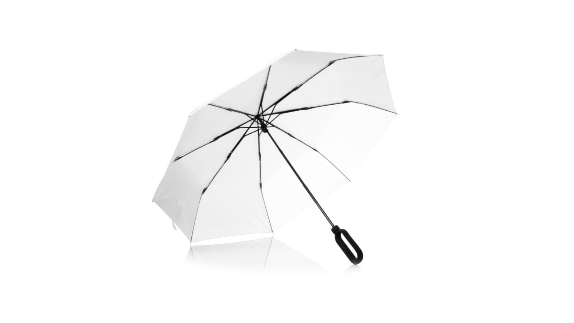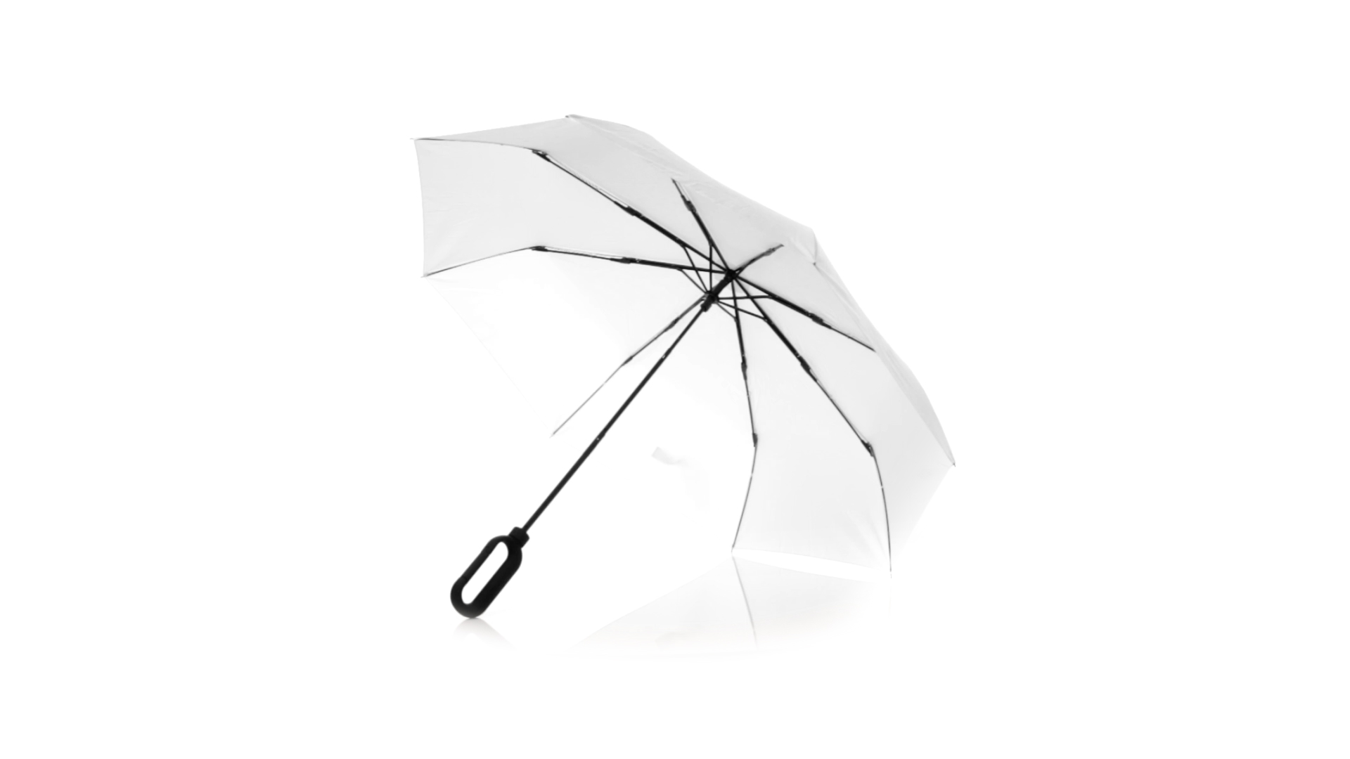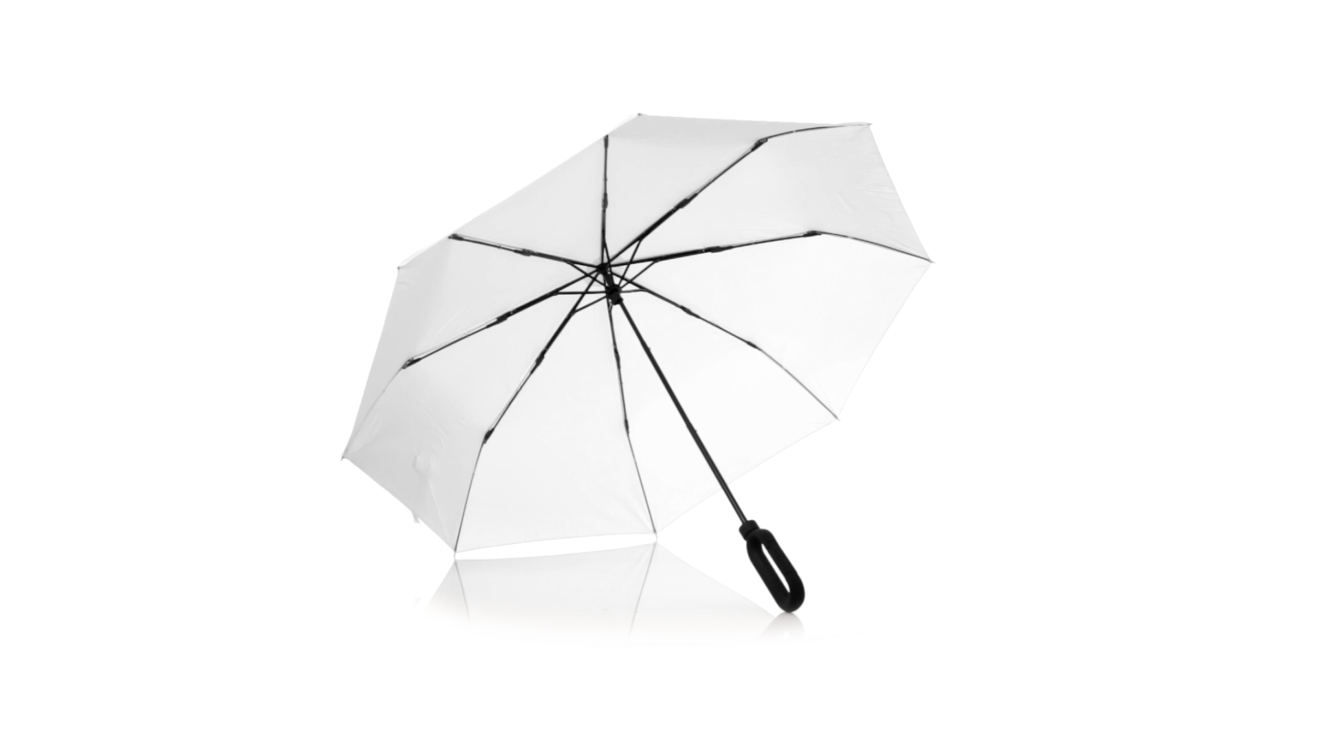 Winddichter Taschenschirm mit 8 Panelen aus robustem Pongee-Material in einer Vielzahl von Farben. Mit einem Durchmesser von 100 cm, manueller Öffnung und Fiberglasgestänge in Schwarz sowie Klettverschluss und ergonomischem Griff mit integriertem Karabiner. Präsentiert in einer individuellen Hülle in passender Farbe.