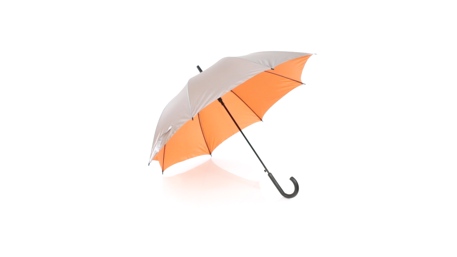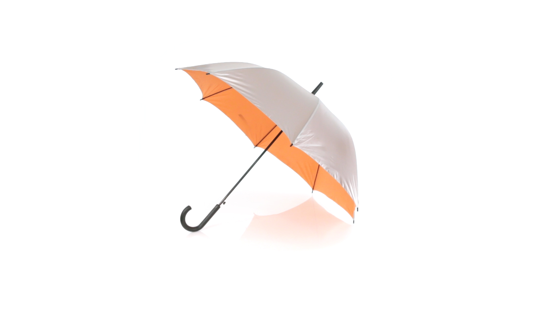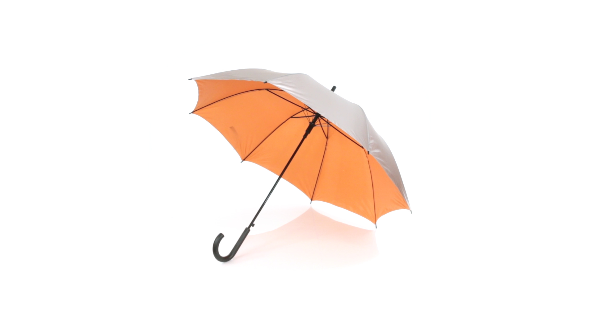 Regenschirm mit 8 Panelen aus robustem Polyester - aussen in Silber und innen in verschiedenen kräftigen Farben. Mit einem Durchmesser von 102 cm, automatischer Öffnung, Metallstangen in Schwarz sowie Klettverschluss und weichem Griff in Schwarz.