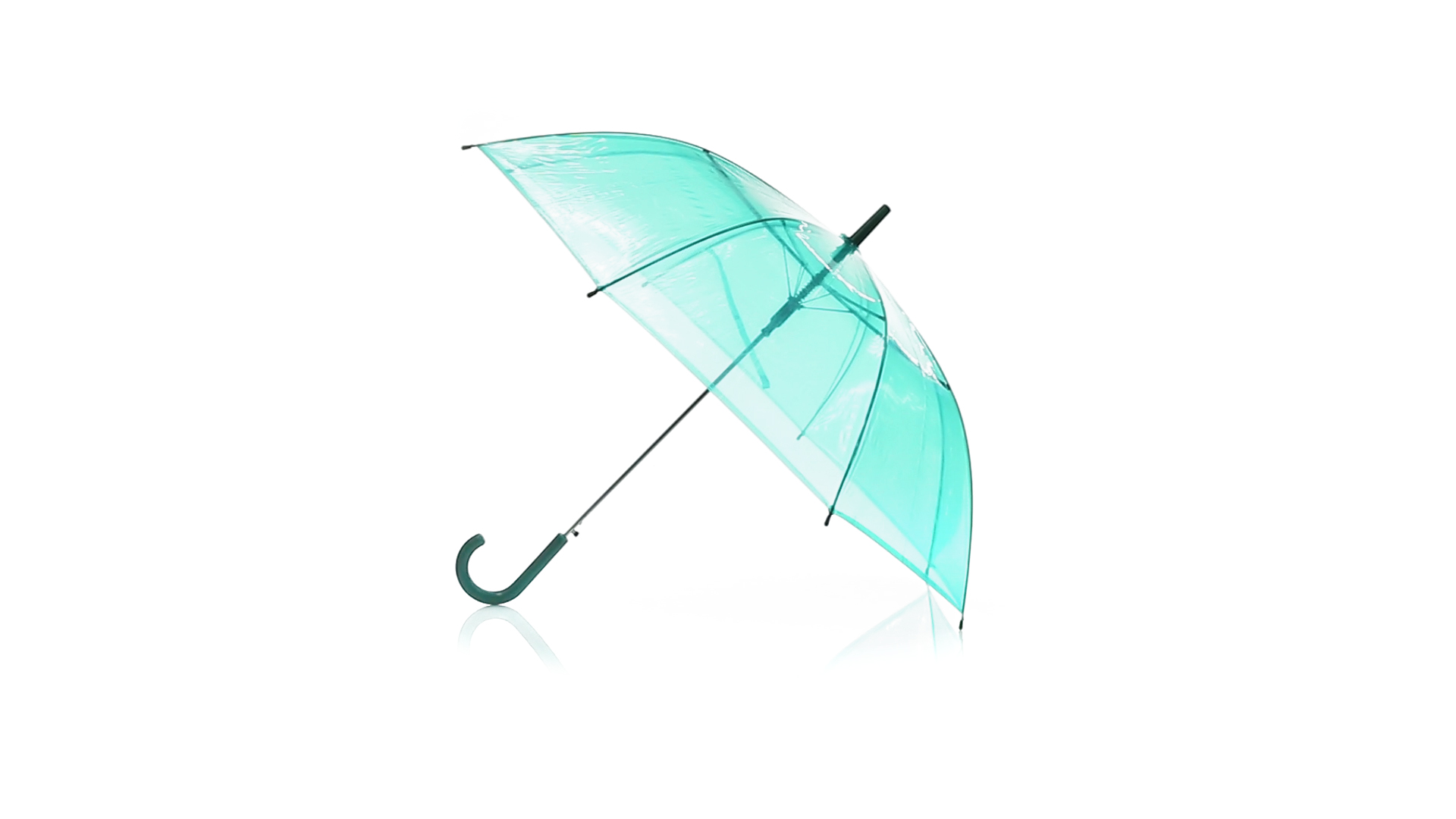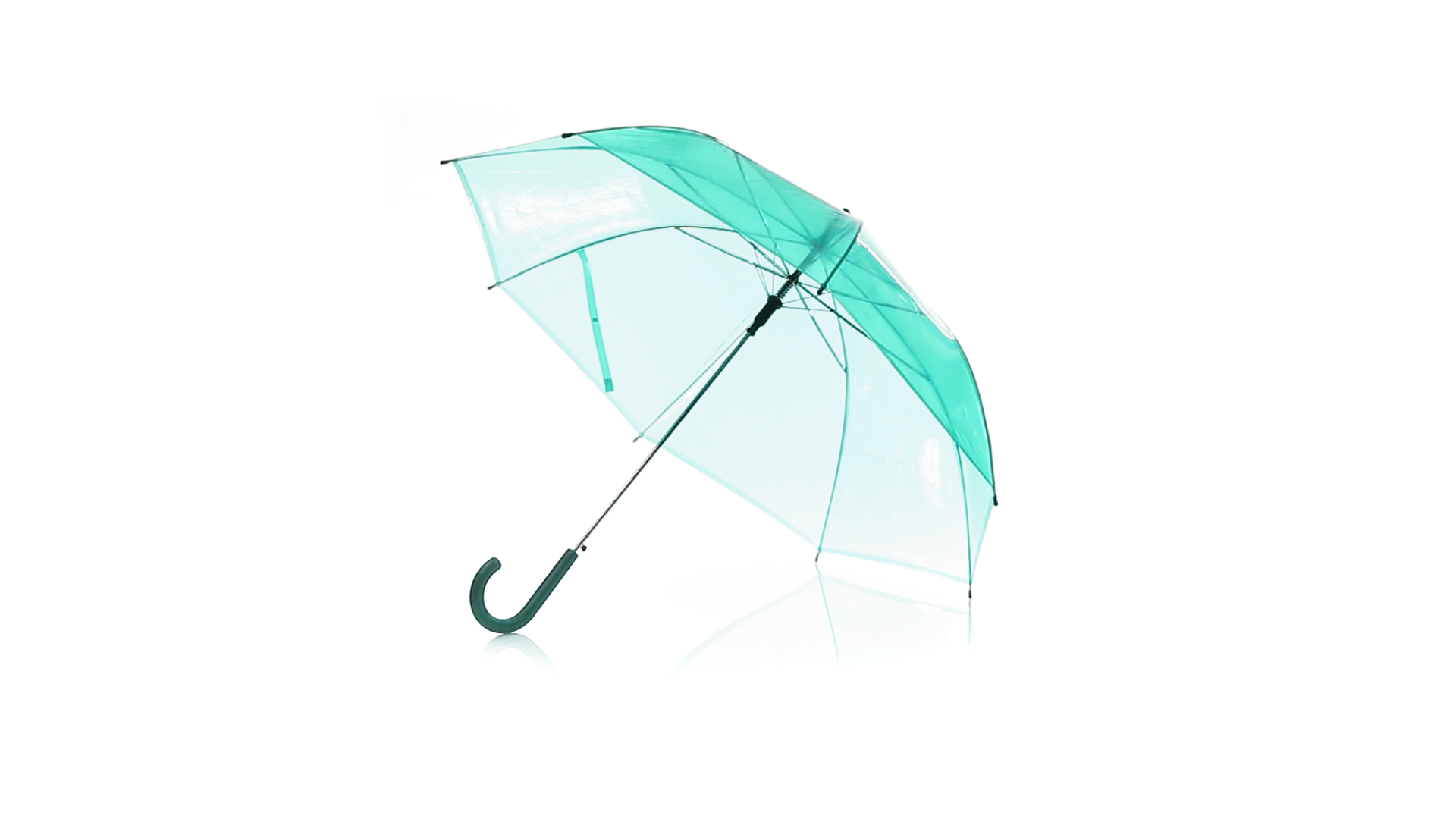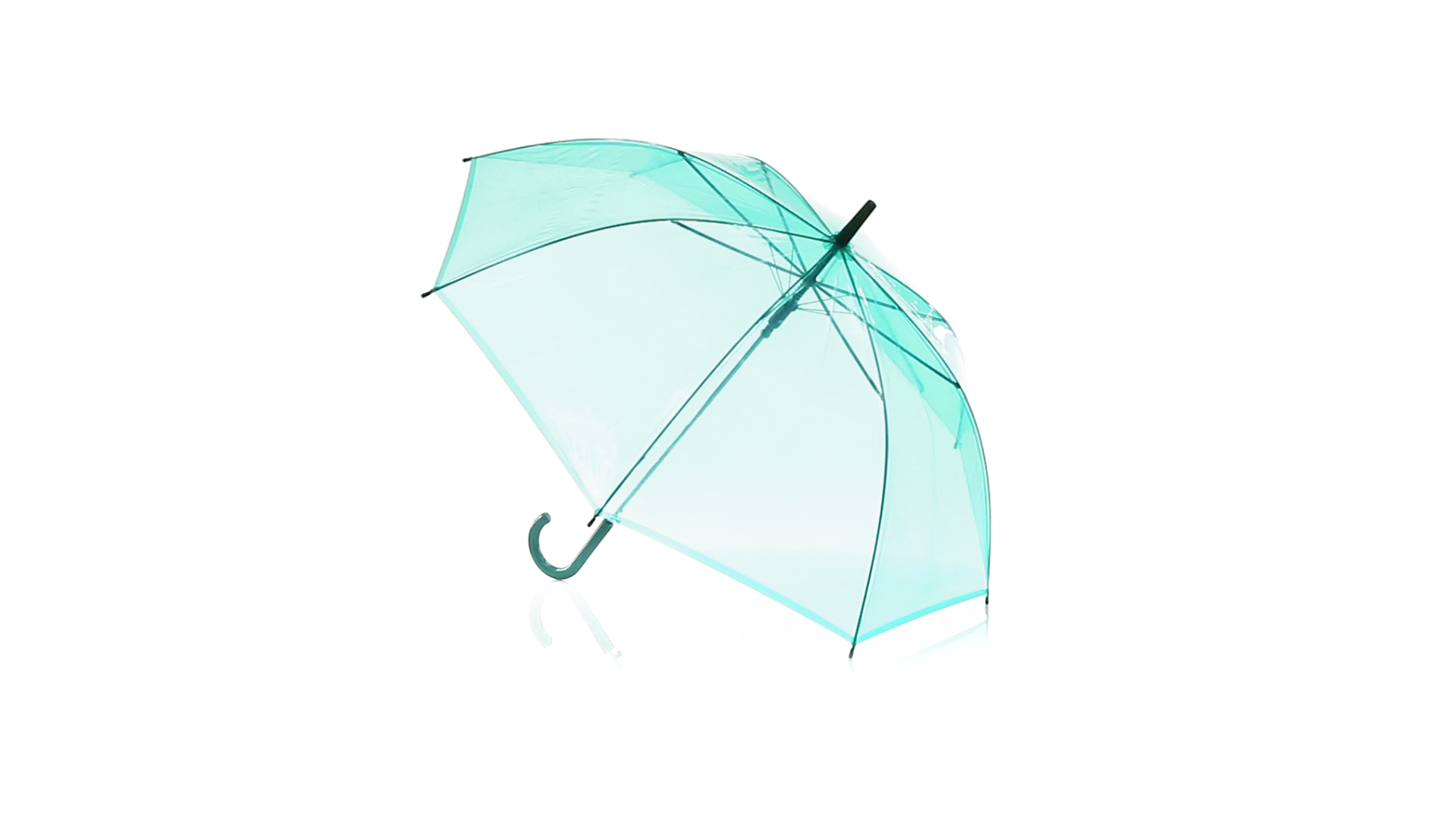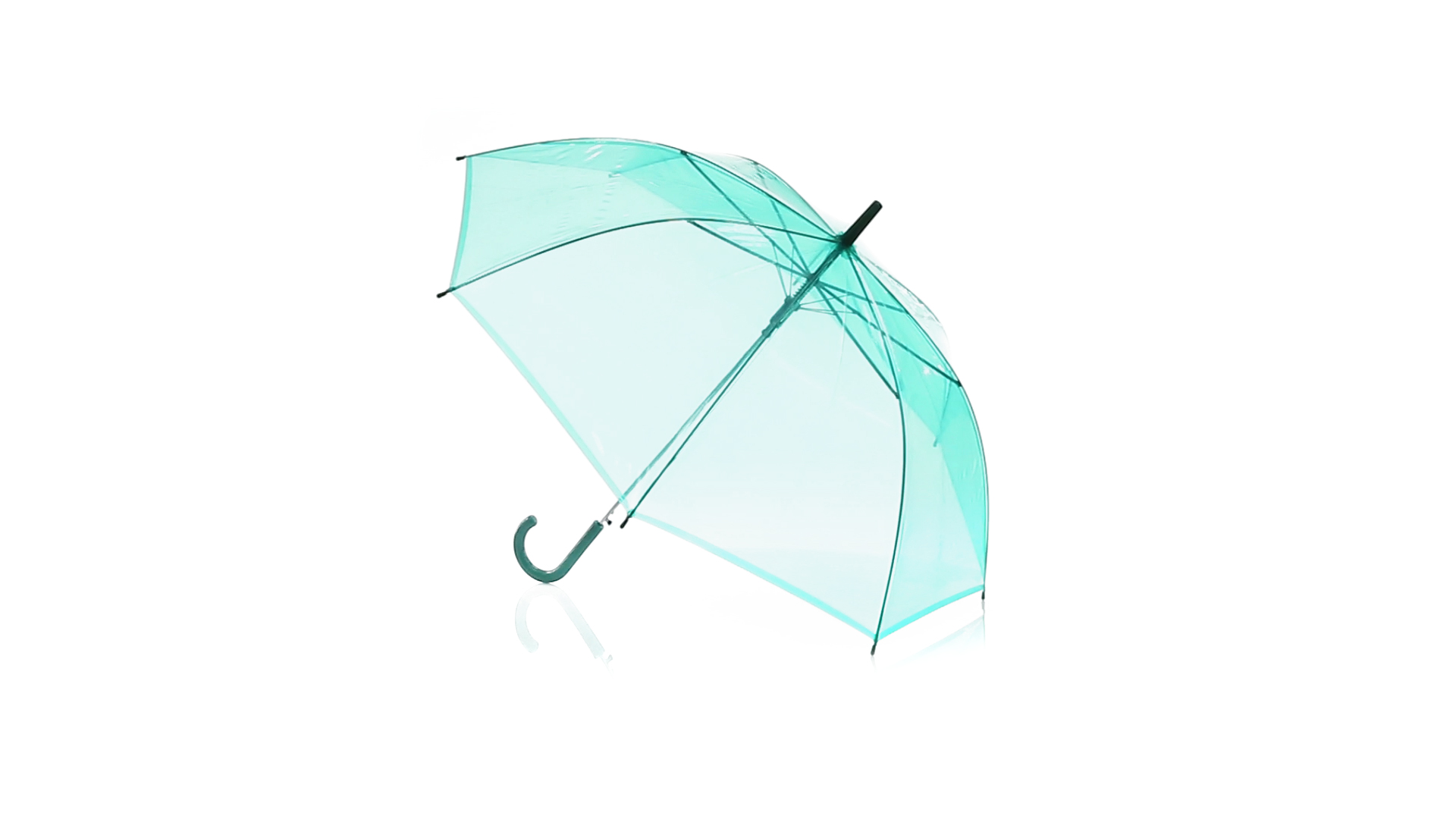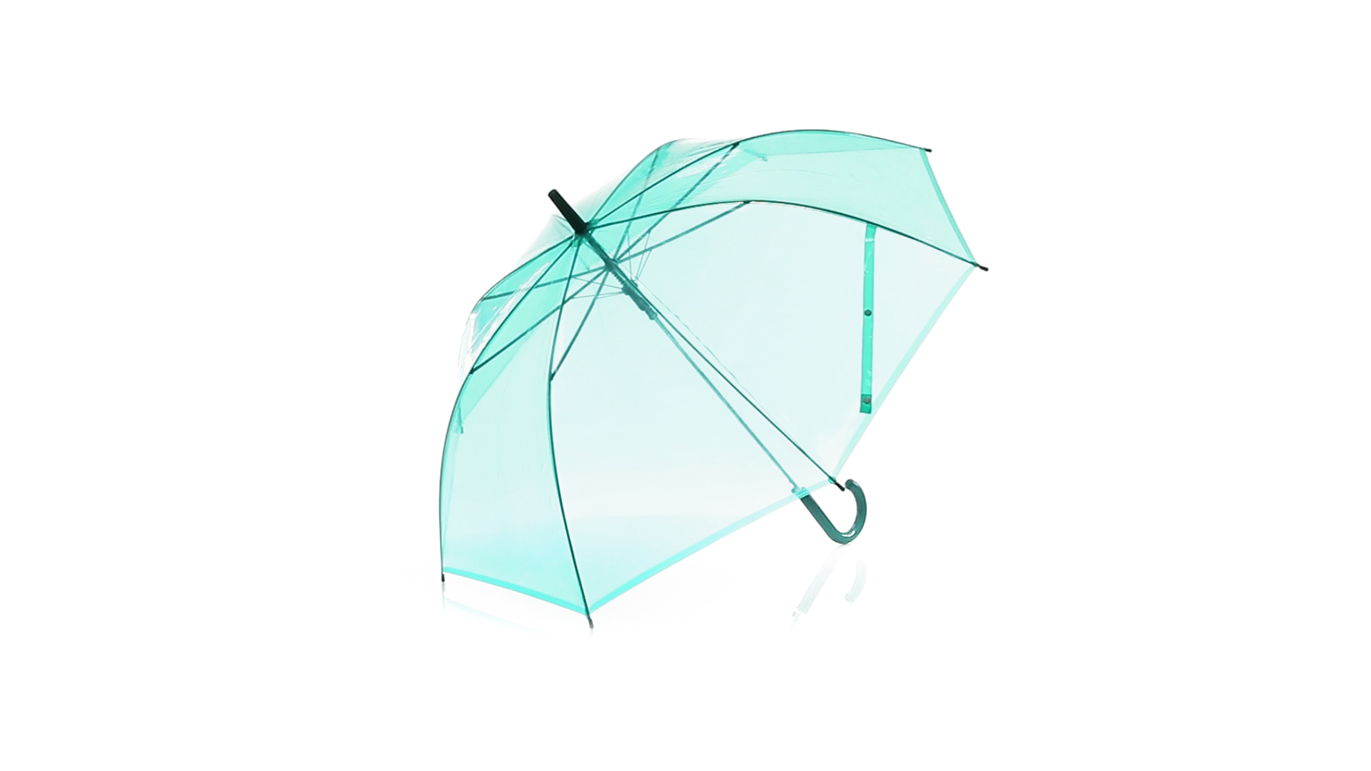 Regenschirm mit 8 Panelen aus widerstandsfähigem POE-Material in einer grossen Auswahl an kräftigen transparenten Farben. Mit einem Durchmesser von 105 cm, automatischer Öffnung und silbernen Metallstäben sowie Druckknopfverschluss und weichem Griff in Silbergrau.