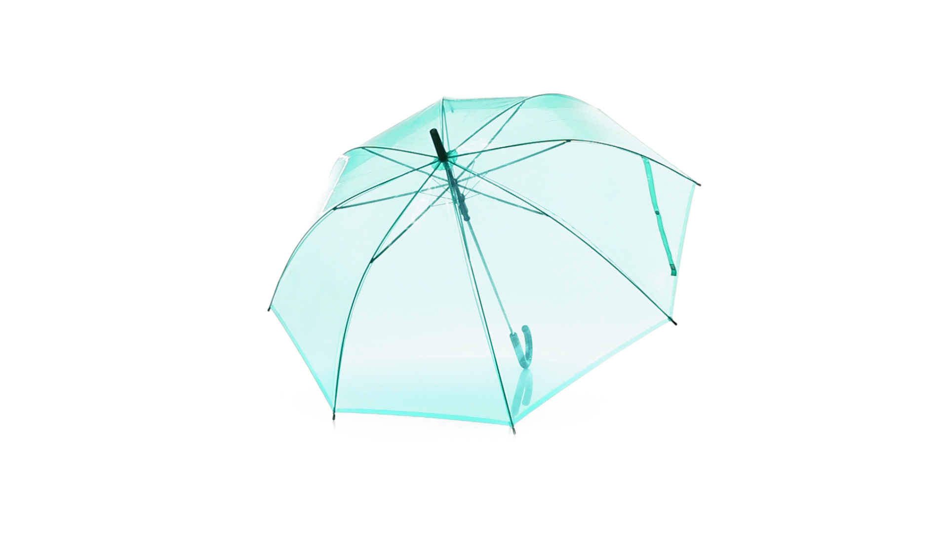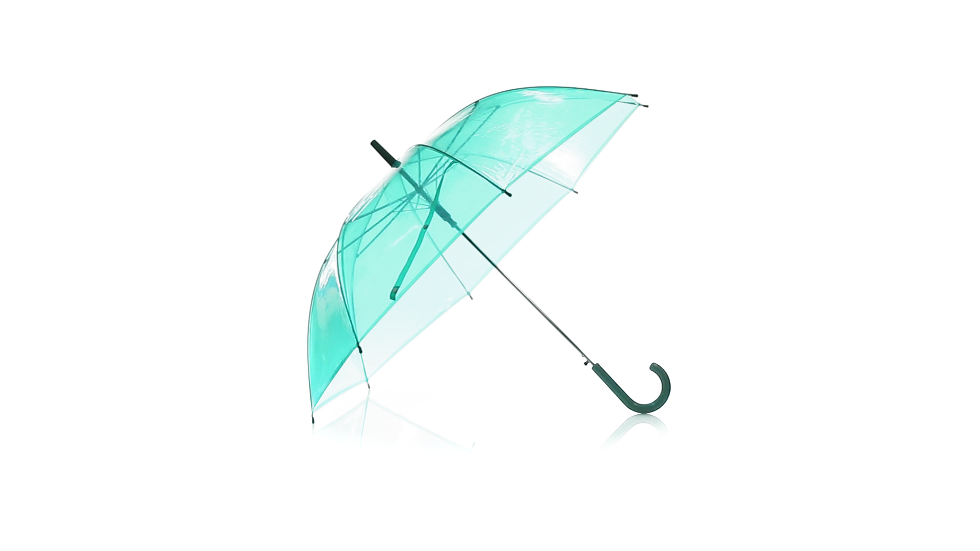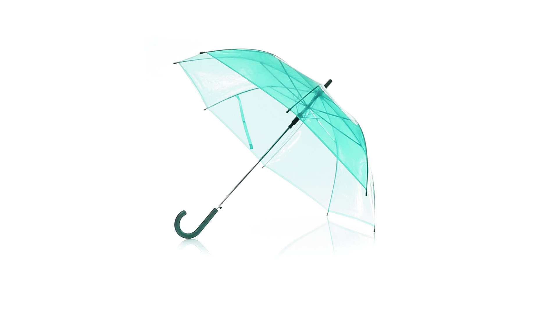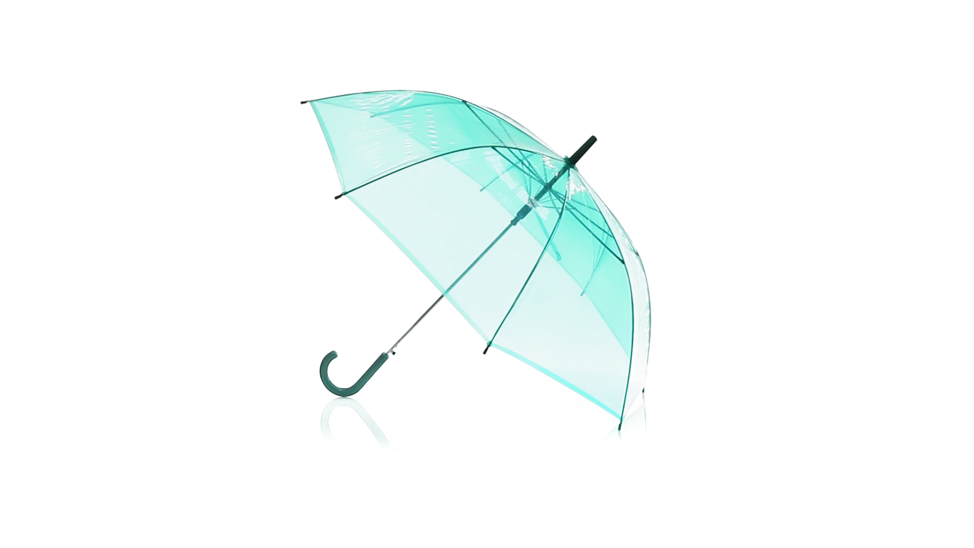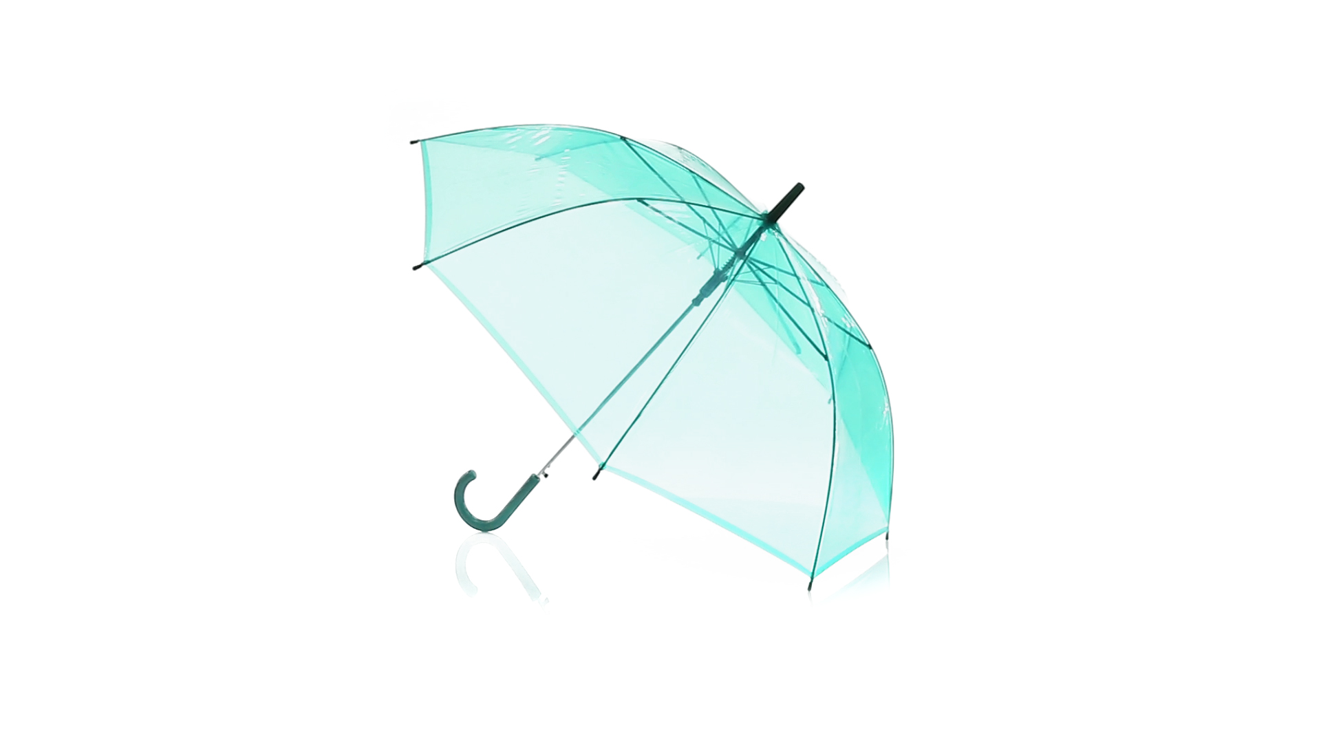 Regenschirm mit 8 Panelen aus widerstandsfähigem POE-Material in einer grossen Auswahl an kräftigen transparenten Farben. Mit einem Durchmesser von 105 cm, automatischer Öffnung und silbernen Metallstäben sowie Druckknopfverschluss und weichem Griff in Silbergrau.