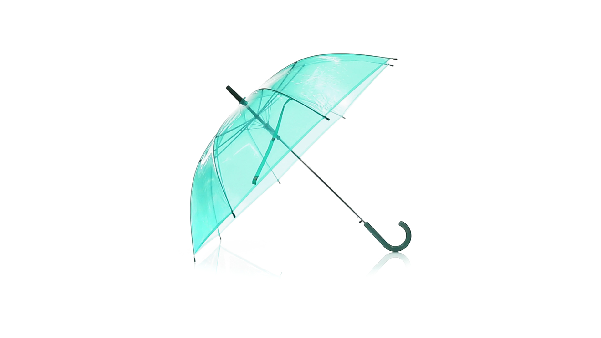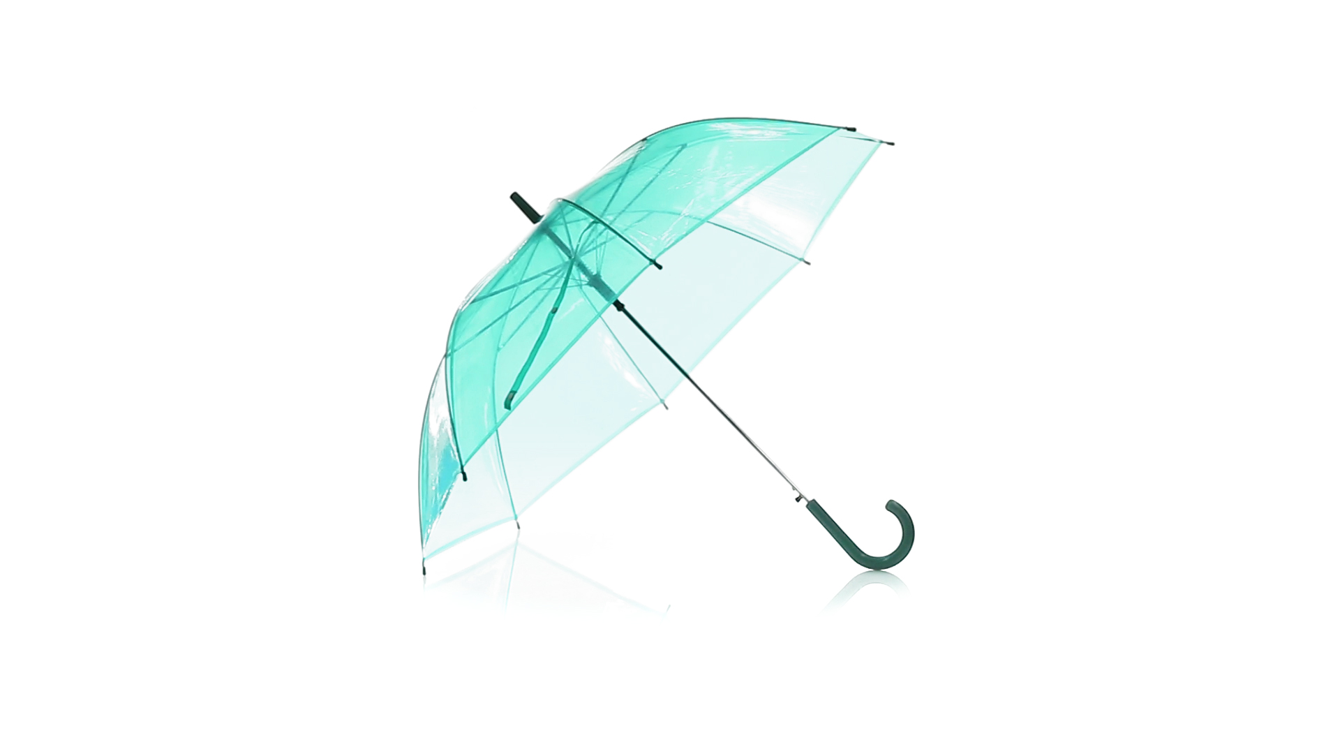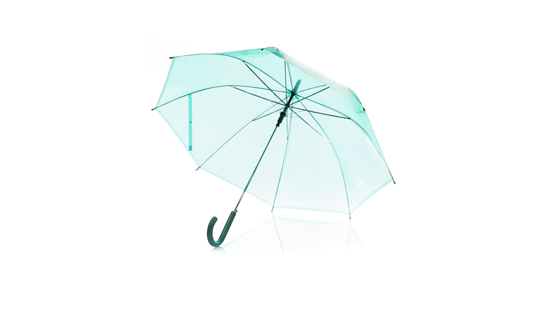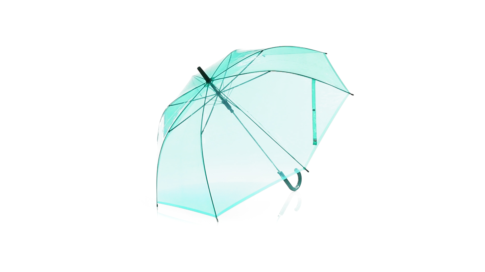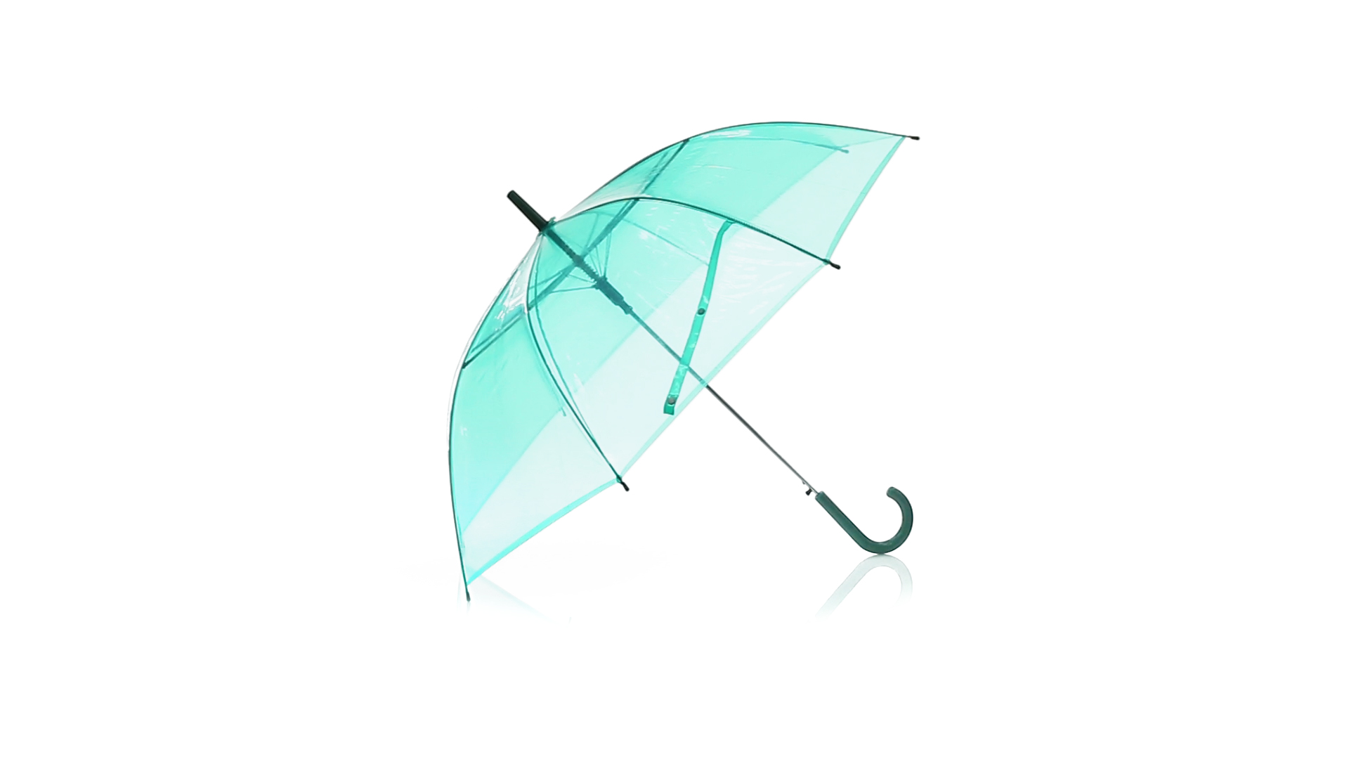 Regenschirm mit 8 Panelen aus widerstandsfähigem POE-Material in einer grossen Auswahl an kräftigen transparenten Farben. Mit einem Durchmesser von 105 cm, automatischer Öffnung und silbernen Metallstäben sowie Druckknopfverschluss und weichem Griff in Silbergrau.