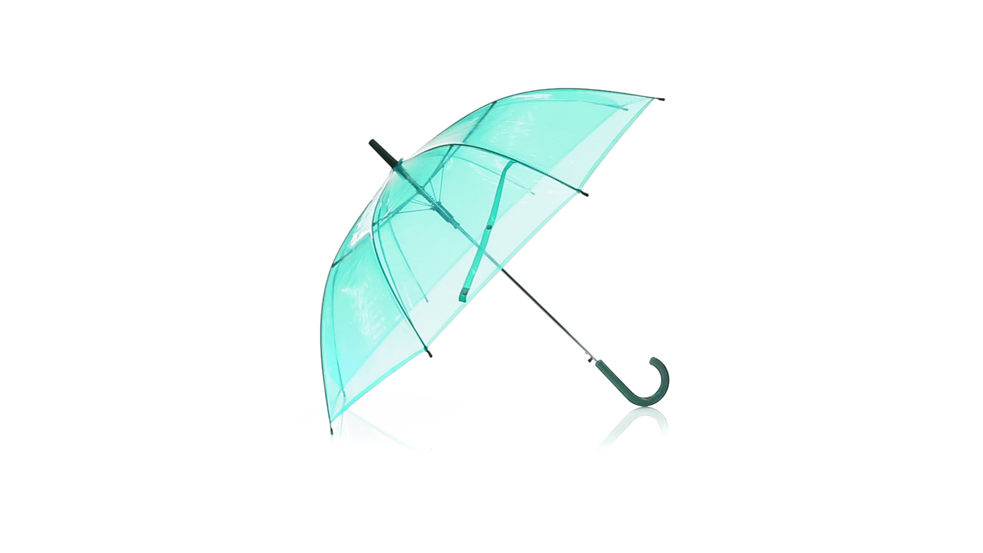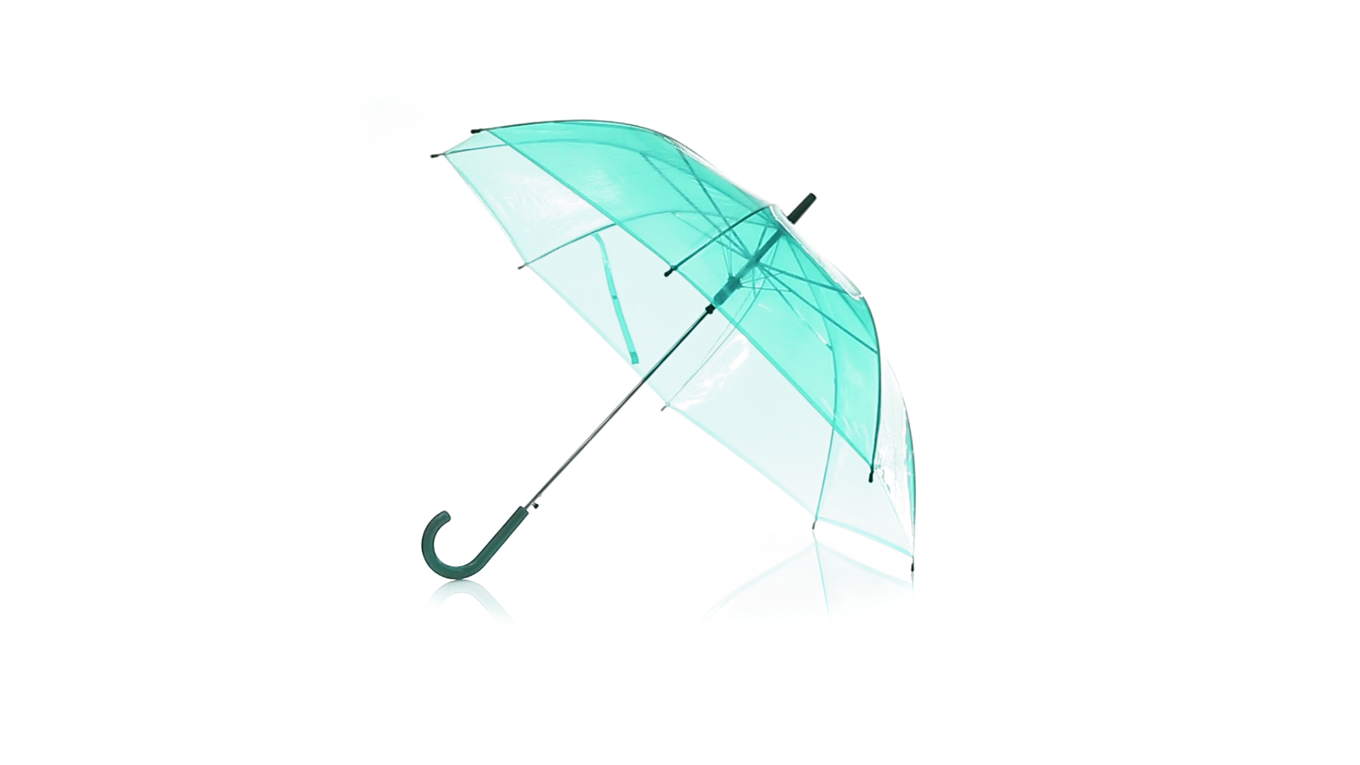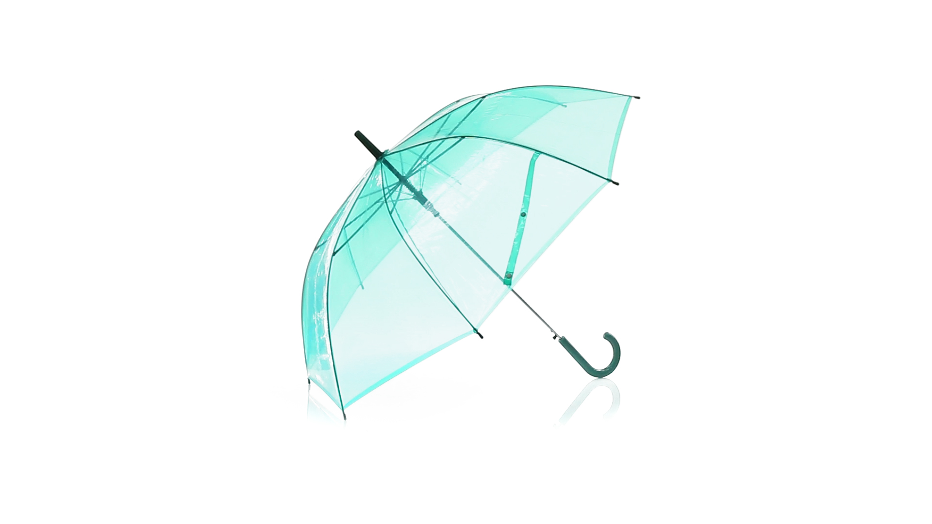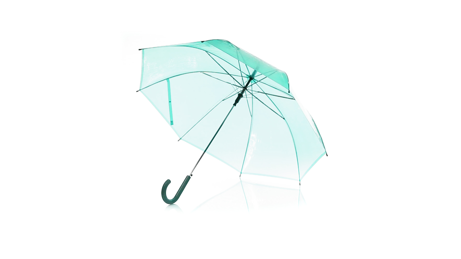 Regenschirm mit 8 Panelen aus widerstandsfähigem POE-Material in einer grossen Auswahl an kräftigen transparenten Farben. Mit einem Durchmesser von 105 cm, automatischer Öffnung und silbernen Metallstäben sowie Druckknopfverschluss und weichem Griff in Silbergrau.