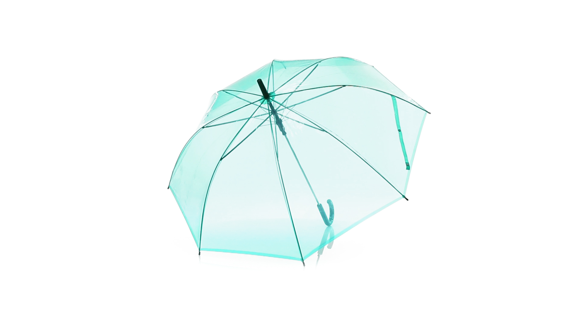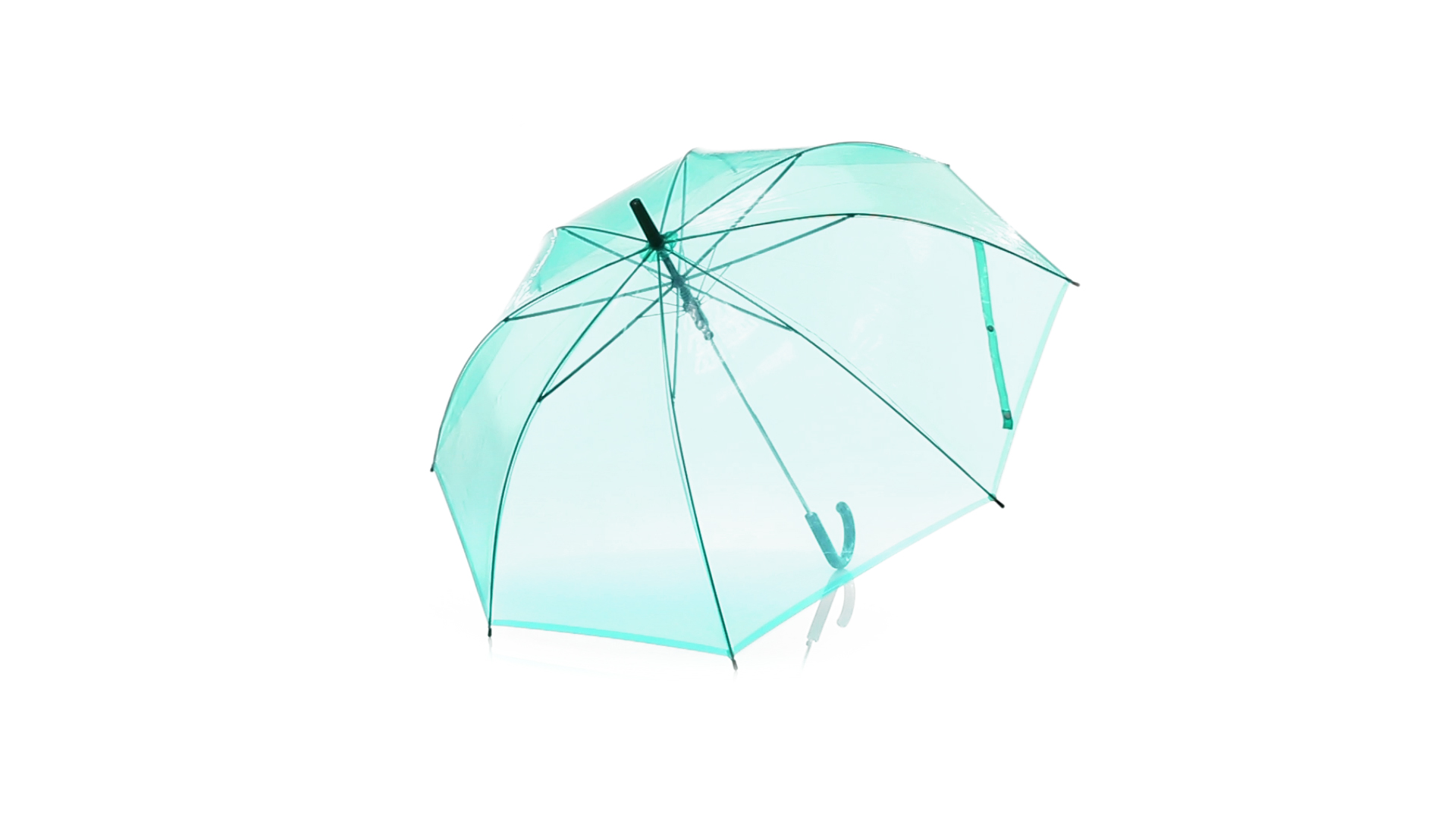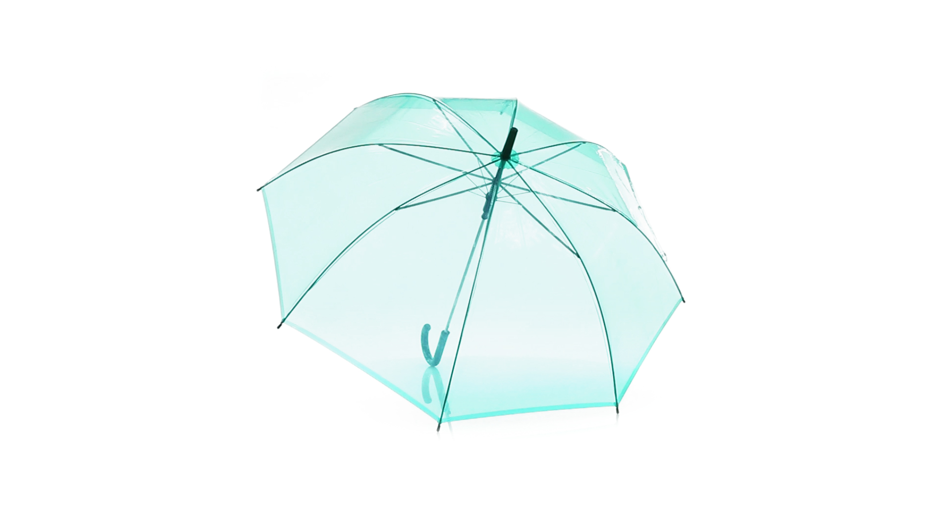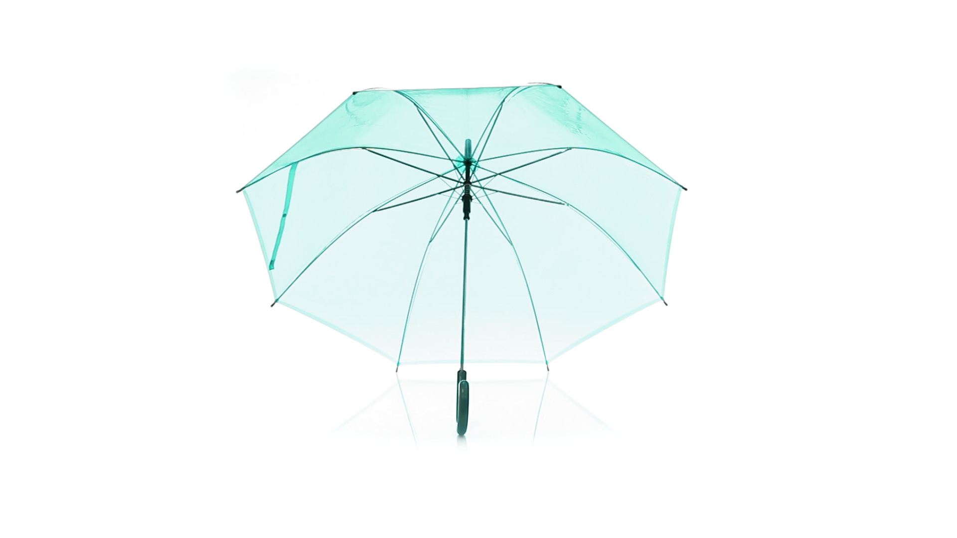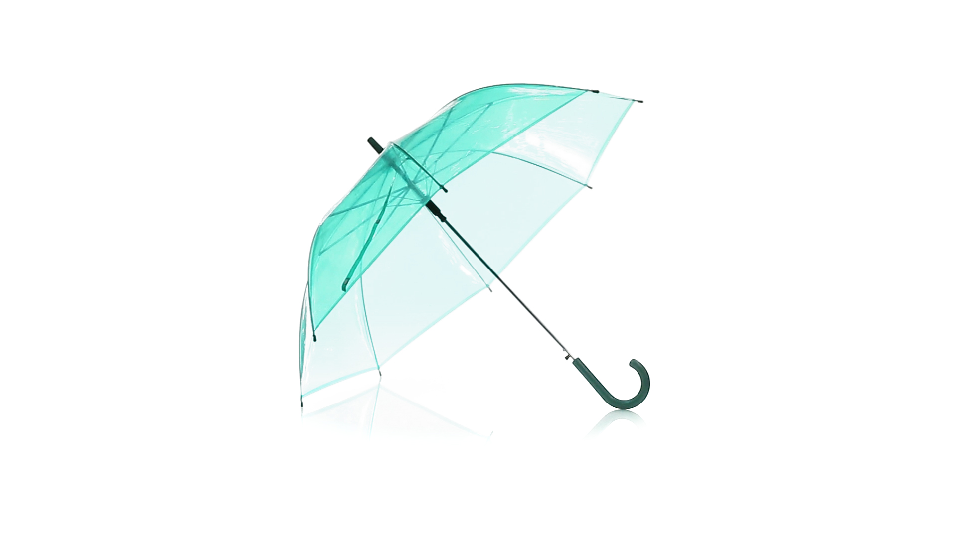 Regenschirm mit 8 Panelen aus widerstandsfähigem POE-Material in einer grossen Auswahl an kräftigen transparenten Farben. Mit einem Durchmesser von 105 cm, automatischer Öffnung und silbernen Metallstäben sowie Druckknopfverschluss und weichem Griff in Silbergrau.