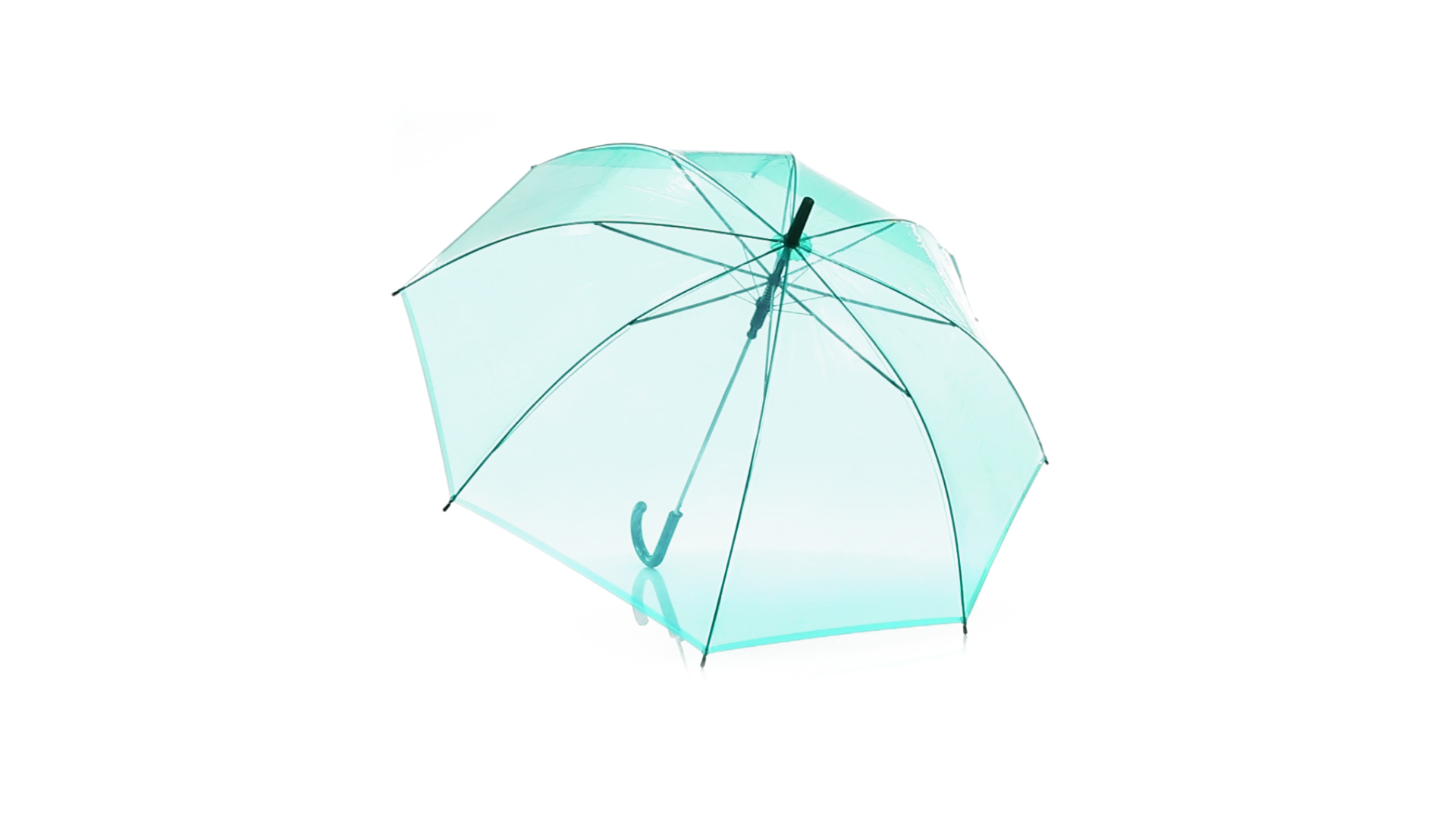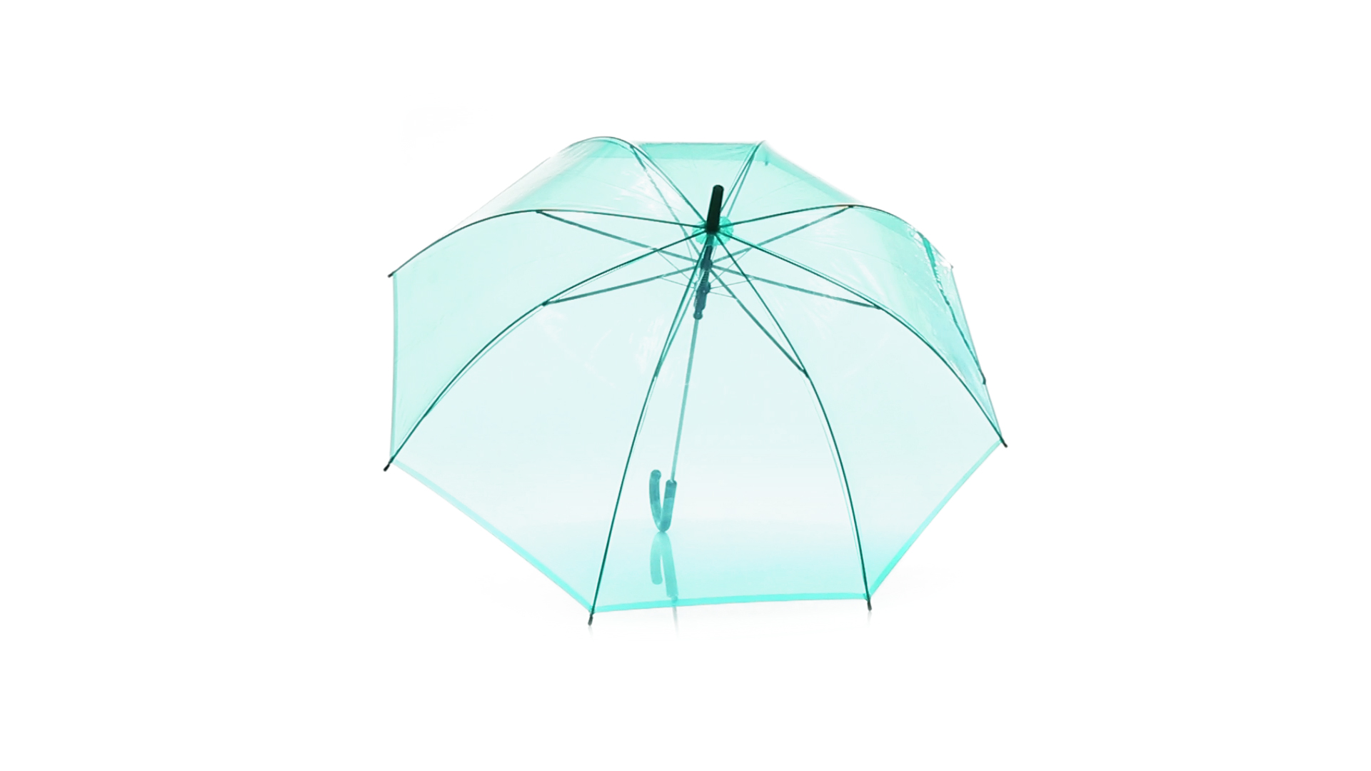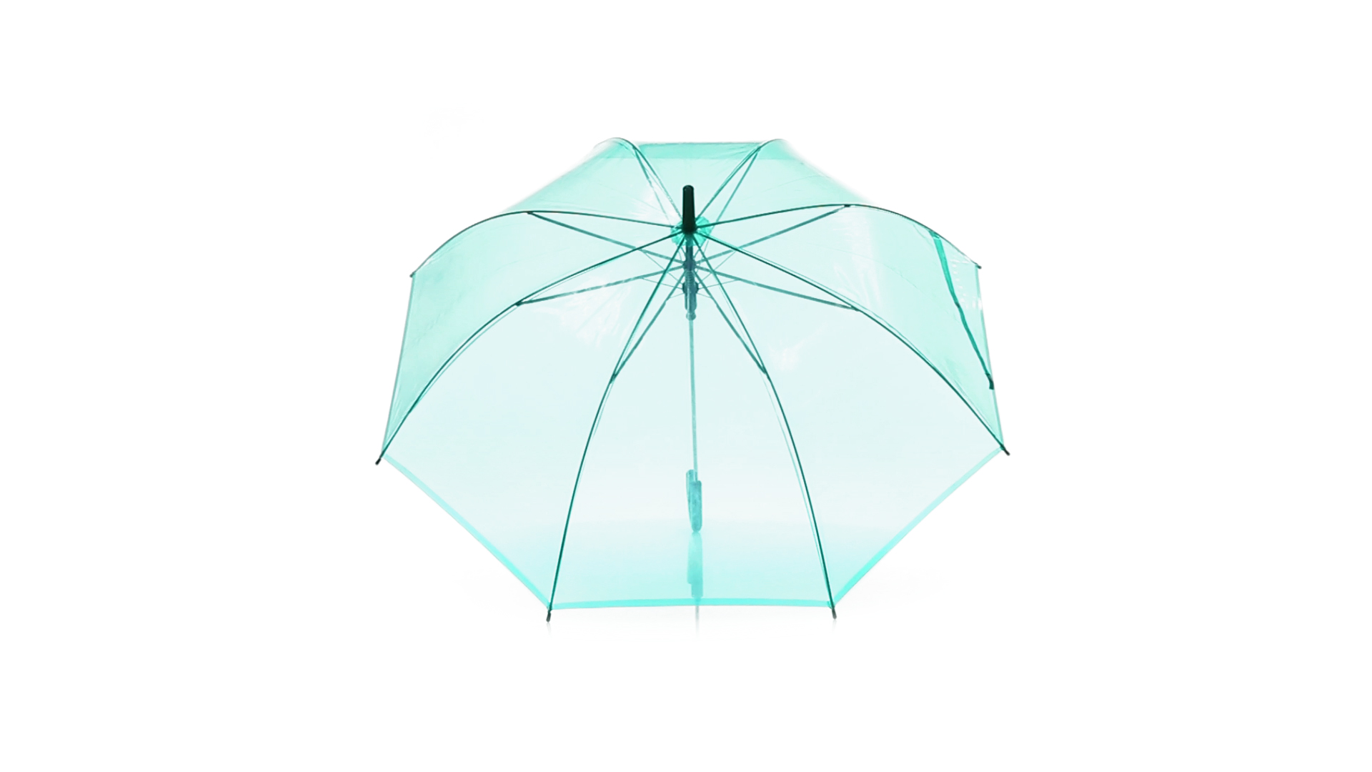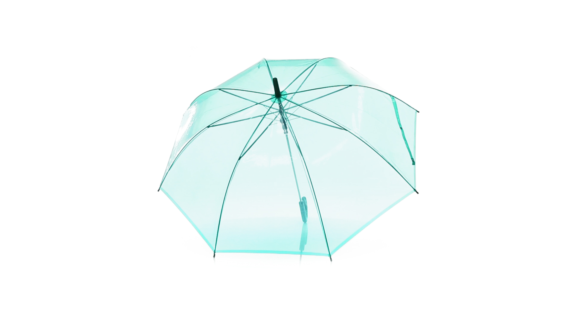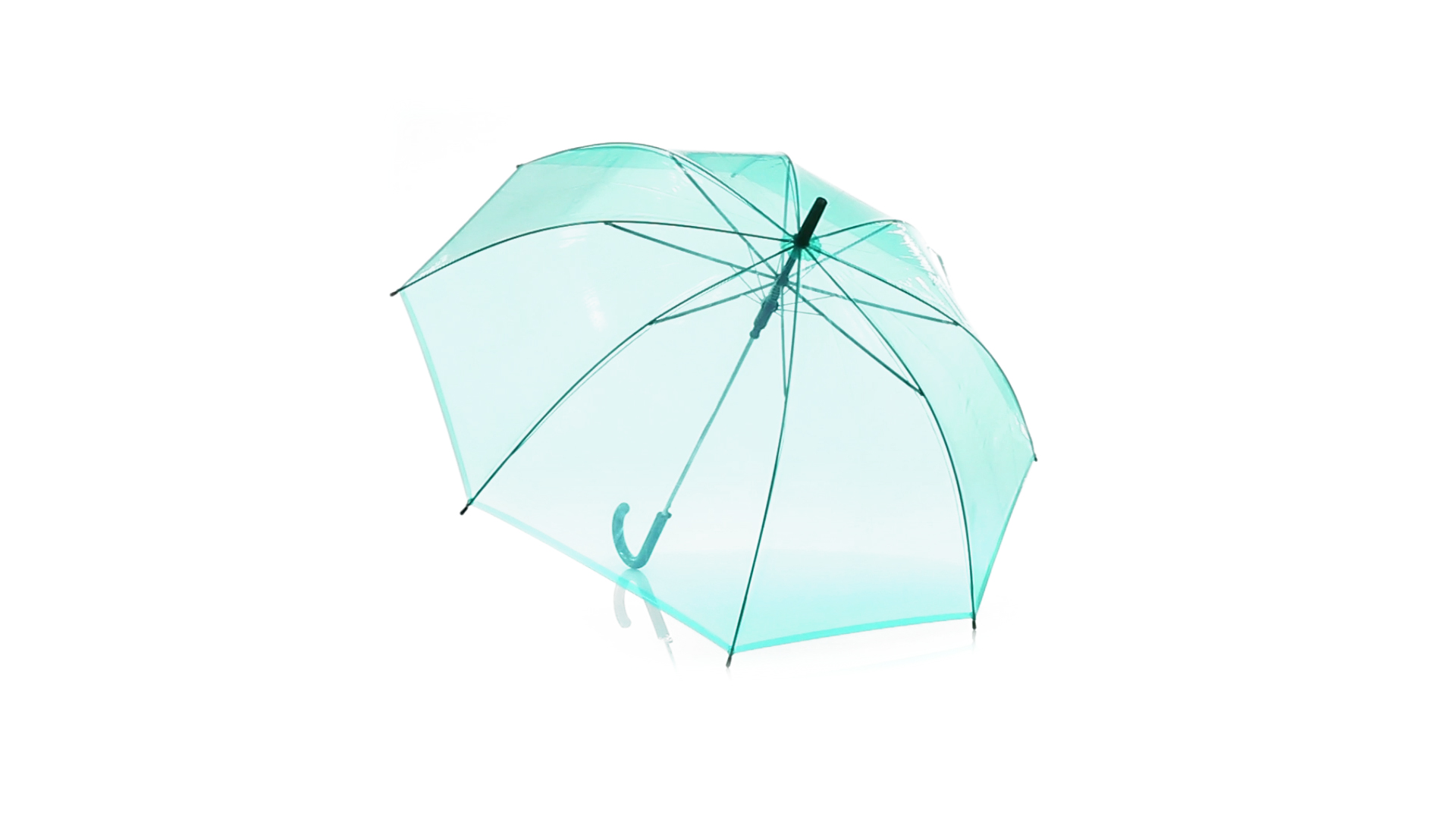 Regenschirm mit 8 Panelen aus widerstandsfähigem POE-Material in einer grossen Auswahl an kräftigen transparenten Farben. Mit einem Durchmesser von 105 cm, automatischer Öffnung und silbernen Metallstäben sowie Druckknopfverschluss und weichem Griff in Silbergrau.