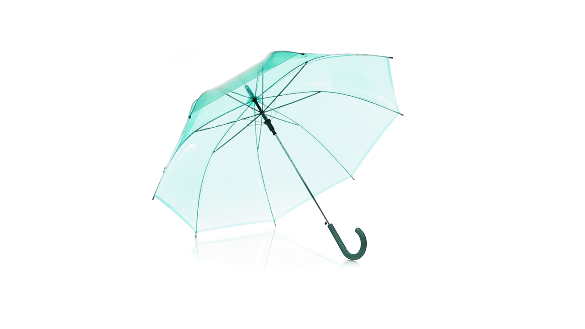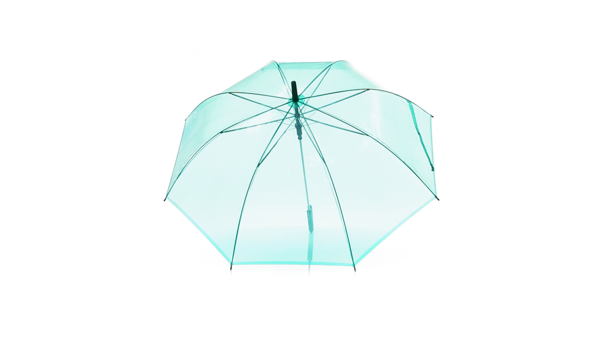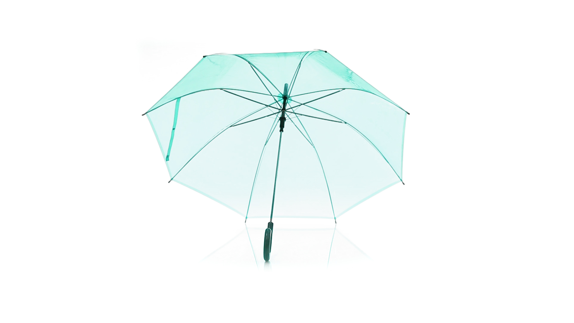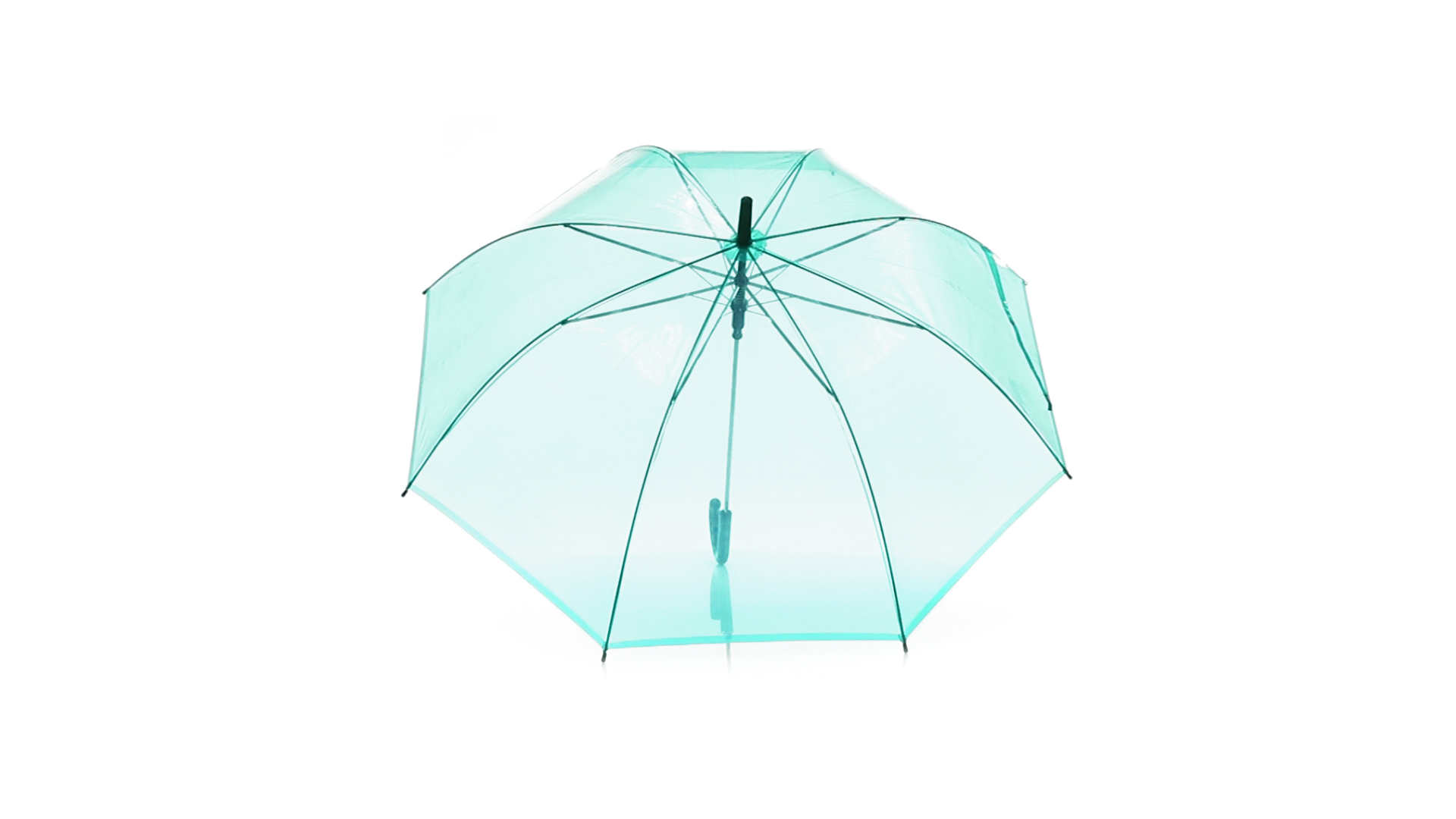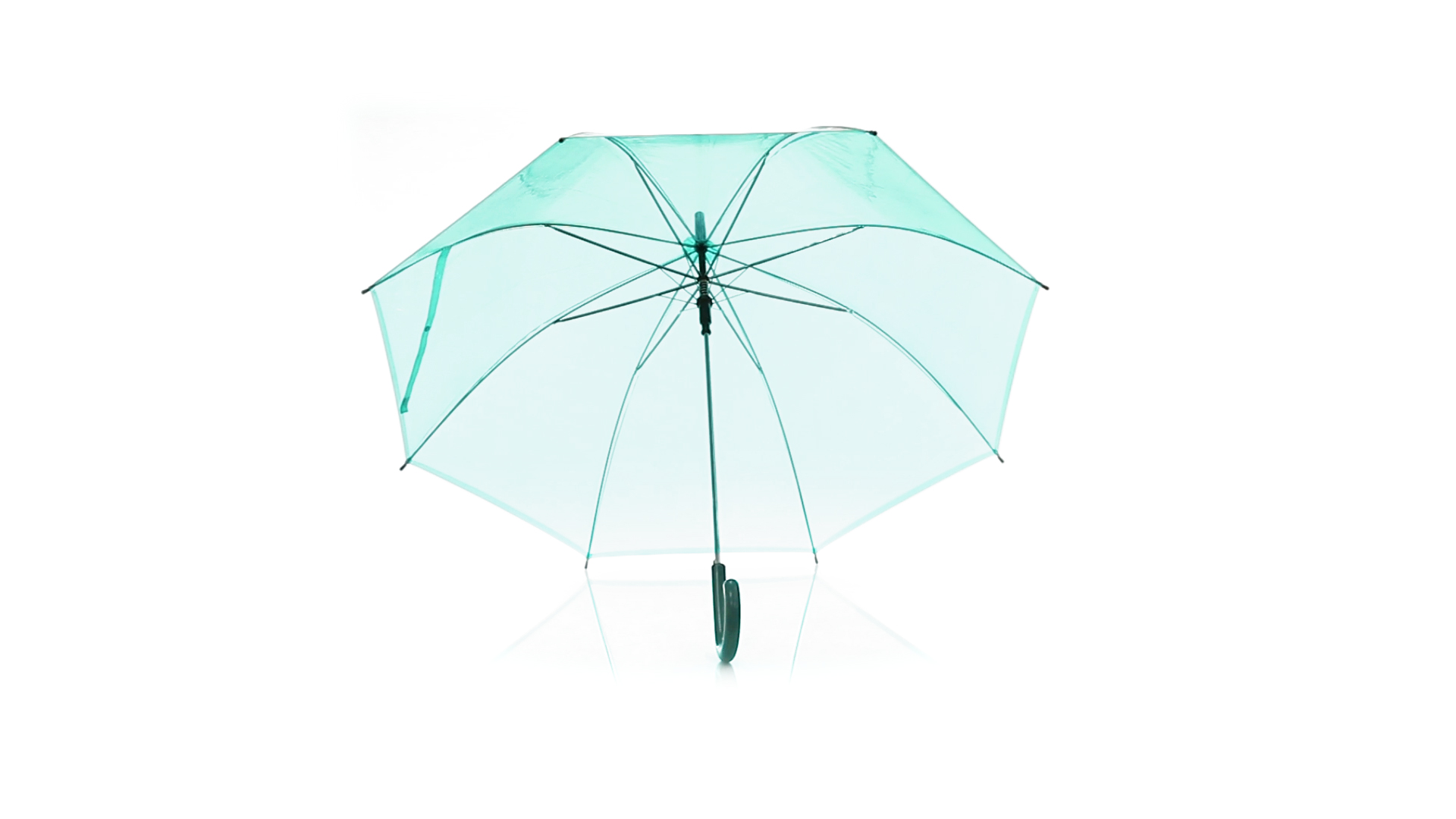 Regenschirm mit 8 Panelen aus widerstandsfähigem POE-Material in einer grossen Auswahl an kräftigen transparenten Farben. Mit einem Durchmesser von 105 cm, automatischer Öffnung und silbernen Metallstäben sowie Druckknopfverschluss und weichem Griff in Silbergrau.