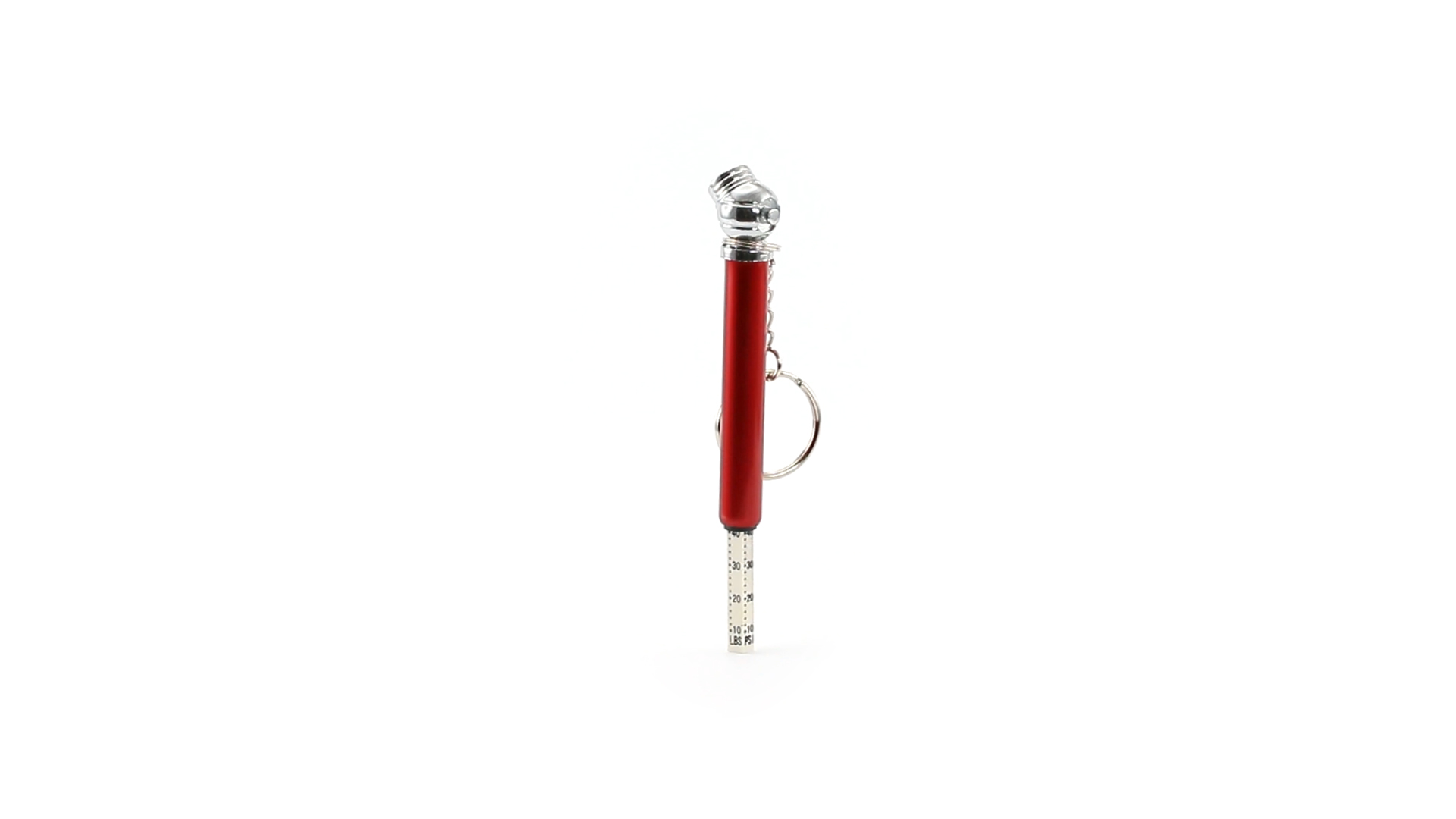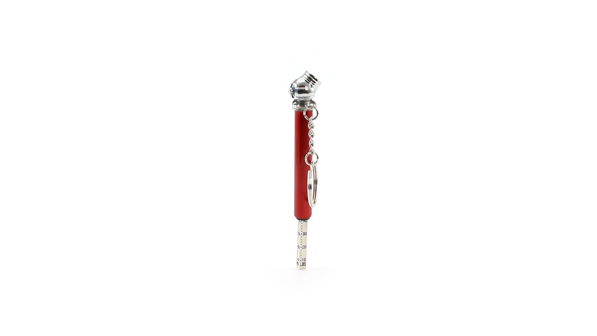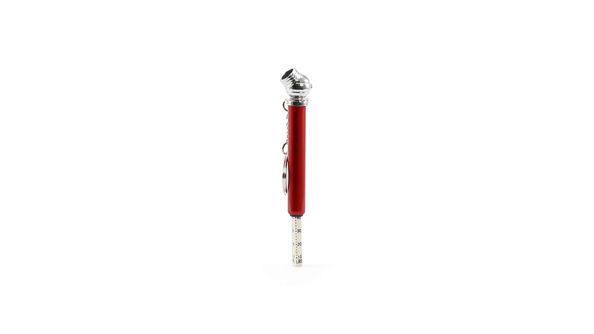 Schlüsselanhänger-Manometer für Reifen. In Aluminium-Ausführung und verschiedenen lebendigen Farben.