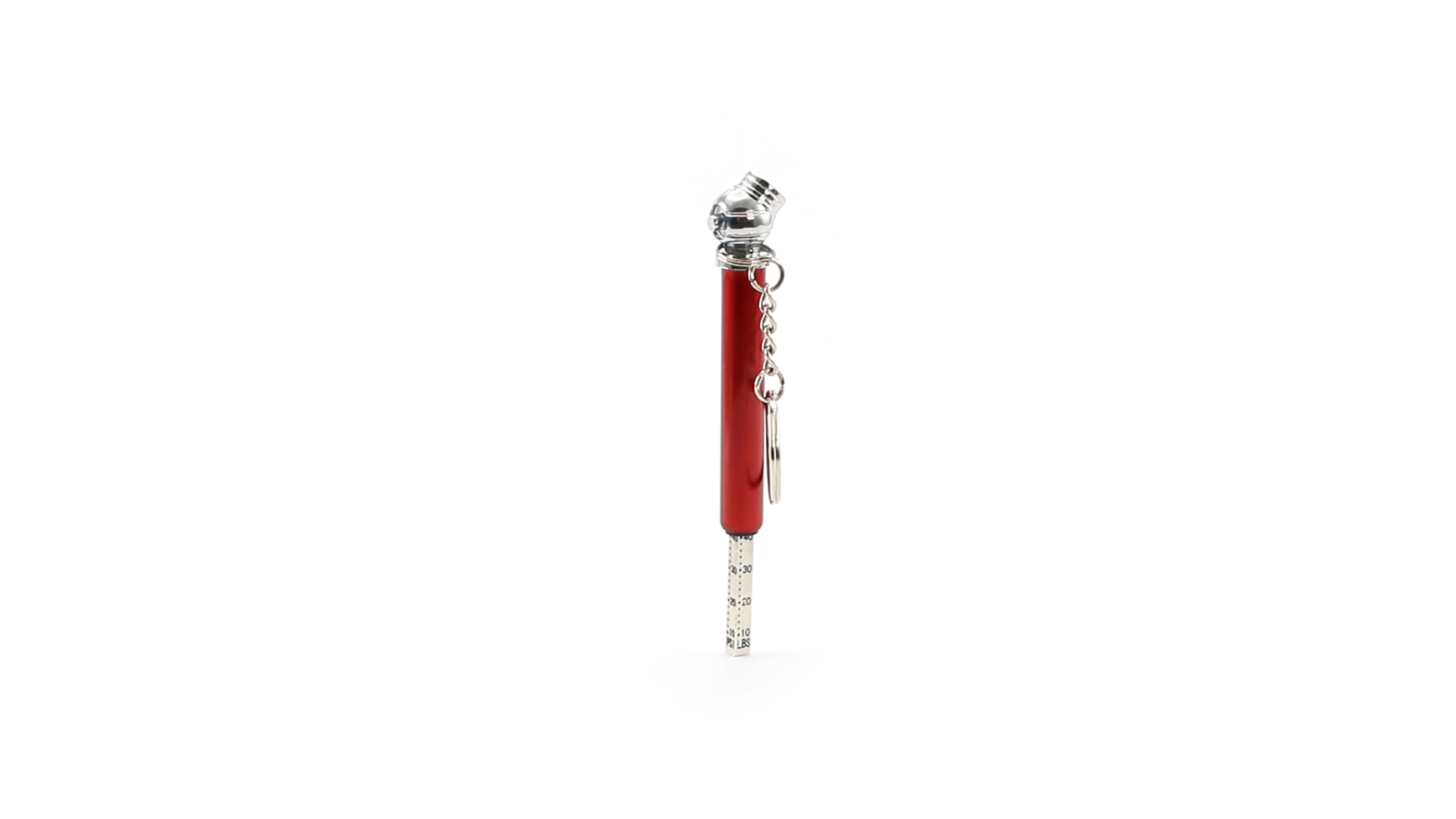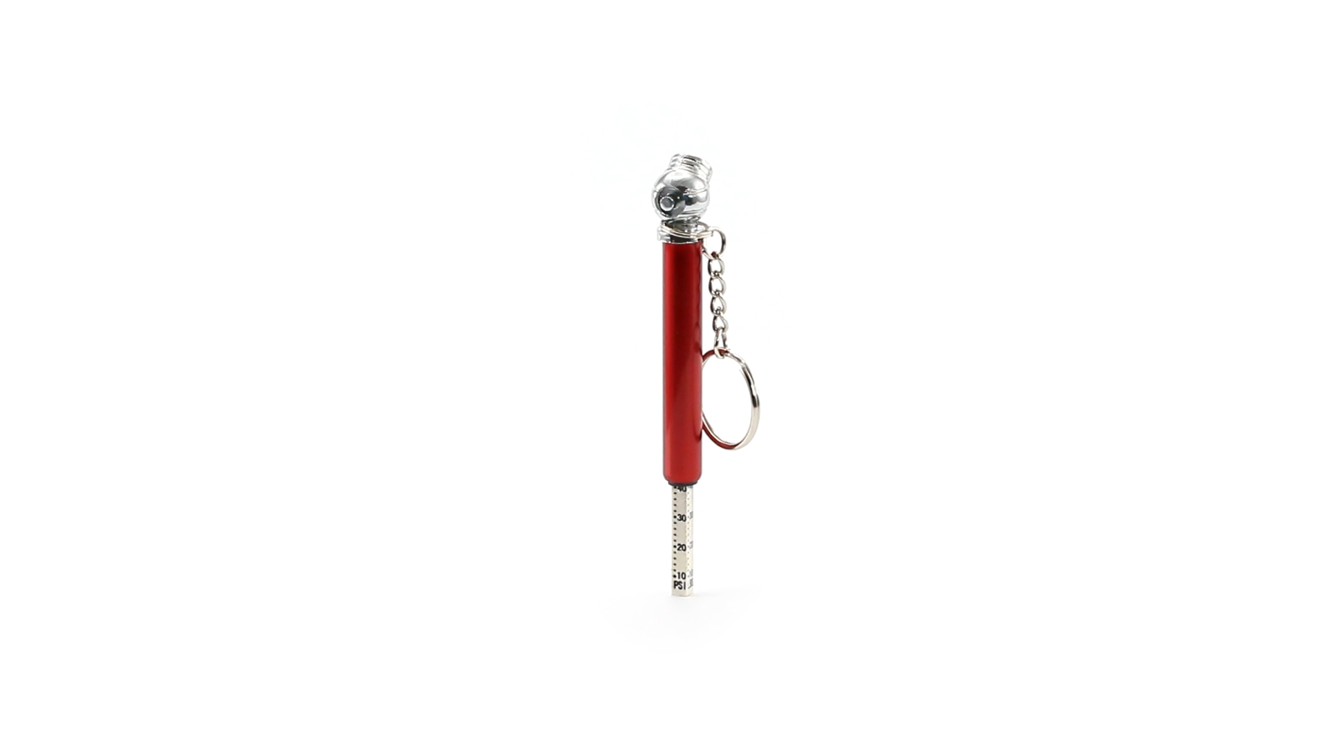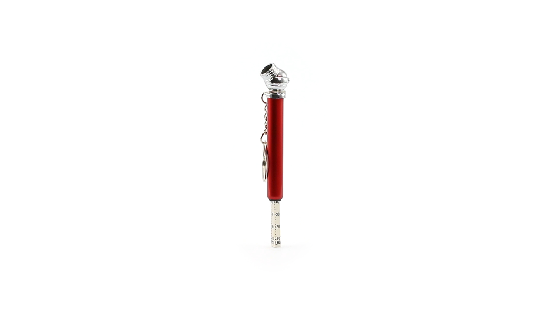 Schlüsselanhänger-Manometer für Reifen. In Aluminium-Ausführung und verschiedenen lebendigen Farben.