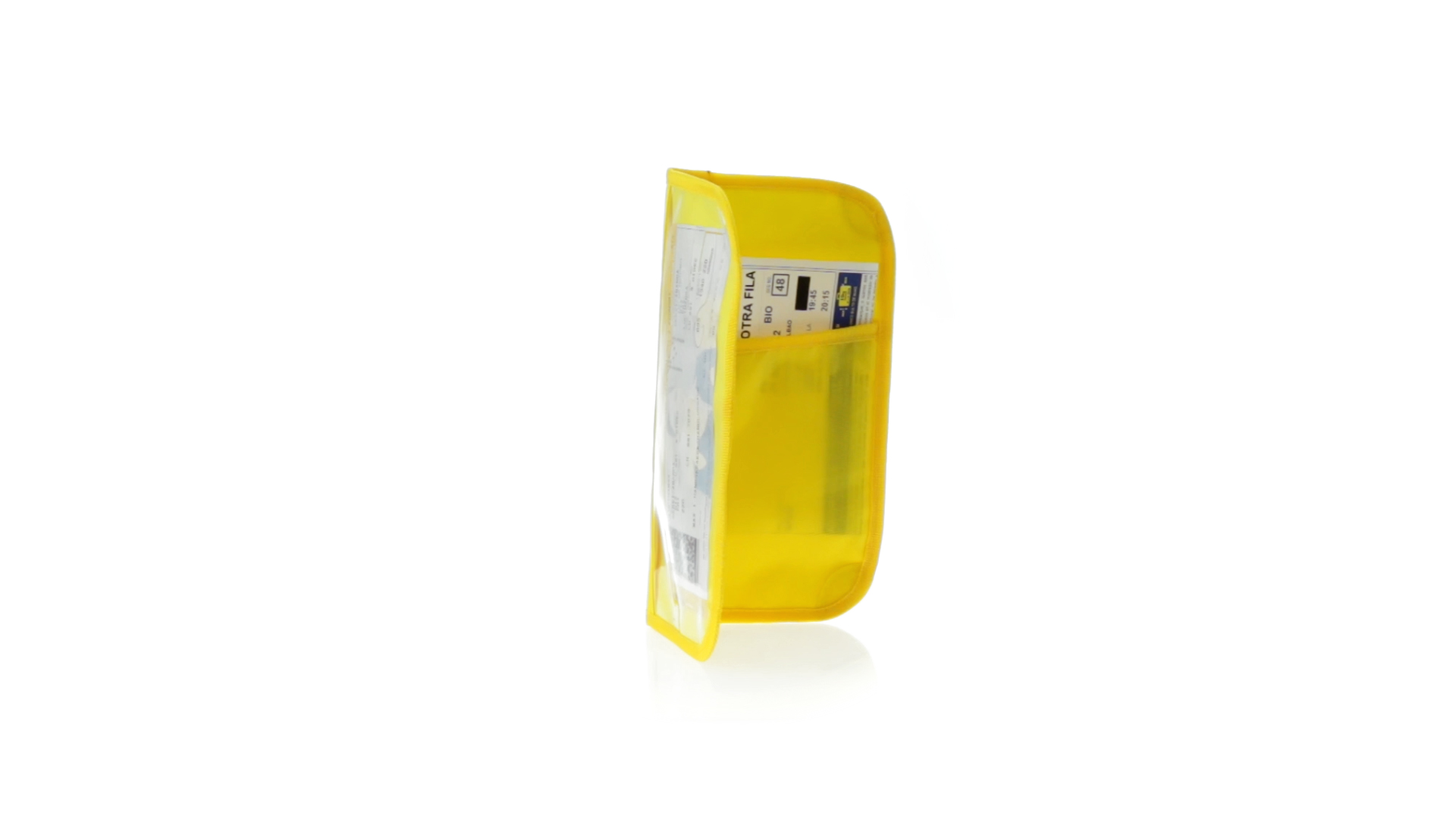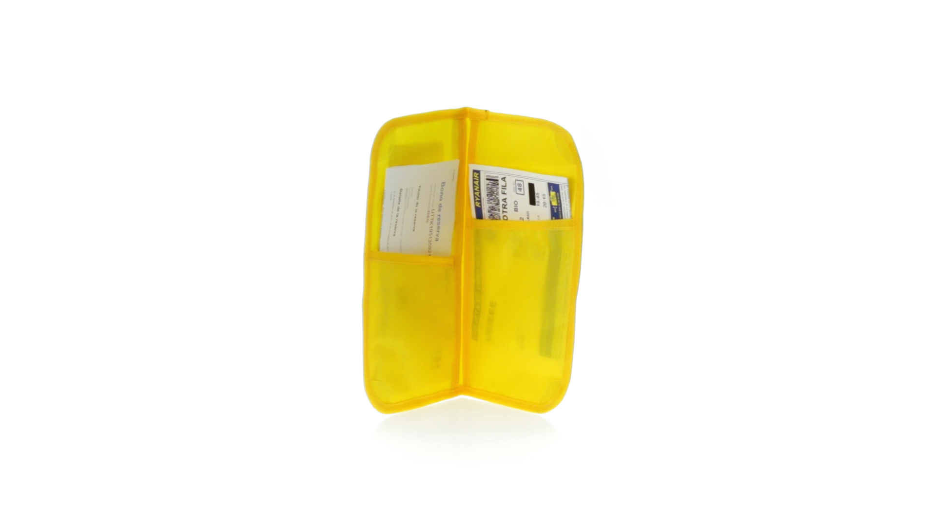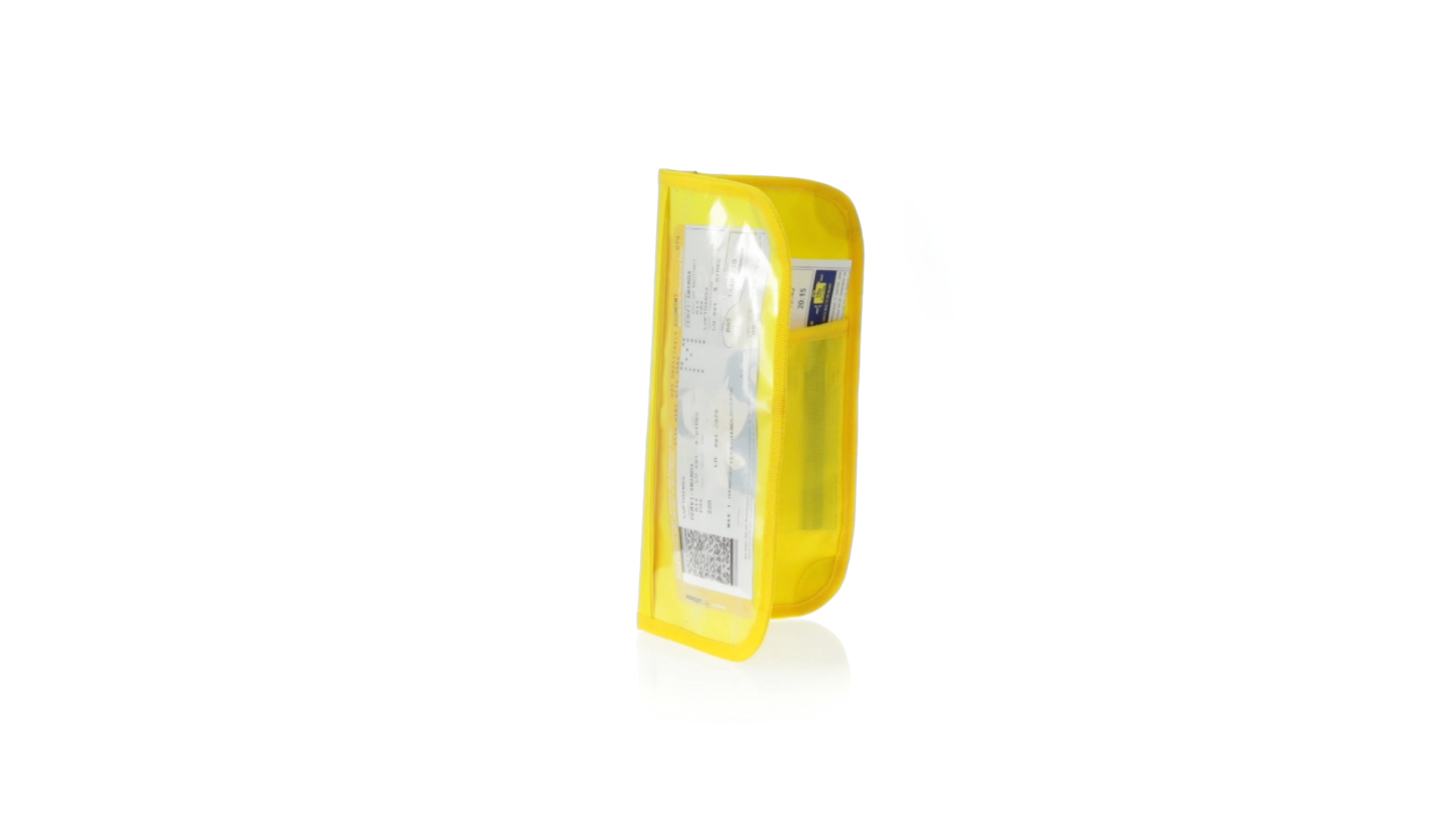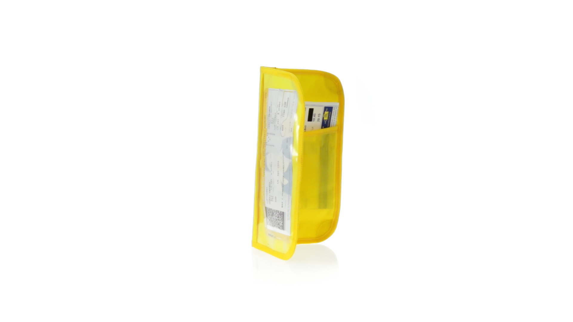 Dokumentenhülle aus 420D Polyester mit originellem Design in lebendigen Farben. Gepolsterte Hülle mit transparentem Fenster für das Ticket, farblich passender Paspel und Klettverschluss sowie mehreren Innenfächern und Stifthalter.