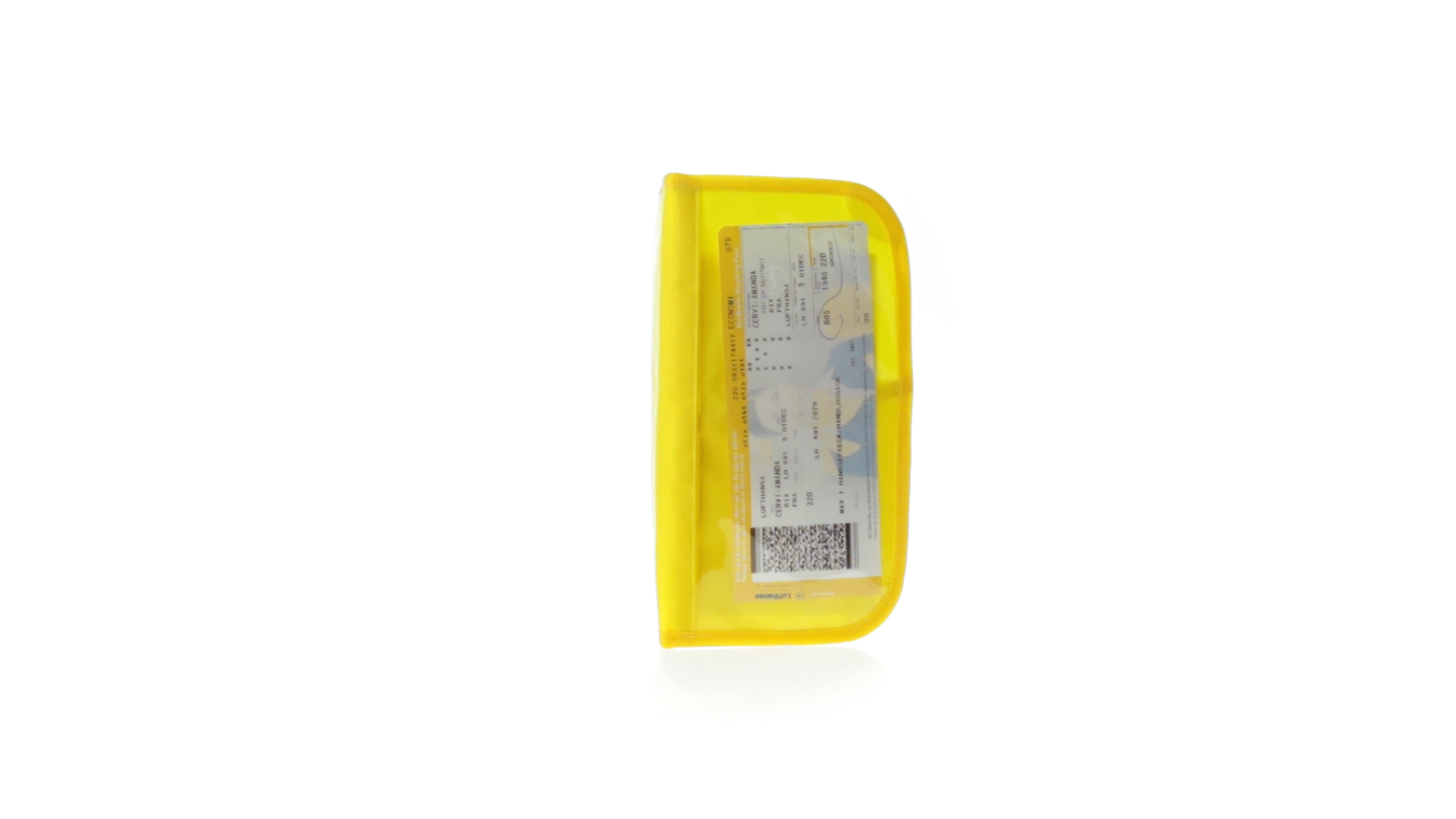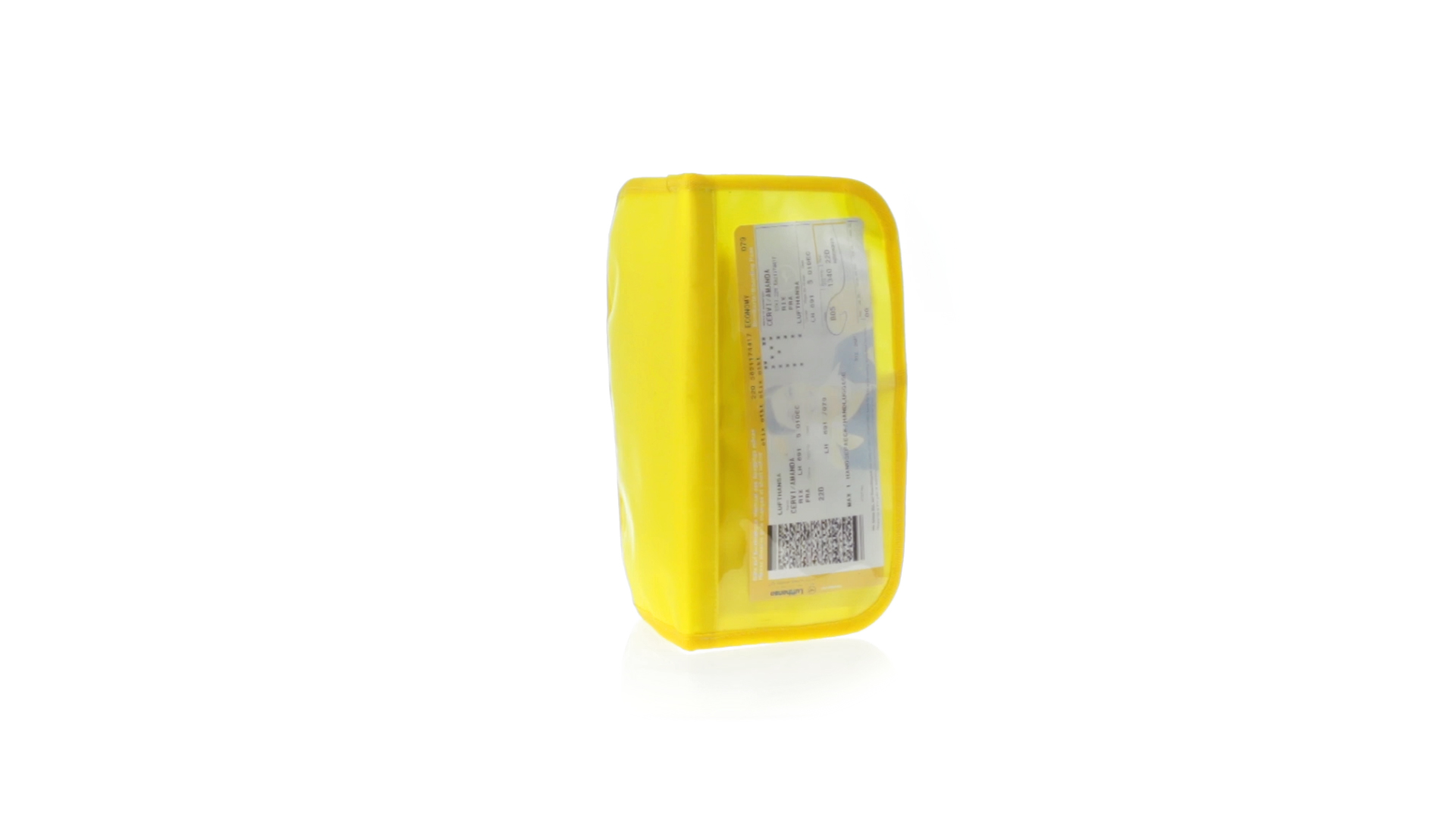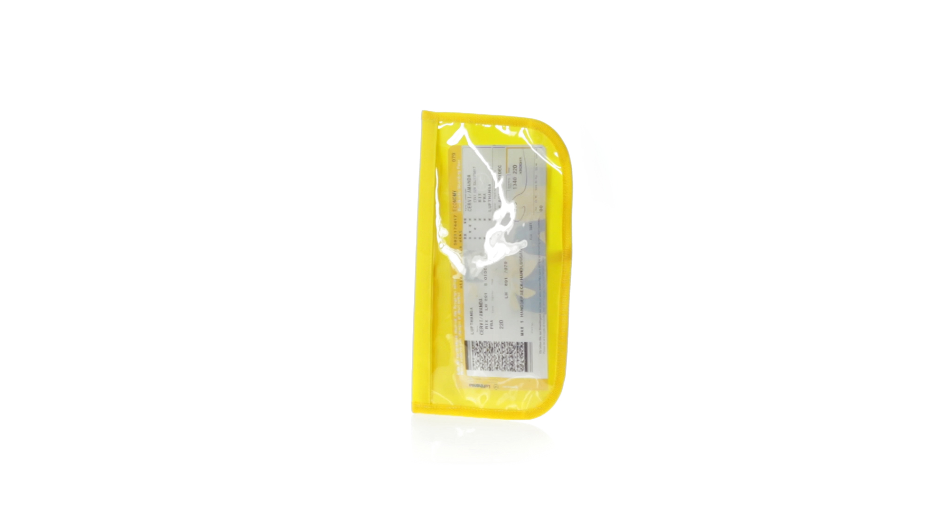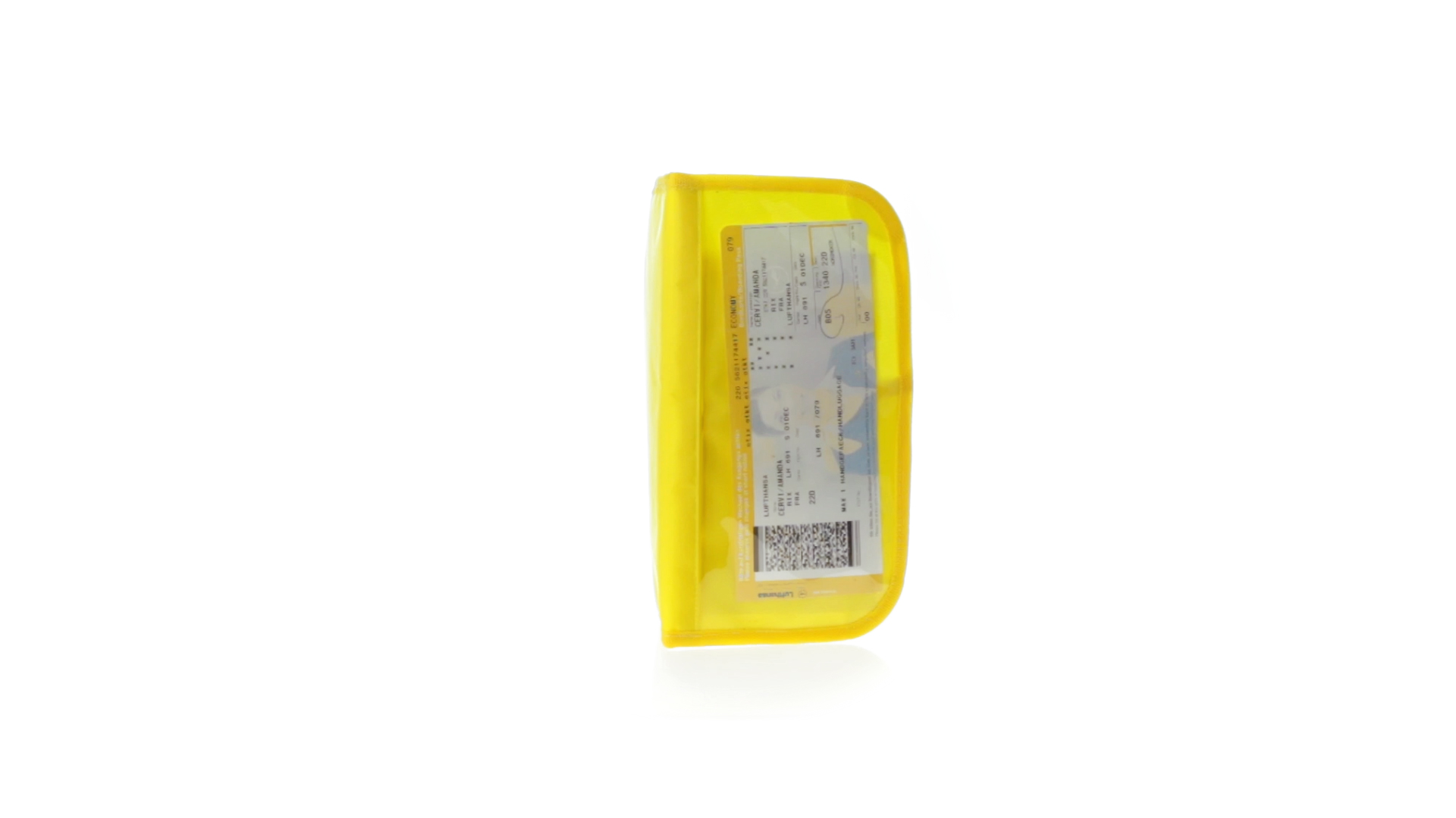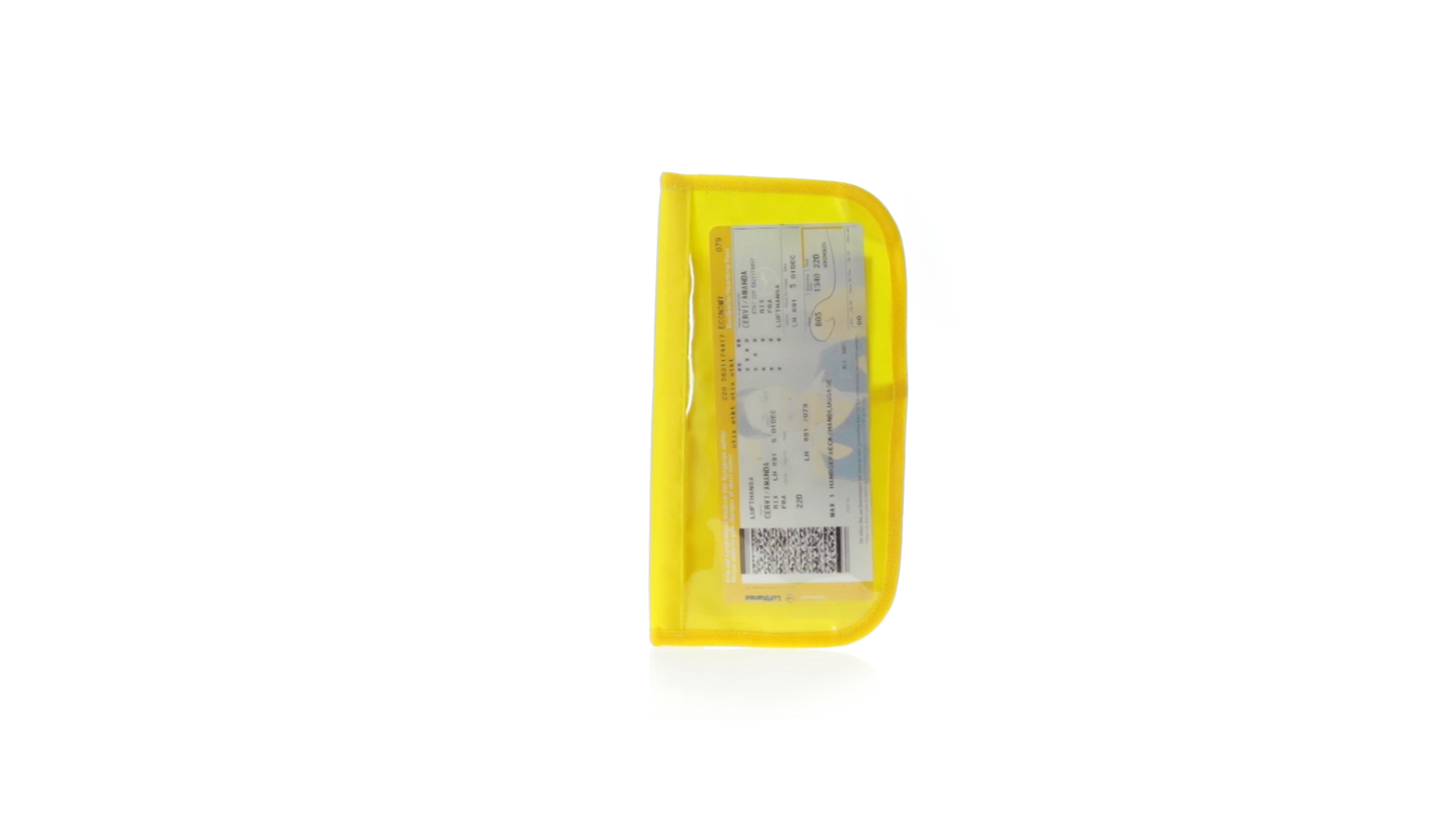 Dokumentenhülle aus 420D Polyester mit originellem Design in lebendigen Farben. Gepolsterte Hülle mit transparentem Fenster für das Ticket, farblich passender Paspel und Klettverschluss sowie mehreren Innenfächern und Stifthalter.