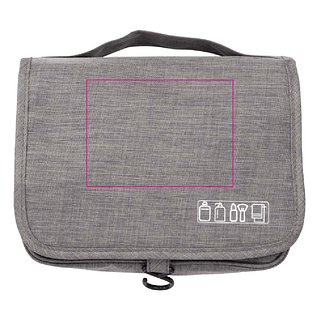 Praktischer Kulturbeutel mit verschiedenen Fächern. Der Haken ermöglicht es, ihn aufzuhängen.
