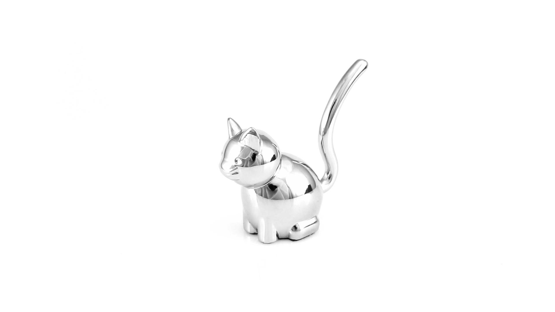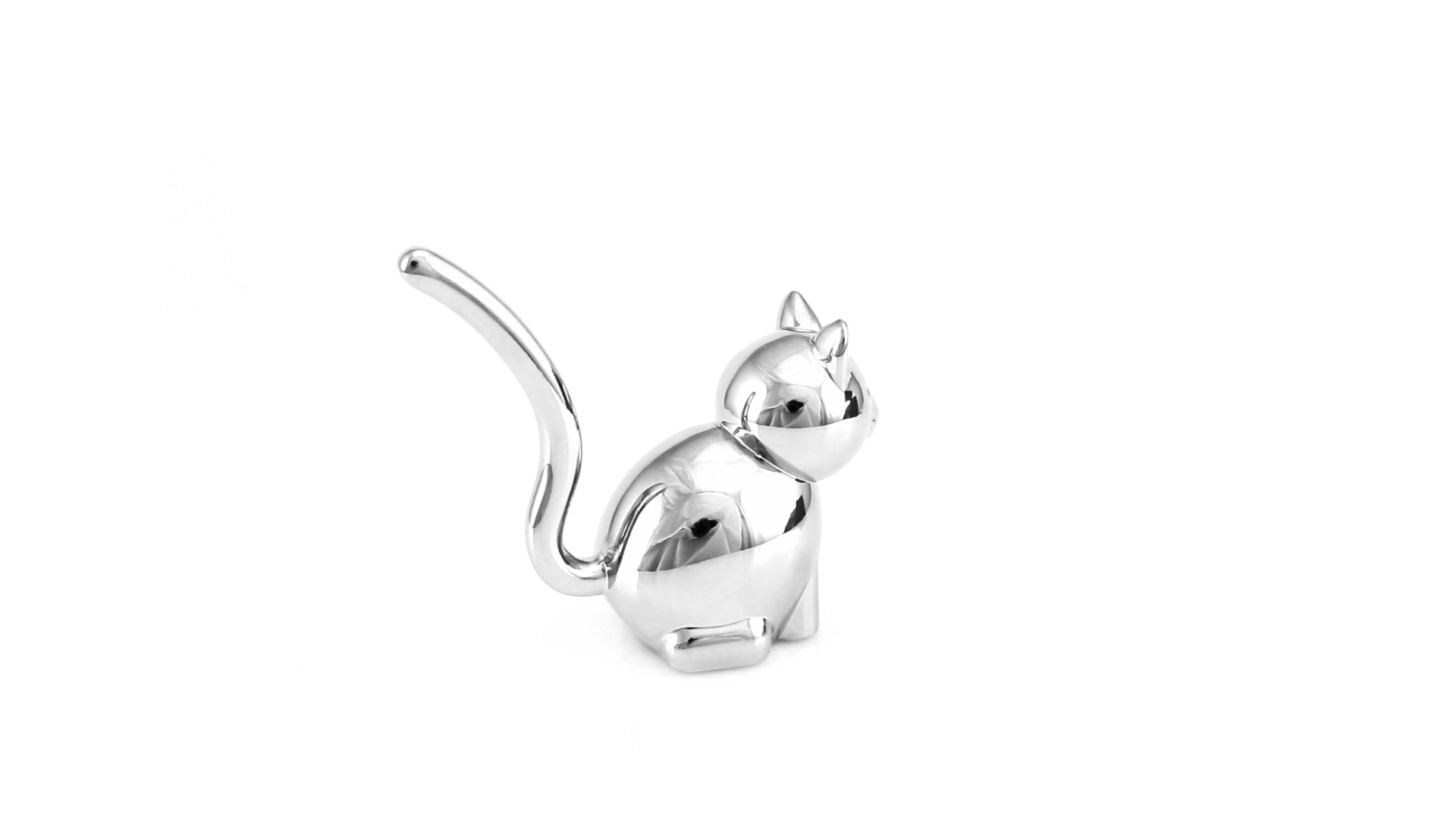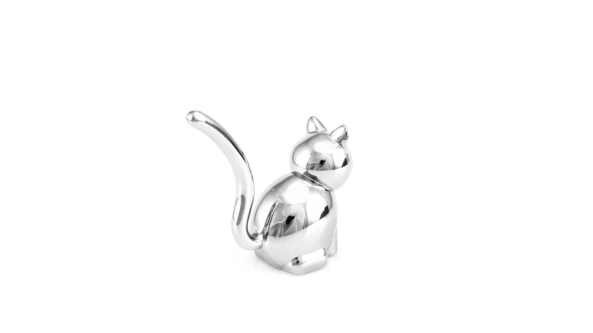 Origineller Ringhalter aus Metall mit Schwan- und Katzen-Design.