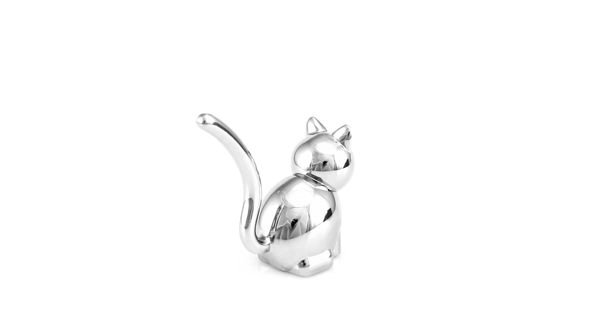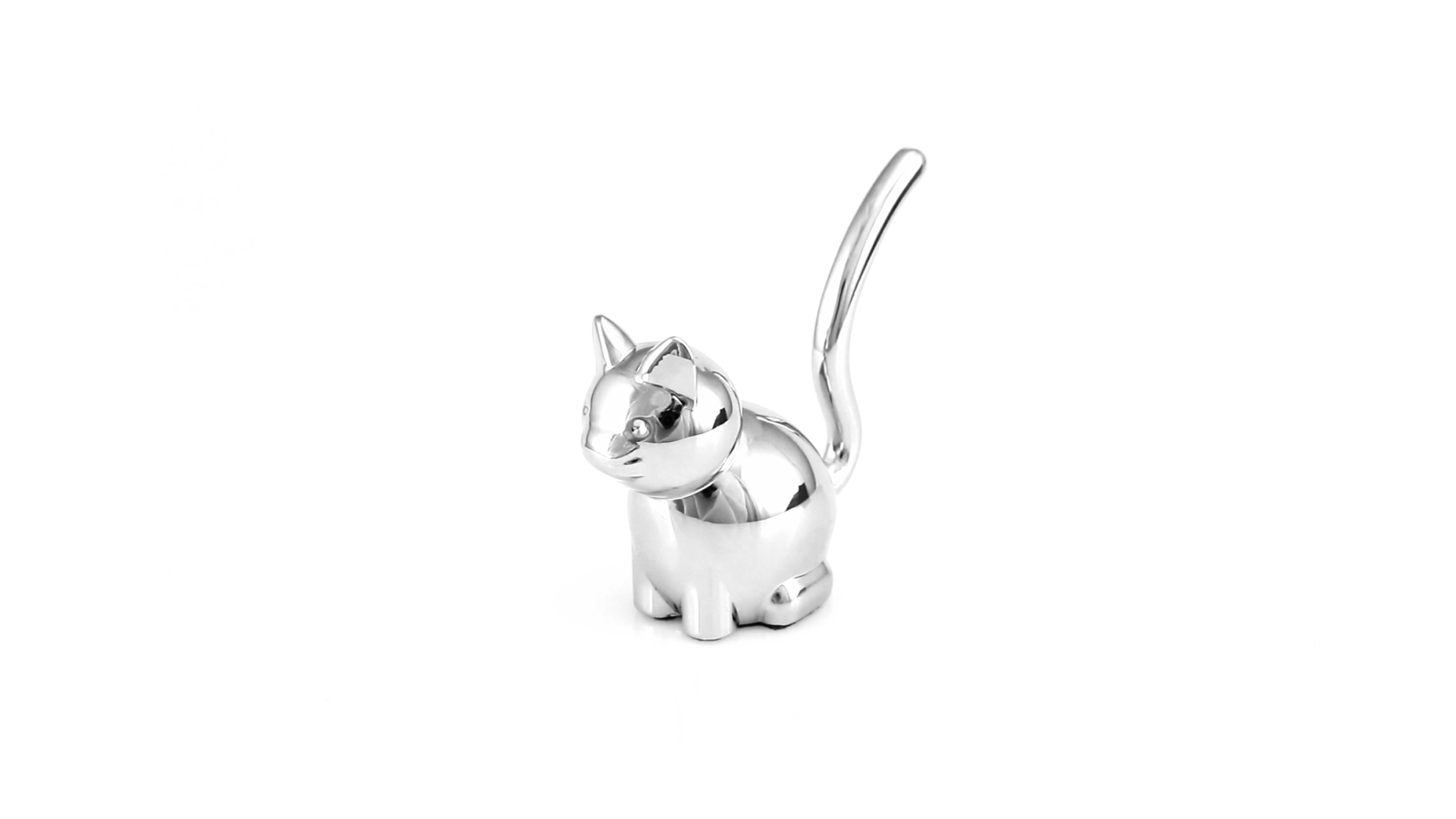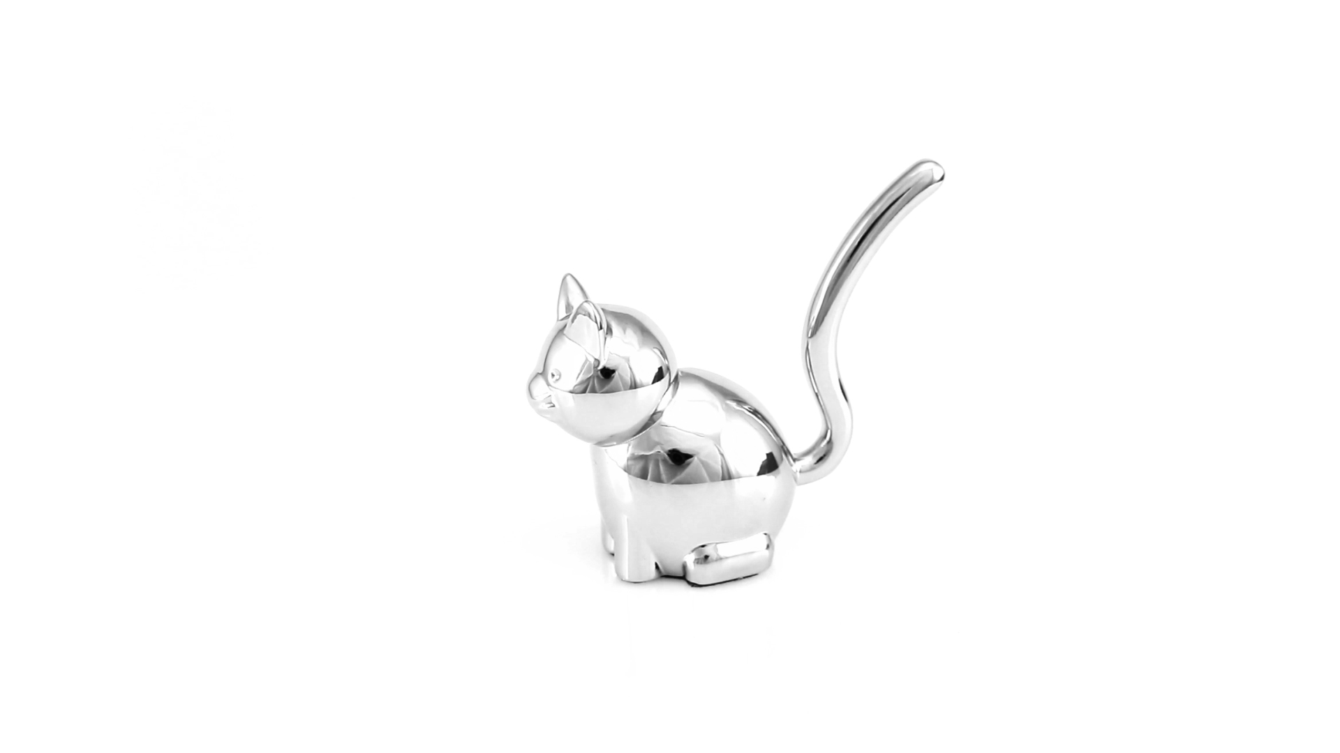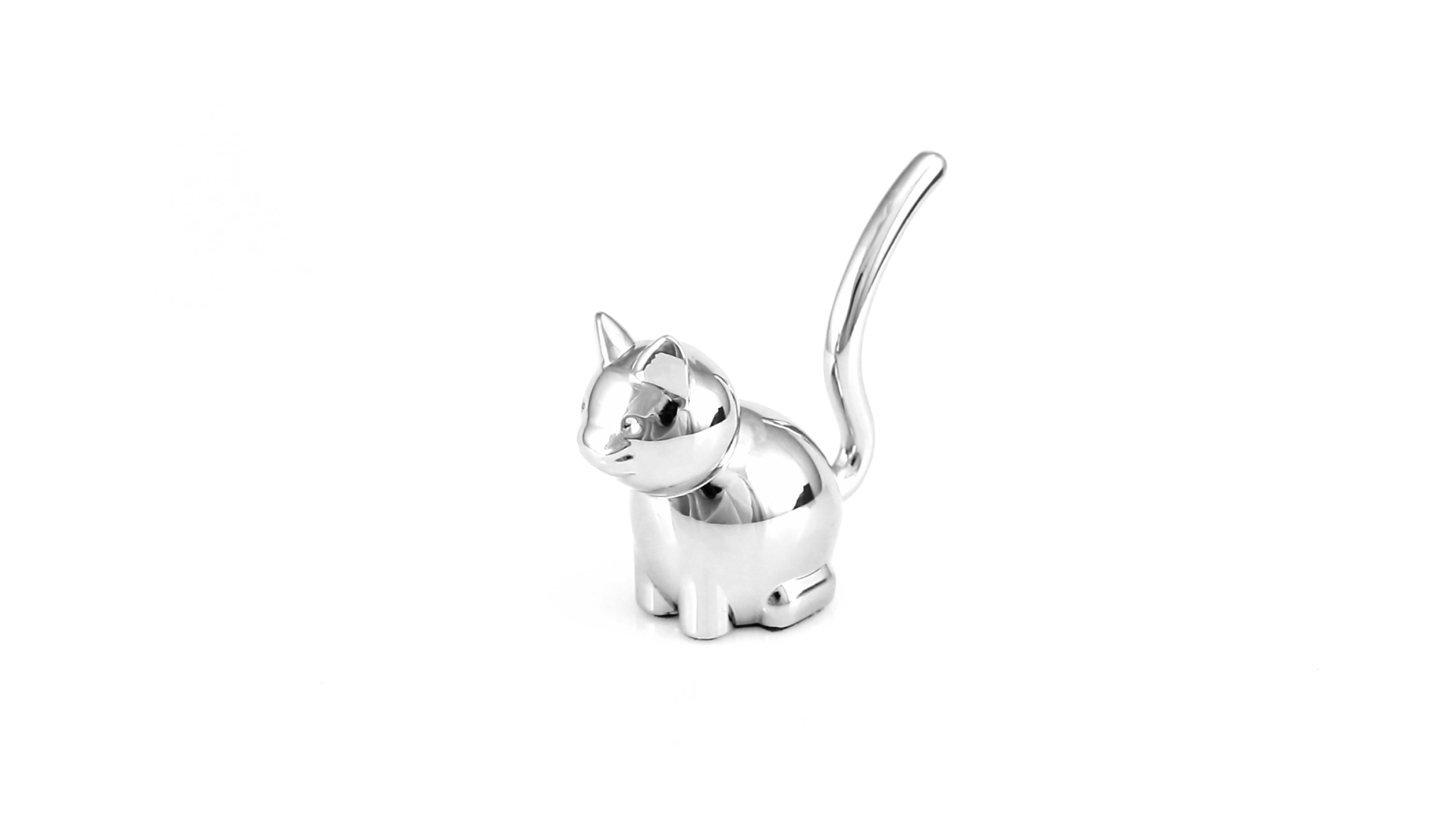 Origineller Ringhalter aus Metall mit Schwan- und Katzen-Design.