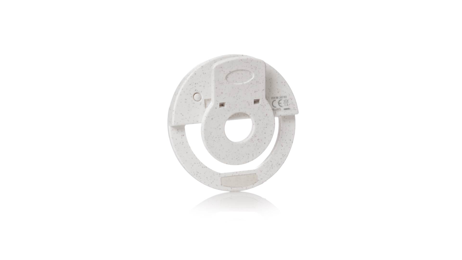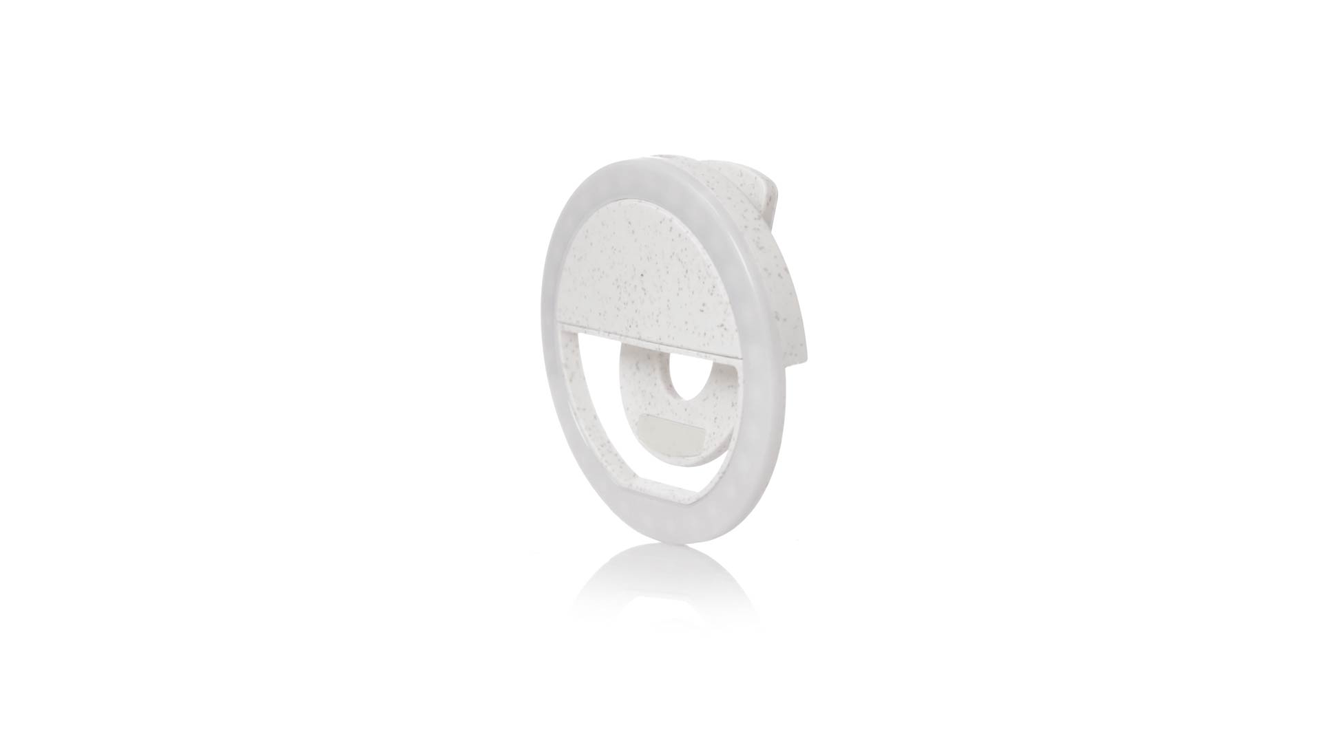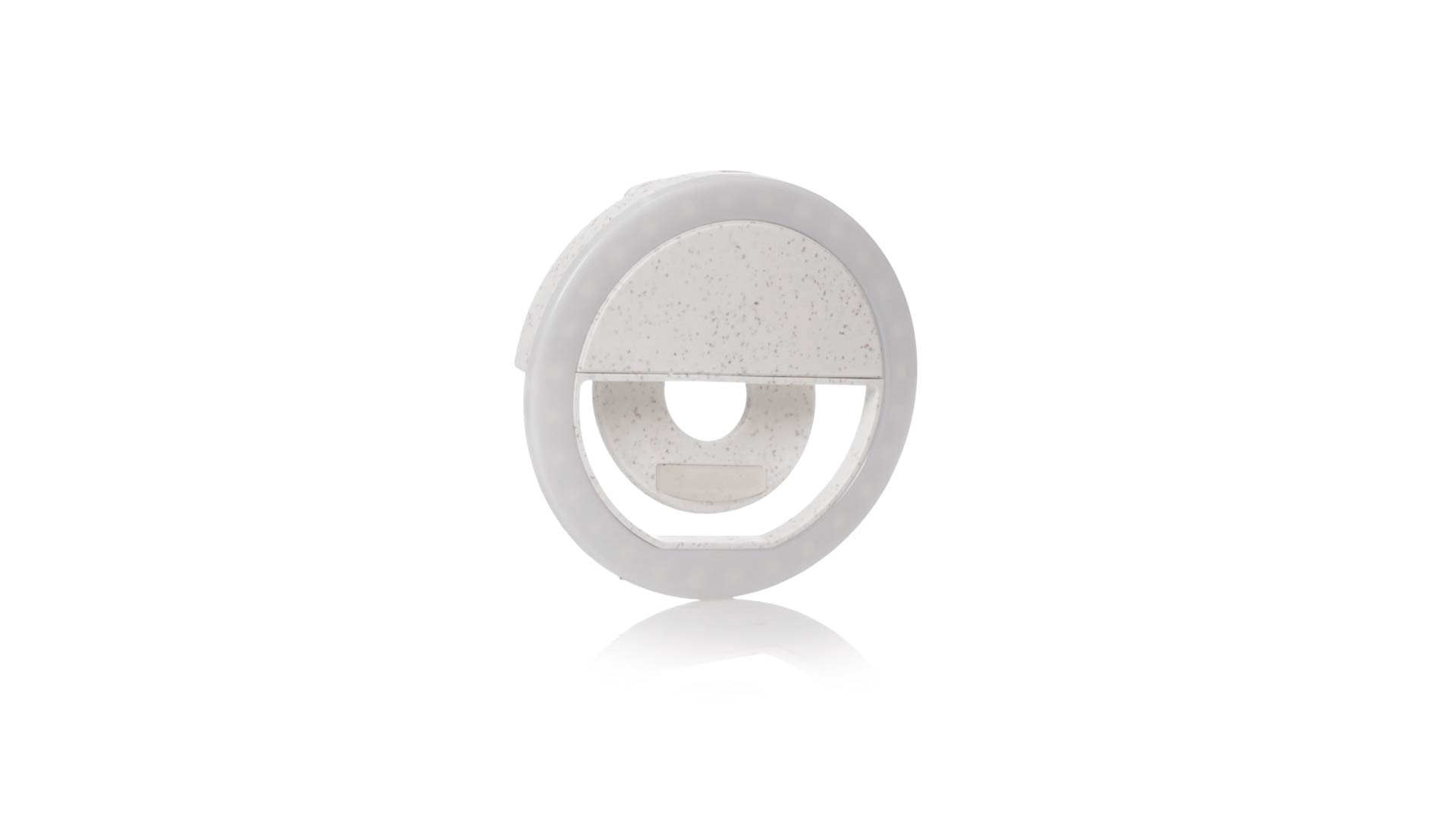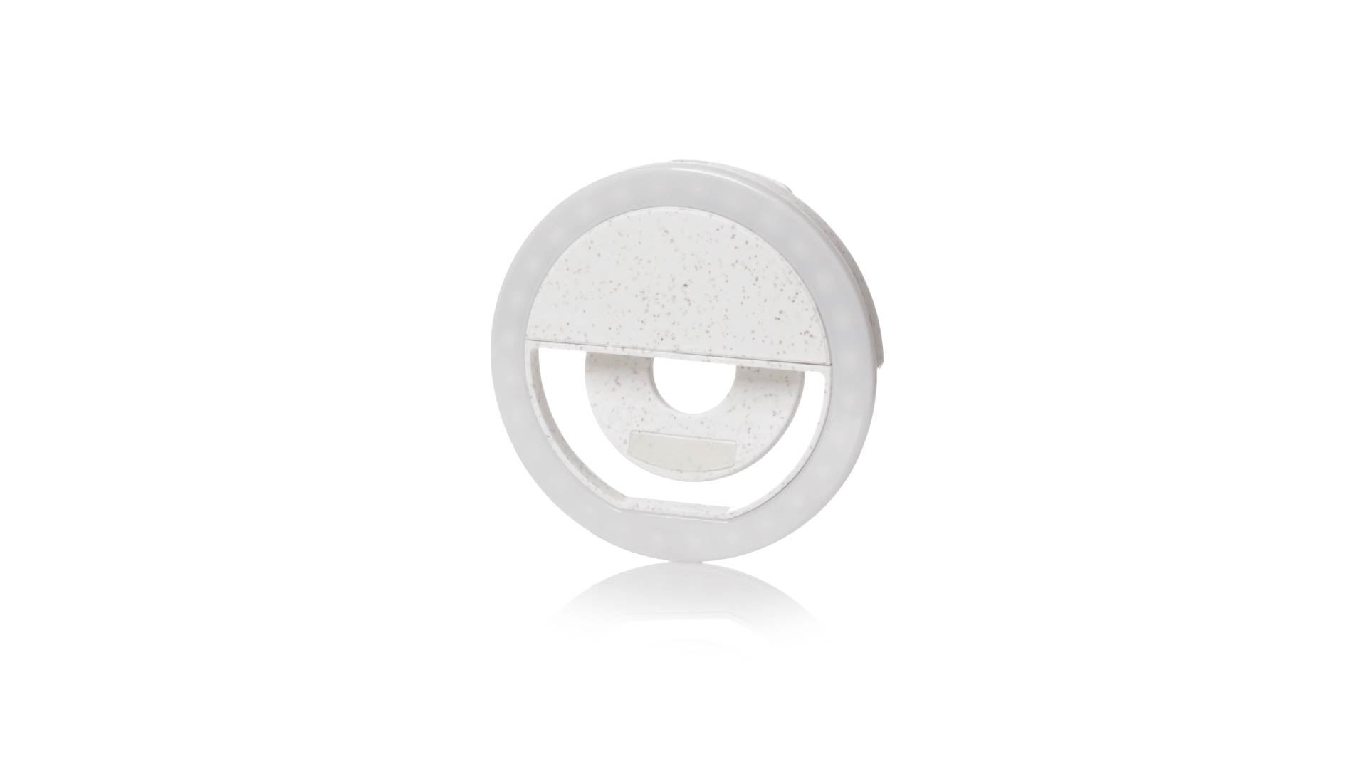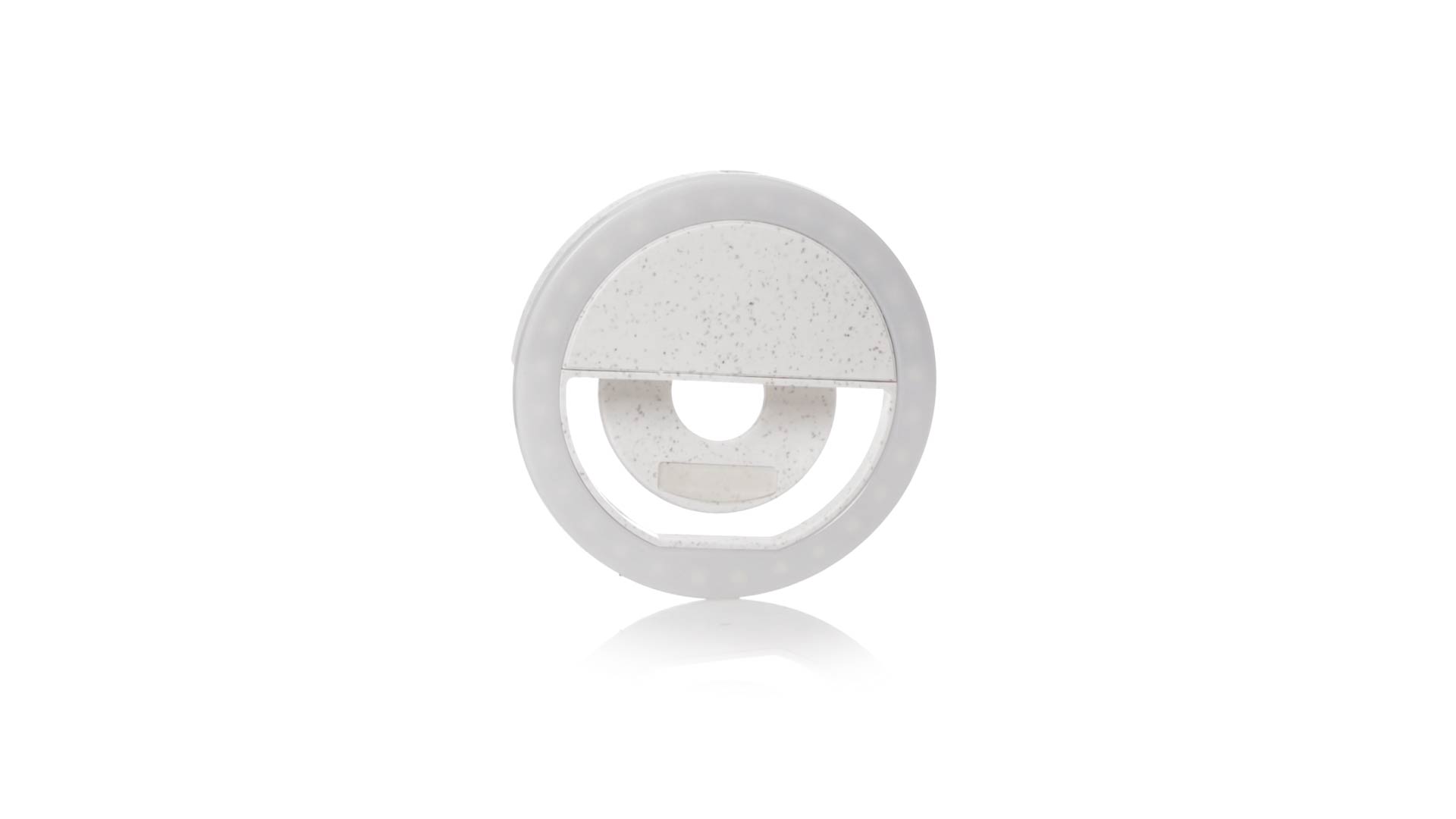 LED-Lichtring für Smartphones, hergestellt aus widerstandsfähigem Weizenstroh. Anpassbar an jedes Smartphone, mit 36 LEDs und 3 Stufen der Lichtintensität. 80 mAh Akku und USB wiederaufladbar (Micro-USB-Kabel enthalten). Präsentiert in einer attraktiven Design-Box, mit Gebrauchsanweisung in Englisch und Spanisch erhältlich.Weizenstroh fördert die Verwendung von natürlichen Rohstoffen und reduziert so den Schadstoffausstoss.
