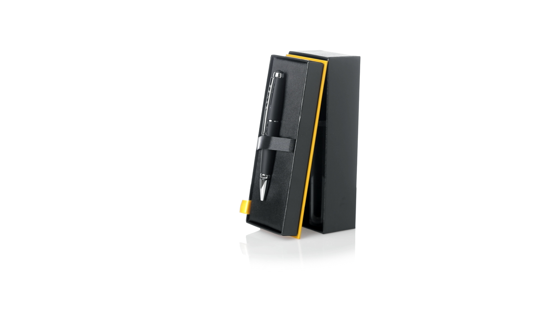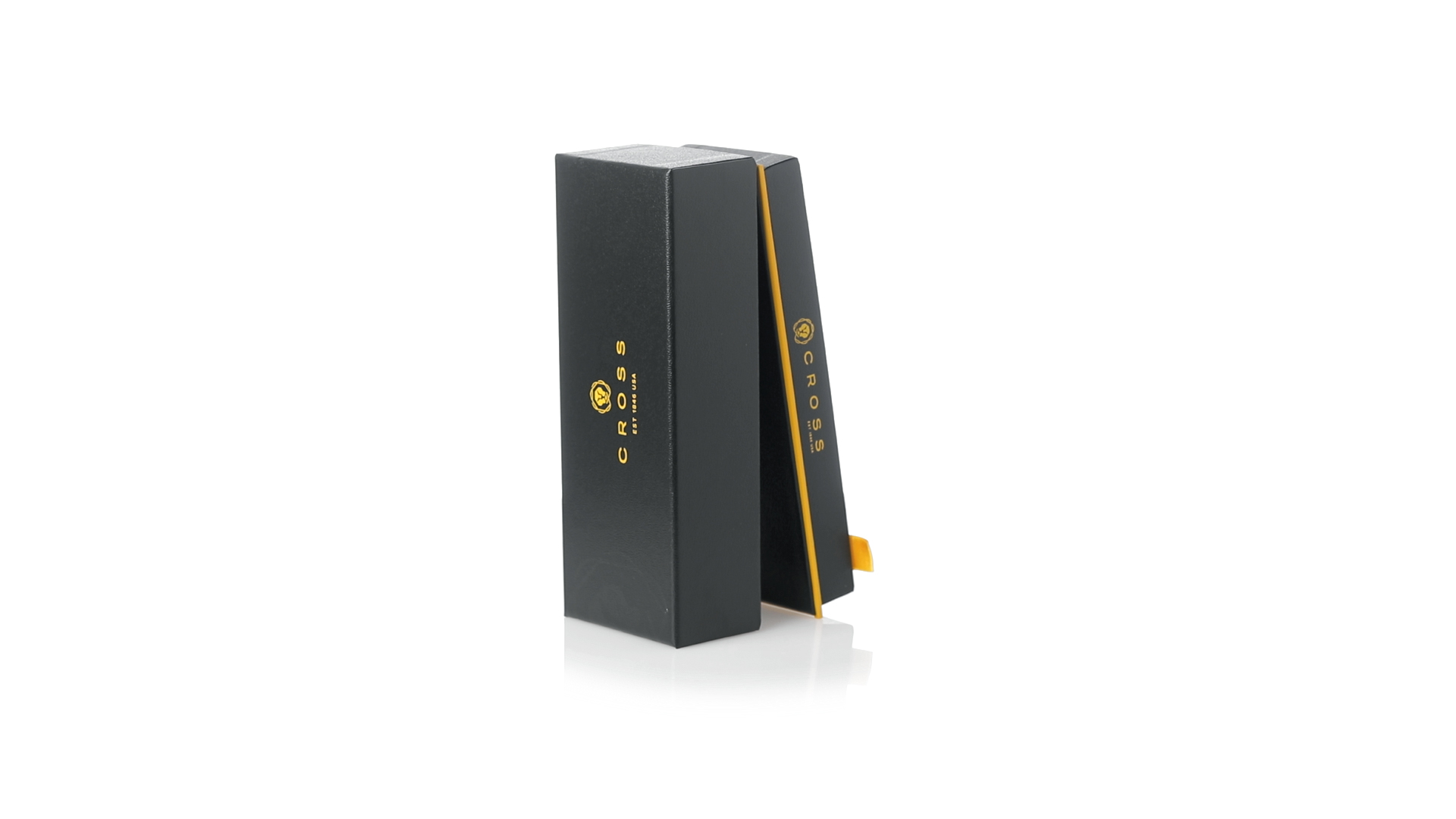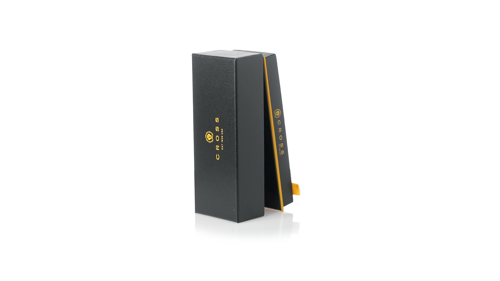 Cross Kugelschreiber Edge. Mit innovativem Schiebemechanismus, elegantem Design und gestanztem Branding auf dem Clip. Jumbo-Patrone und schwarze Geltinte für ein angenehmes Schreibgefühl. Präsentiert in einem eleganten, individuellen schwarzen Etui mit Markenlogo und Innenseite aus weichem Wildleder.