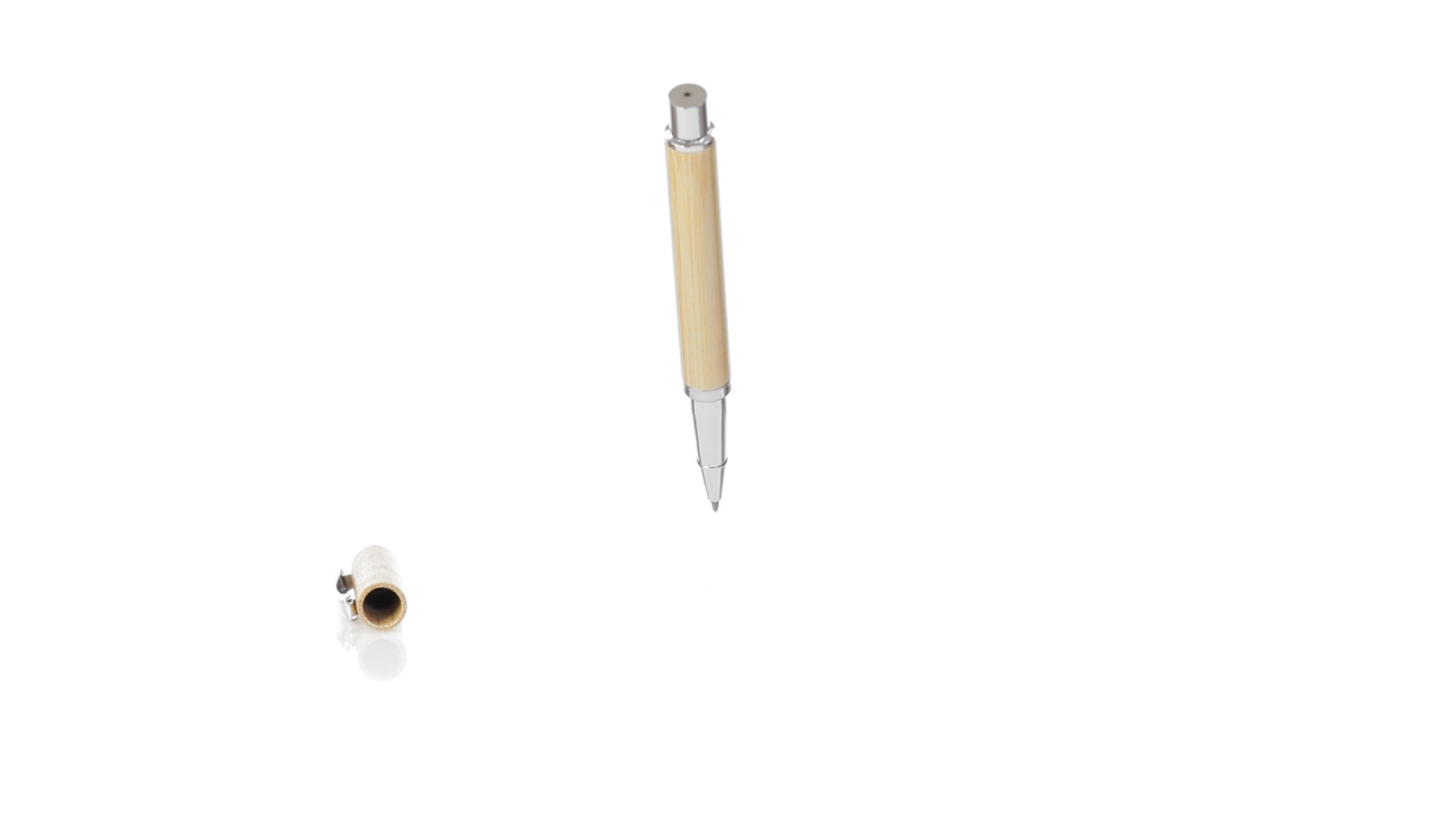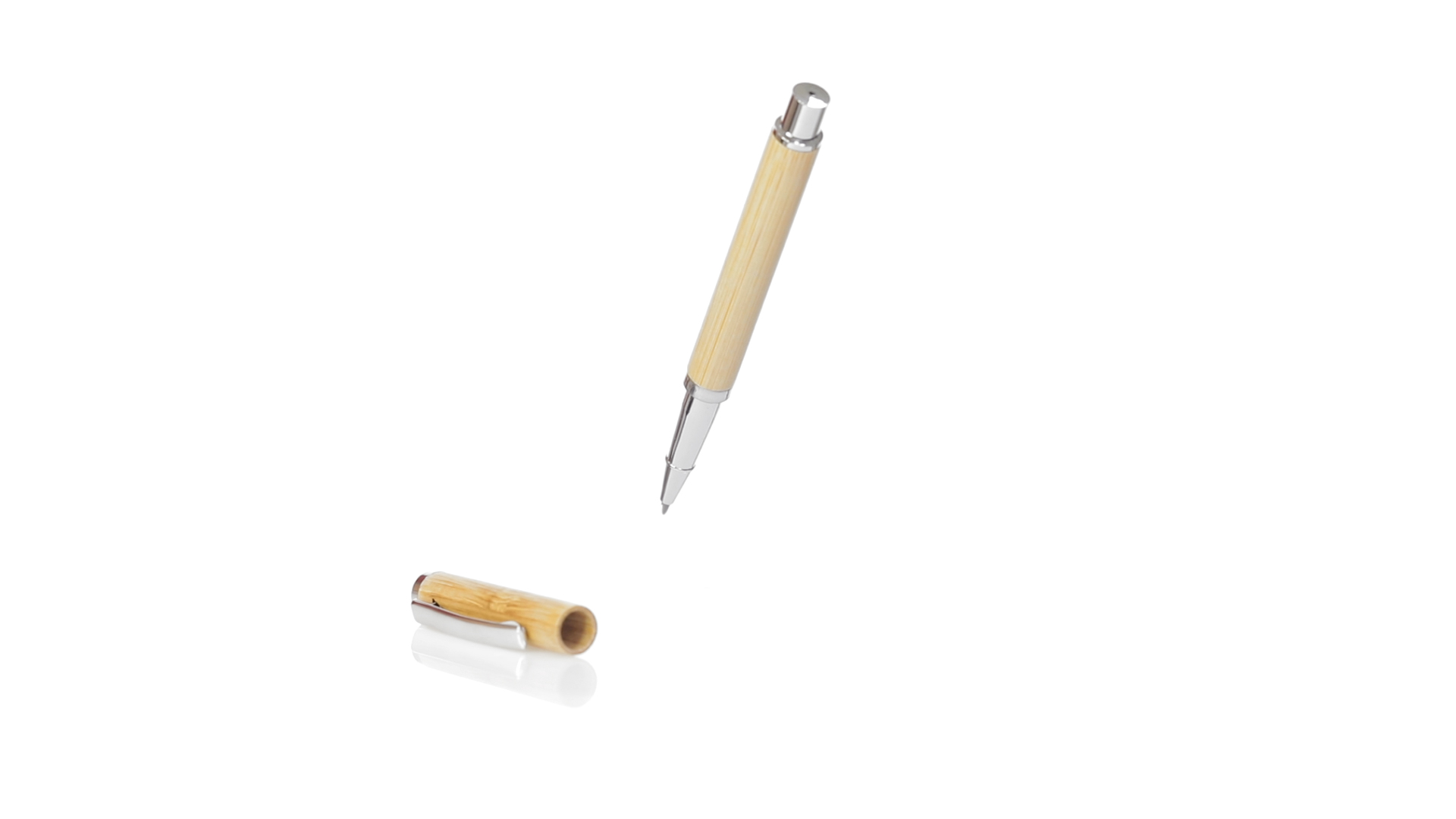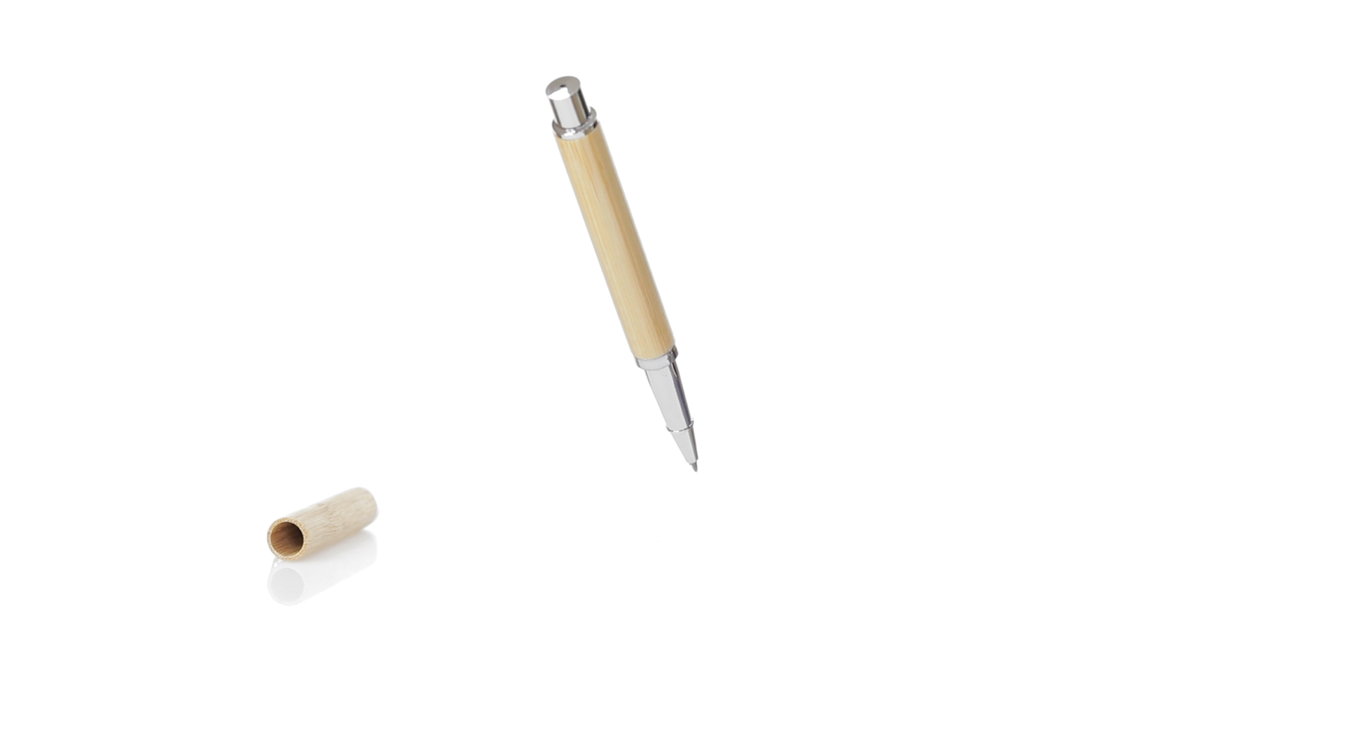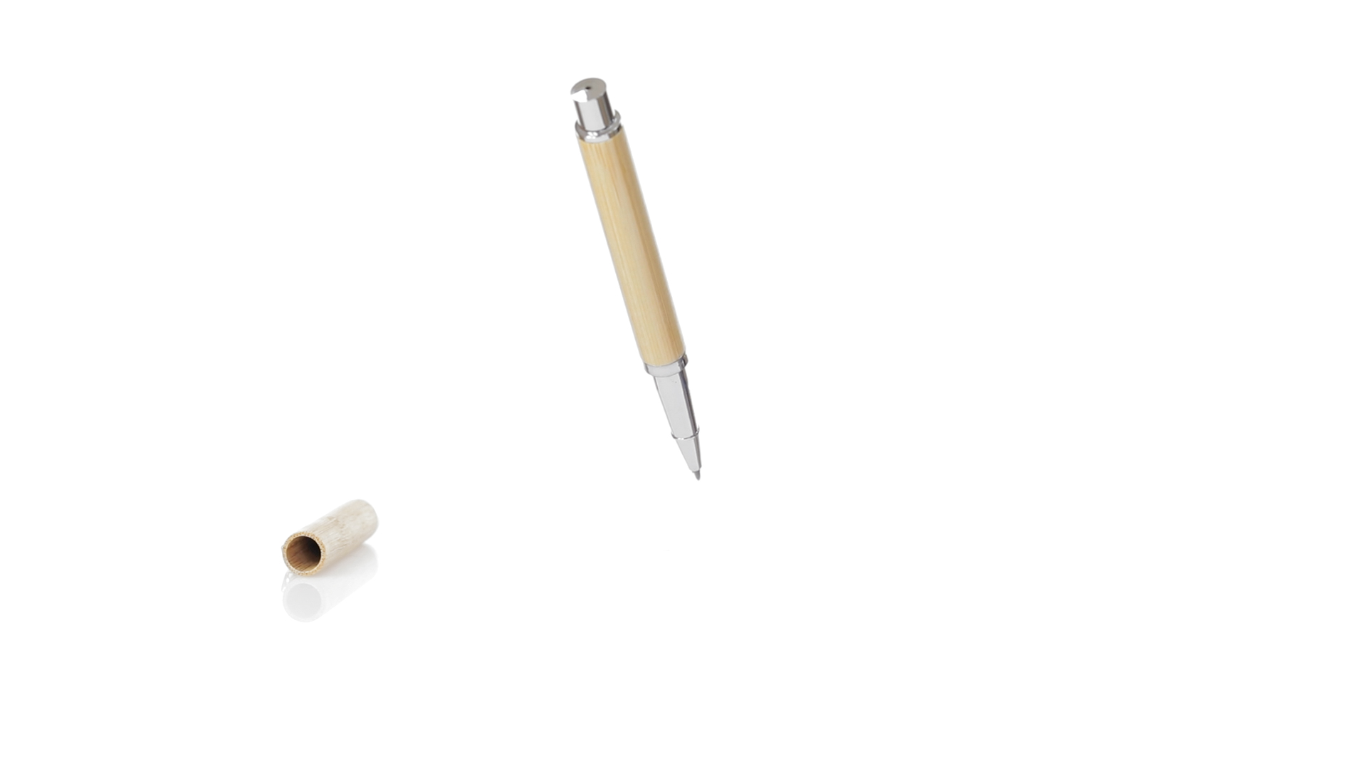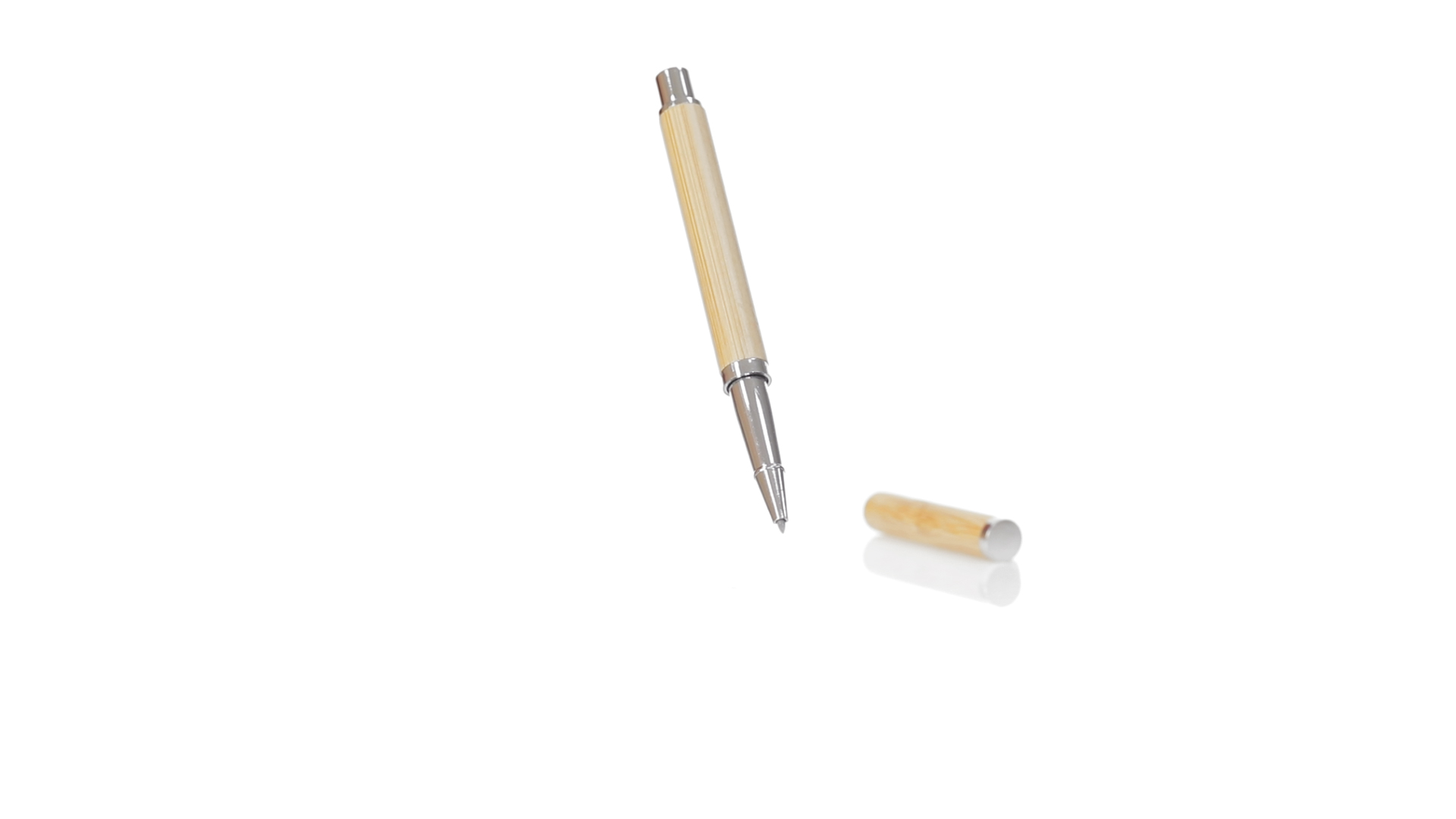 Tintenroller mit Deckel aus der Nature Line. Hergestellt aus Bambus, mit glattem Schaft und verchromten Beschlägen. Jumbo-Patrone, mit blauer Tinte.