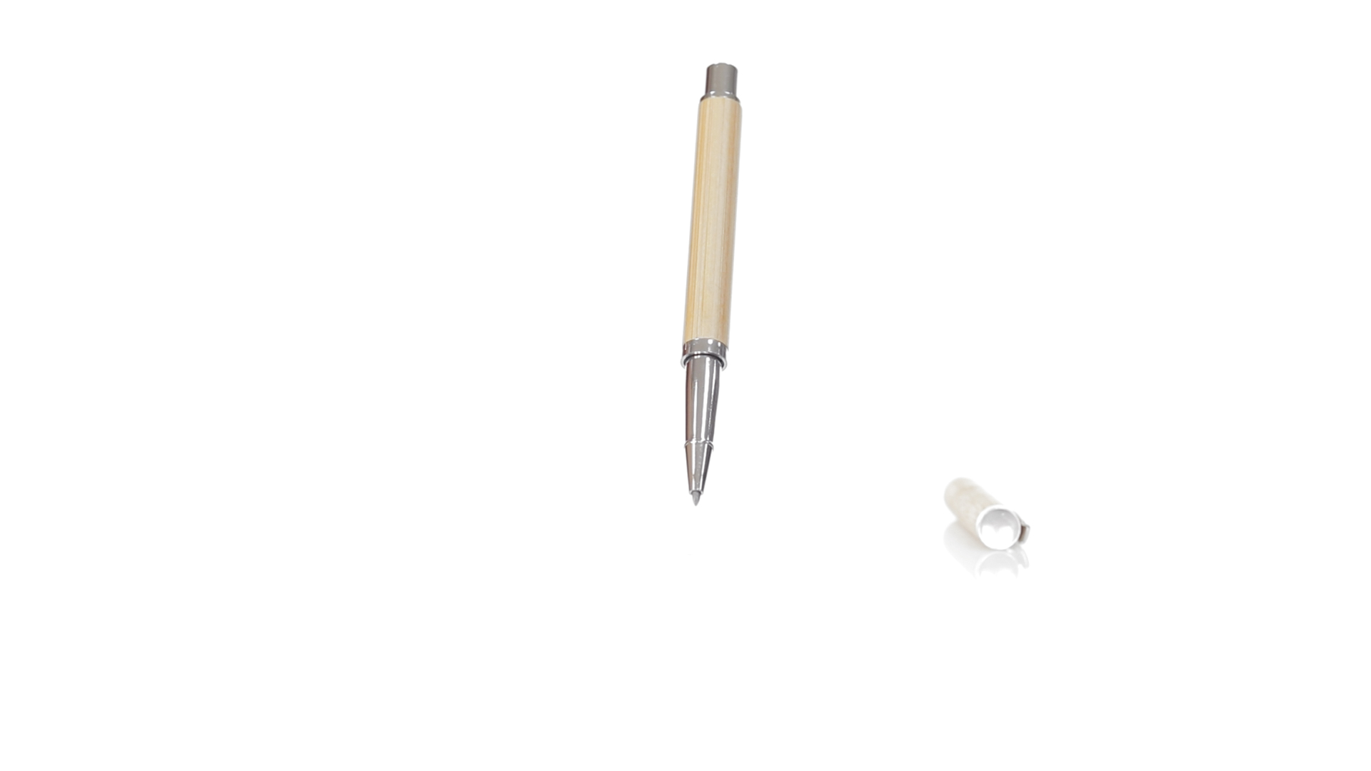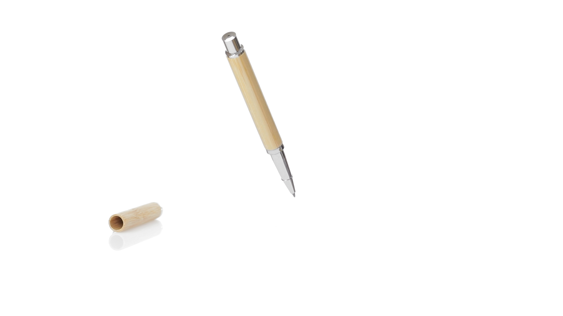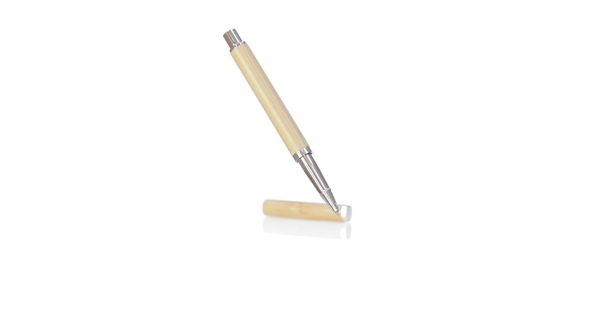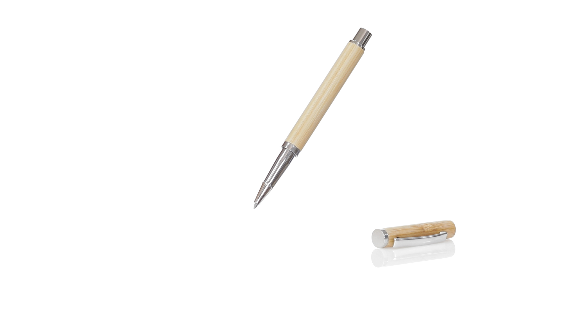 Tintenroller mit Deckel aus der Nature Line. Hergestellt aus Bambus, mit glattem Schaft und verchromten Beschlägen. Jumbo-Patrone, mit blauer Tinte.