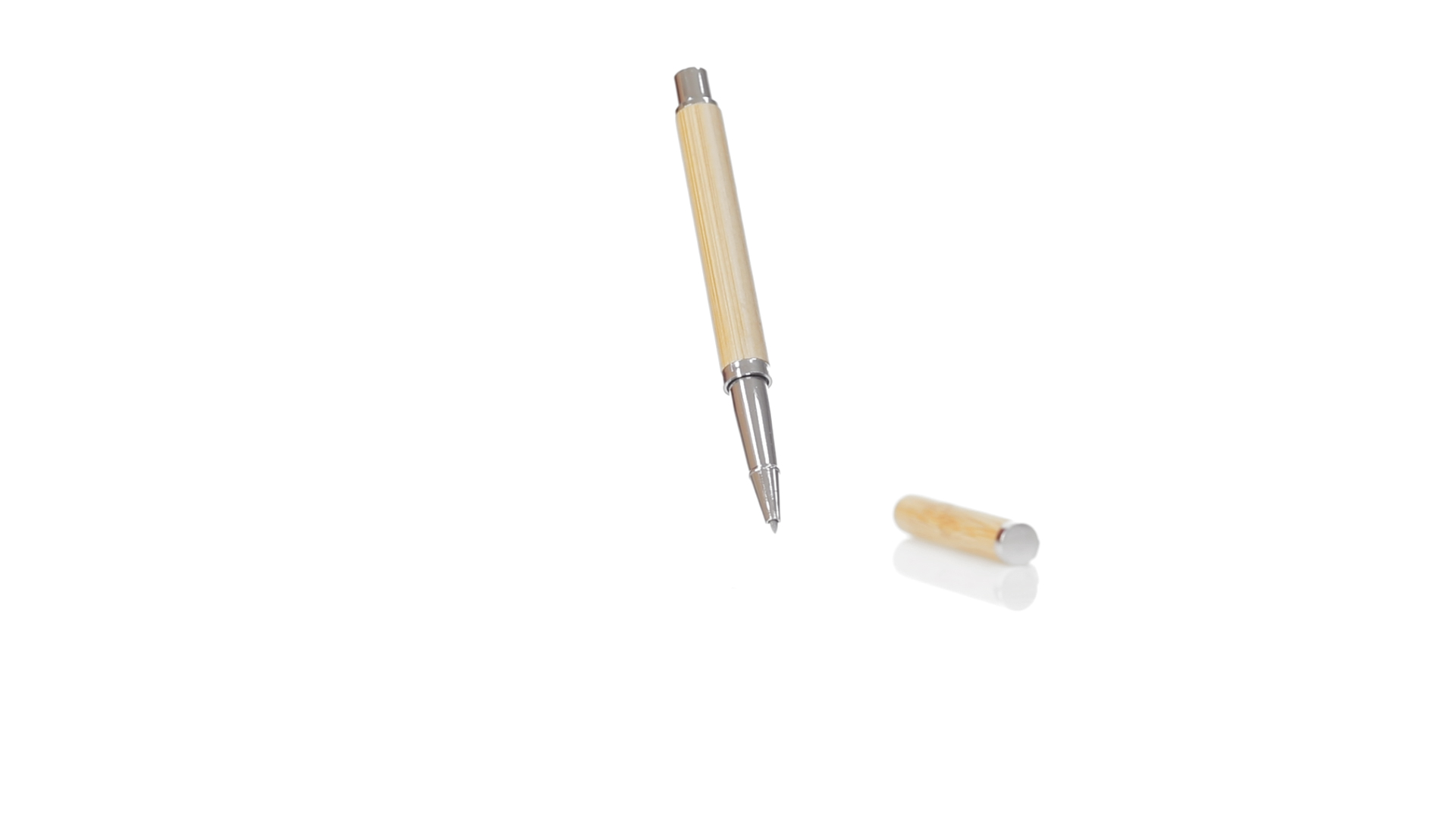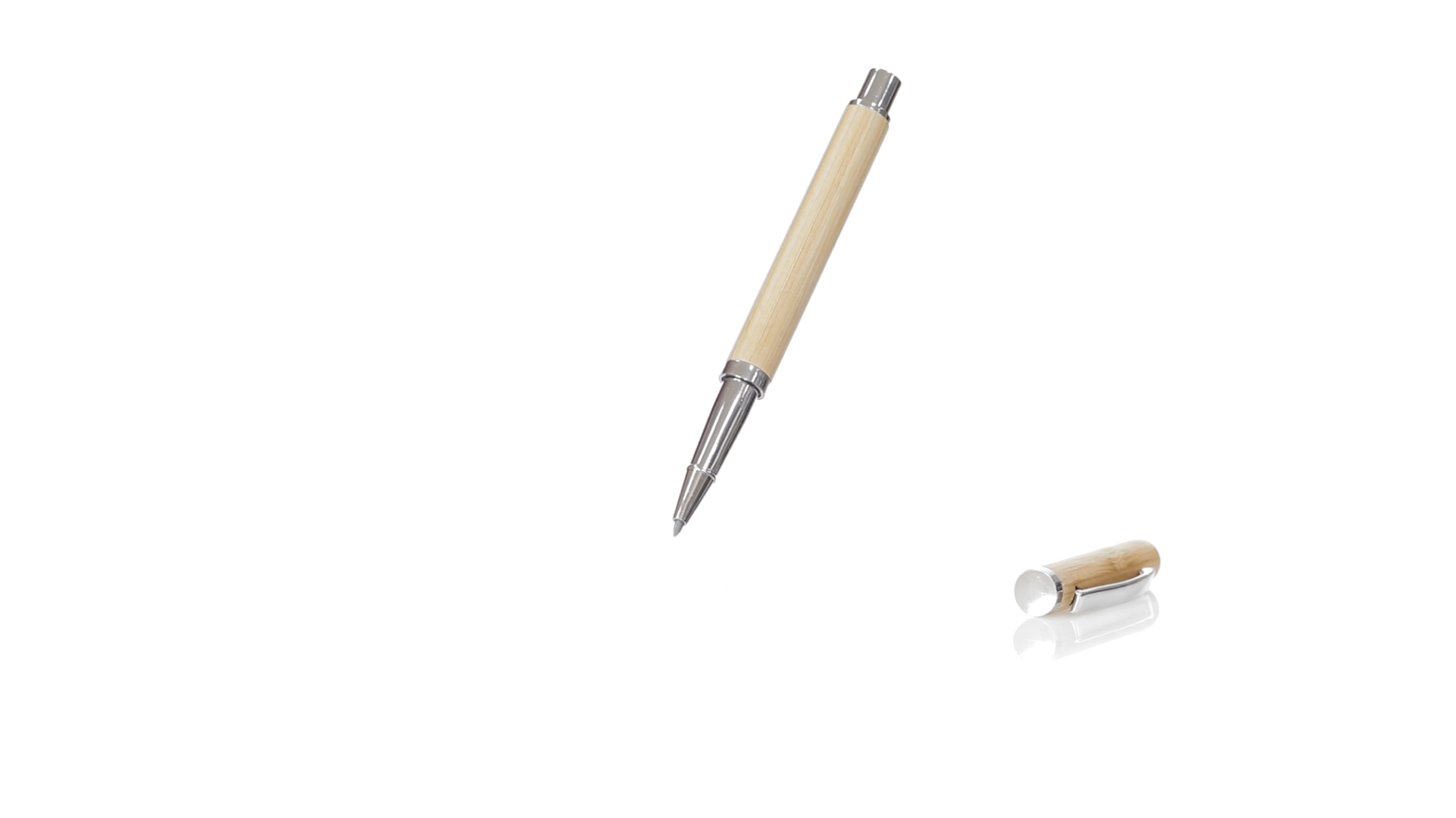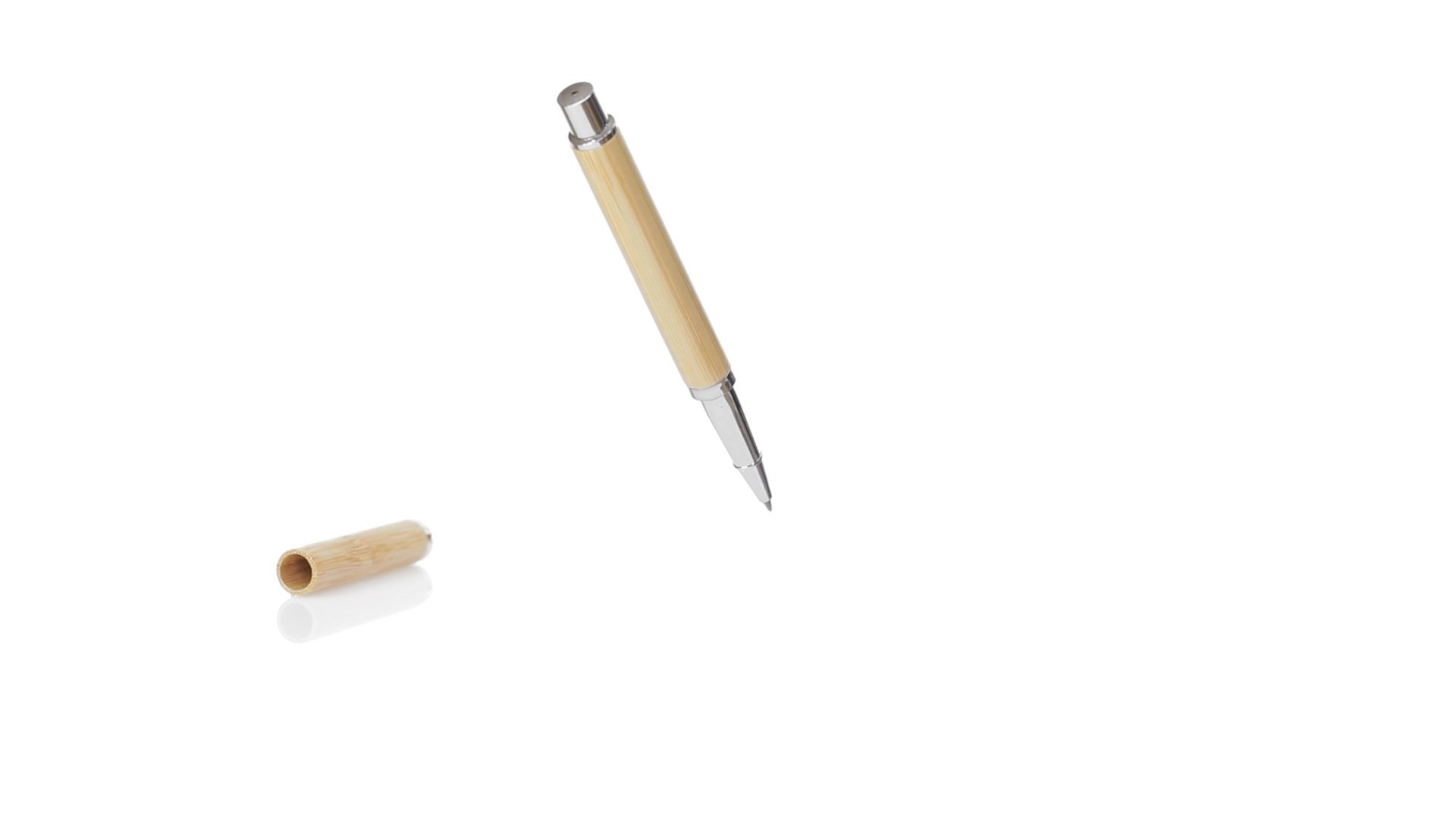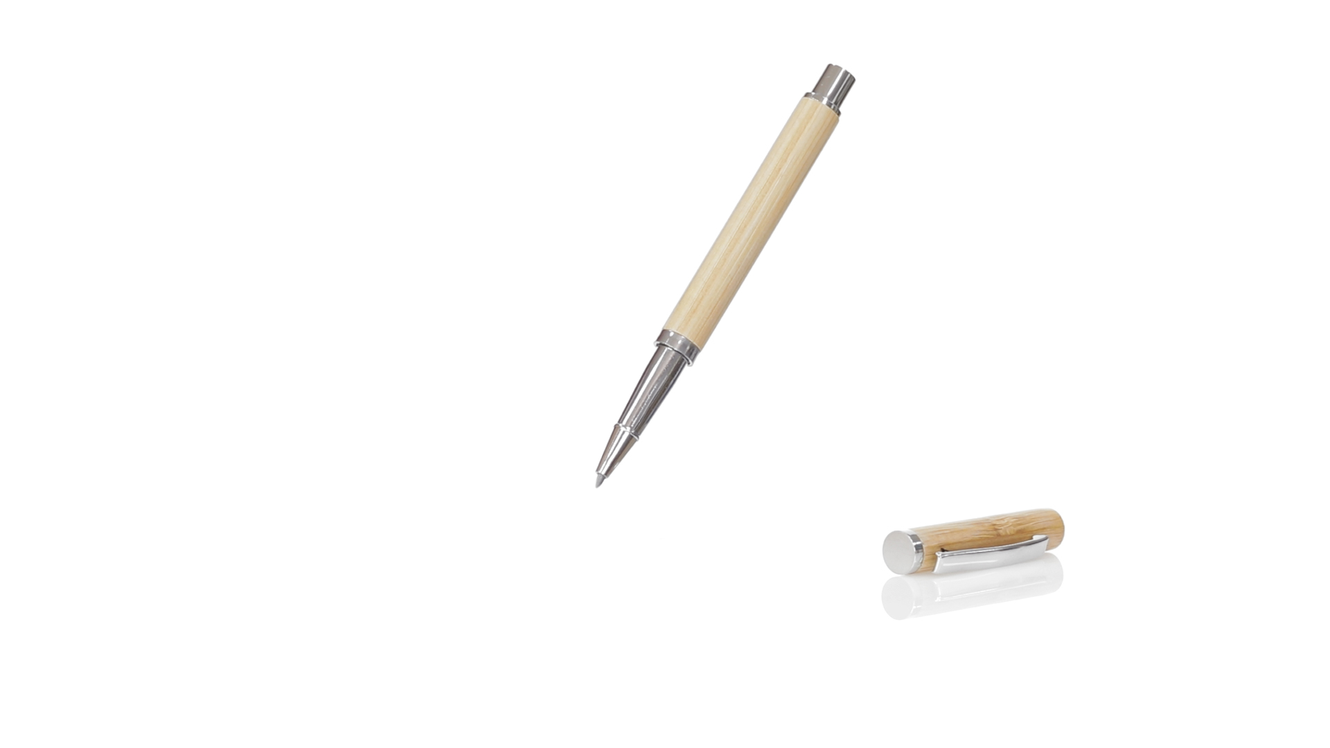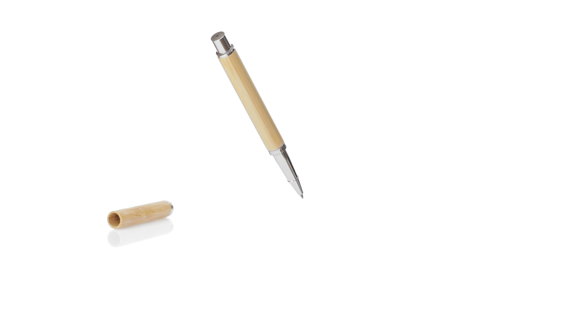 Tintenroller mit Deckel aus der Nature Line. Hergestellt aus Bambus, mit glattem Schaft und verchromten Beschlägen. Jumbo-Patrone, mit blauer Tinte.