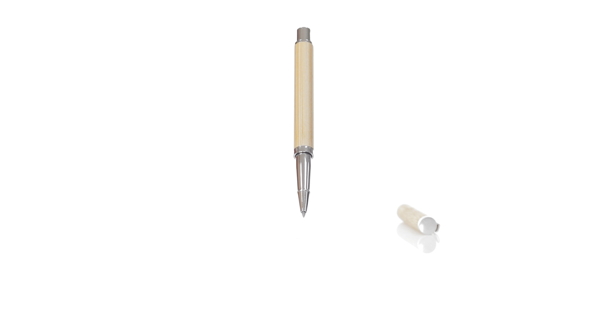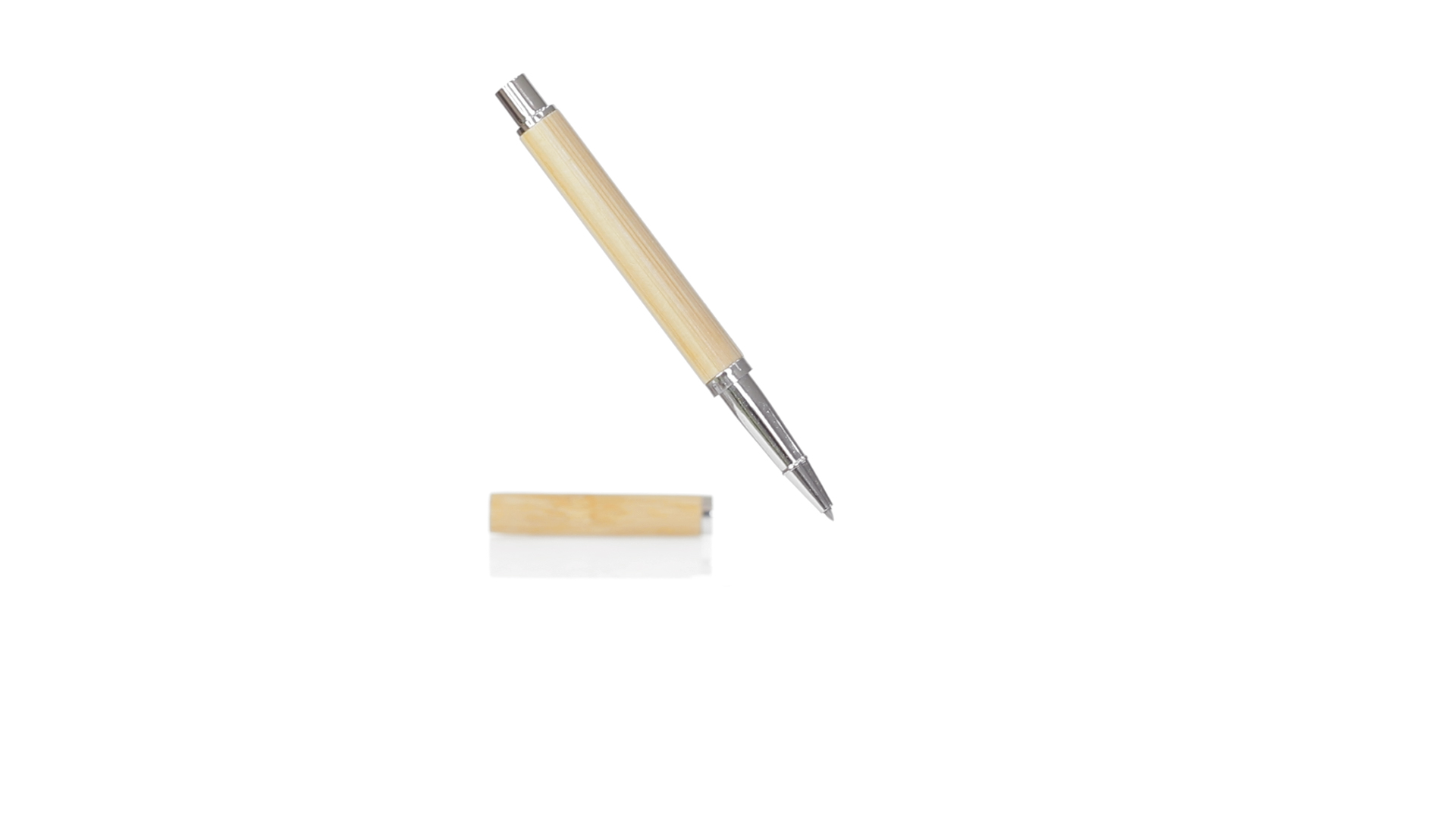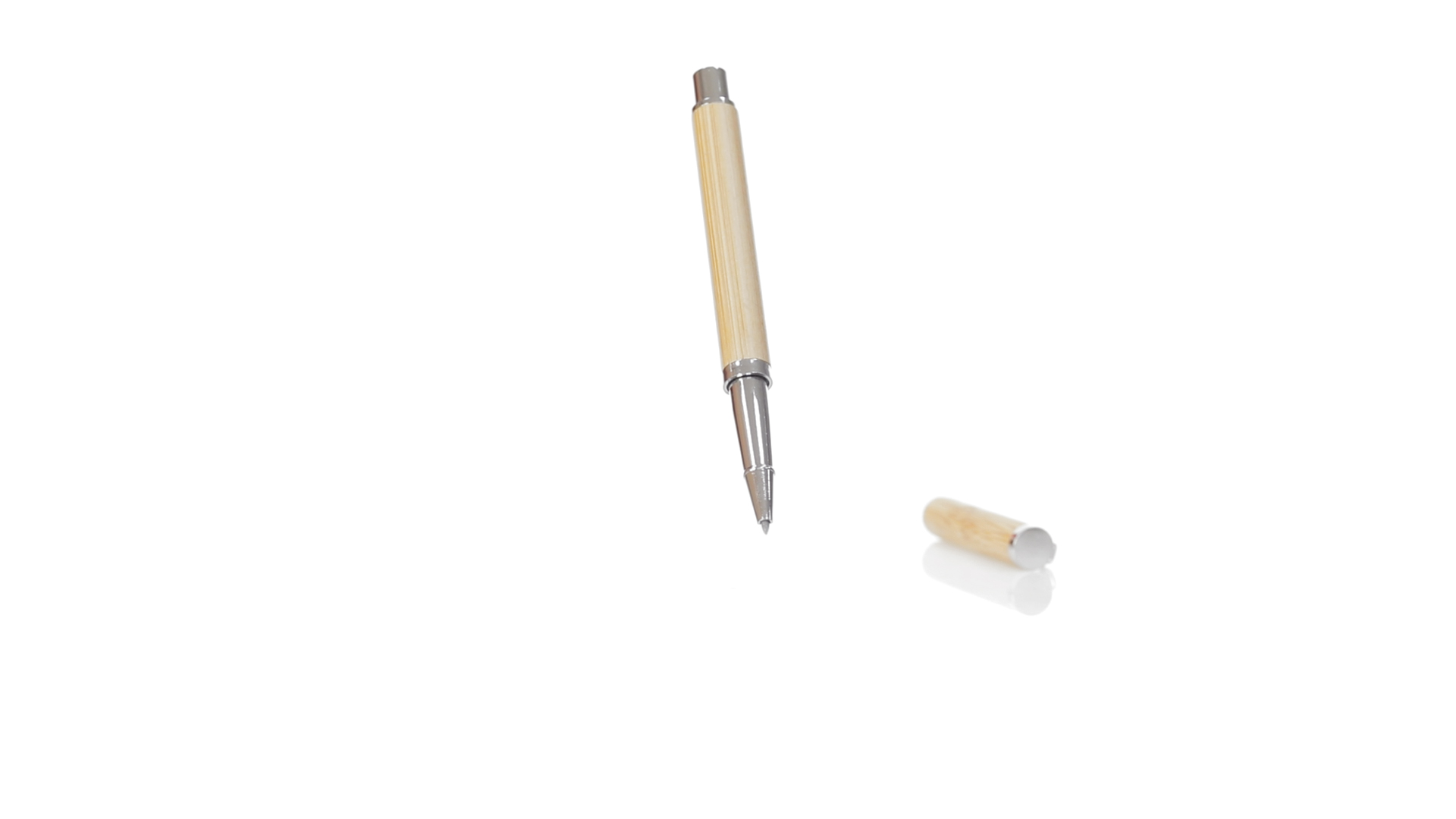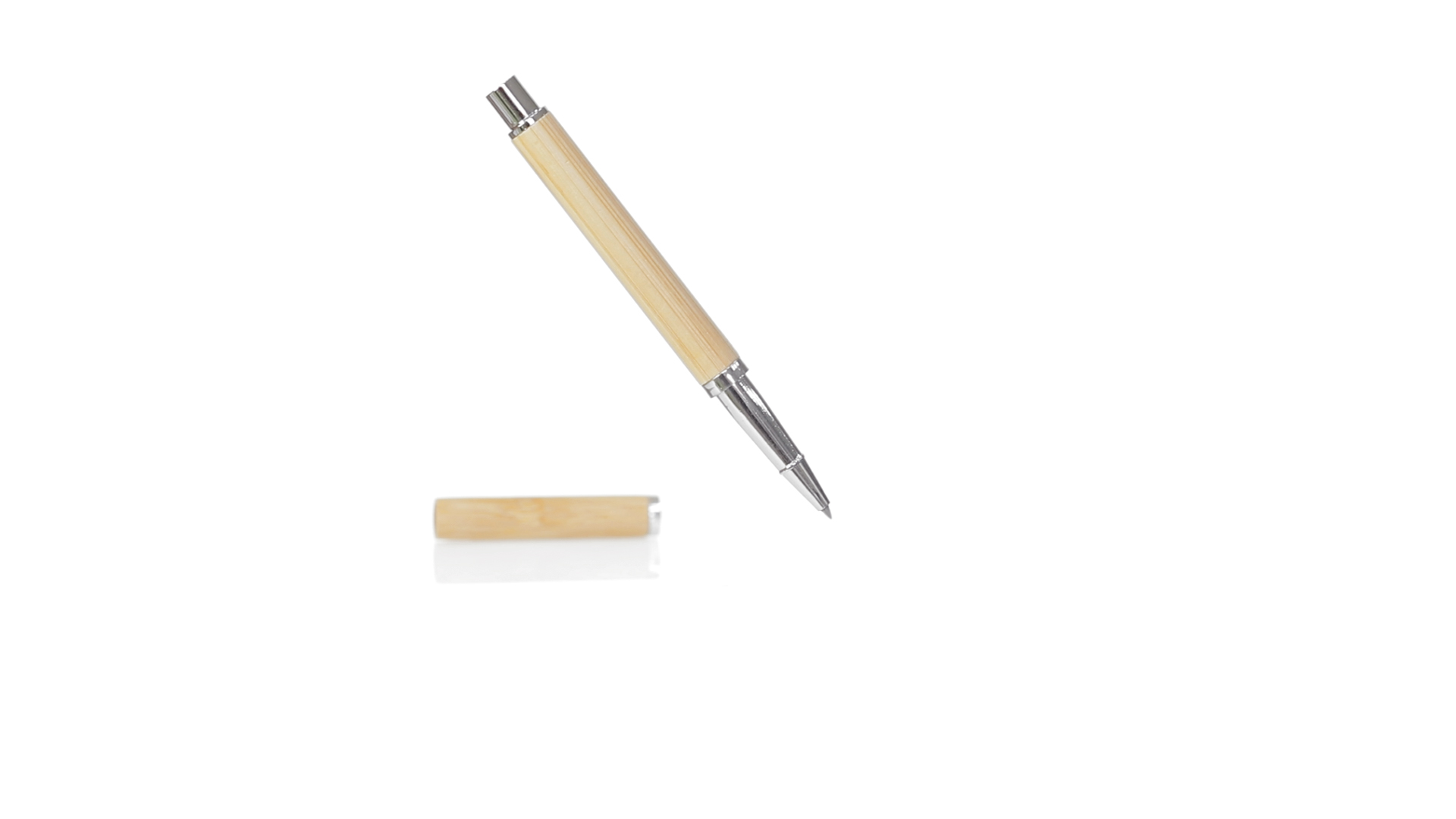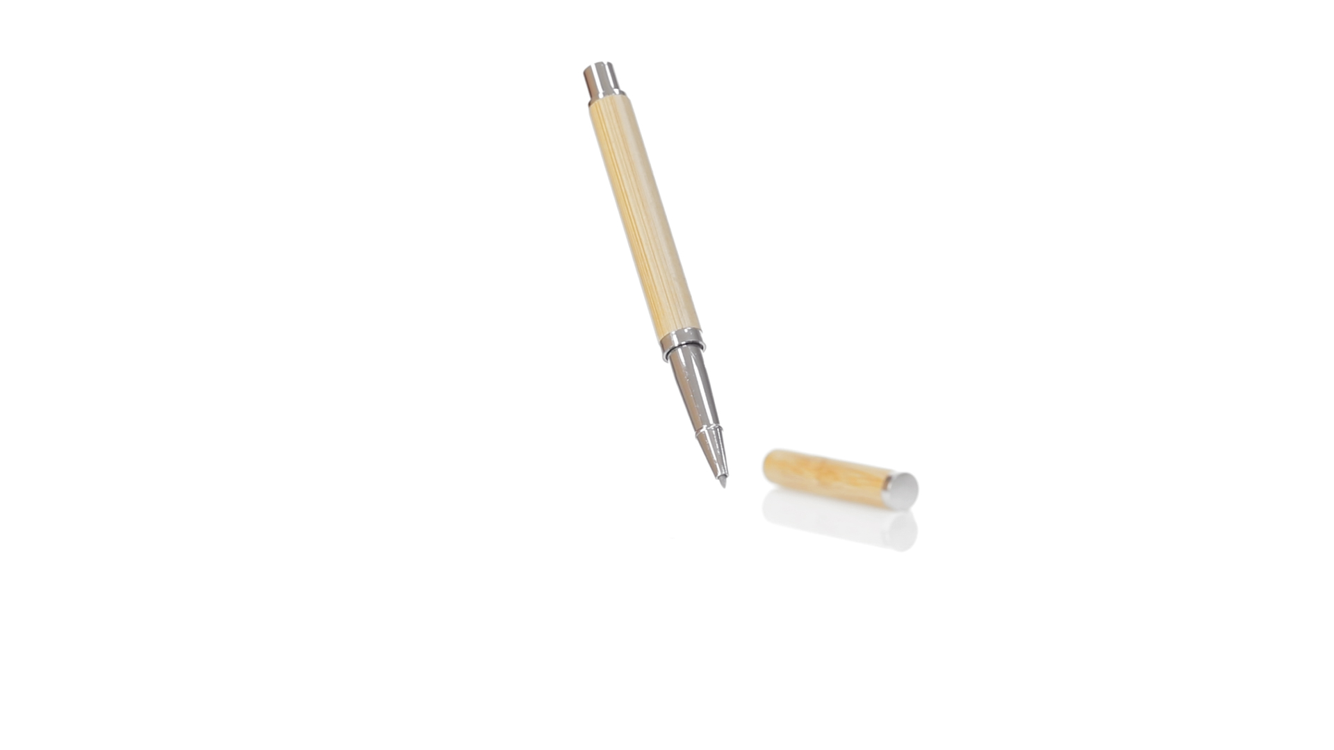 Tintenroller mit Deckel aus der Nature Line. Hergestellt aus Bambus, mit glattem Schaft und verchromten Beschlägen. Jumbo-Patrone, mit blauer Tinte.
