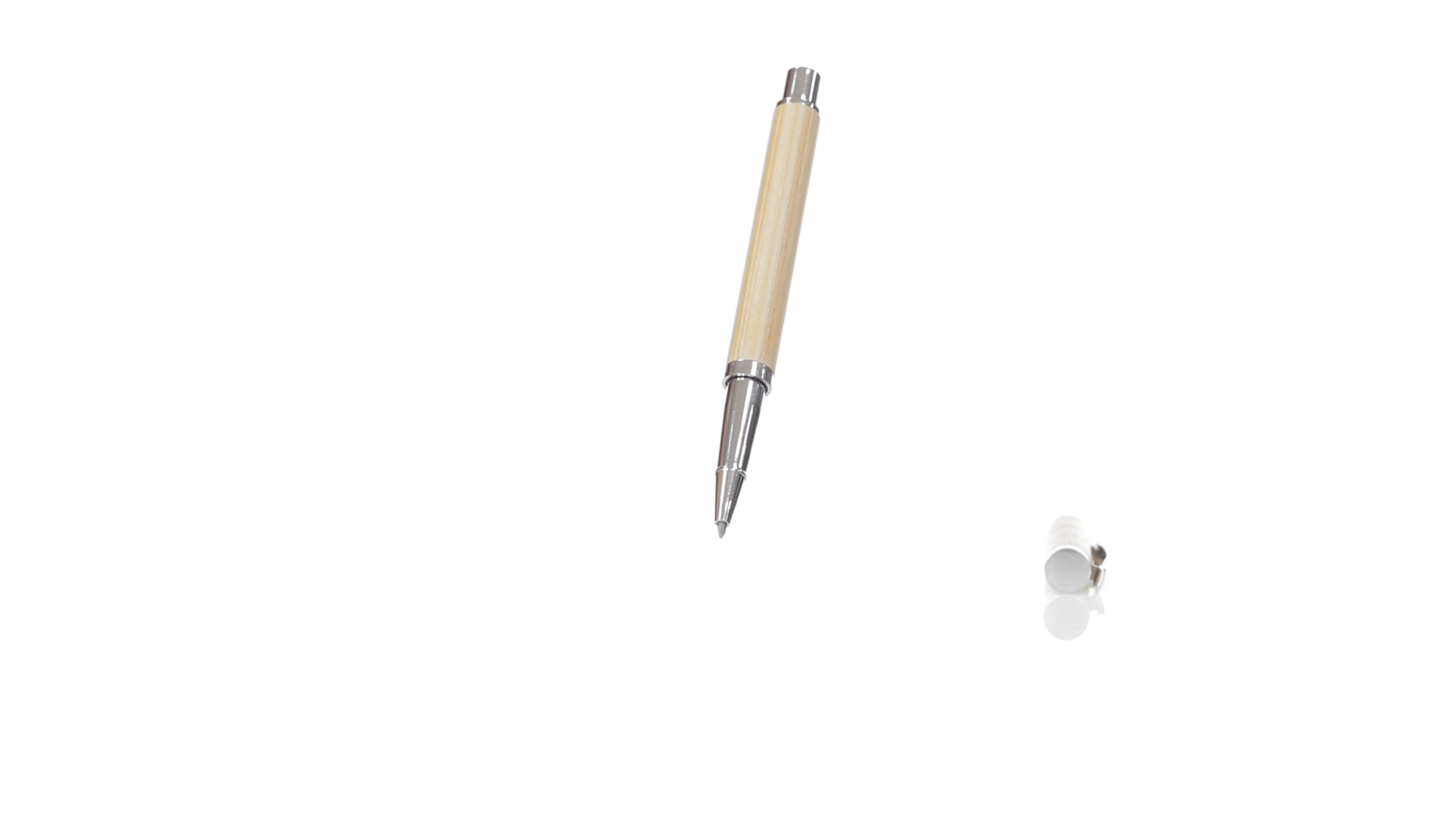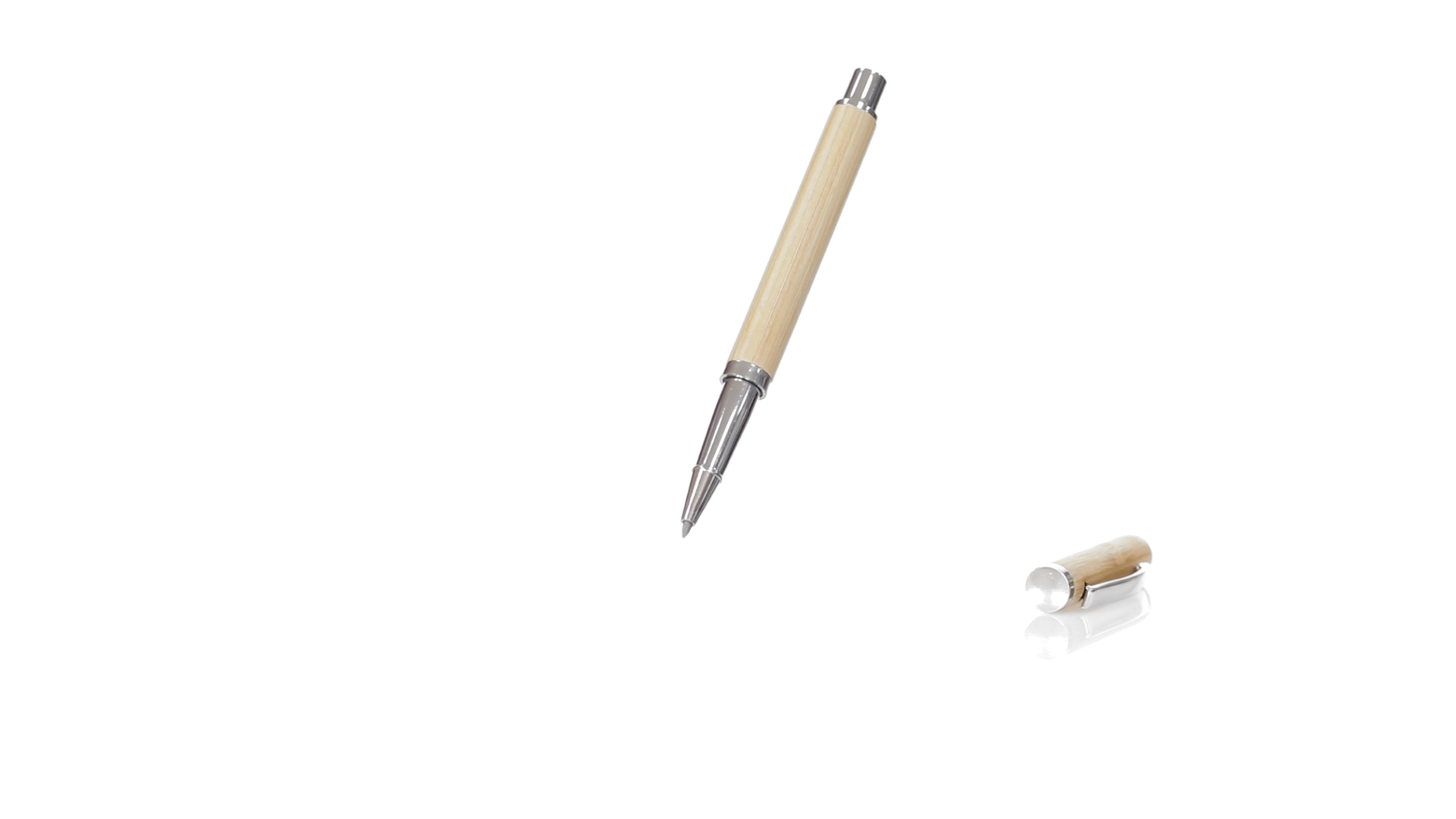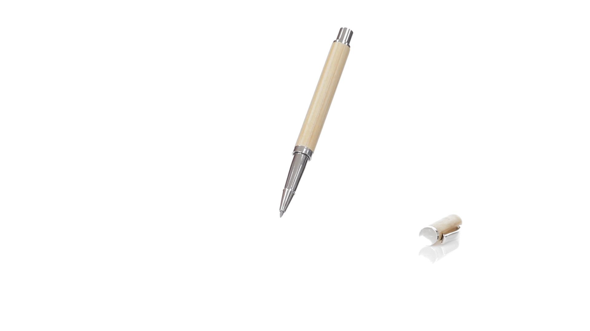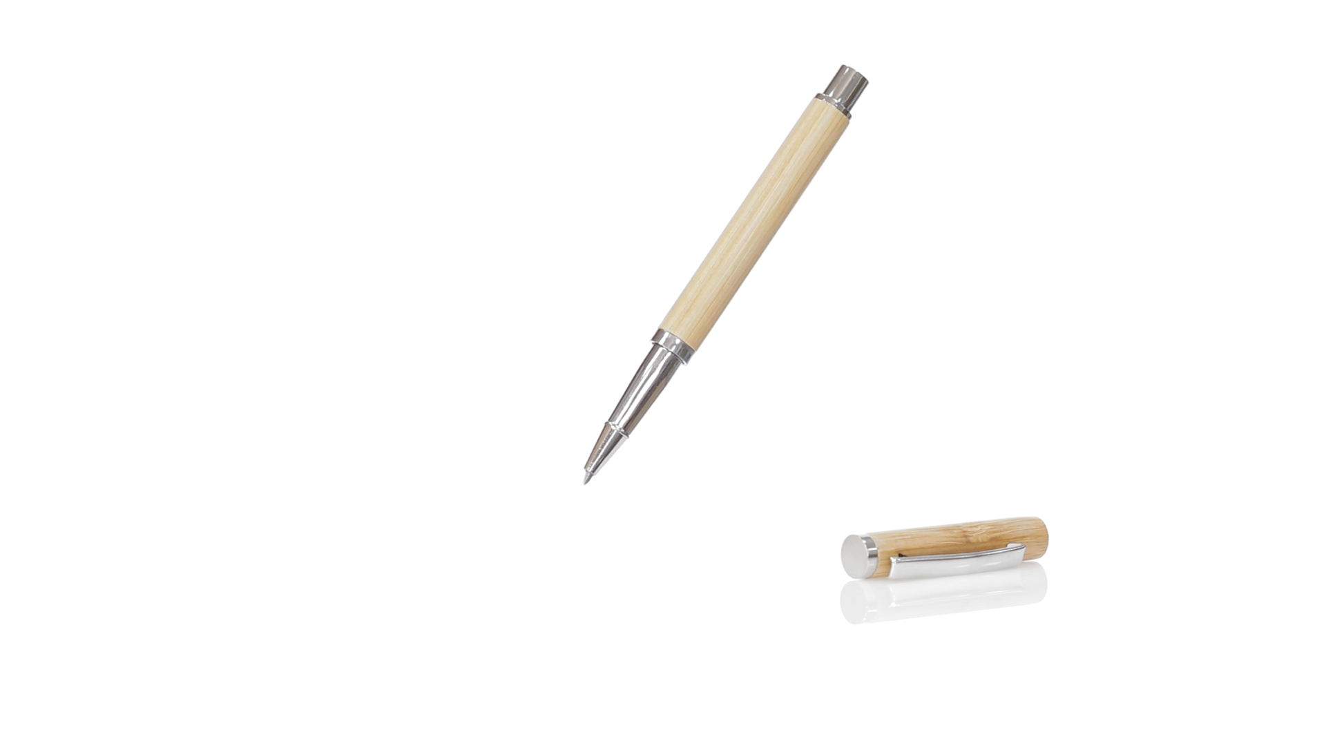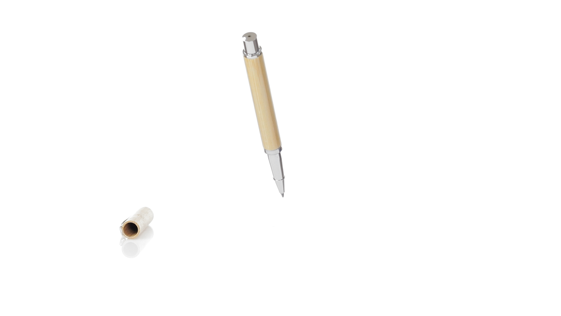 Tintenroller mit Deckel aus der Nature Line. Hergestellt aus Bambus, mit glattem Schaft und verchromten Beschlägen. Jumbo-Patrone, mit blauer Tinte.