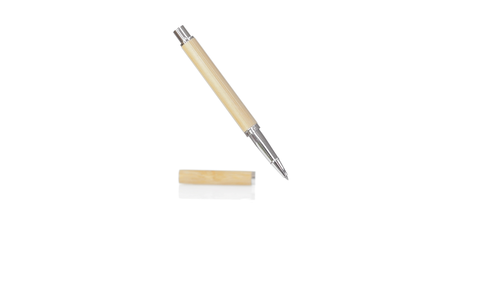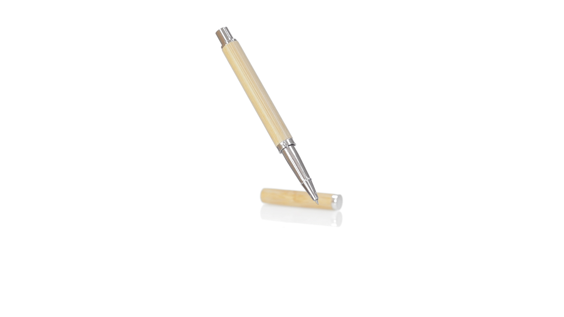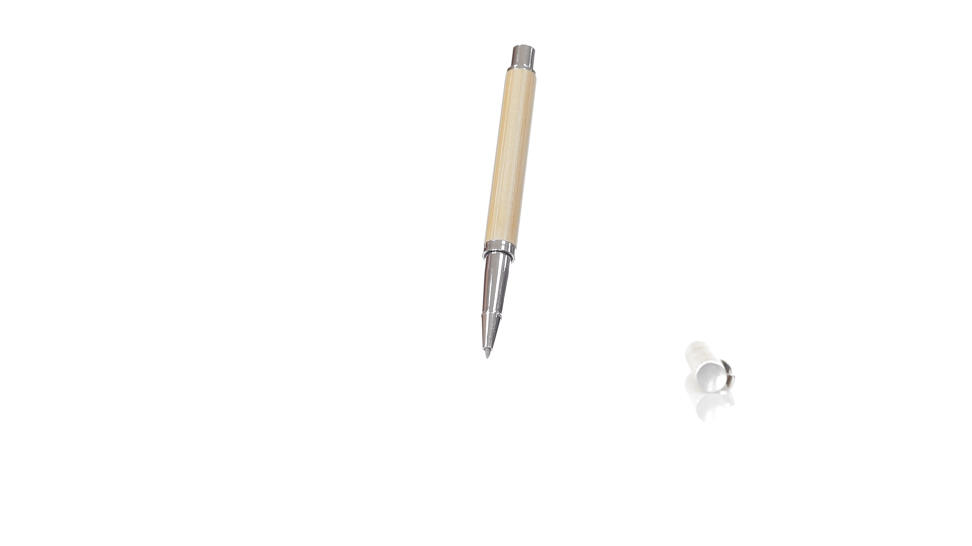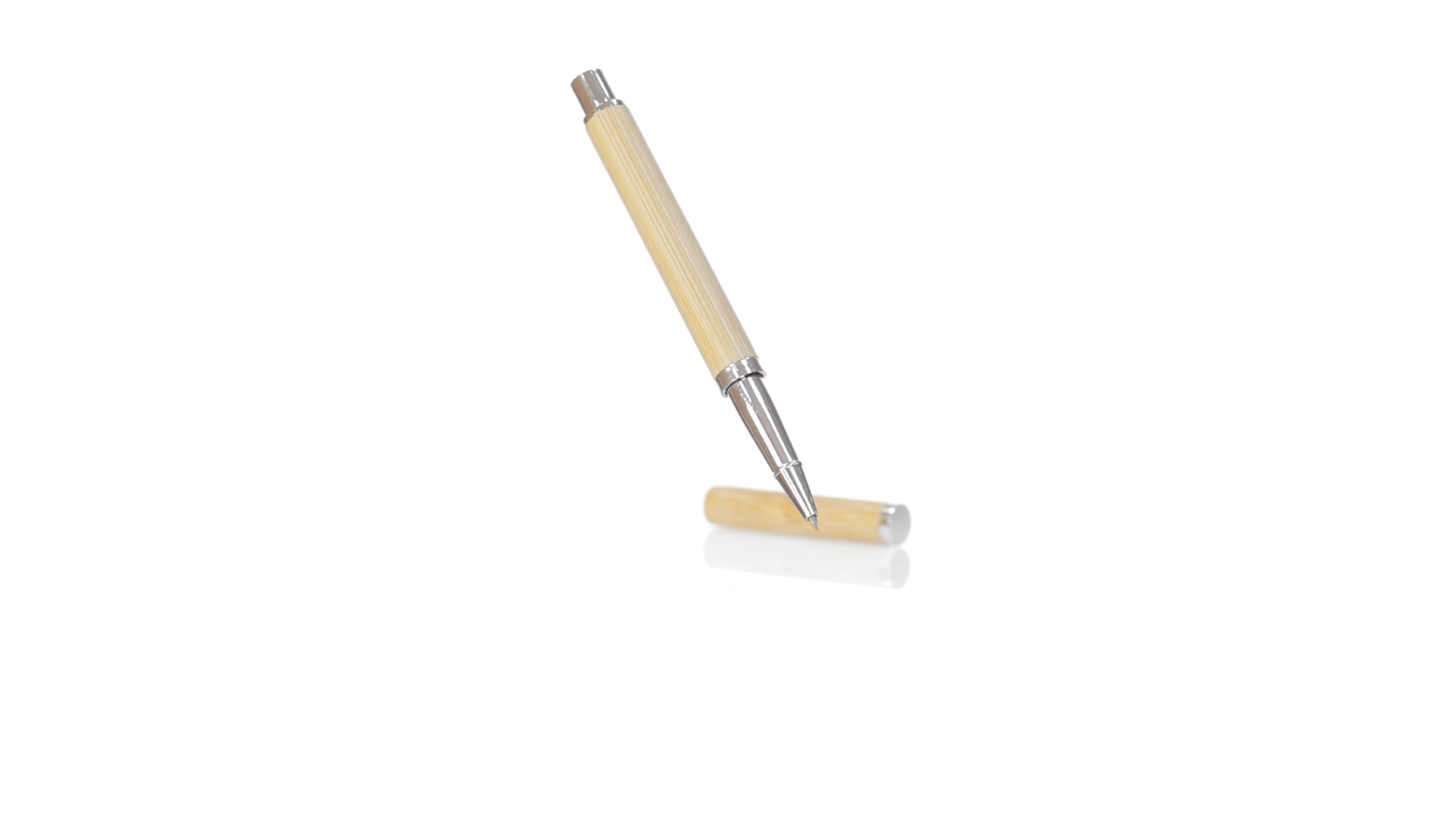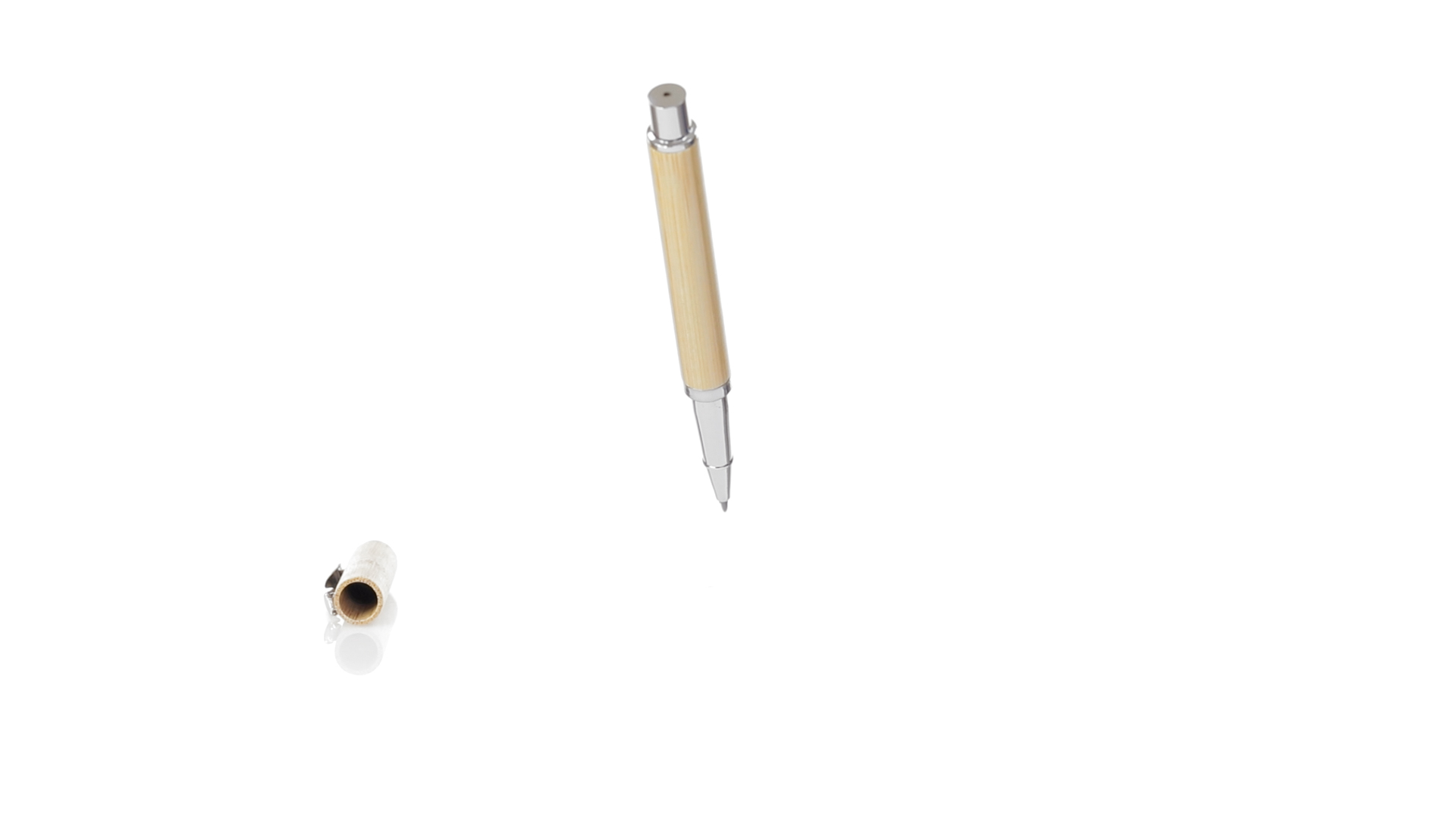 Tintenroller mit Deckel aus der Nature Line. Hergestellt aus Bambus, mit glattem Schaft und verchromten Beschlägen. Jumbo-Patrone, mit blauer Tinte.