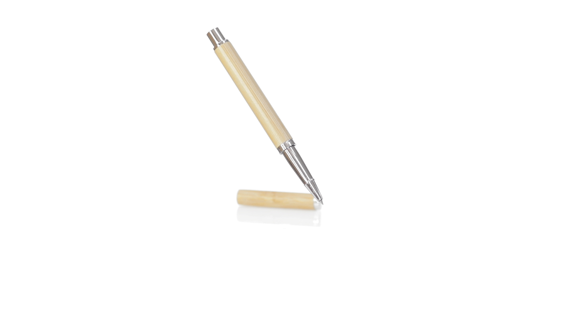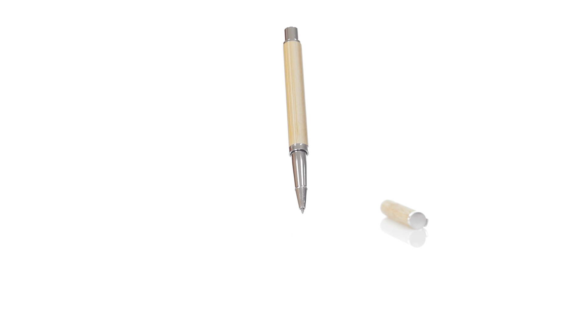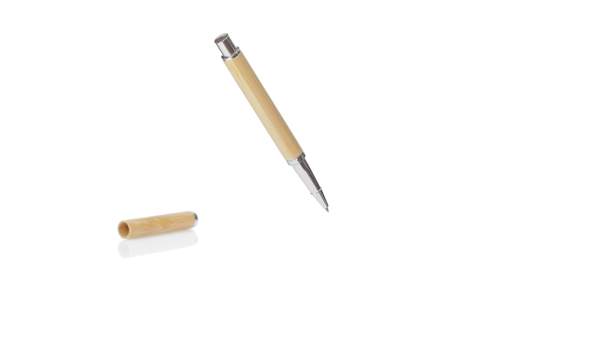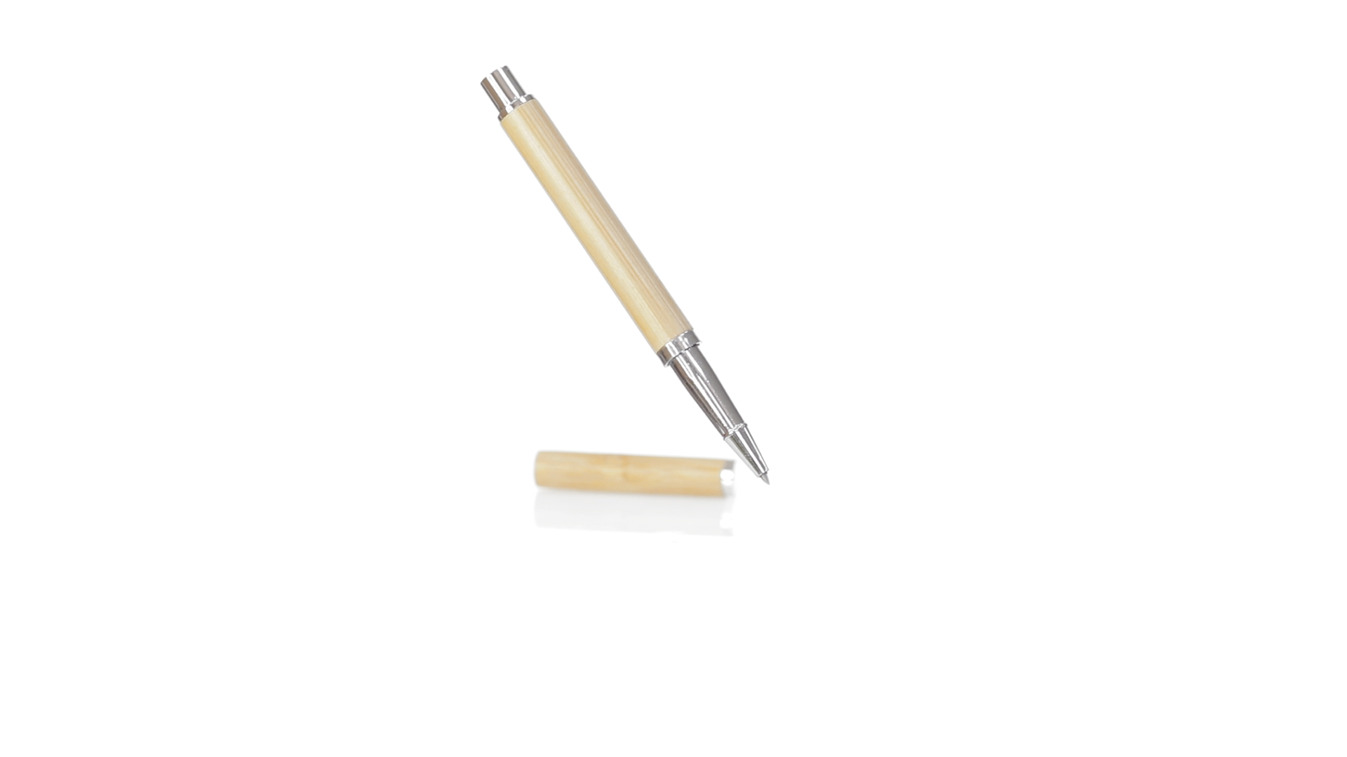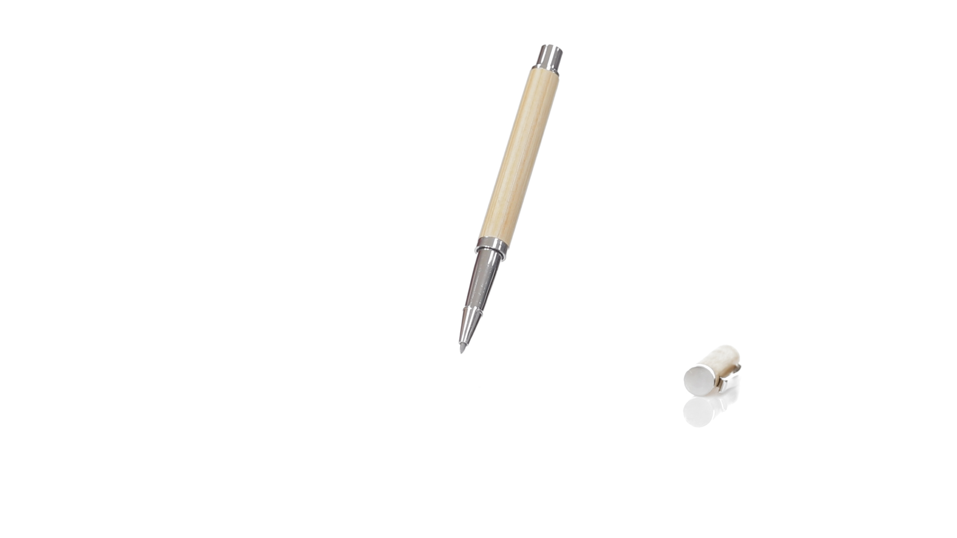 Tintenroller mit Deckel aus der Nature Line. Hergestellt aus Bambus, mit glattem Schaft und verchromten Beschlägen. Jumbo-Patrone, mit blauer Tinte.