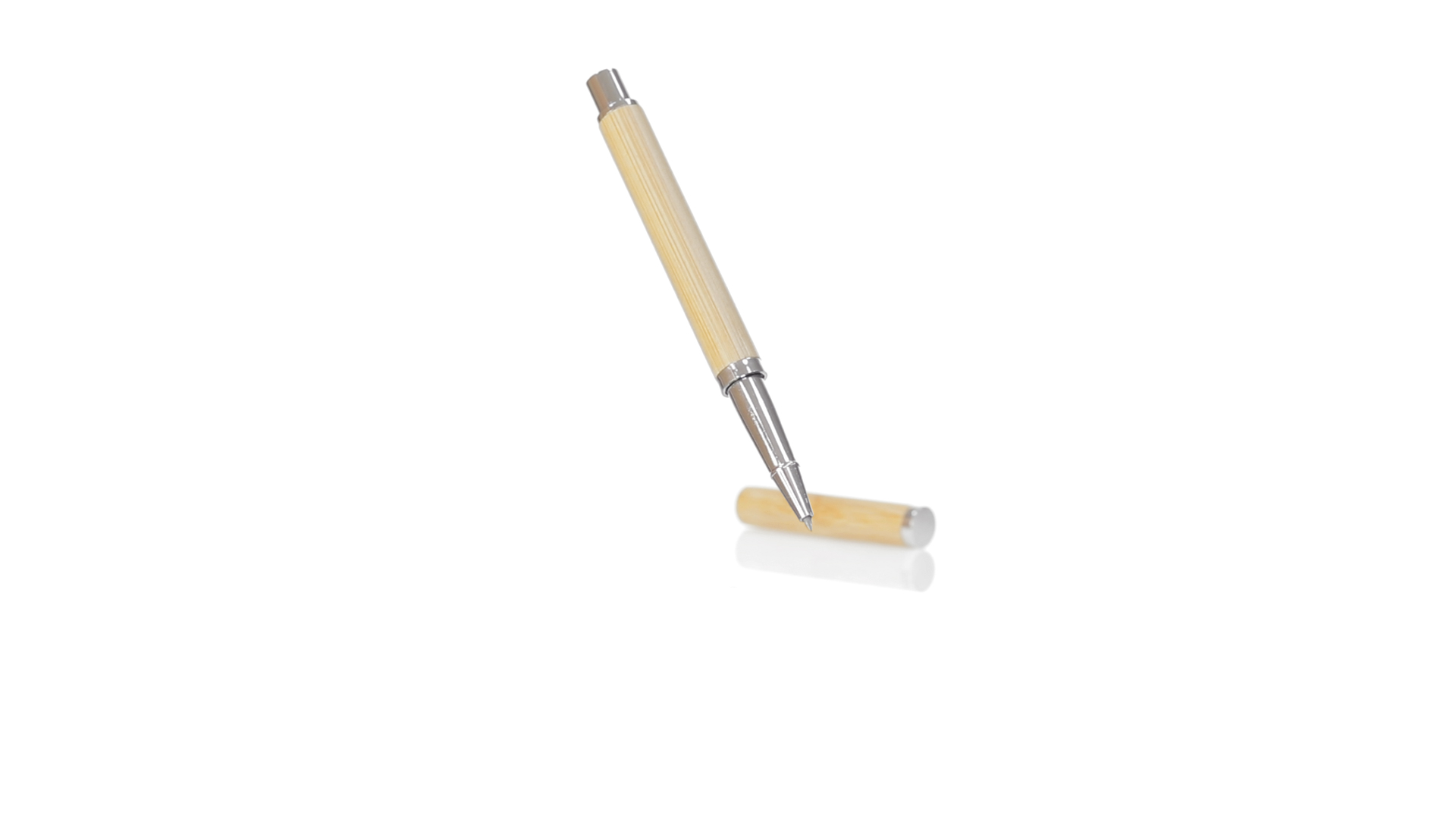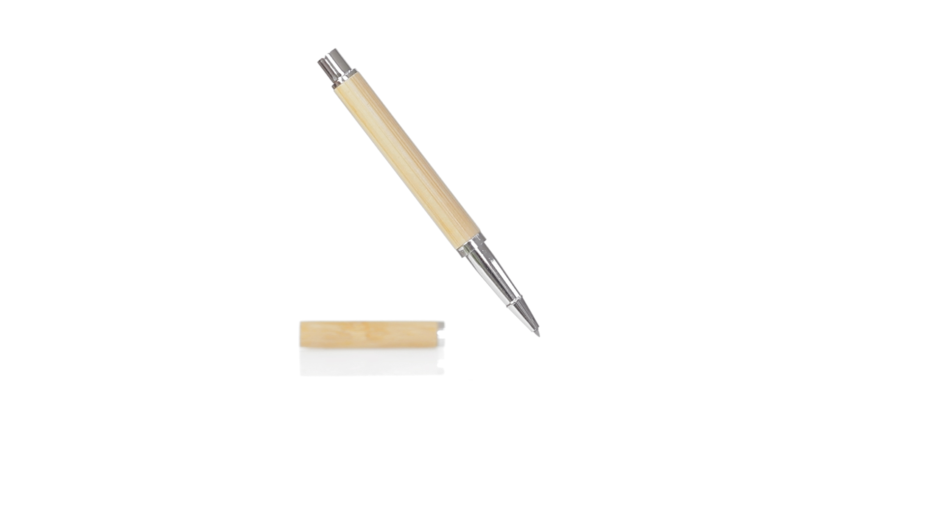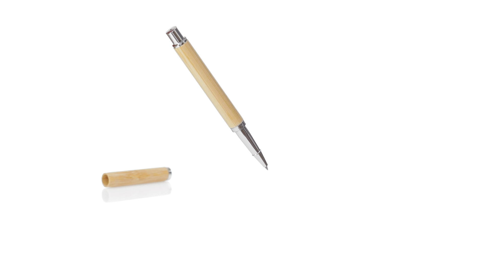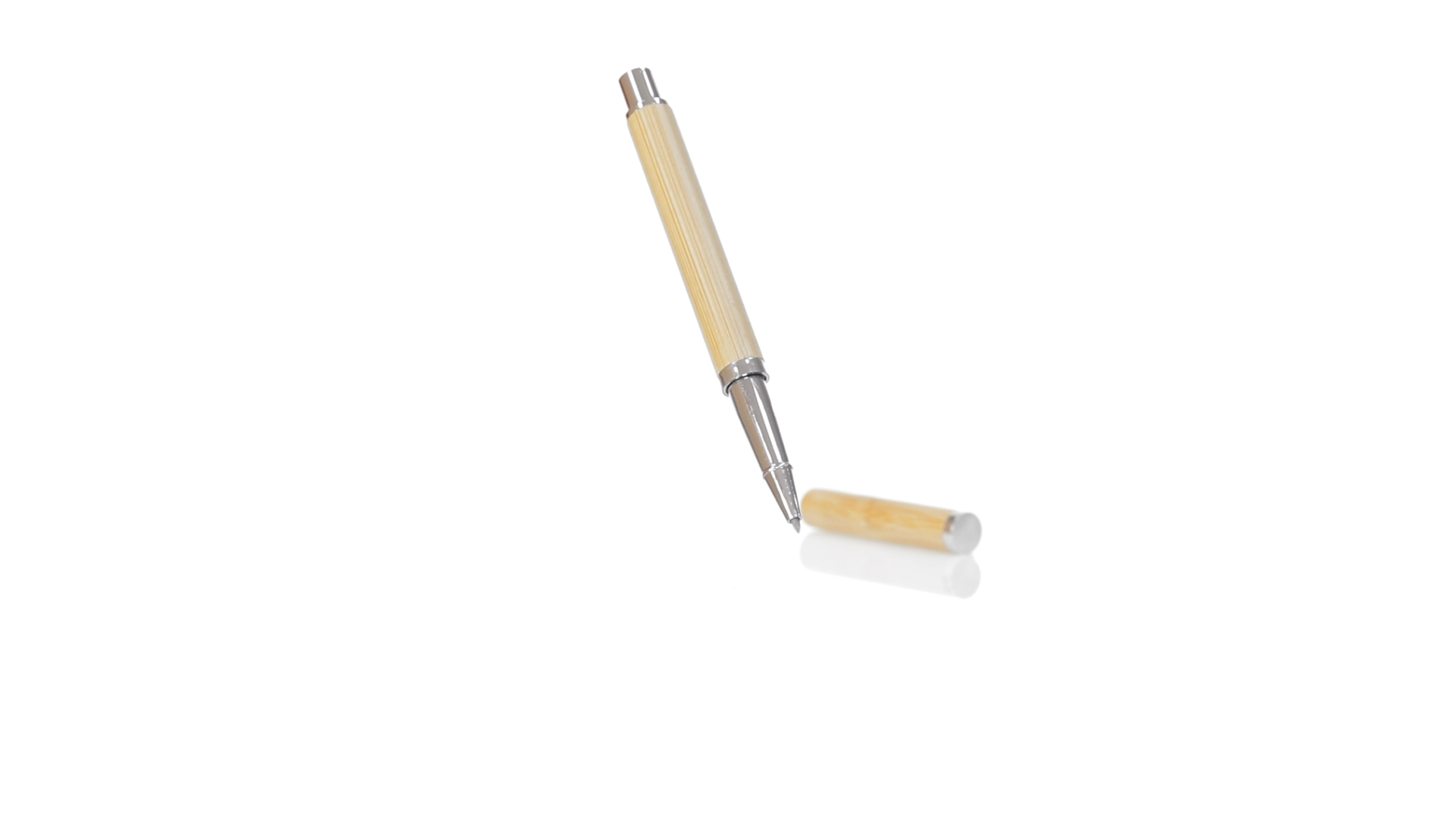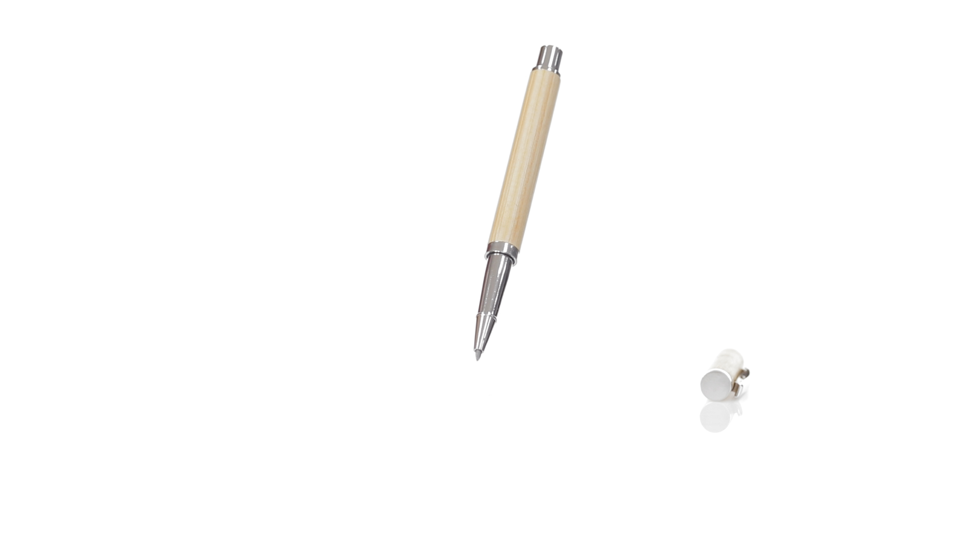 Tintenroller mit Deckel aus der Nature Line. Hergestellt aus Bambus, mit glattem Schaft und verchromten Beschlägen. Jumbo-Patrone, mit blauer Tinte.