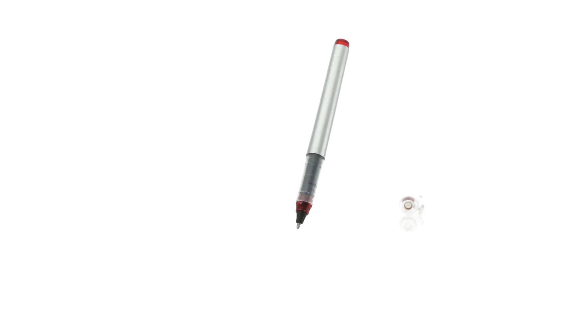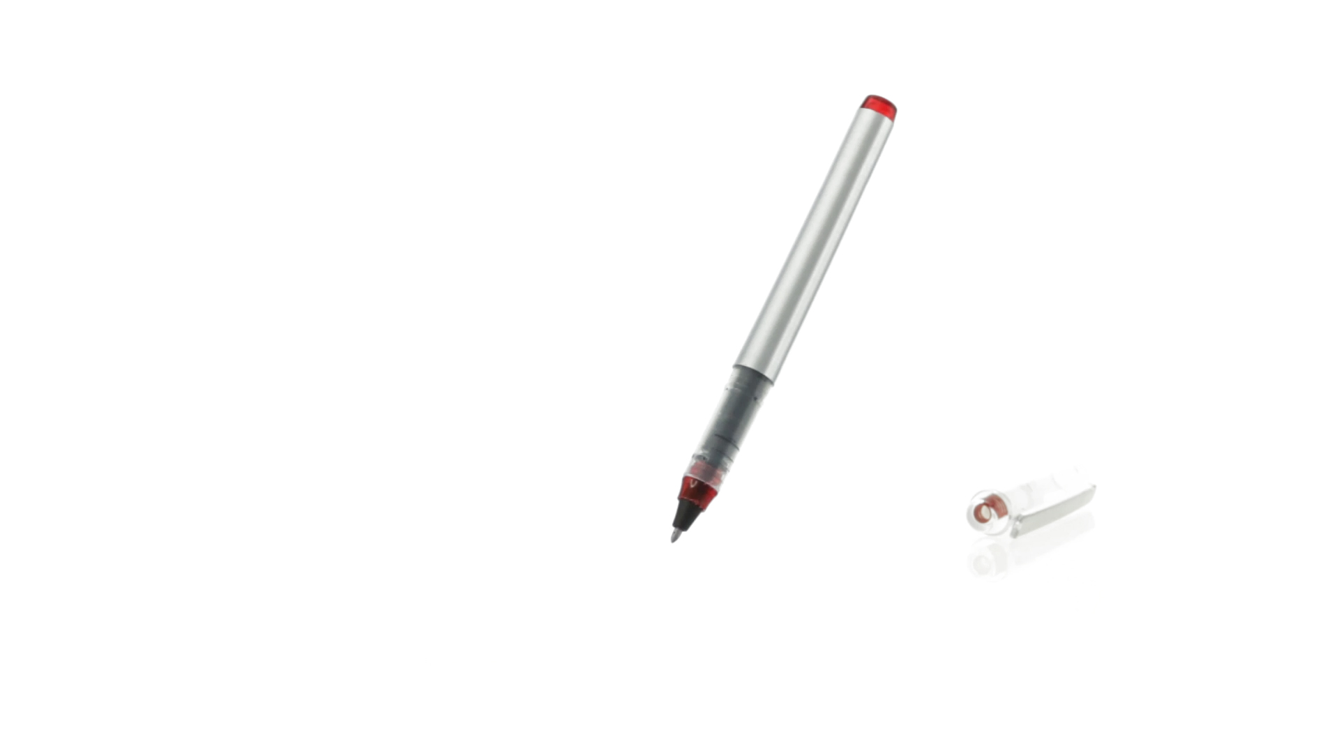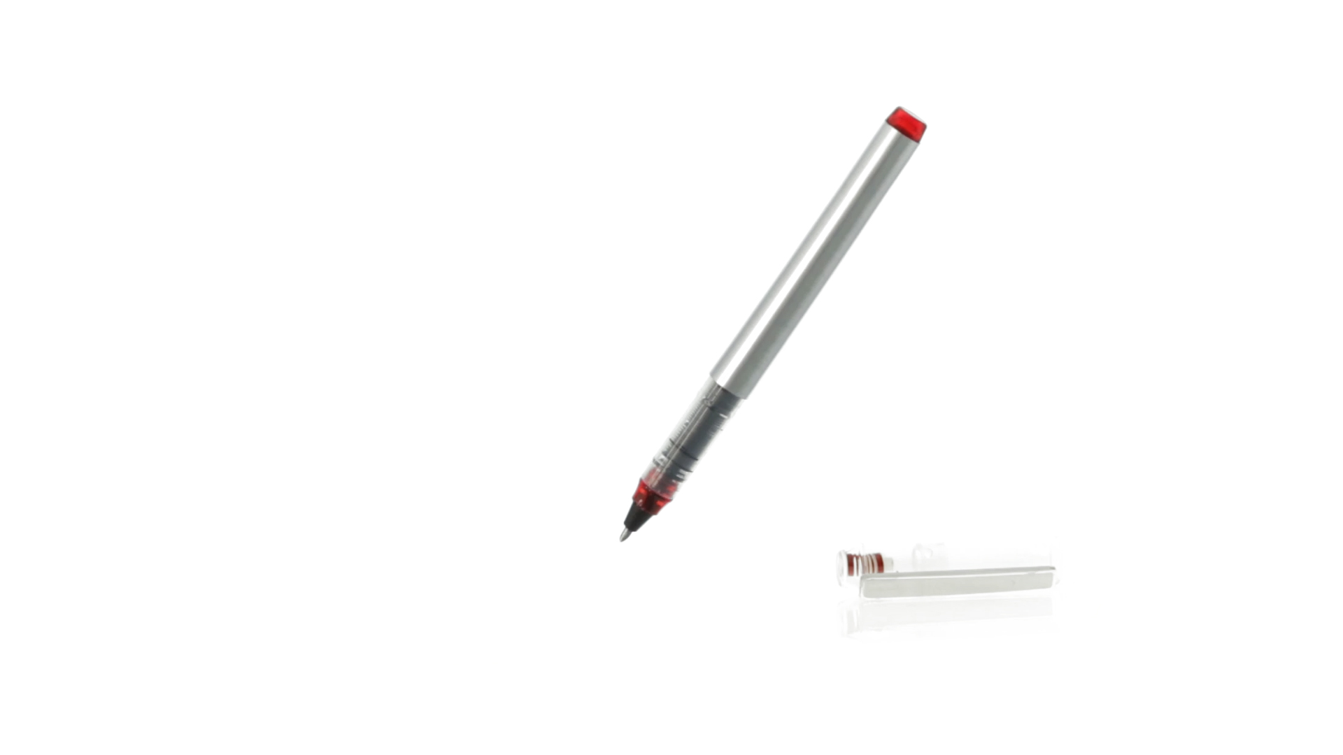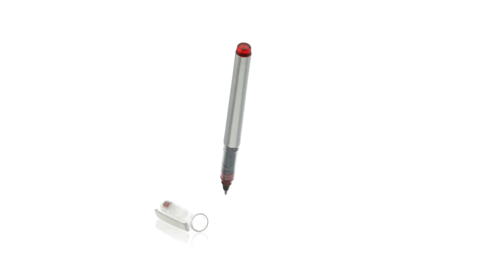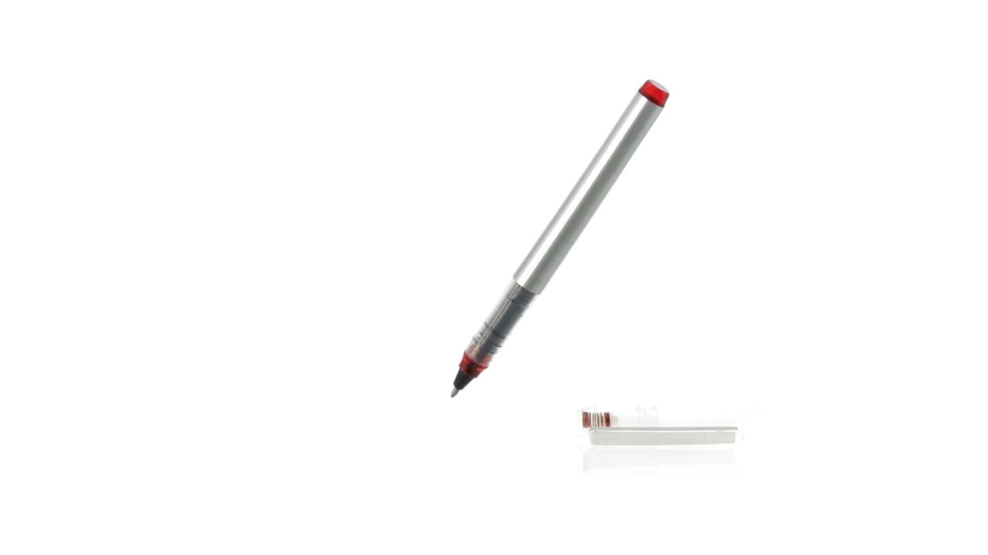 Tintenroller von STYB mit transparenter Kappe und originellem, zweifarbigem Design sowie silbernem Schaft und Kontrastdetails in verschiedenen lebhaften Farben. Mit blauer Tinte.