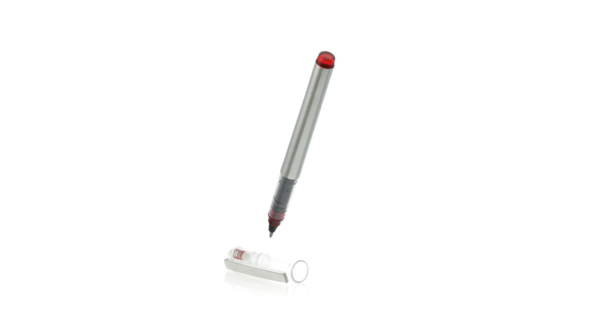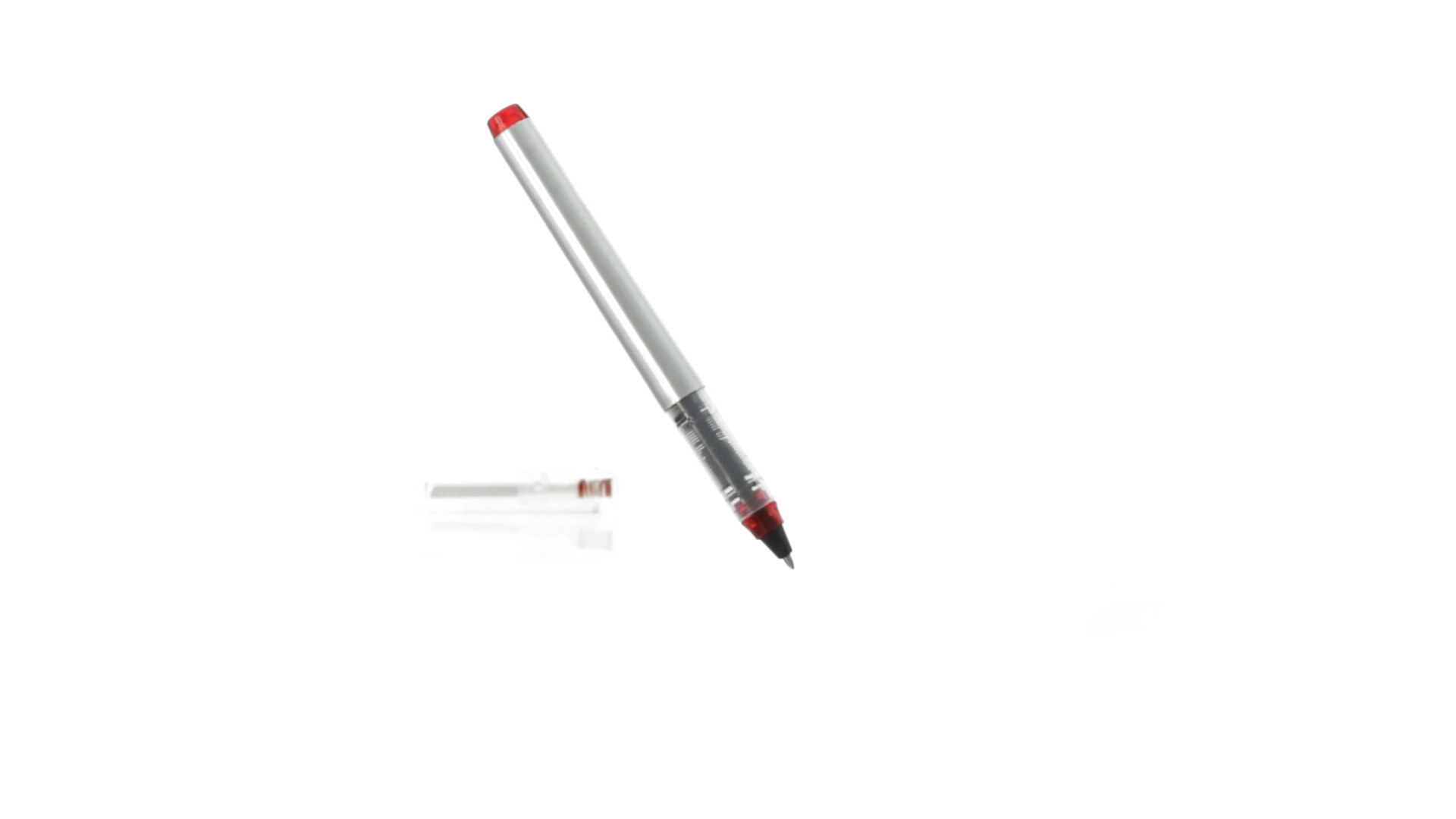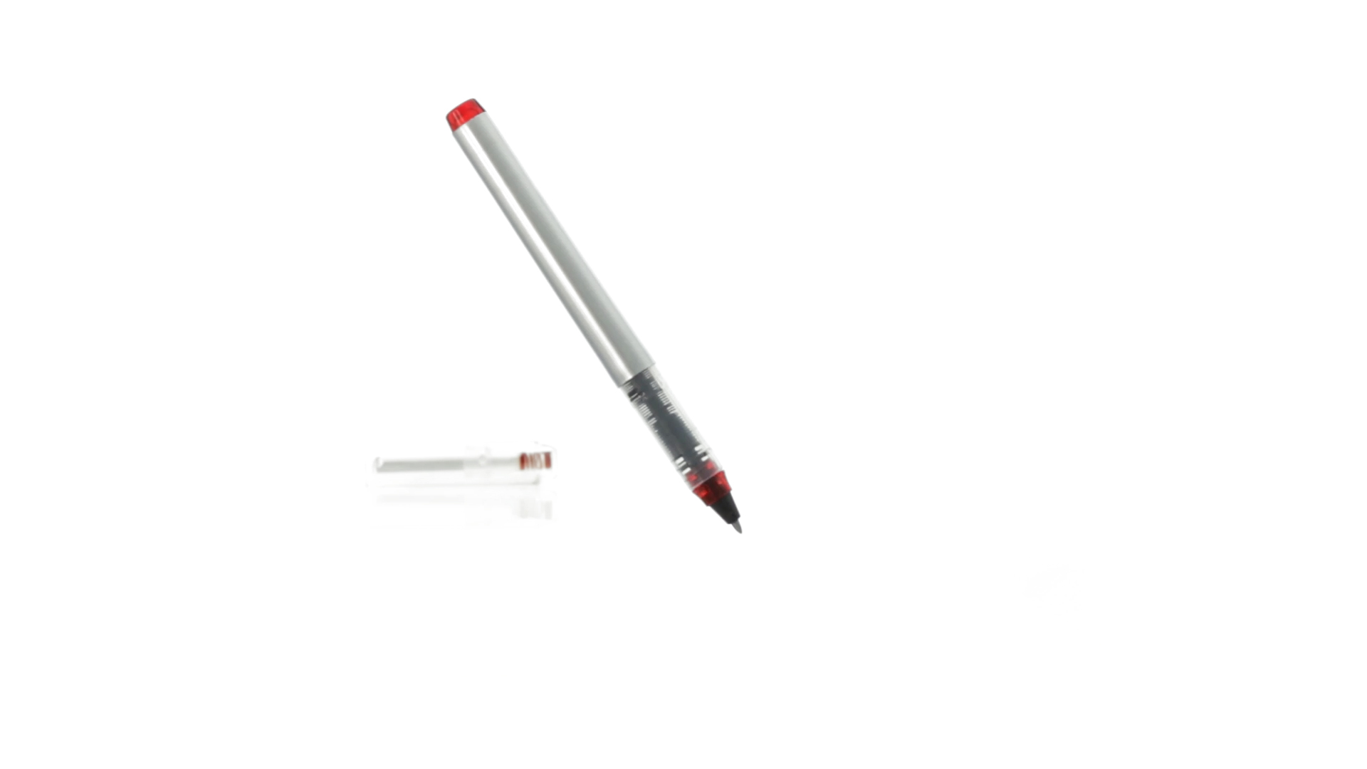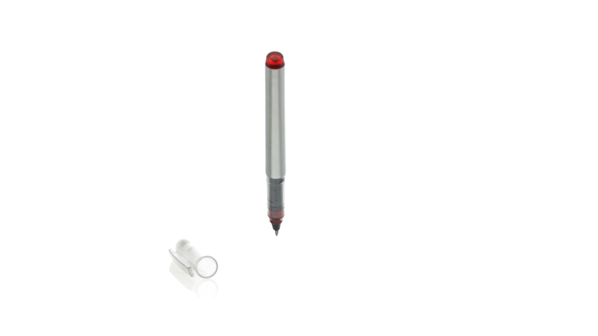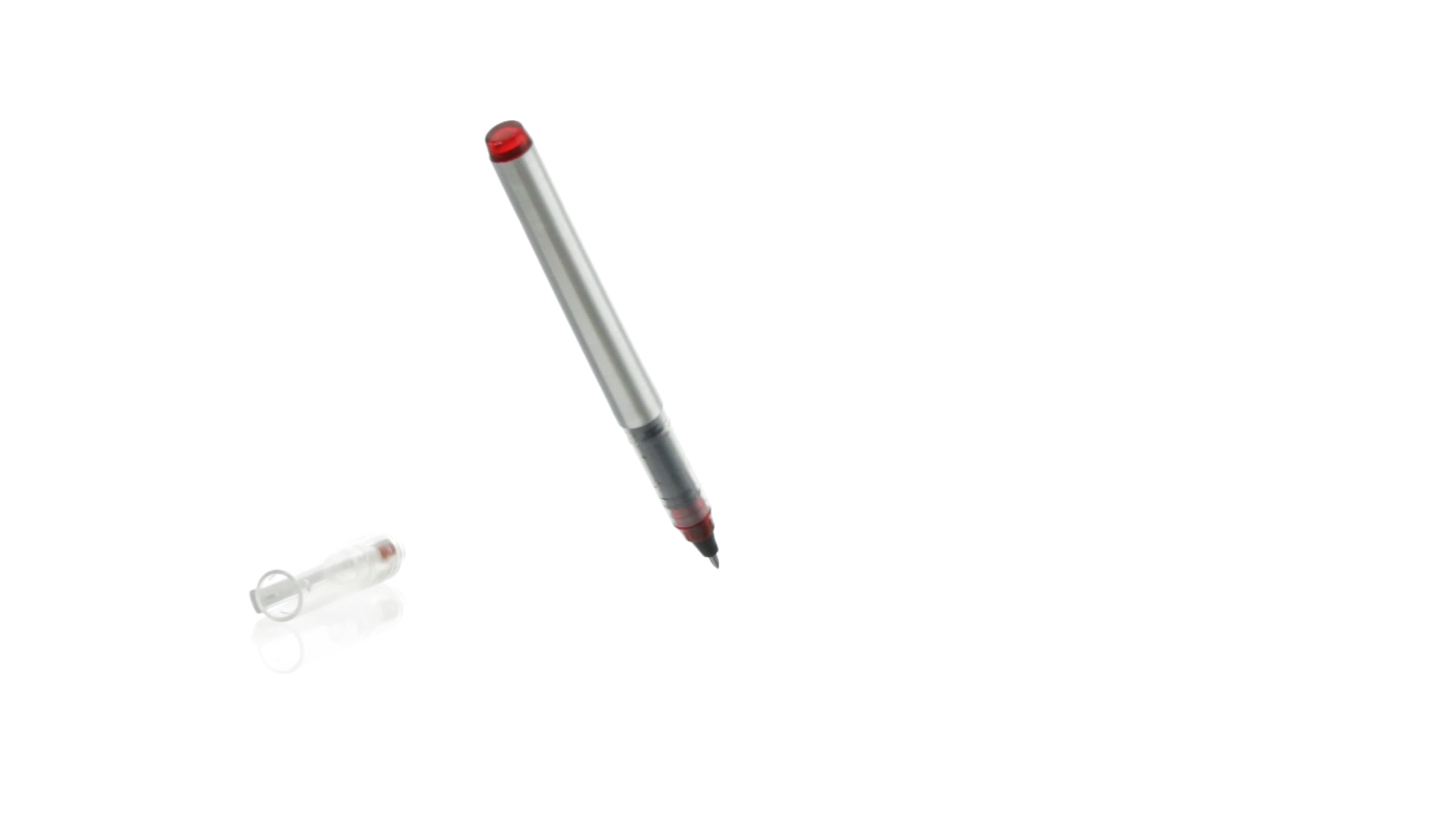 Tintenroller von STYB mit transparenter Kappe und originellem, zweifarbigem Design sowie silbernem Schaft und Kontrastdetails in verschiedenen lebhaften Farben. Mit blauer Tinte.