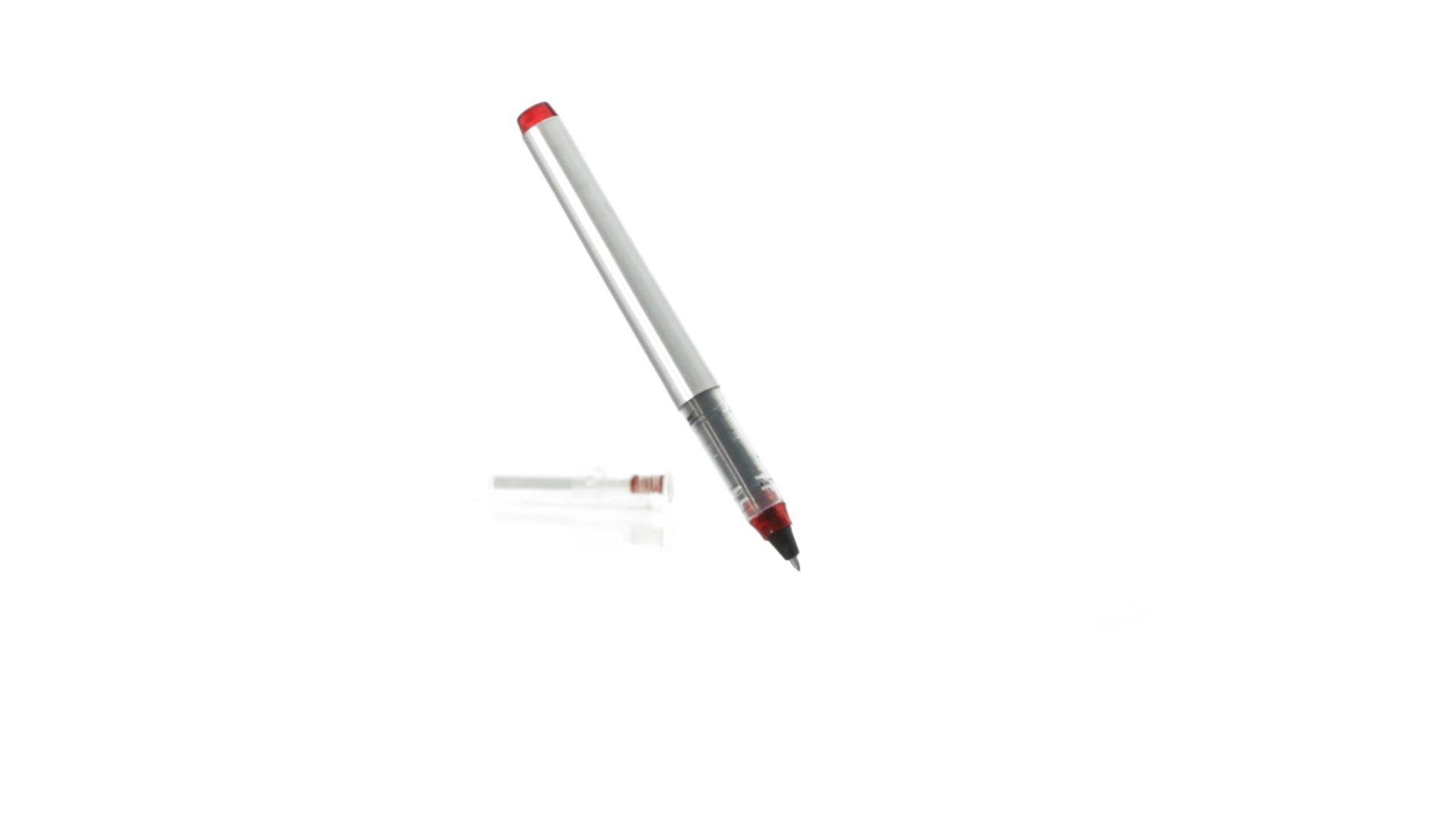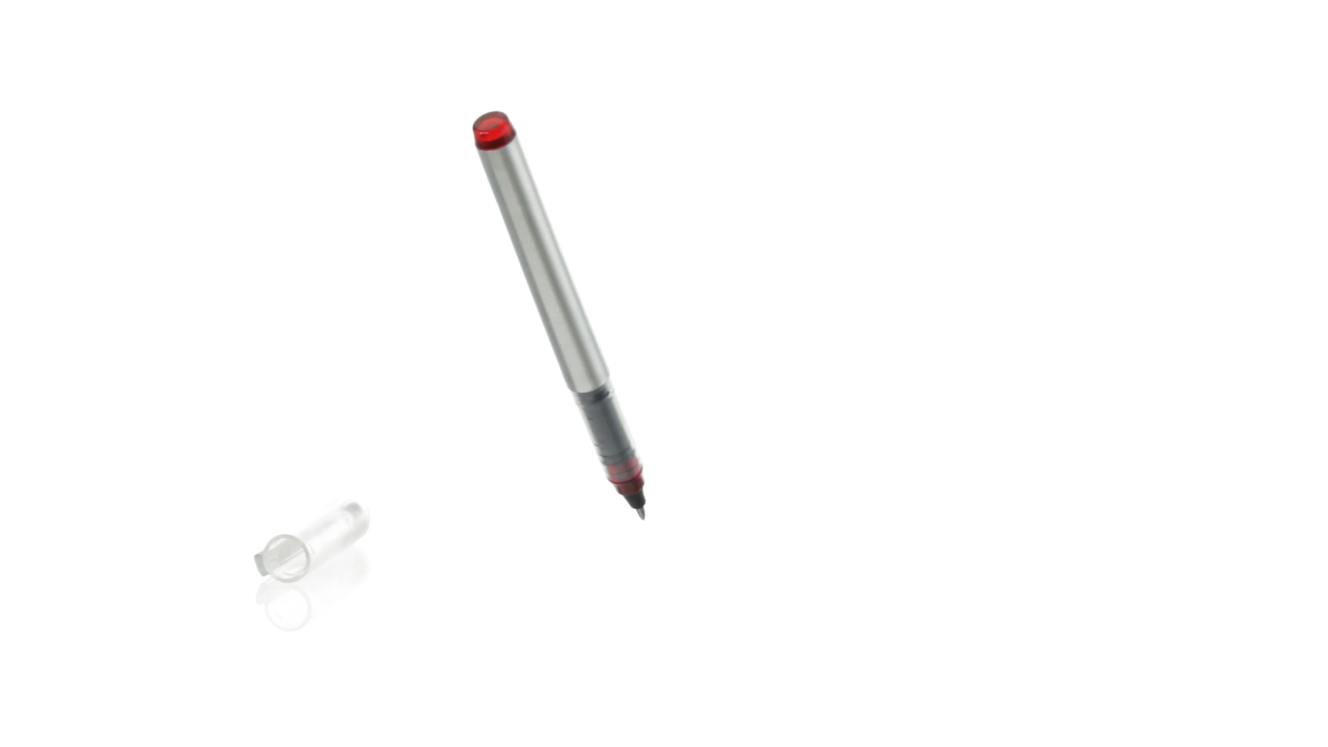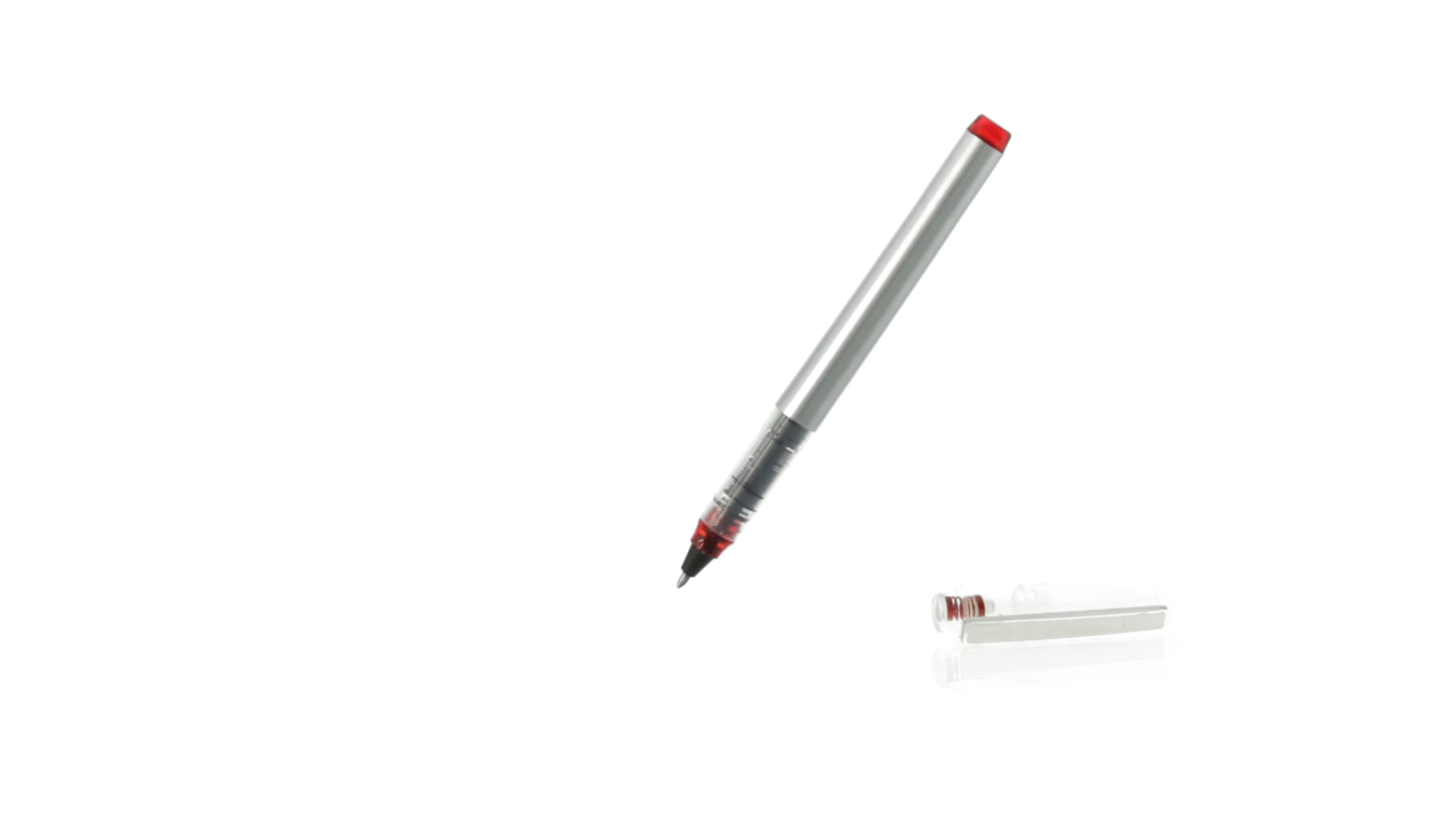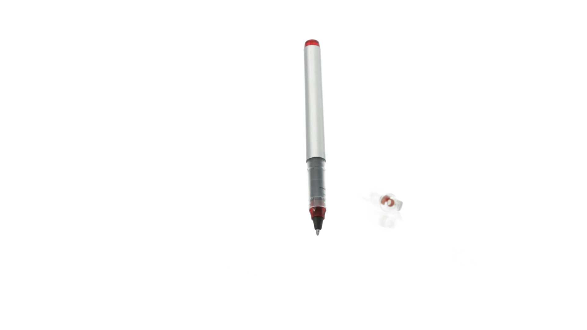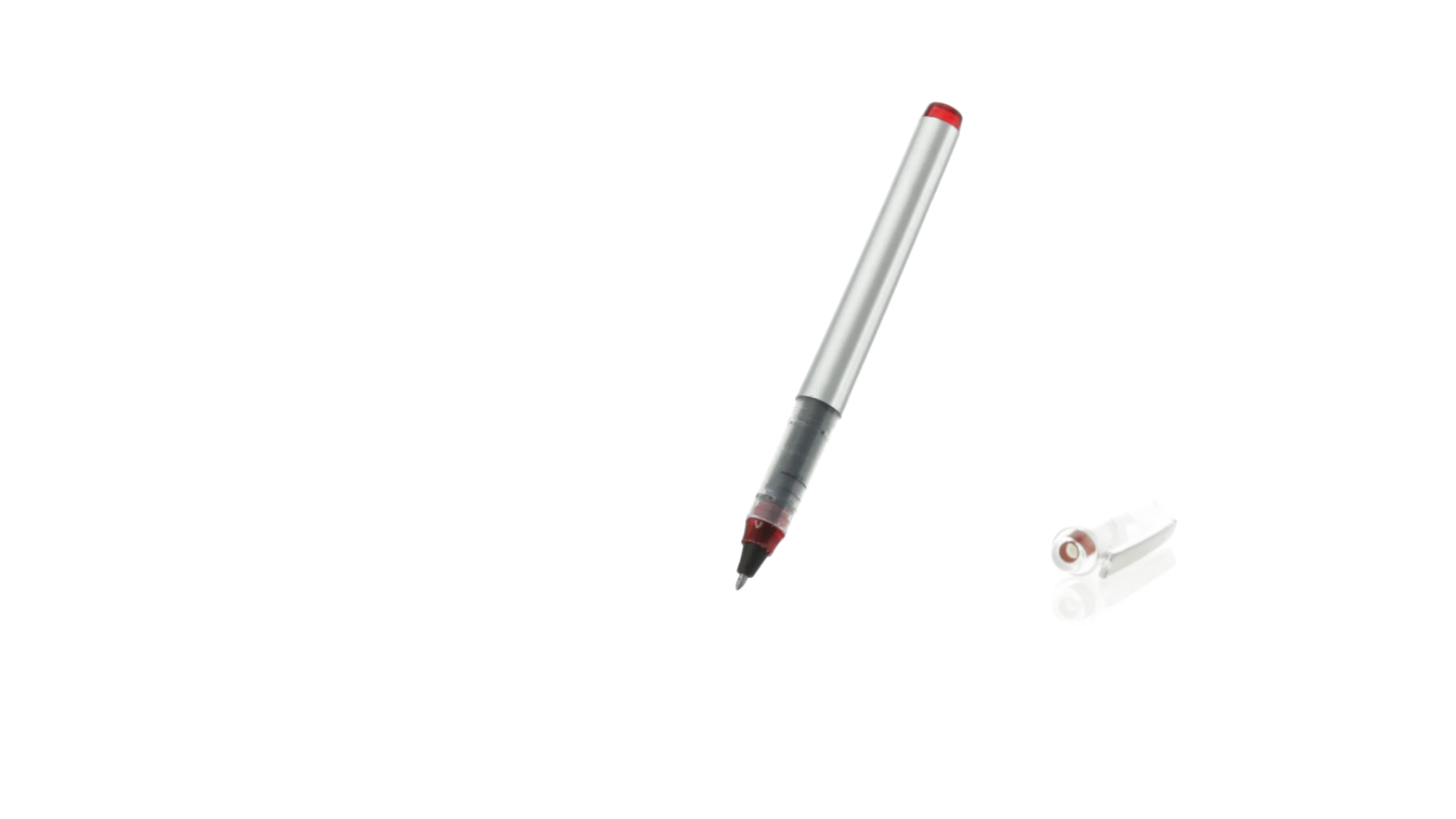 Tintenroller von STYB mit transparenter Kappe und originellem, zweifarbigem Design sowie silbernem Schaft und Kontrastdetails in verschiedenen lebhaften Farben. Mit blauer Tinte.