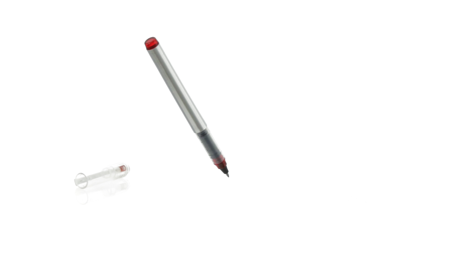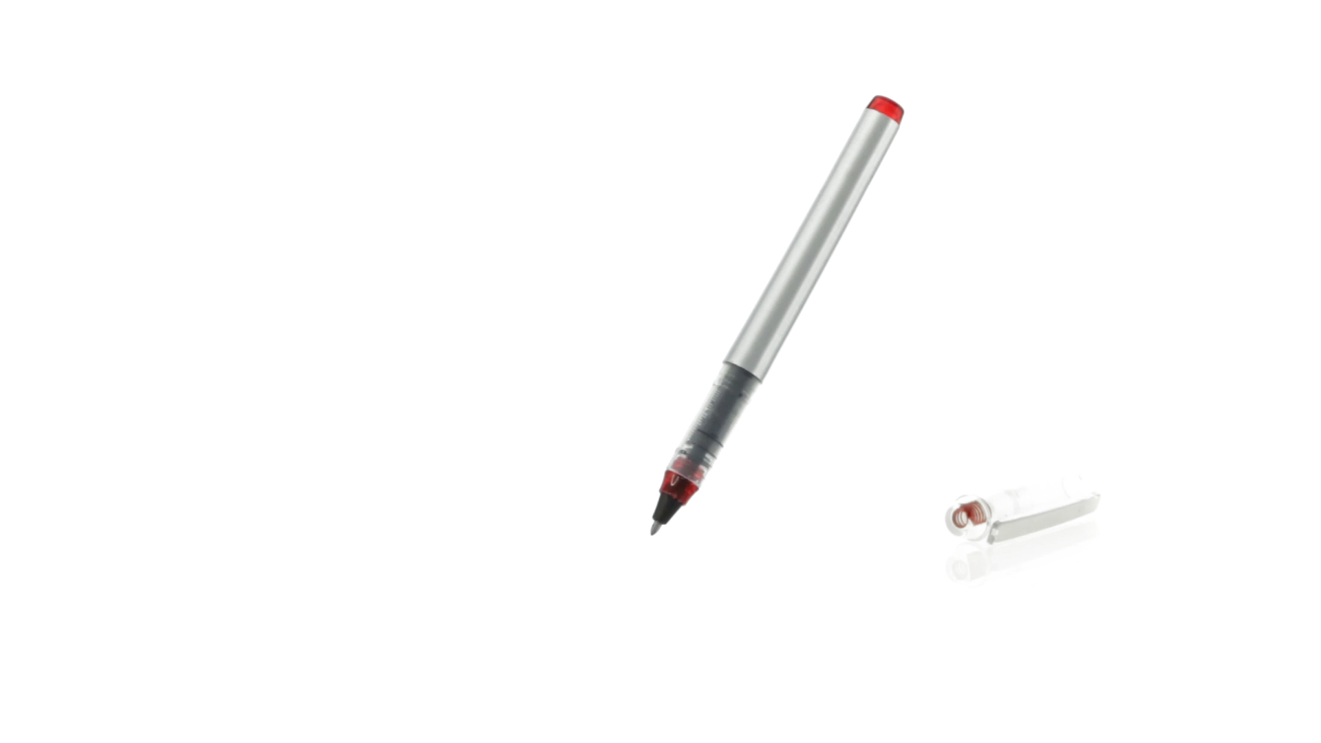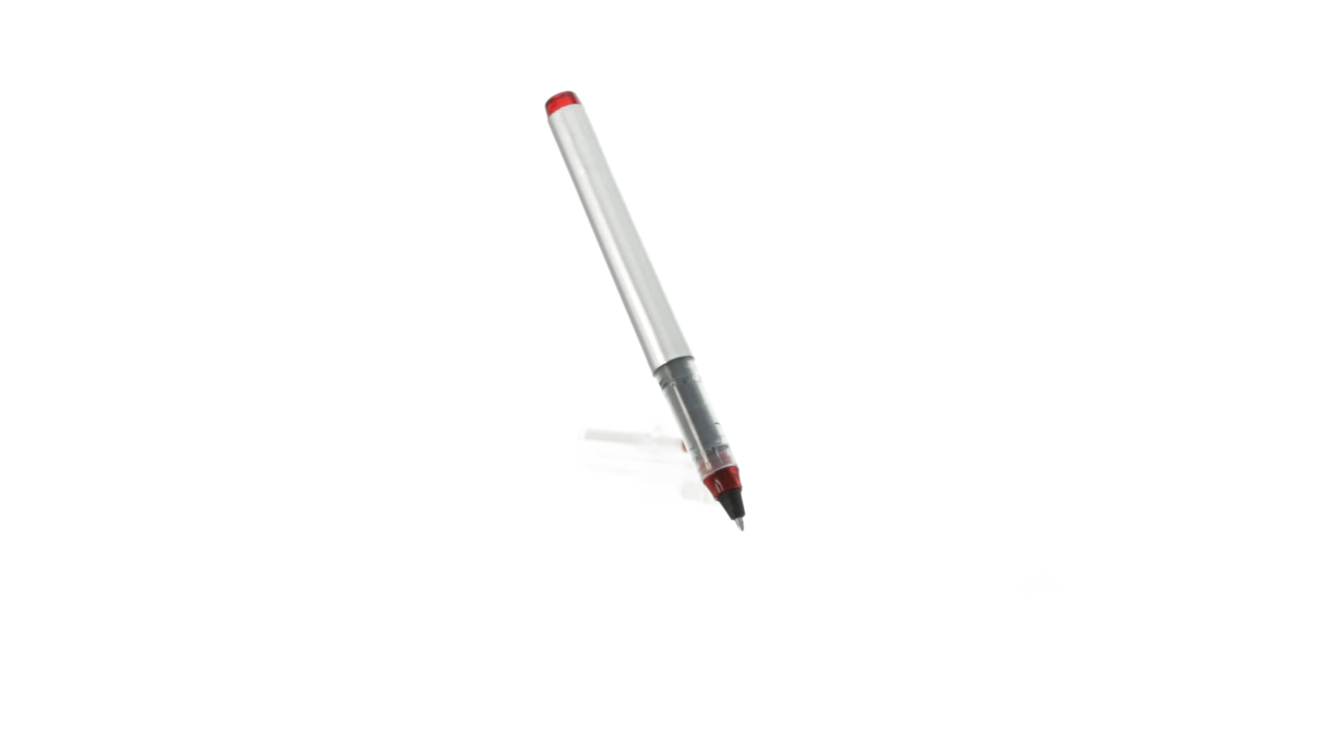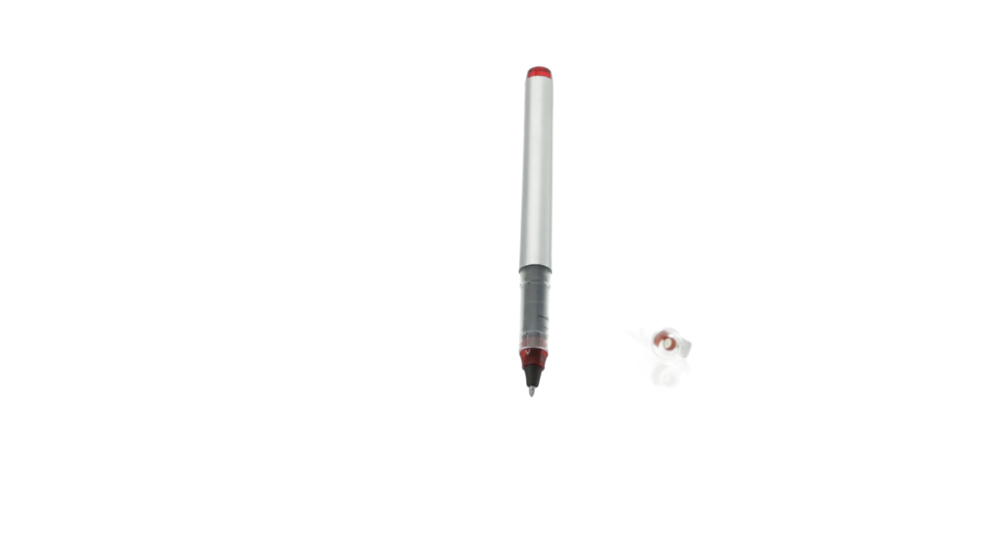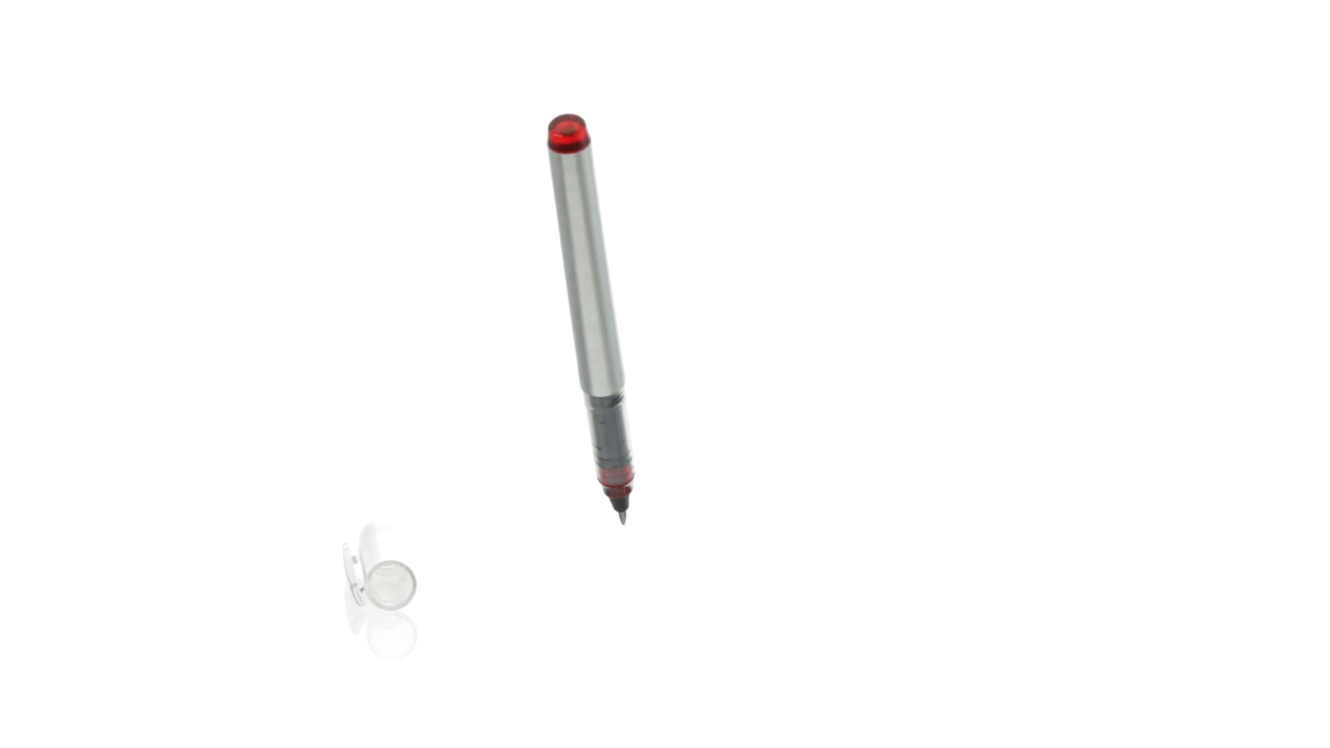 Tintenroller von STYB mit transparenter Kappe und originellem, zweifarbigem Design sowie silbernem Schaft und Kontrastdetails in verschiedenen lebhaften Farben. Mit blauer Tinte.