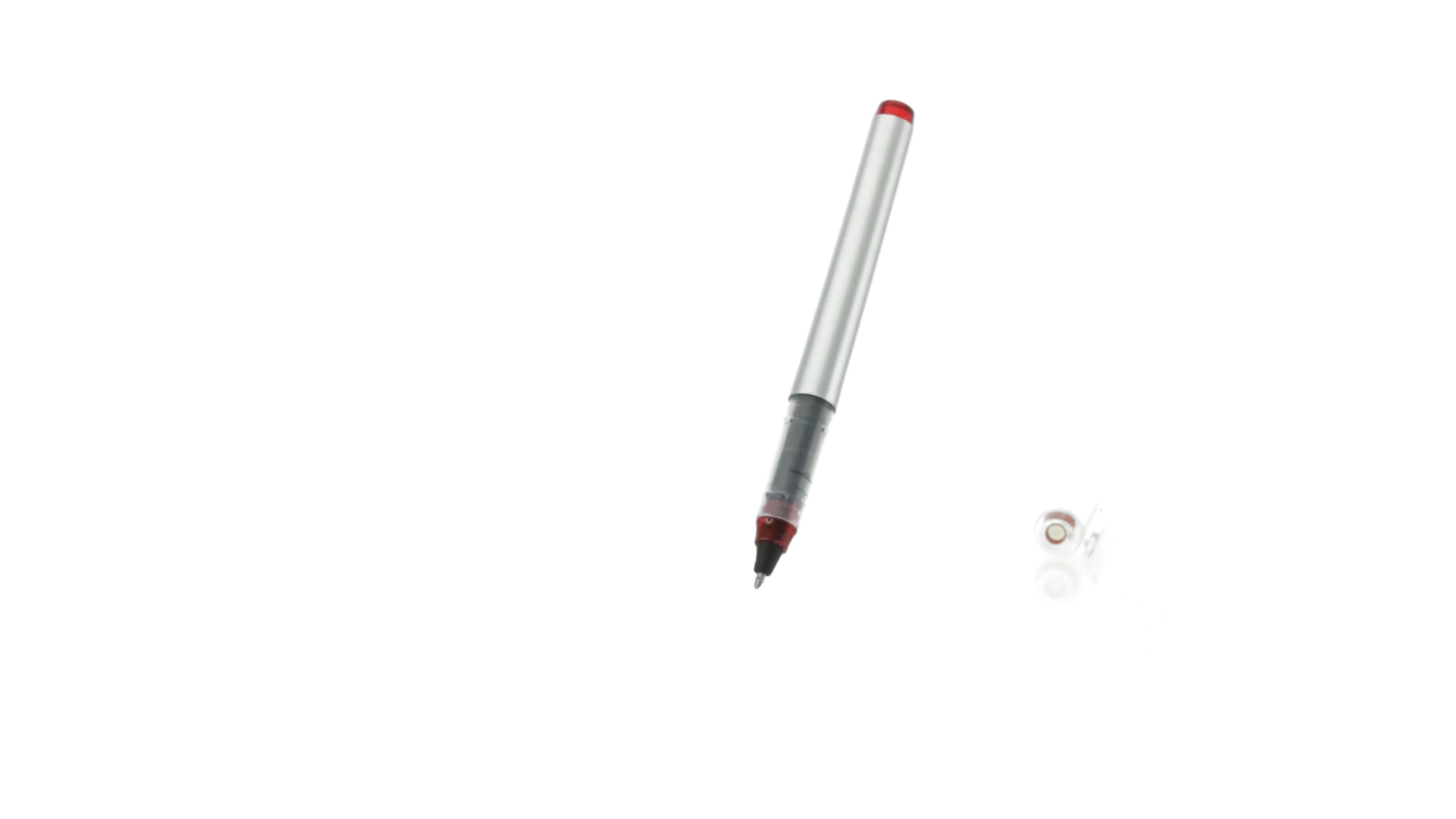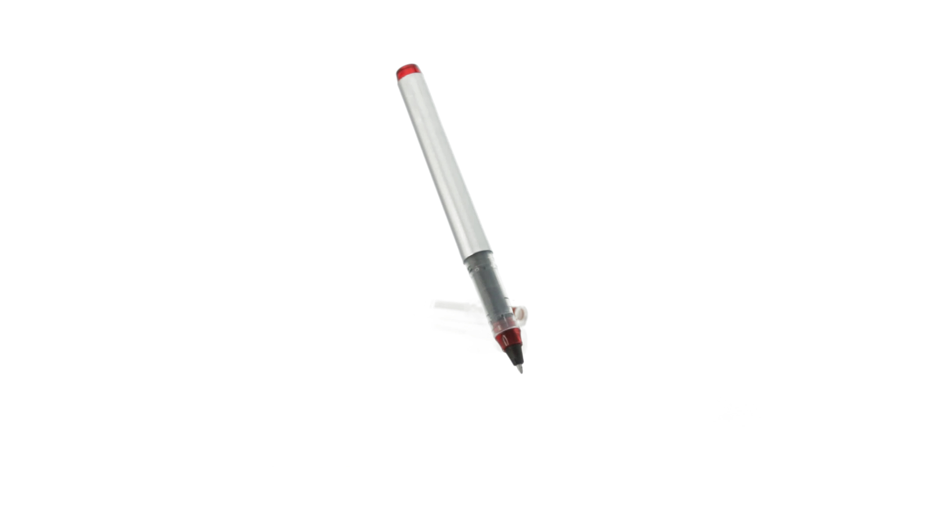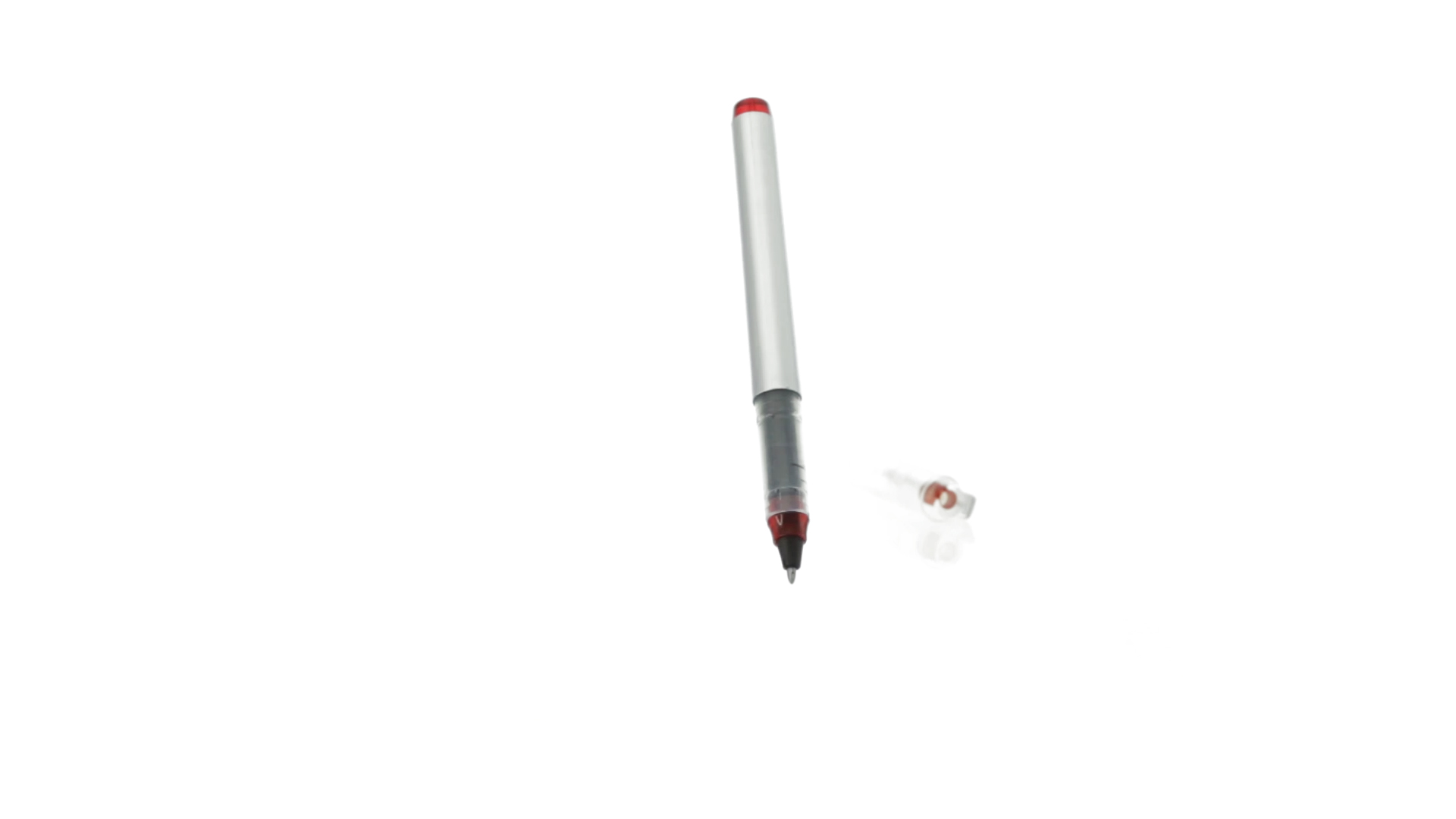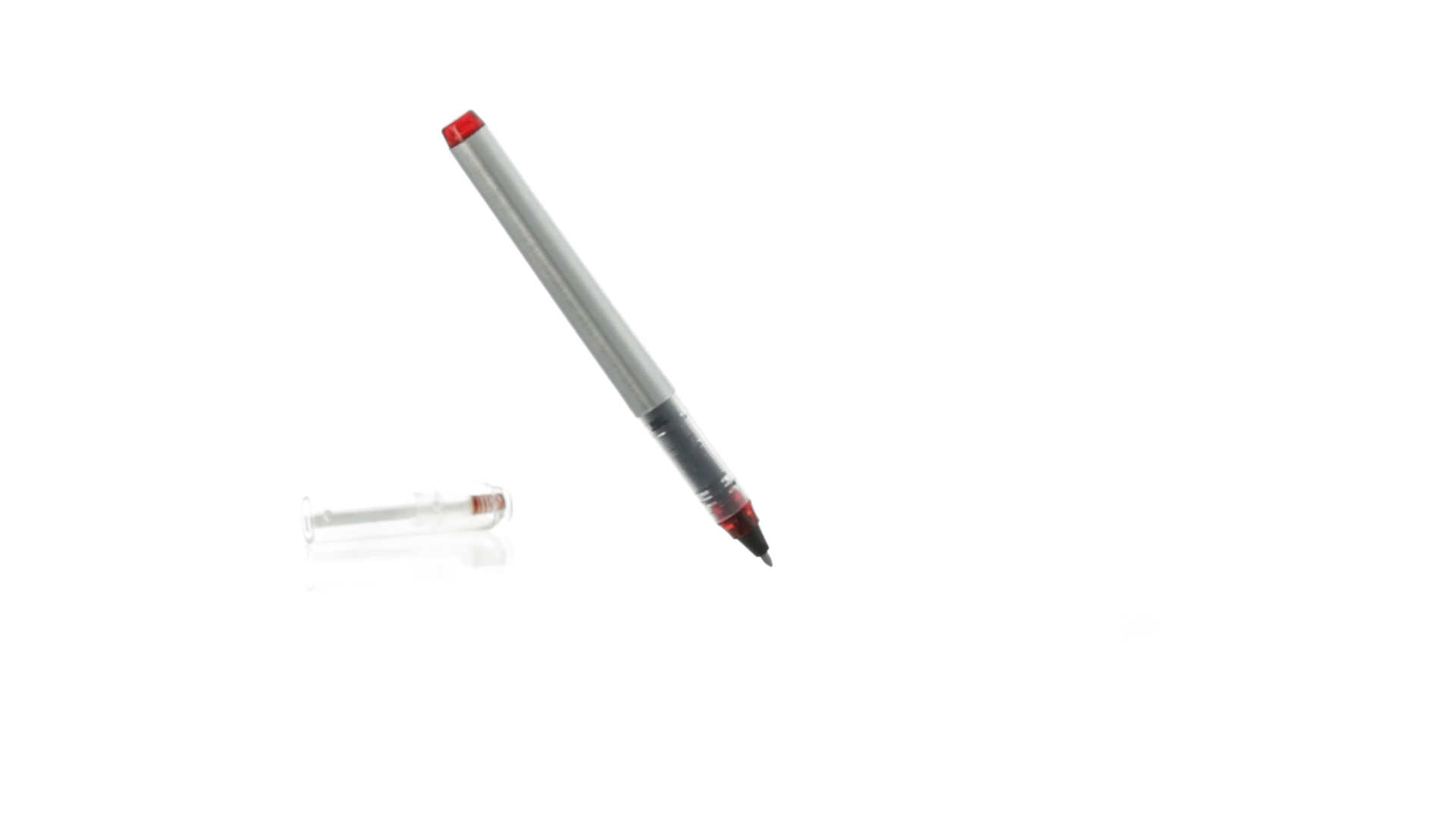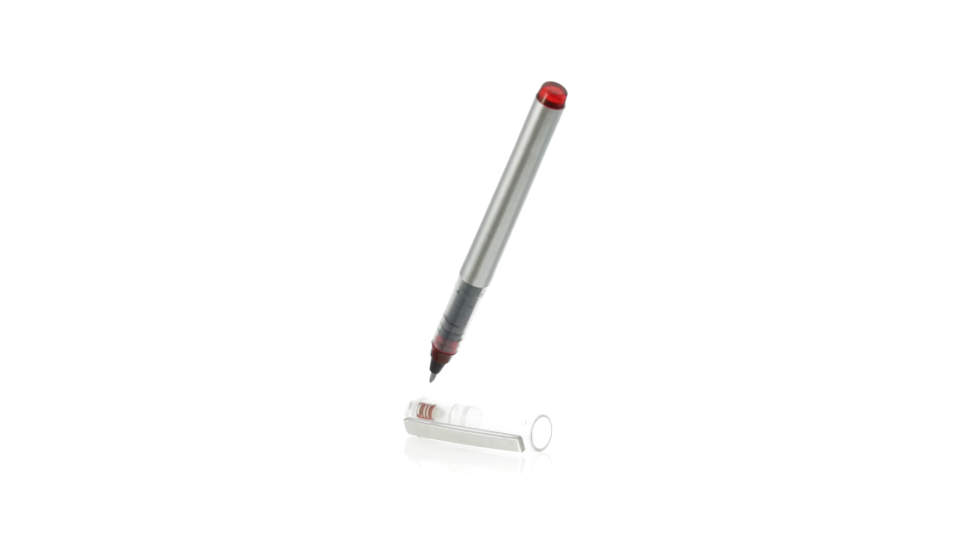 Tintenroller von STYB mit transparenter Kappe und originellem, zweifarbigem Design sowie silbernem Schaft und Kontrastdetails in verschiedenen lebhaften Farben. Mit blauer Tinte.