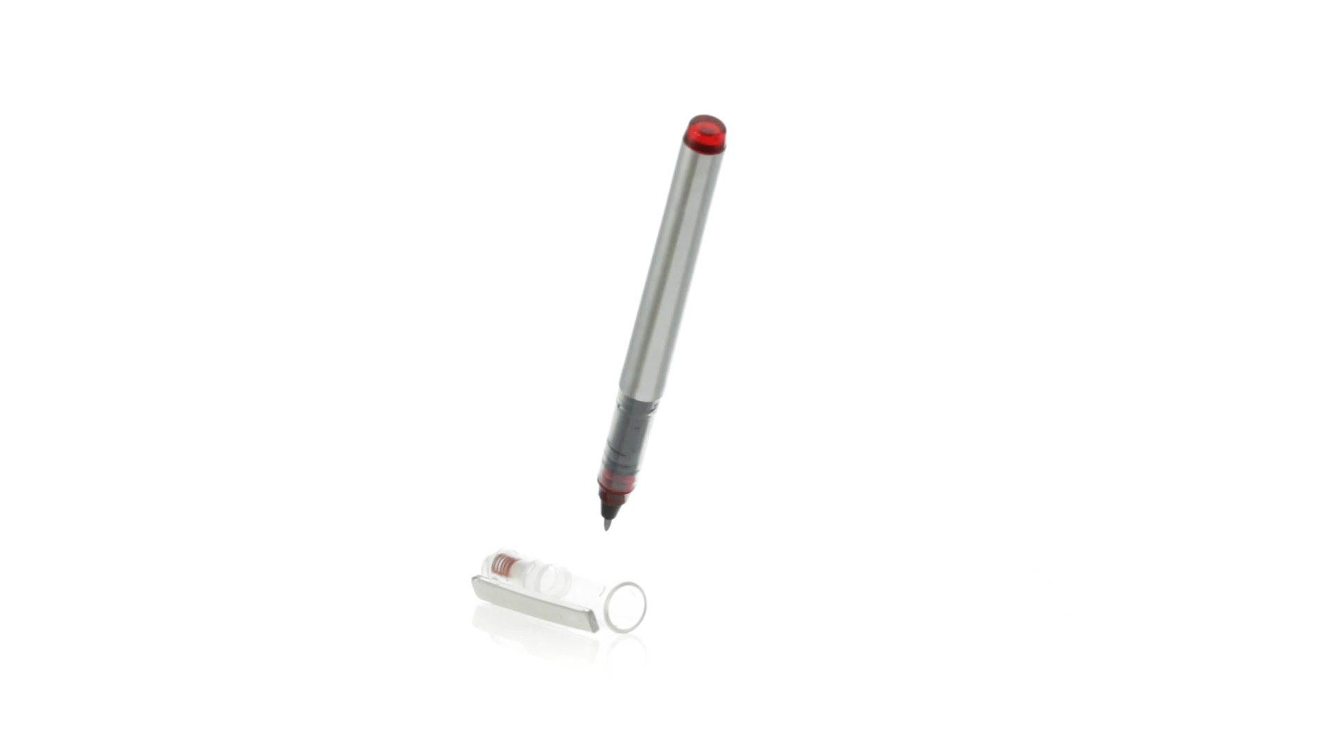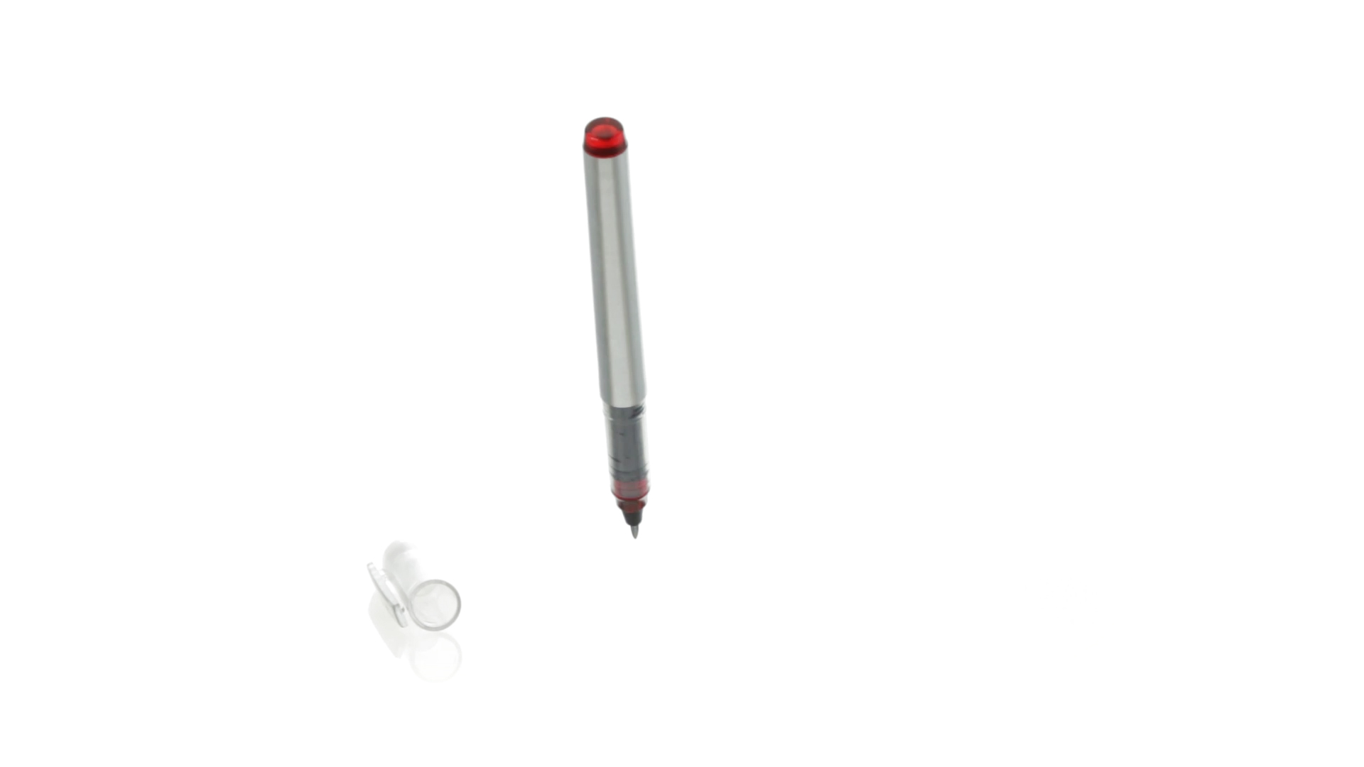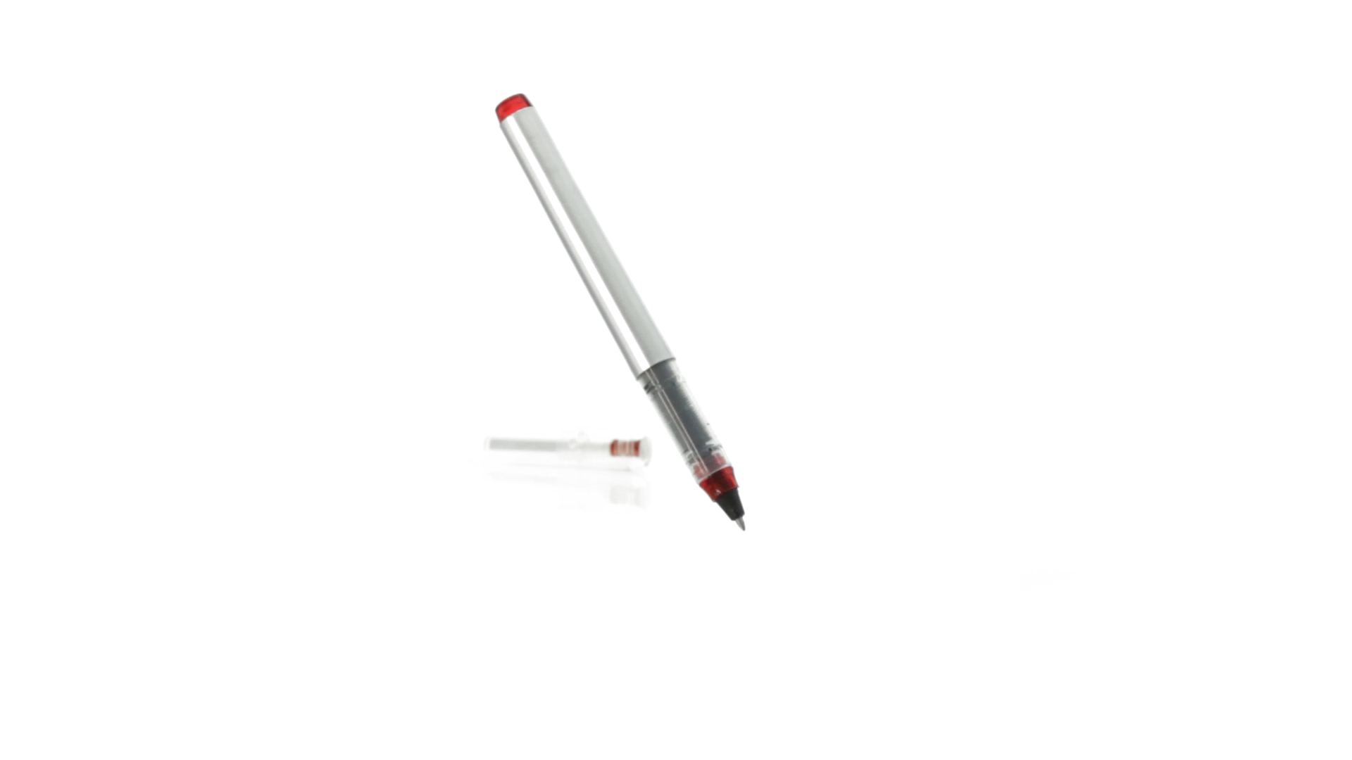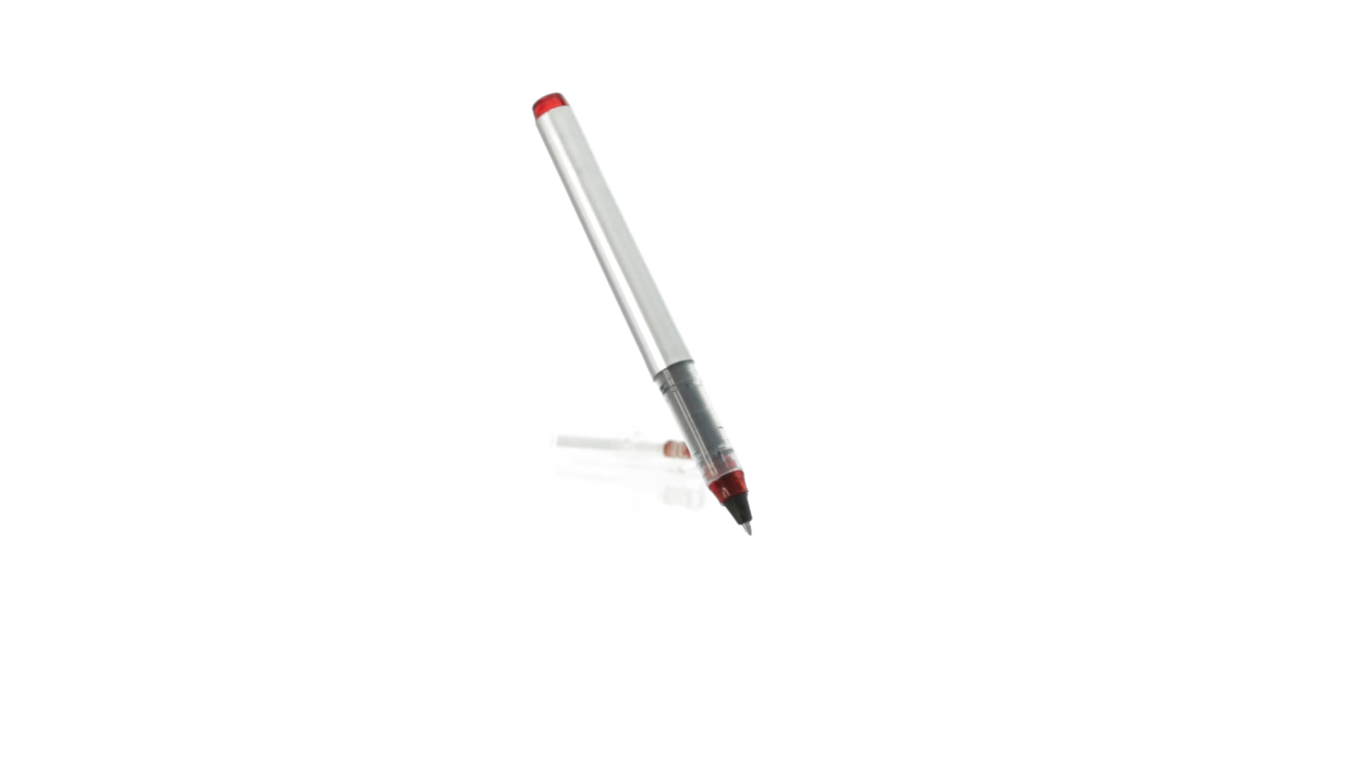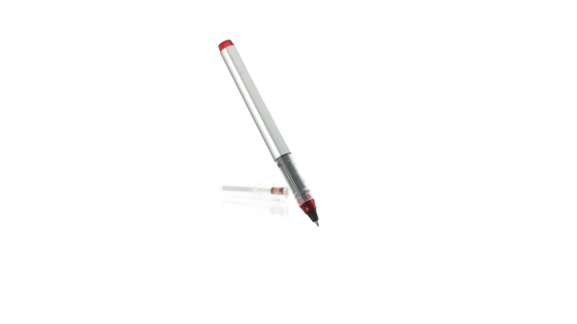 Tintenroller von STYB mit transparenter Kappe und originellem, zweifarbigem Design sowie silbernem Schaft und Kontrastdetails in verschiedenen lebhaften Farben. Mit blauer Tinte.