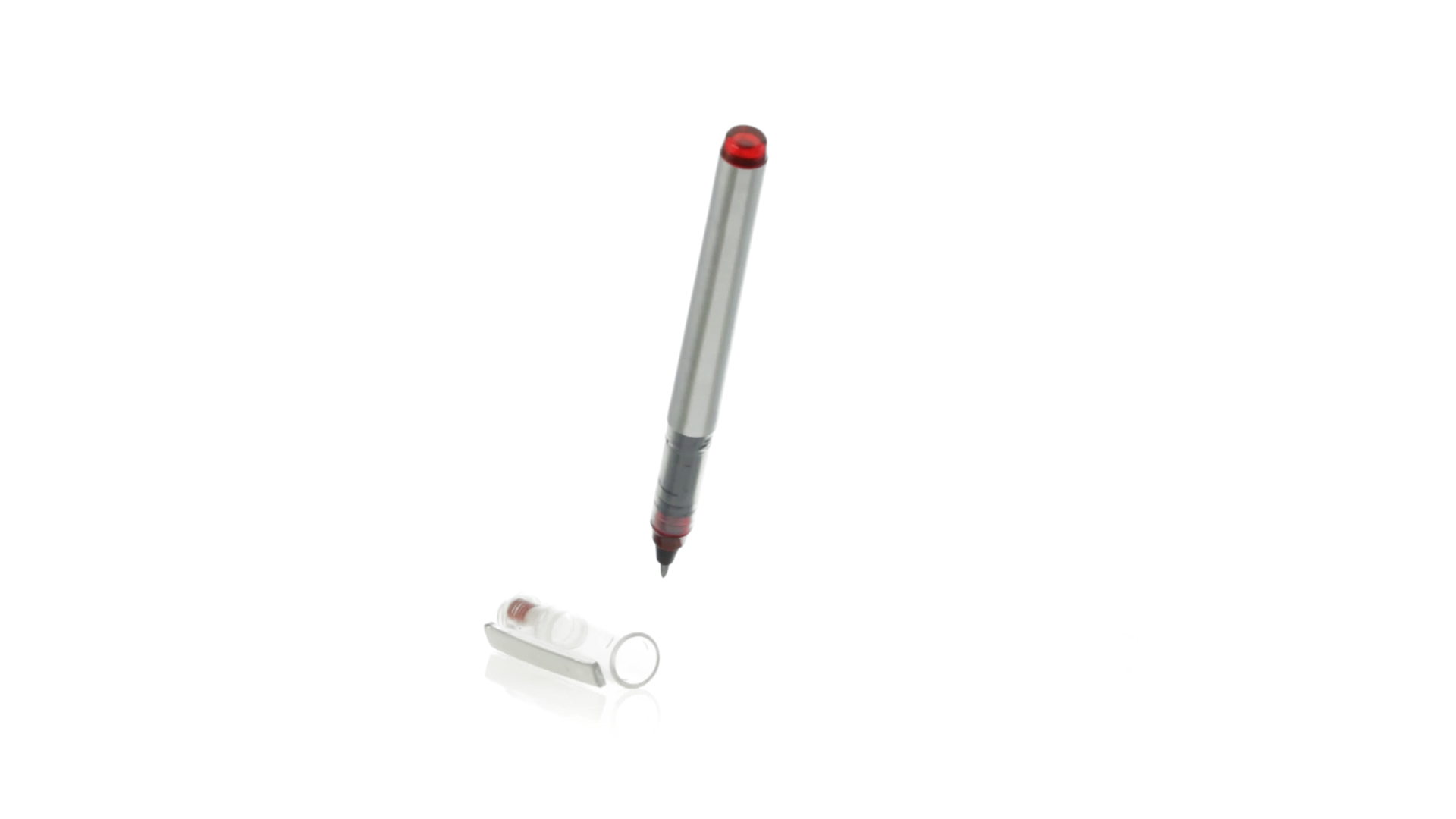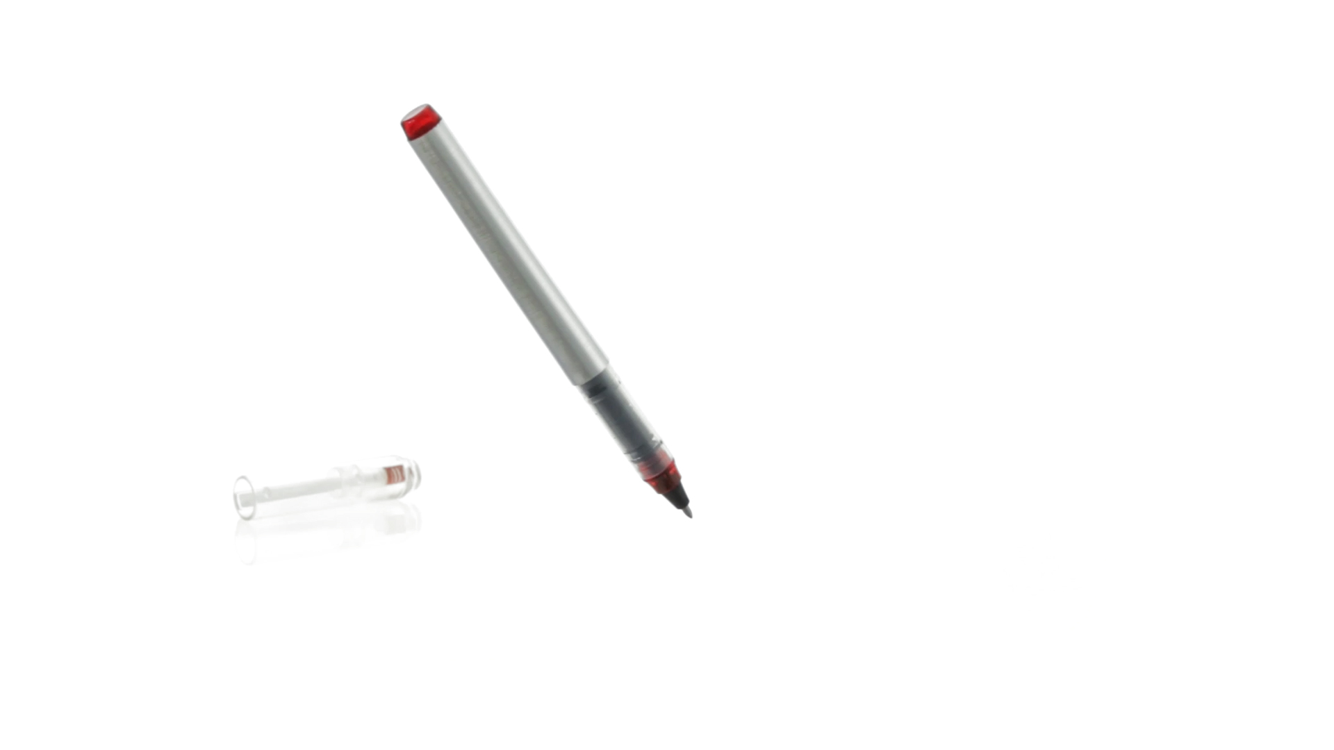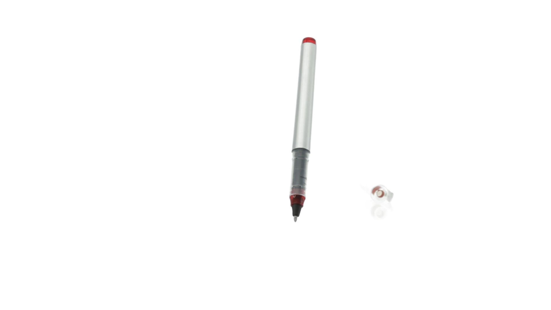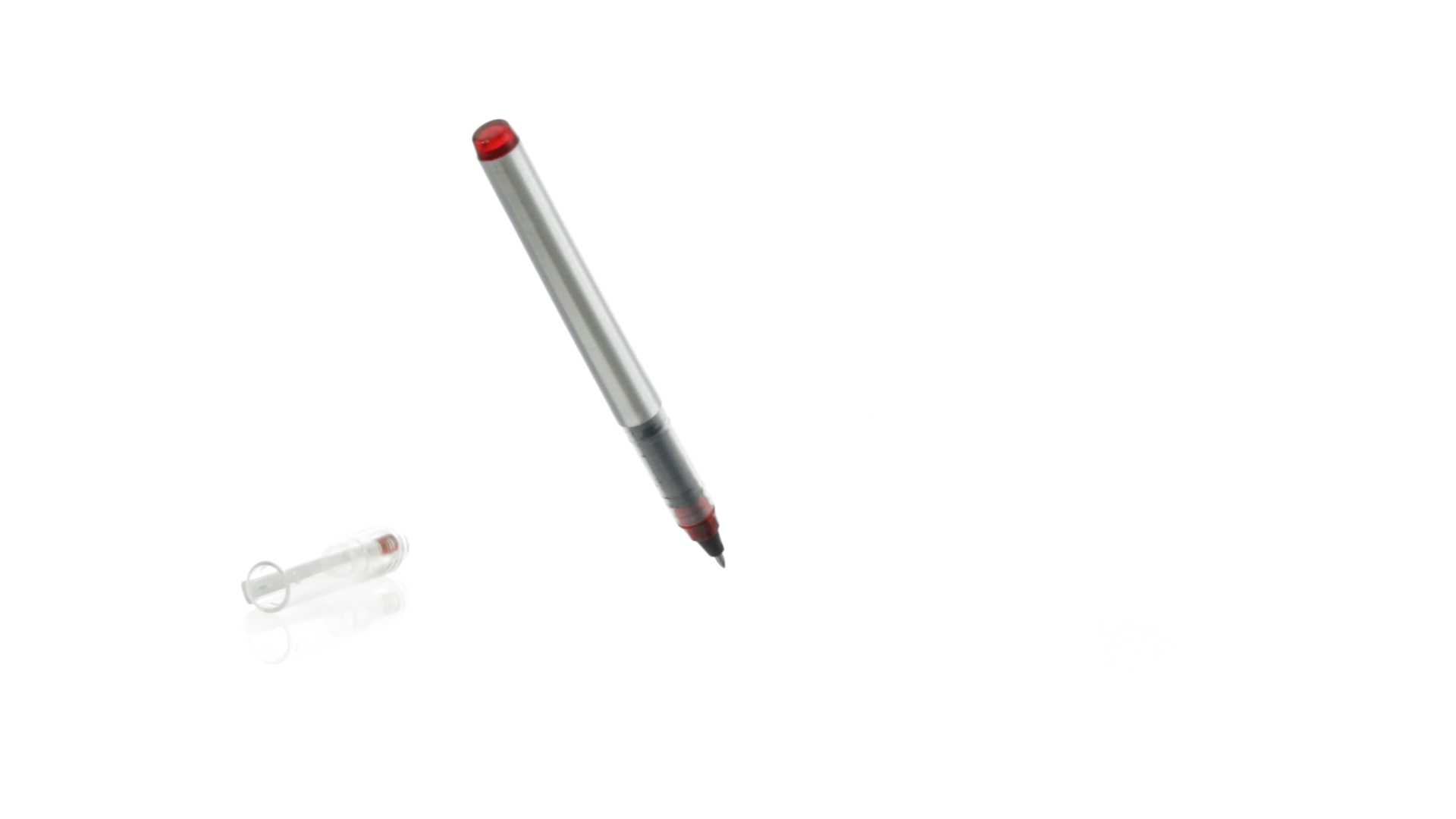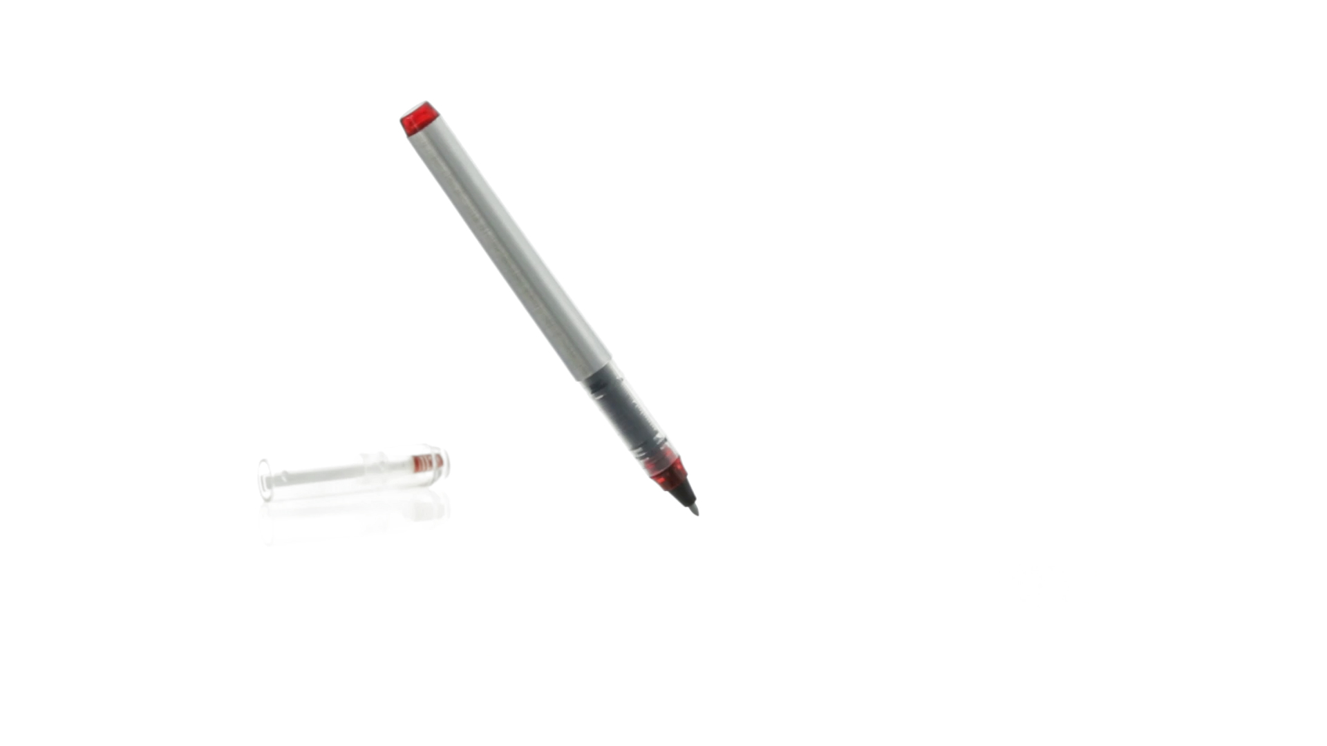 Tintenroller von STYB mit transparenter Kappe und originellem, zweifarbigem Design sowie silbernem Schaft und Kontrastdetails in verschiedenen lebhaften Farben. Mit blauer Tinte.
