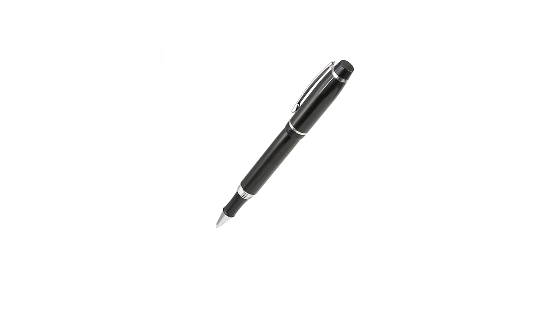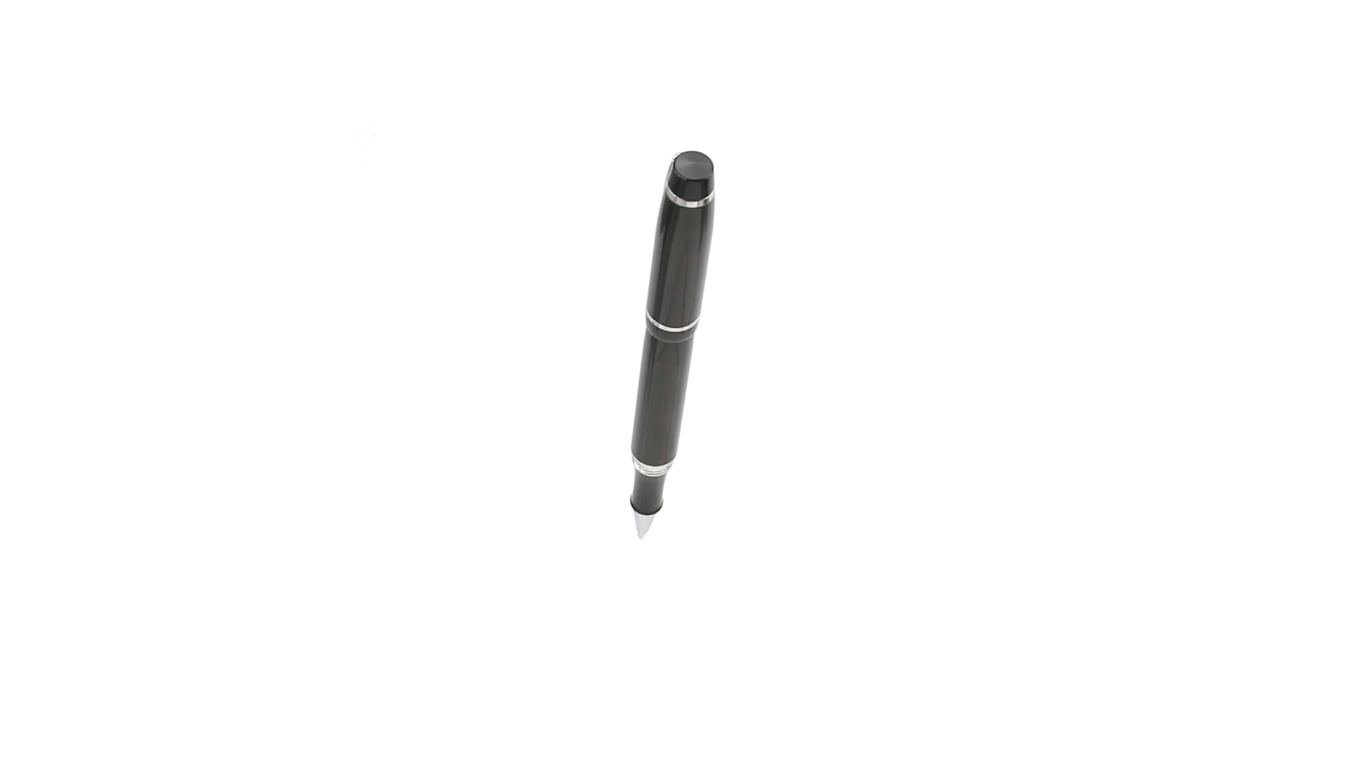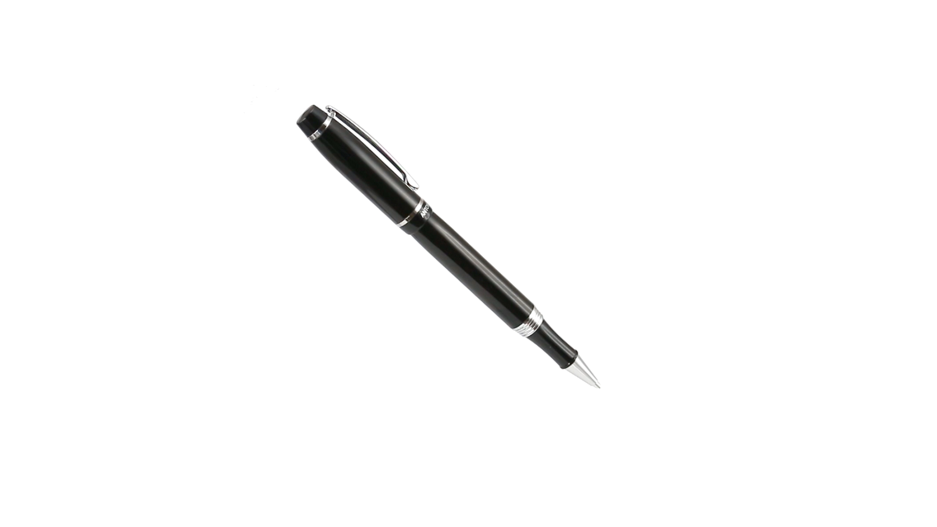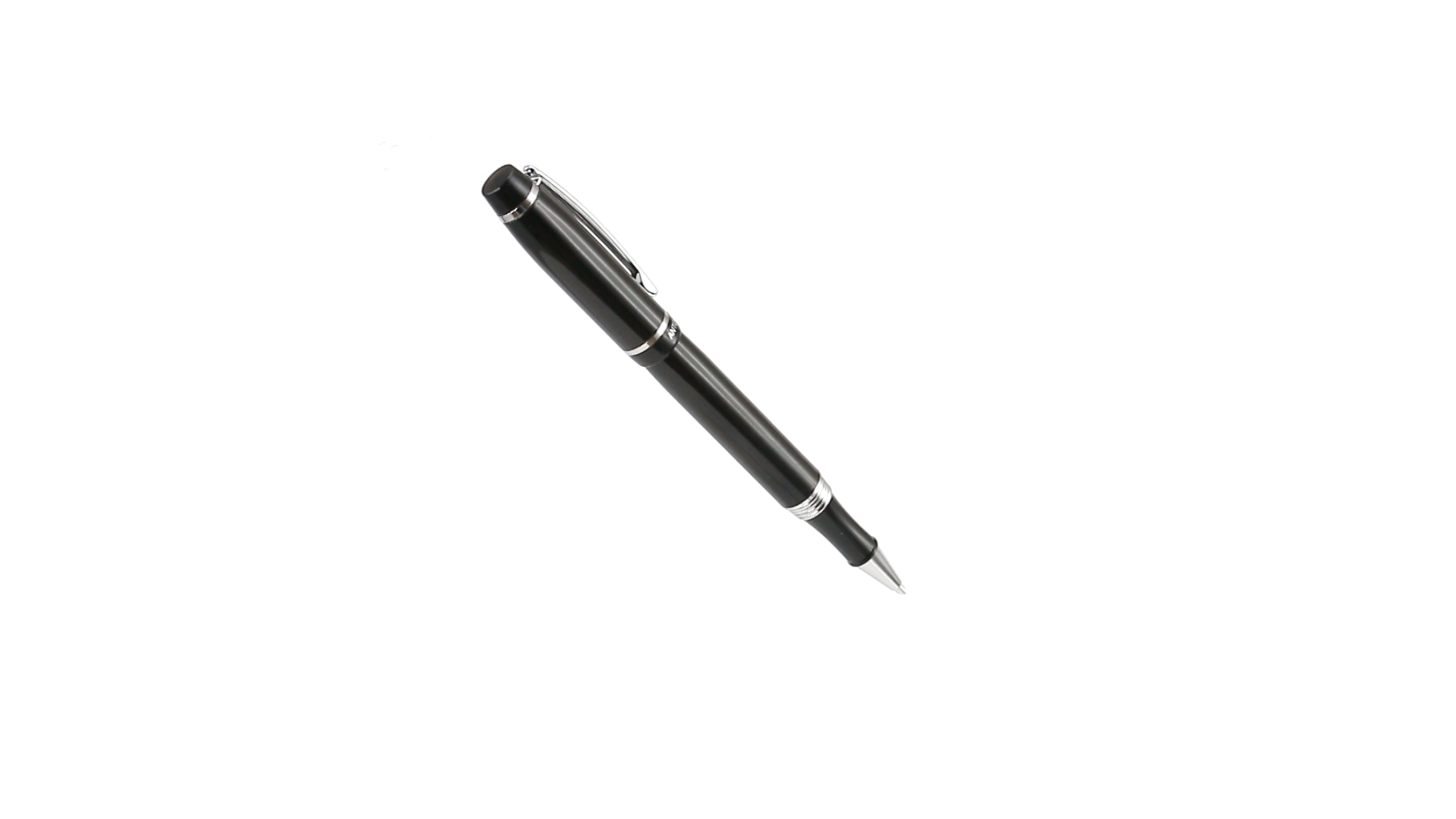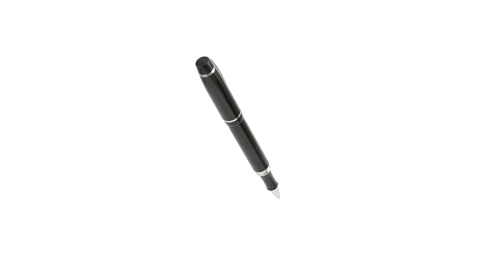 Tintenroller von Antonio Miró mit elegantem, zweifarbigem Design und geschmeidigem Metallschaft in schlichtem Schwarz. Mit dem Markenlogo unterhalb des Rings sowie Clip und Spitze in glänzendem Silber. Präsentiert in einer individuellen Schachtel in Schwarz mit dem Markenlogo. Blaue Tinte.