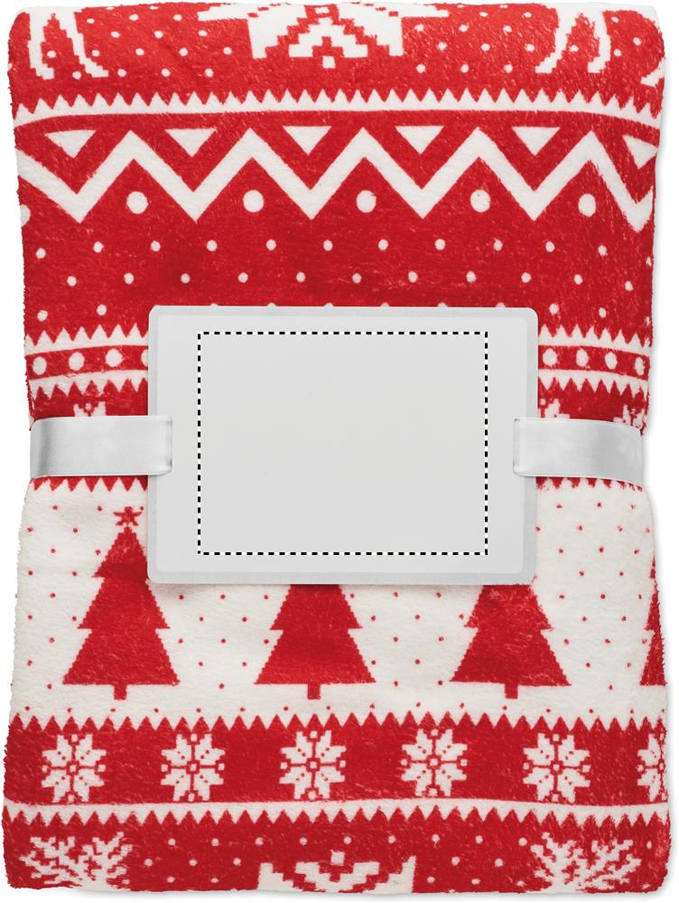 RPET-Coral-Fleece-Decke 190 g/m² mit winterlichem Muster. Inkl. Band mit bedruckbarer Karte.