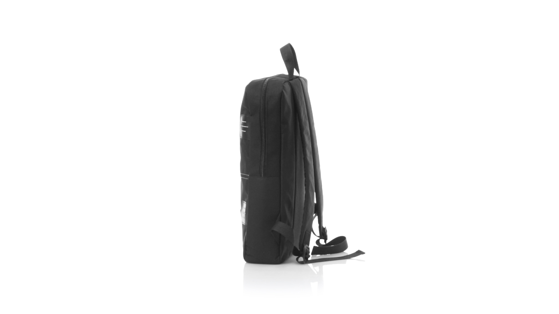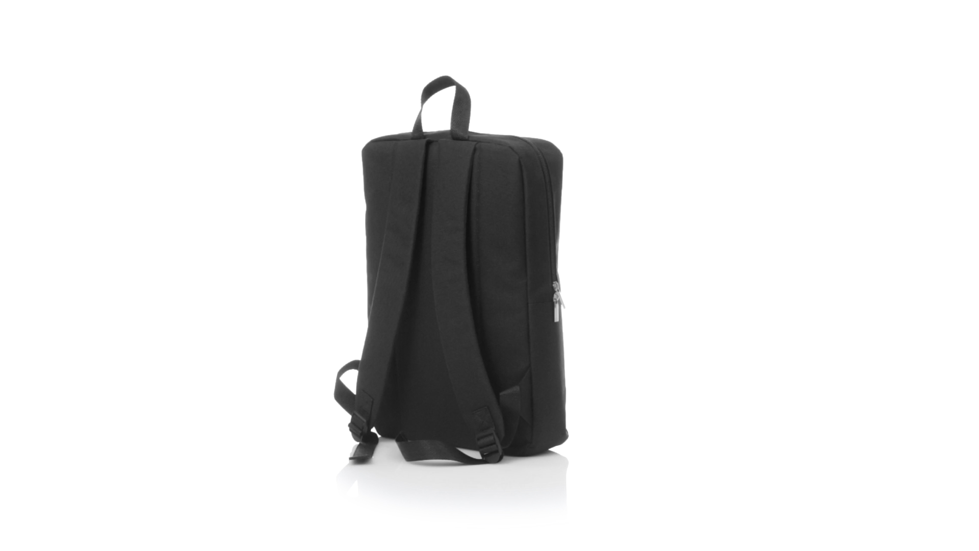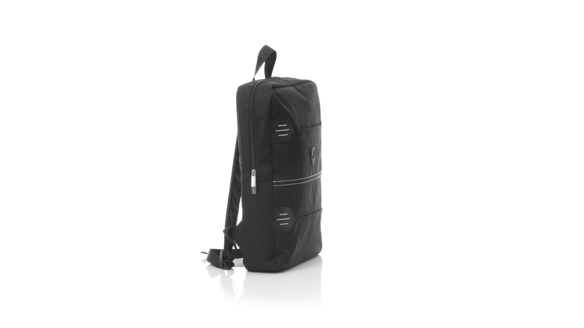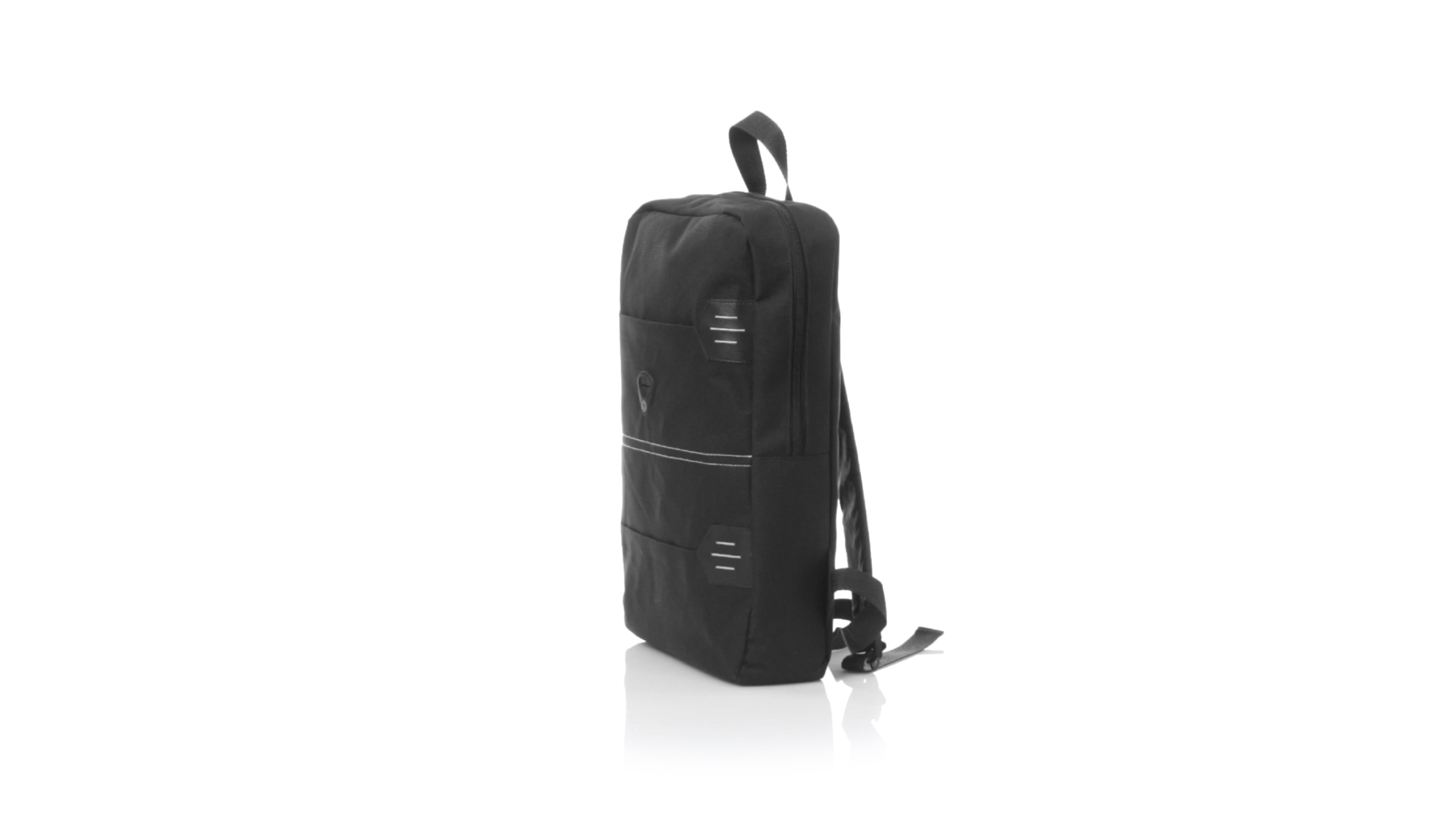 Rucksack aus resistentem 600D Polyester mit rechteckigem Design in elegantem Schwarz. Mit gepolstertem Rückenpanel und Schultergurten sowie gepolstertem Innenfach für einen Laptop von bis zu 15 Zoll und Kopfhörerausgang.