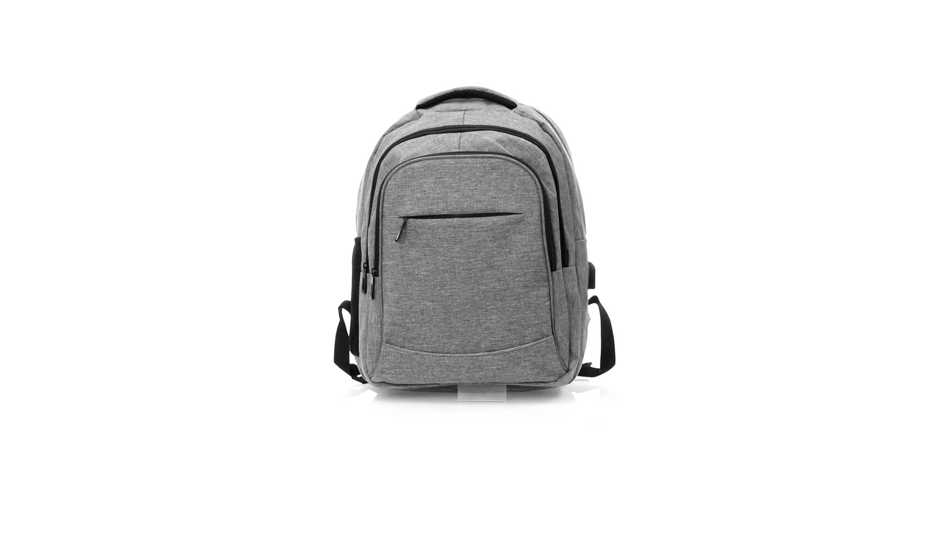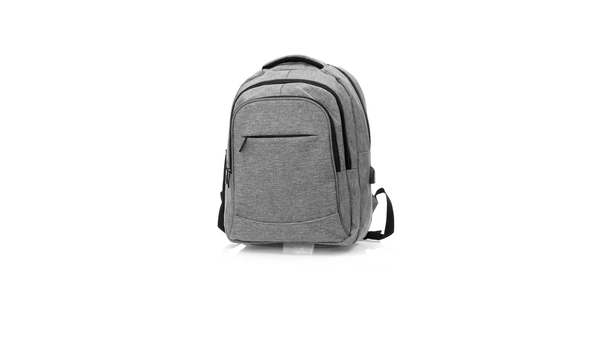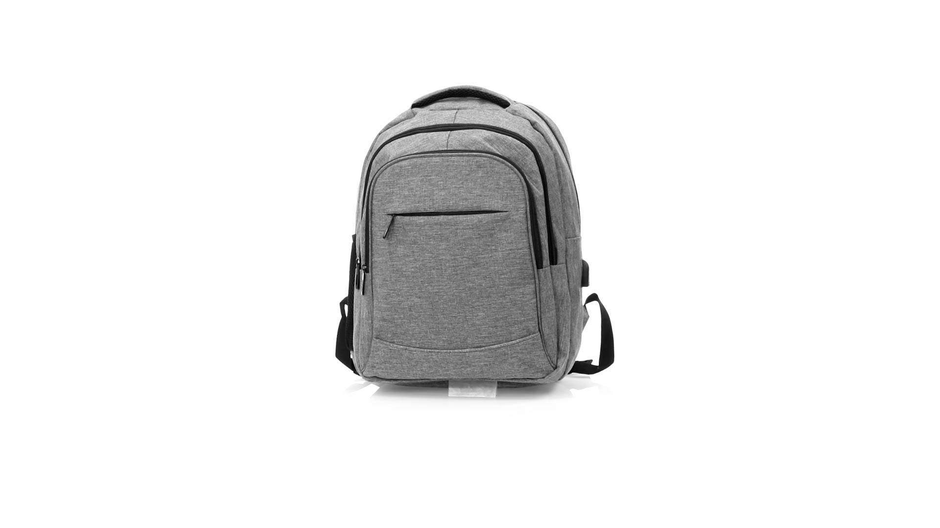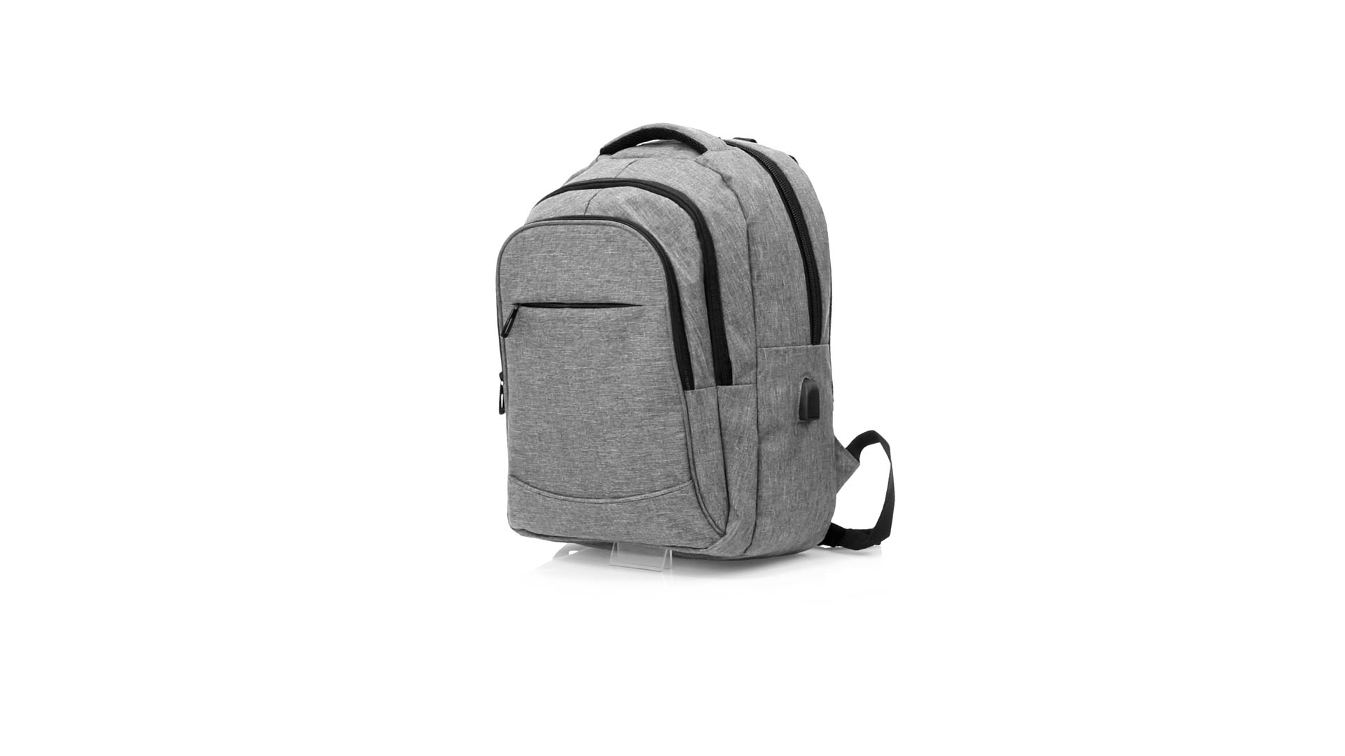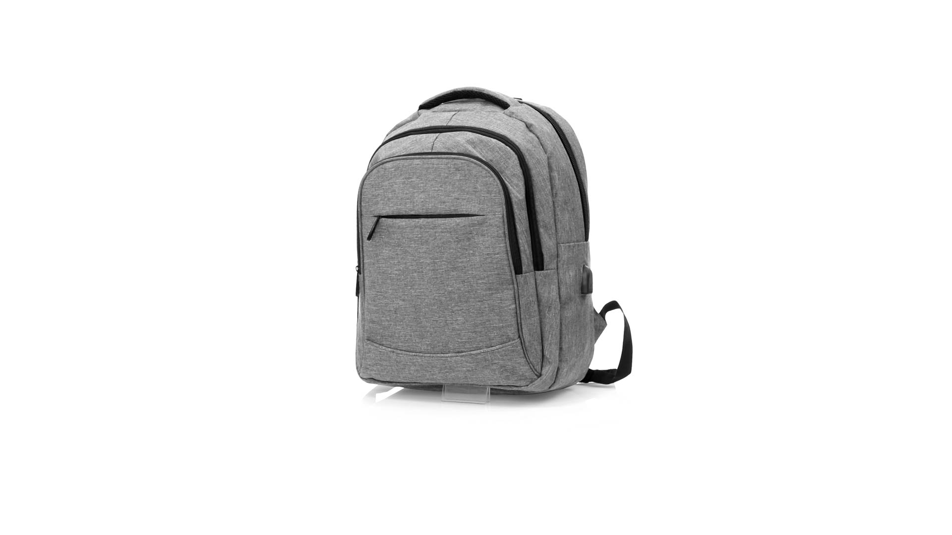Business-Rucksack aus widerstandsfähigem Polyester 600D Material.Mit Doppelreissverschlusstasche mit doppeltem Puller und einer Vielzahl von Vordertaschen. Innenfach mit gepolsterten Fächern für Tablets bis 12 Zoll Grösse und Laptop bis 15 Zoll Grösse, einschliesslich USB-Anschluss zum Laden mobiler Geräte (Kabel im Lieferumfang enthalten, Zusatzakku nicht enthalten). Verstärkte Ecken und Zubehör in schwarzer Farbe. Mit ergonomischer, gepolsterter Rückseite und verstellbaren, gepolsterten Schultergurten.