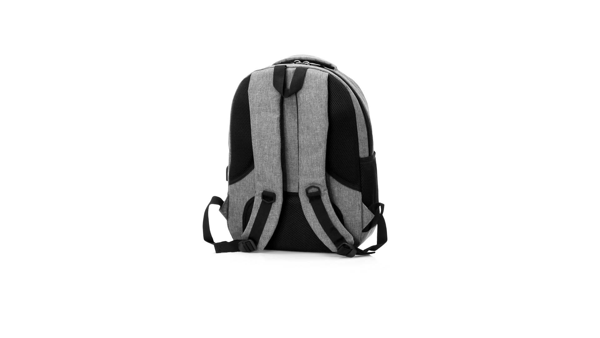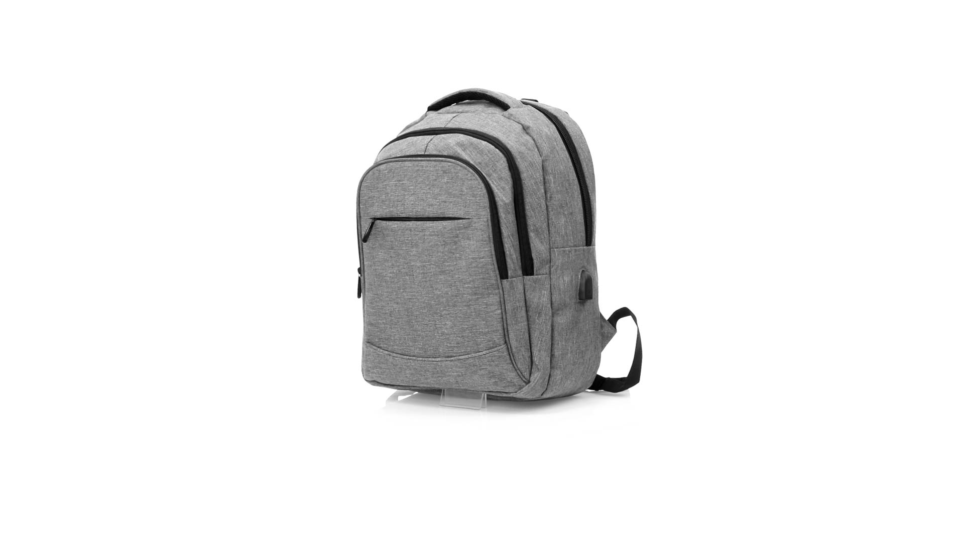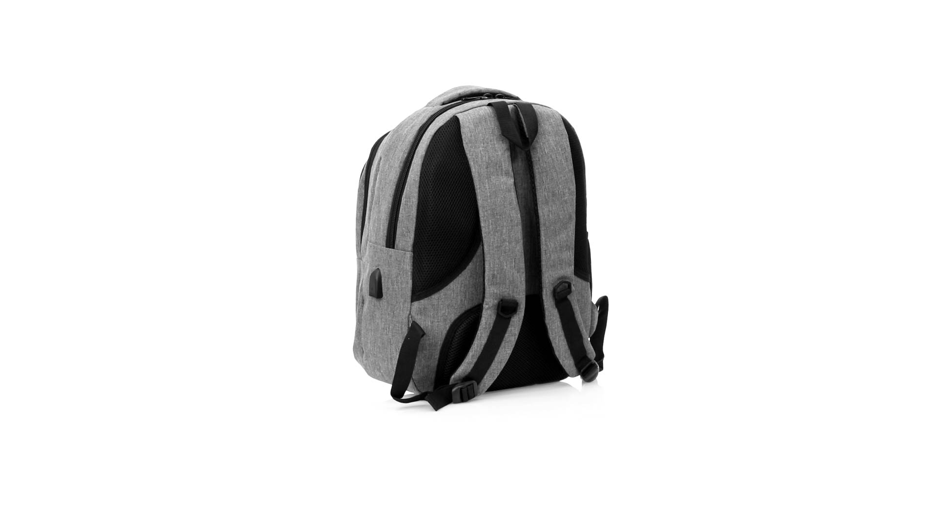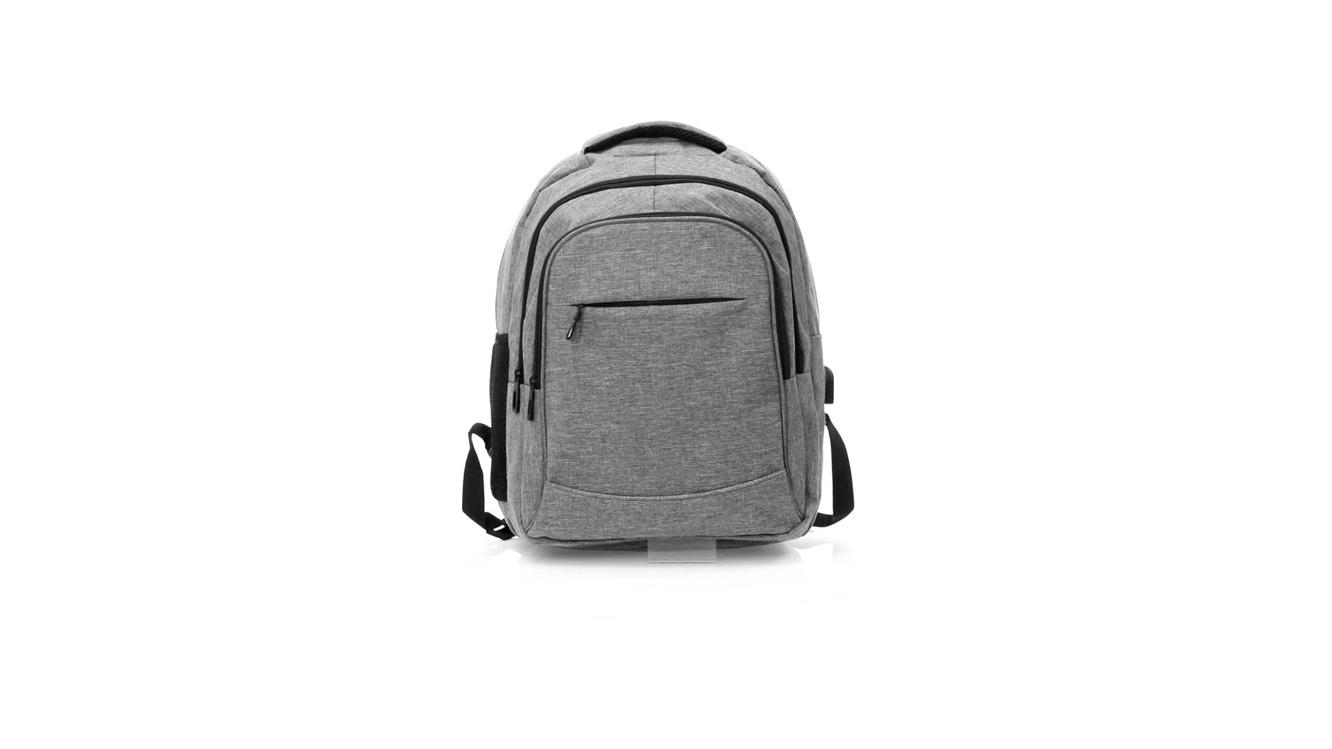 Business-Rucksack aus widerstandsfähigem Polyester 600D Material.Mit Doppelreissverschlusstasche mit doppeltem Puller und einer Vielzahl von Vordertaschen. Innenfach mit gepolsterten Fächern für Tablets bis 12 Zoll Grösse und Laptop bis 15 Zoll Grösse, einschliesslich USB-Anschluss zum Laden mobiler Geräte (Kabel im Lieferumfang enthalten, Zusatzakku nicht enthalten). Verstärkte Ecken und Zubehör in schwarzer Farbe. Mit ergonomischer, gepolsterter Rückseite und verstellbaren, gepolsterten Schultergurten.