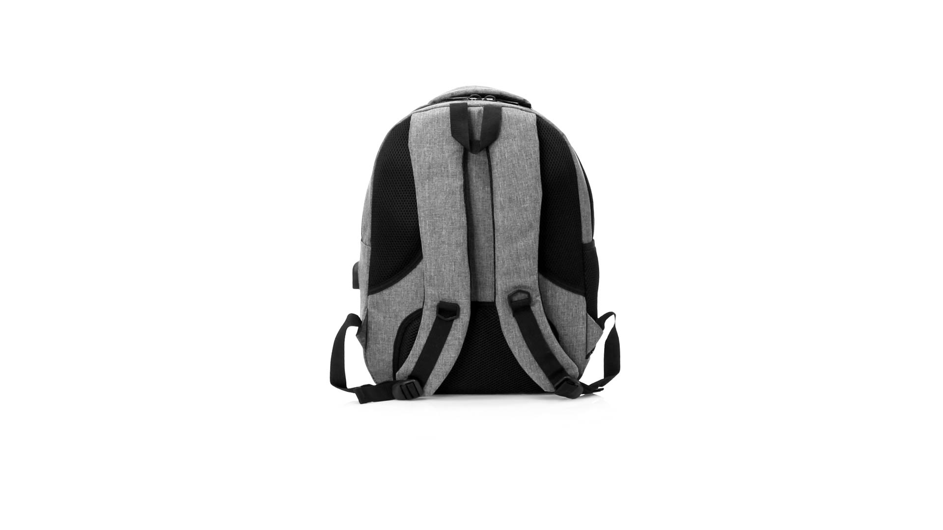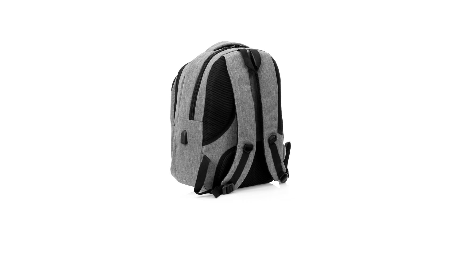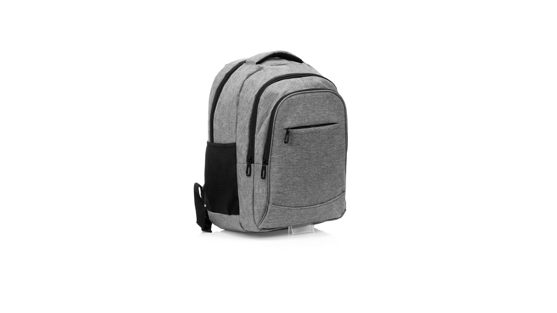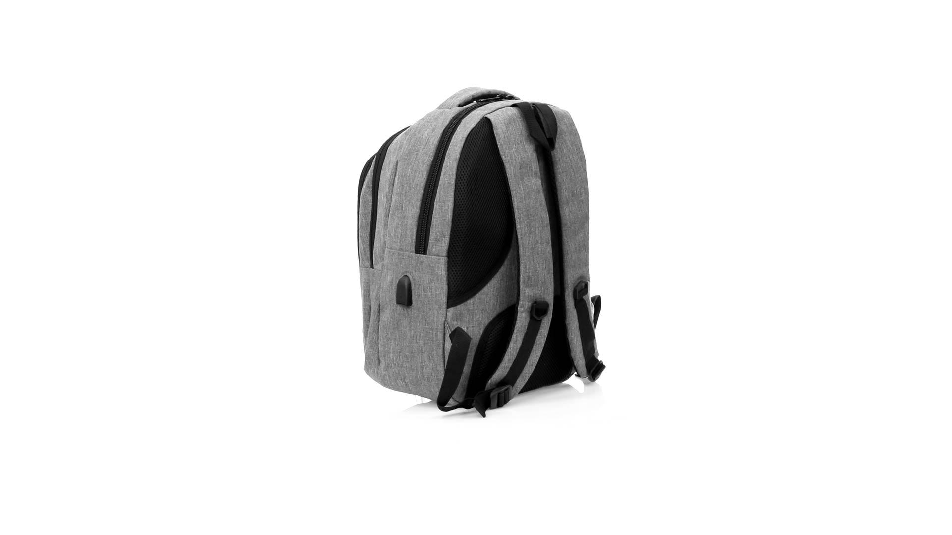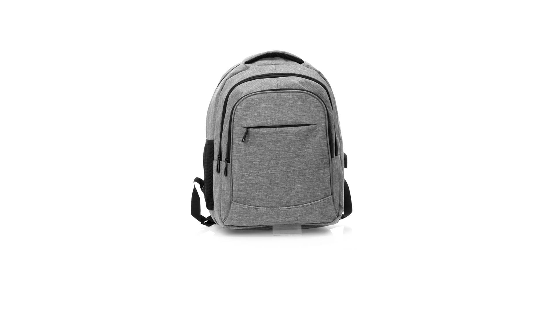 Business-Rucksack aus widerstandsfähigem Polyester 600D Material.Mit Doppelreissverschlusstasche mit doppeltem Puller und einer Vielzahl von Vordertaschen. Innenfach mit gepolsterten Fächern für Tablets bis 12 Zoll Grösse und Laptop bis 15 Zoll Grösse, einschliesslich USB-Anschluss zum Laden mobiler Geräte (Kabel im Lieferumfang enthalten, Zusatzakku nicht enthalten). Verstärkte Ecken und Zubehör in schwarzer Farbe. Mit ergonomischer, gepolsterter Rückseite und verstellbaren, gepolsterten Schultergurten.